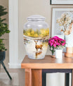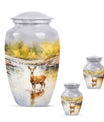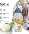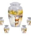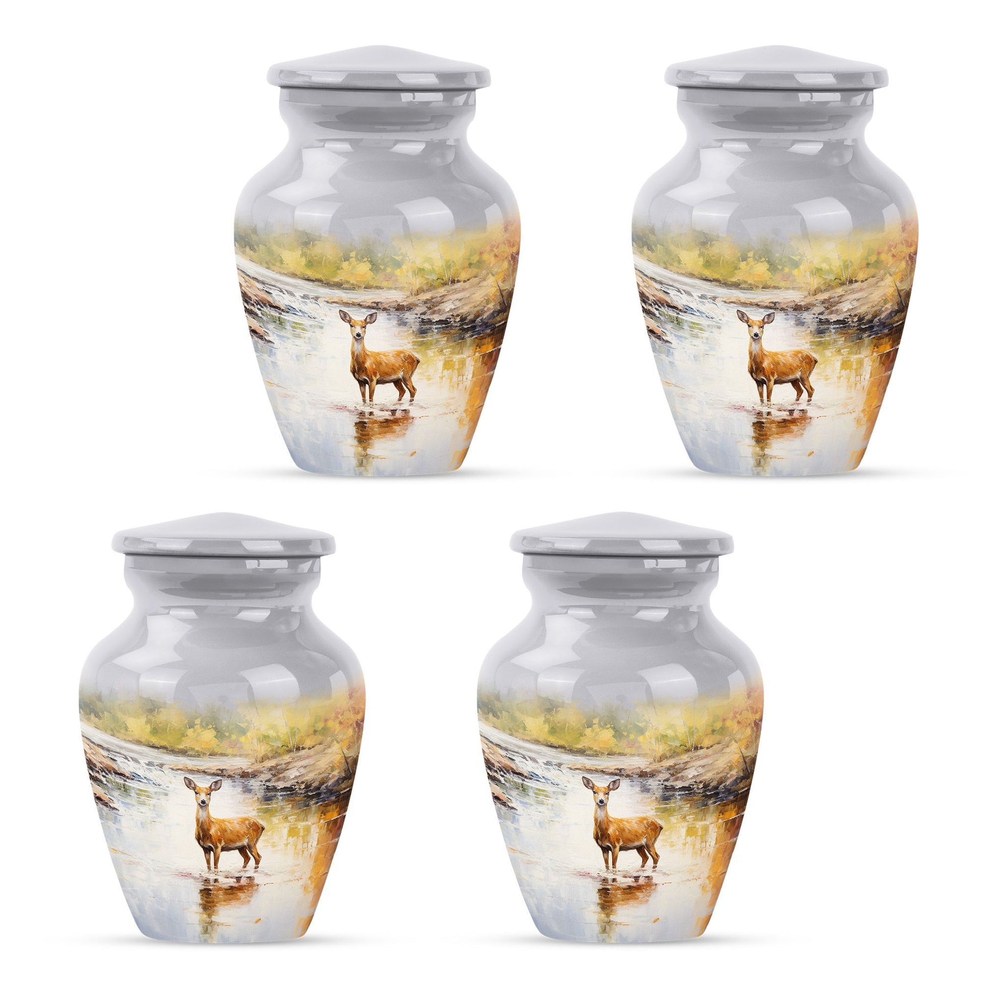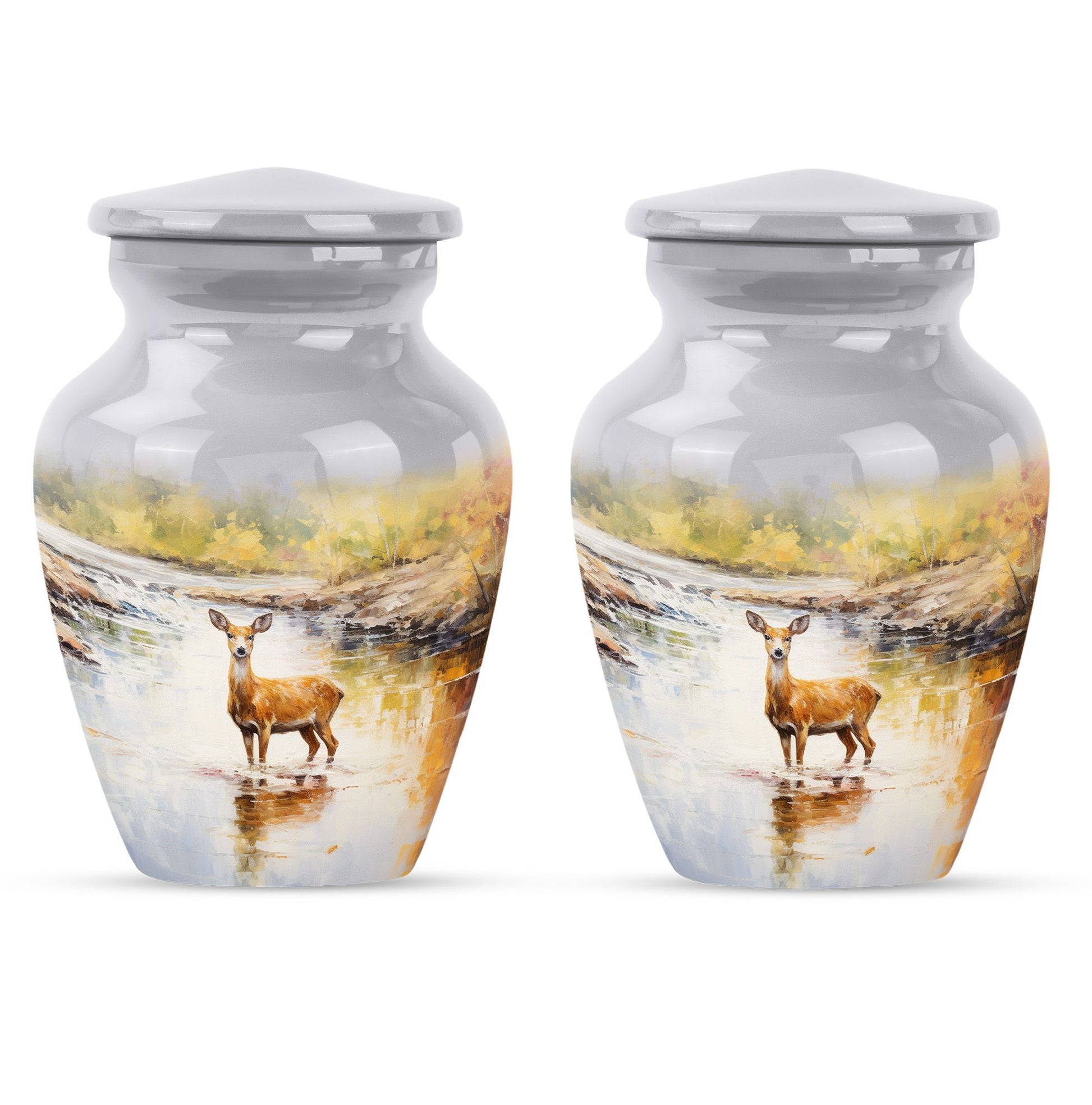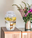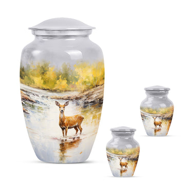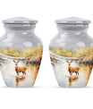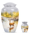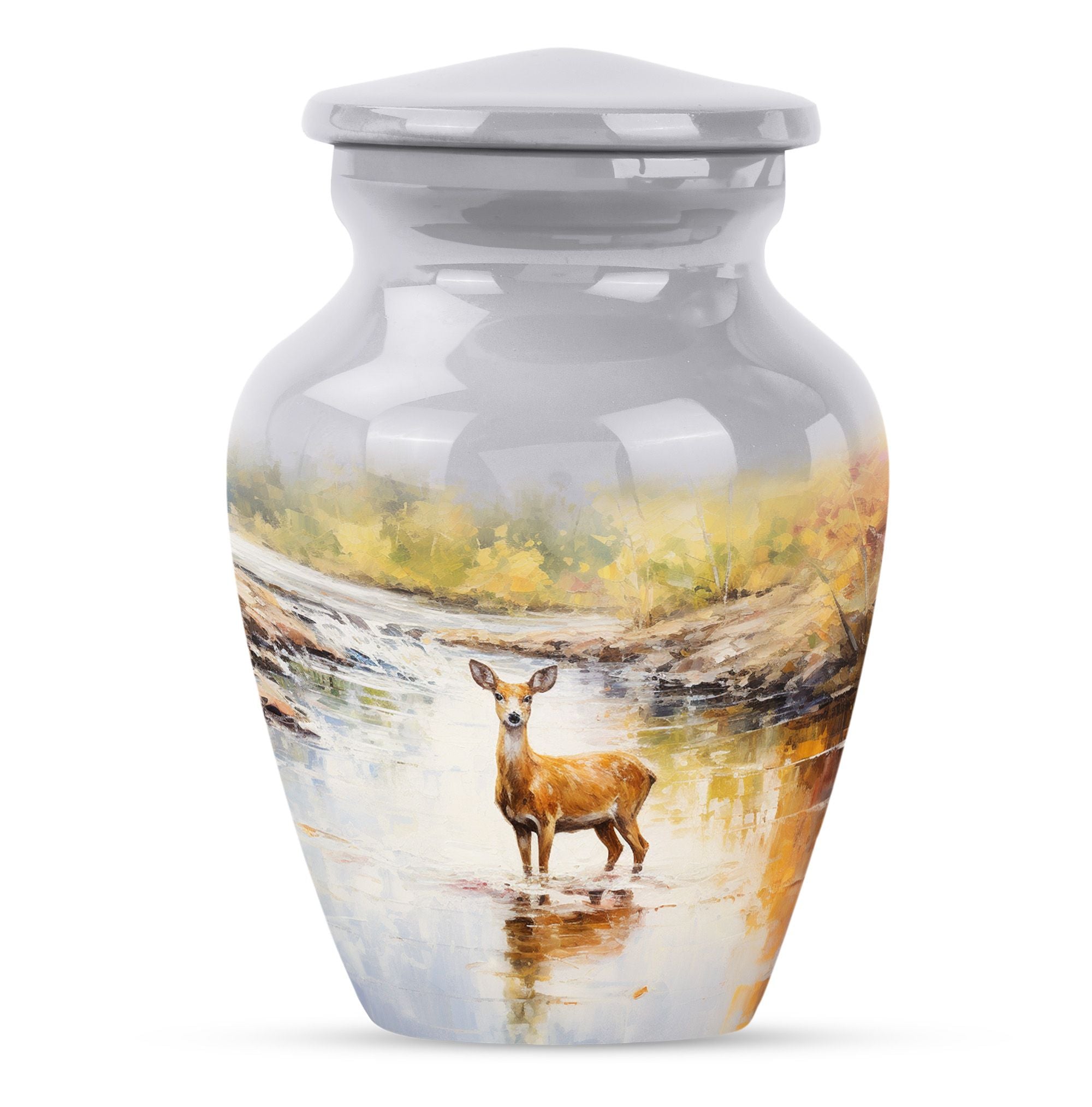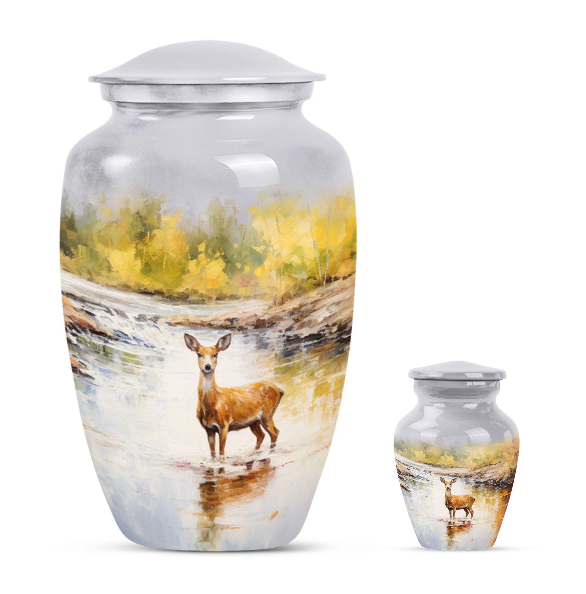 A tribute to life beautifully lived and cherished memories, our elegantly crafted 10-inch Deer Urn is a profound symbol of everlasting respect for your loved ones. With a size of 10 inches and a capacity of 200 cubic inches, this substantial and durable funeral urn for ashes for women and adult males is not just a memorial urn but a special place for their final rest. The urn, fashioned from premium aluminium, weighs a solid 3.3 pounds, ensuring stability and longevity. A sublime harmonization of aesthetics and practicality, it serves as a heart-touching commemoration of the soul's journey. Included in the package is a velvet pouch for gentle and respectful containment of the ashes. As every life story is unique, personalize this urn with engraved names, making it an authentic, sentimental keepsake. Crafted in memorial of your dear ones, this urn acknowledges the importance of individuality just as much as it respects the universality of loss. Surpassing the ordinary, this timeless large urn themed with a classic gramophone will perpetually resonate with the symphony of love and life, creating a meaningful narrative for future generations. While commonly utilized for mom or an adult male, its design and essence make it suitable to honor any significant individual in your life. A beacon of peace, rememberance and hope, let this urn be a dignified testament of a life well-celebrated.