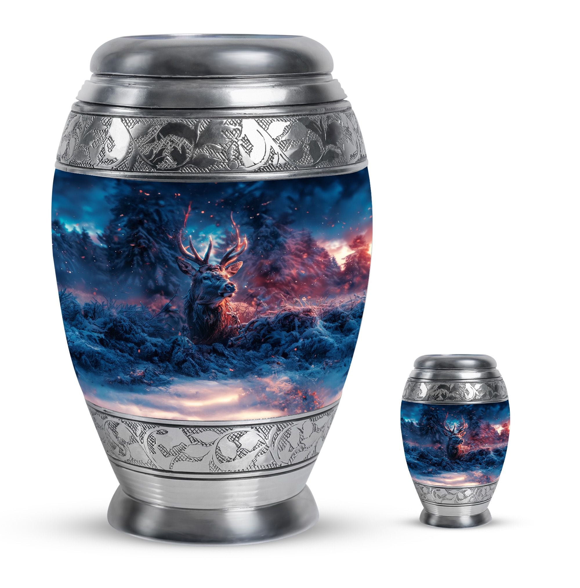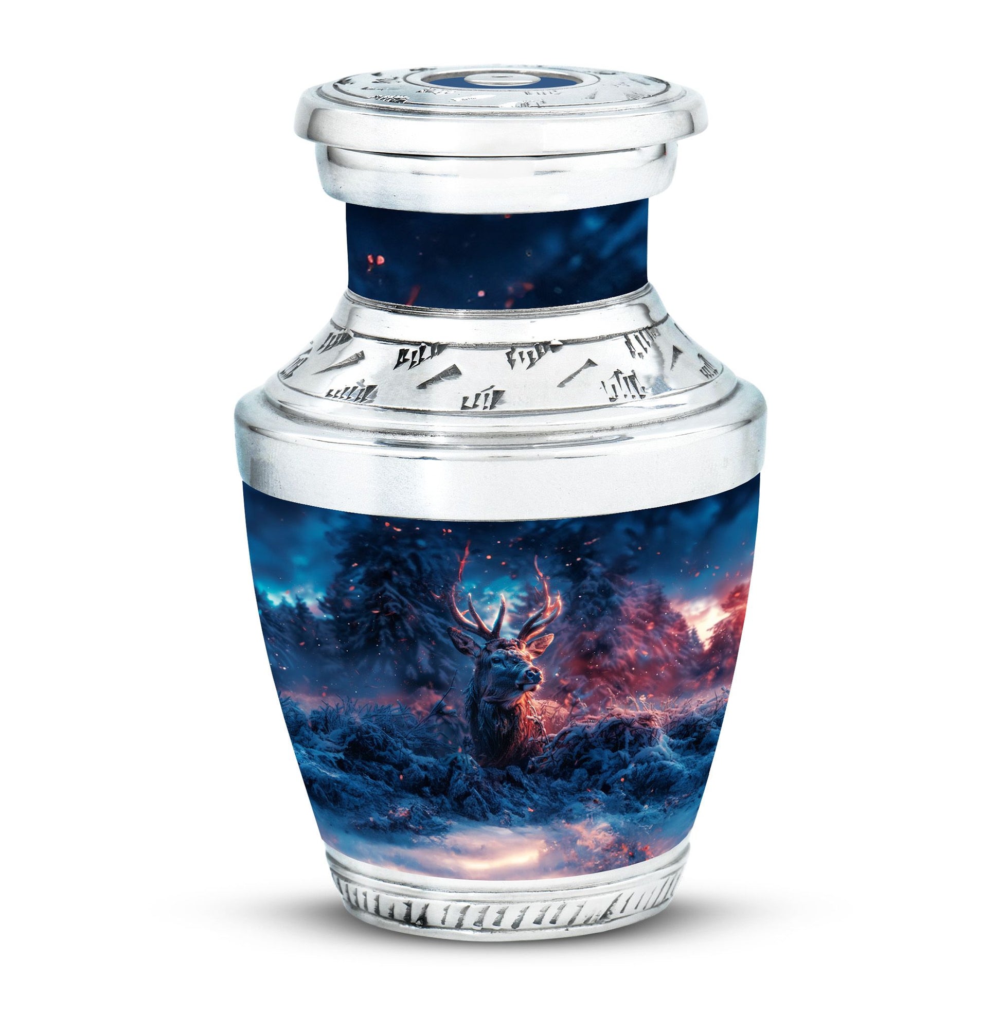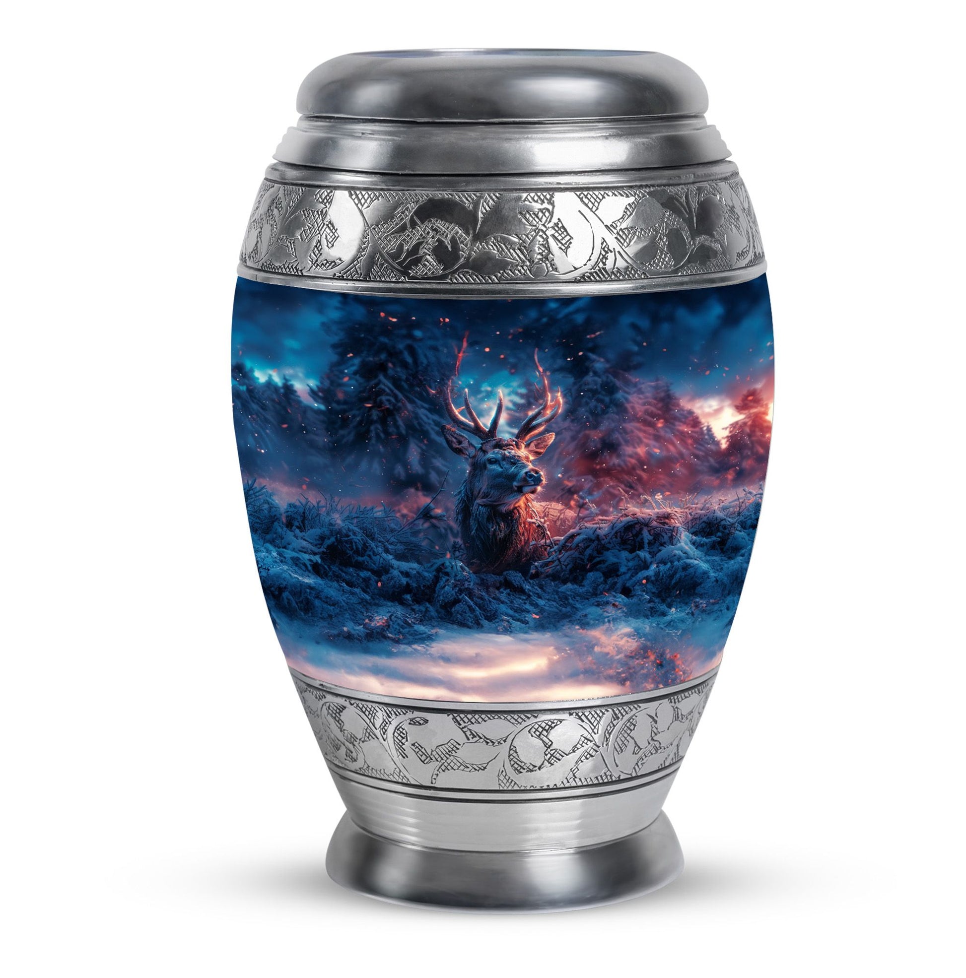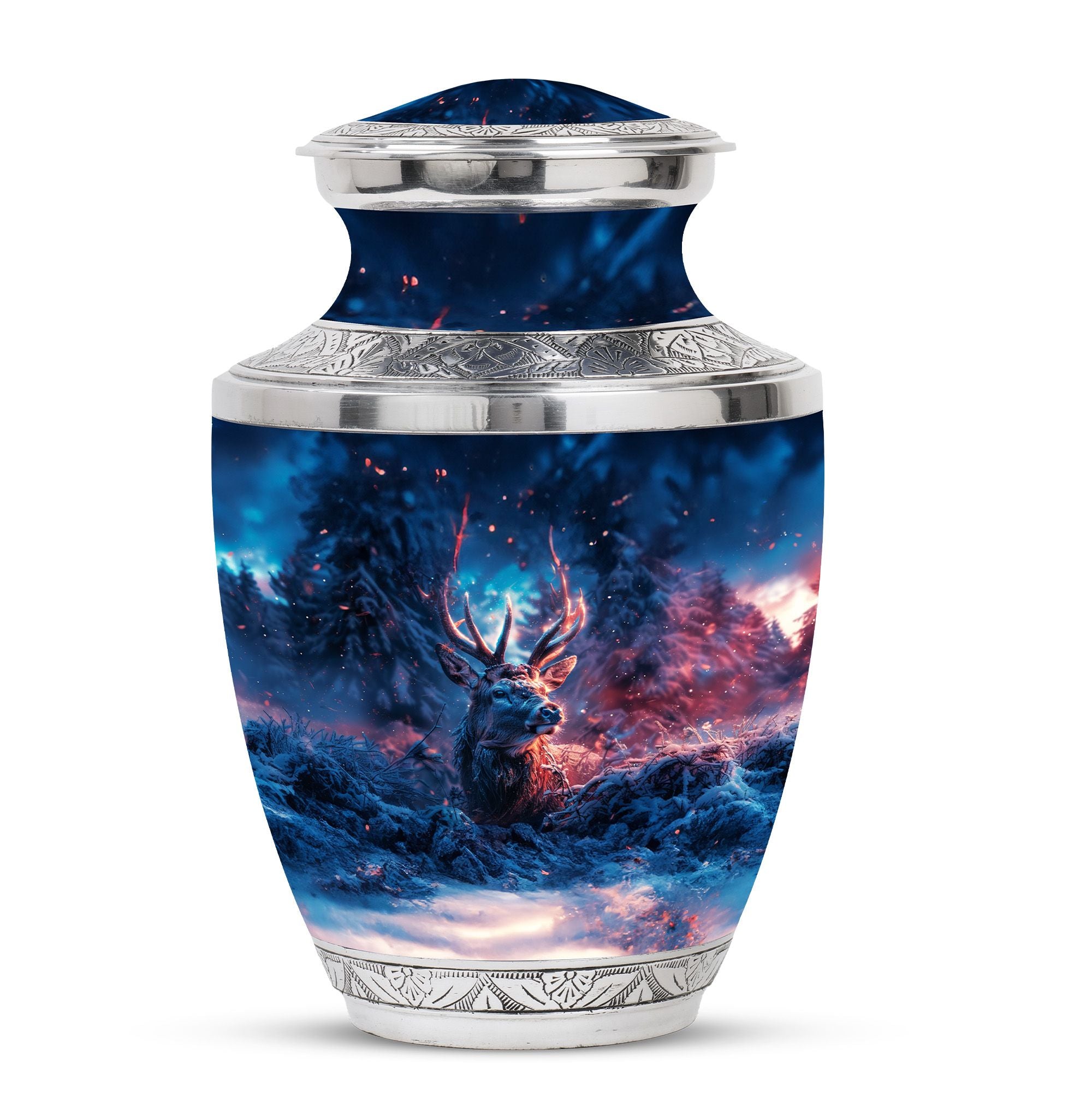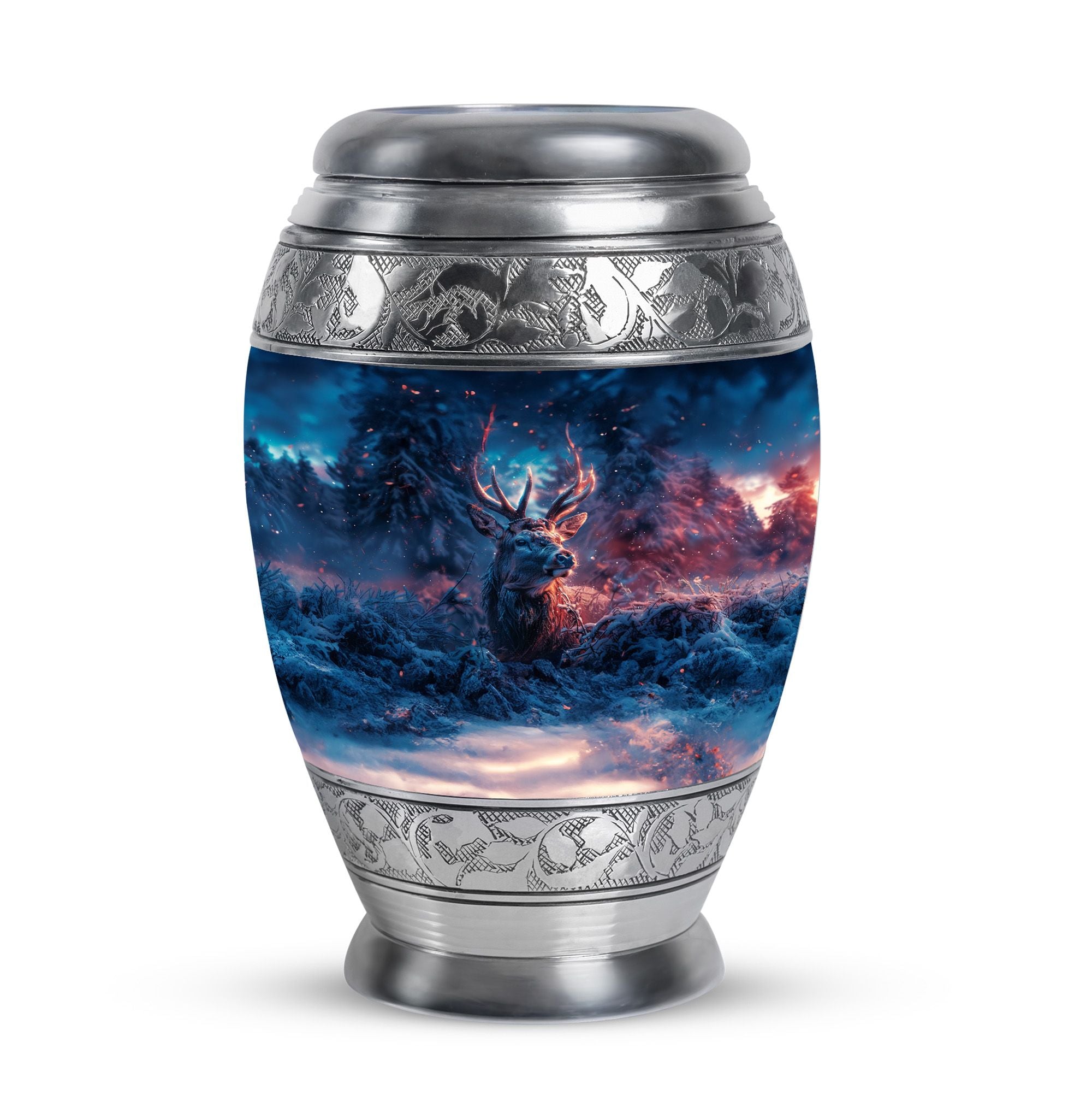 Made from high-quality aluminum, this adult male urn features a graceful elk motif representing strength, guidance, and eternal connection. Compact yet durable, it is ideal for families seeking urns for ashes adult male small keepsake or burial urns for human ashes adult male. With its secure screw-top lid, the urn ensures safe storage, making it suitable as cremation urns for human ashes adult female as well.