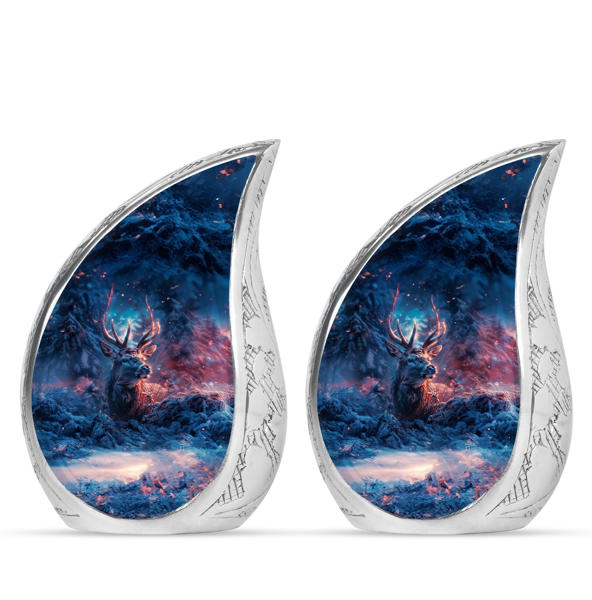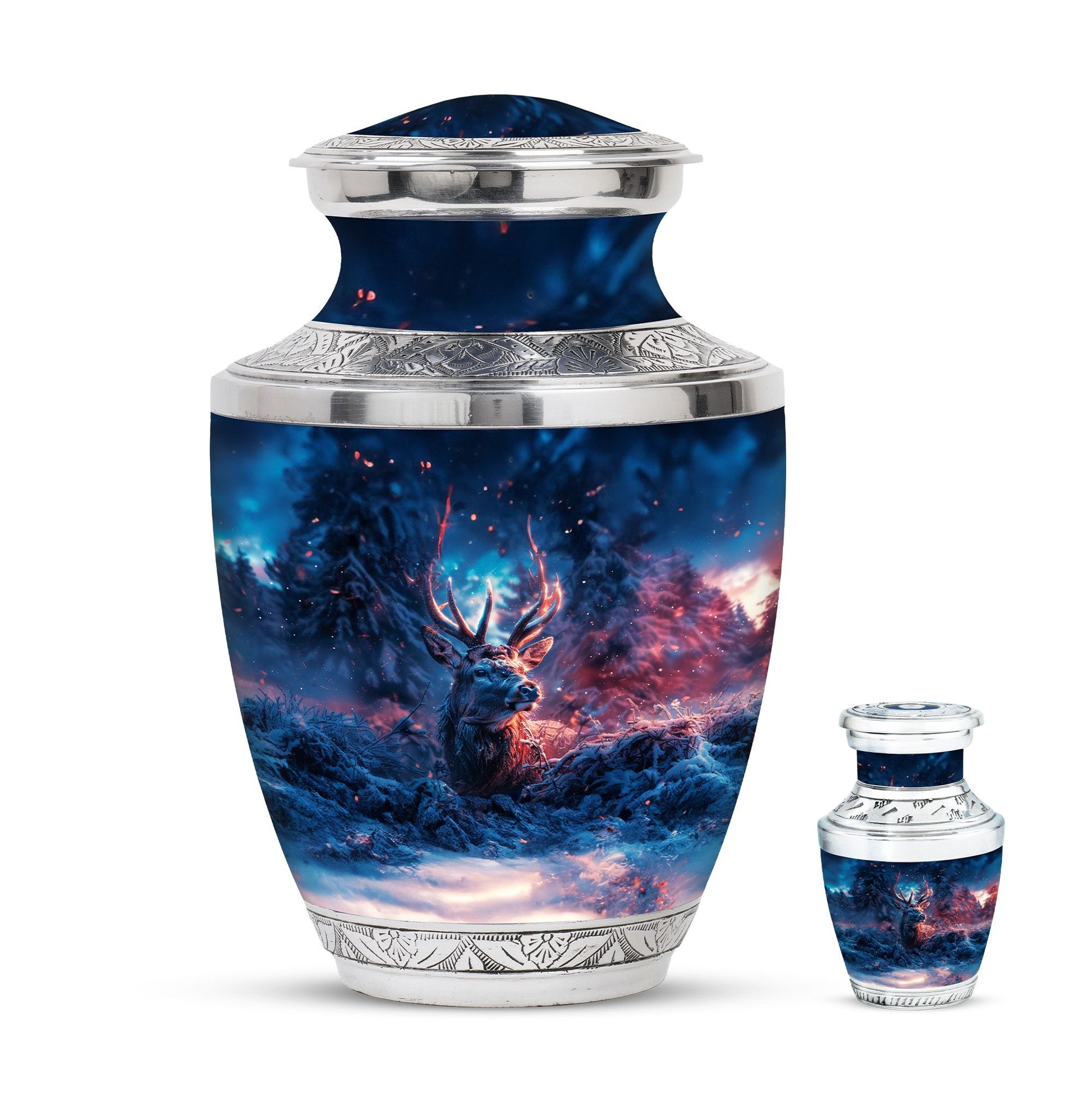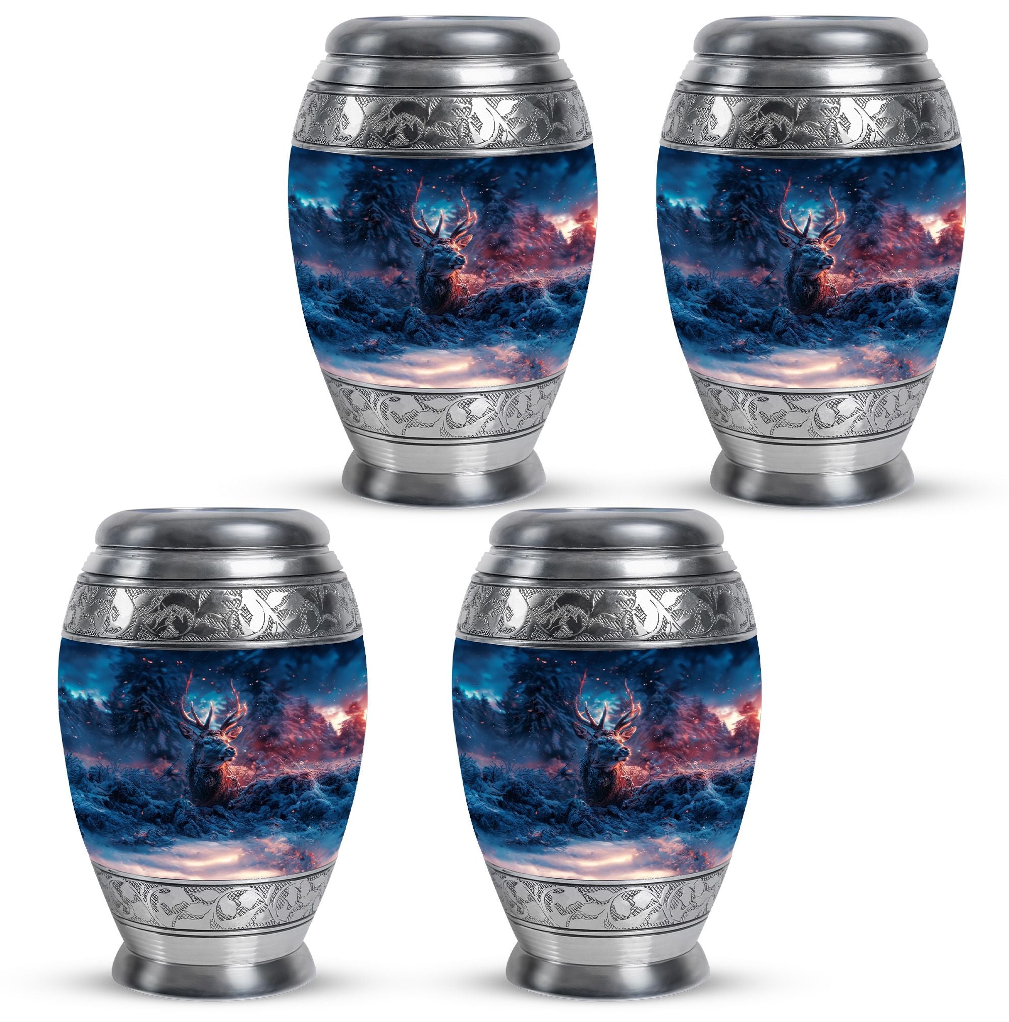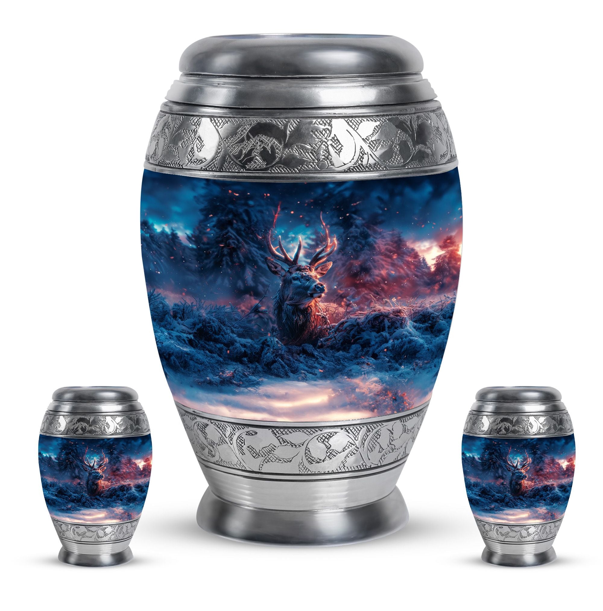 Made from high-quality aluminum, this adult male urn features a graceful elk motif representing strength, guidance, and eternal connection. Compact yet durable, it is ideal for families seeking urns for ashes adult male small keepsake or burial urns for human ashes adult male. With its secure screw-top lid, the urn ensures safe storage, making it suitable as cremation urns for human ashes adult female as well.
