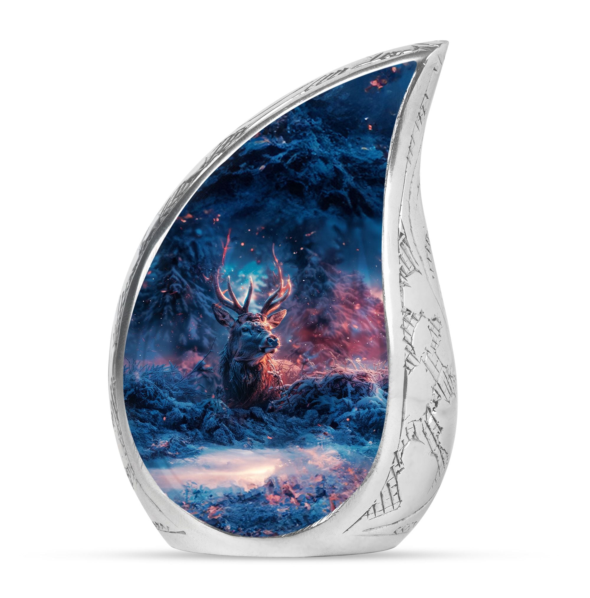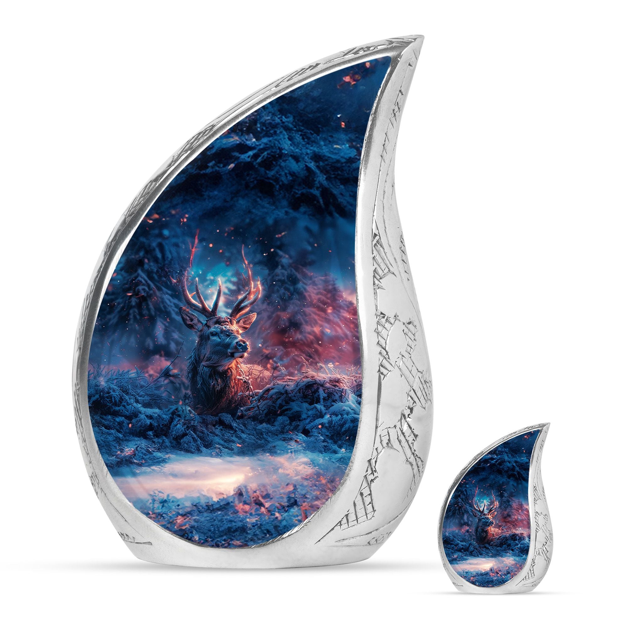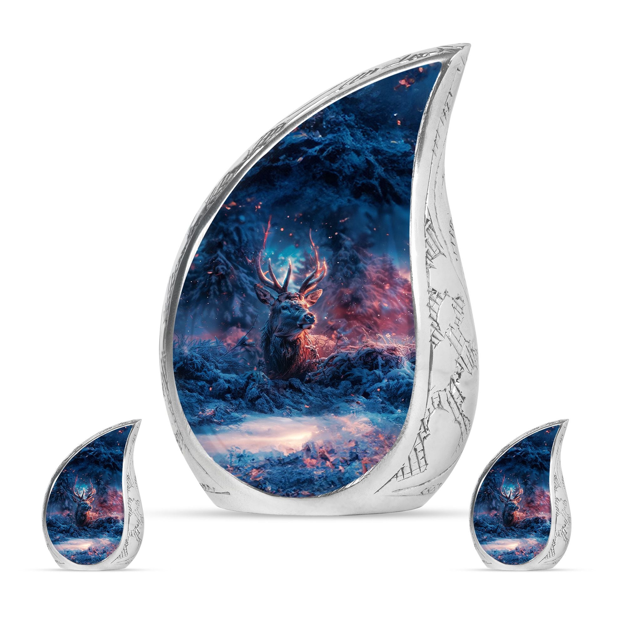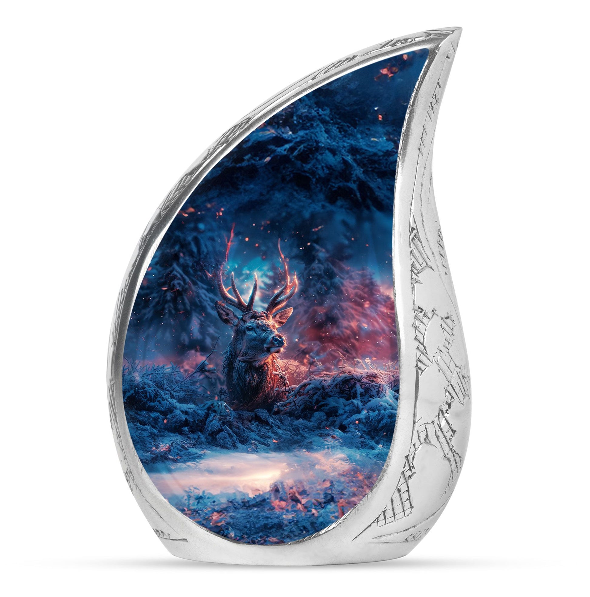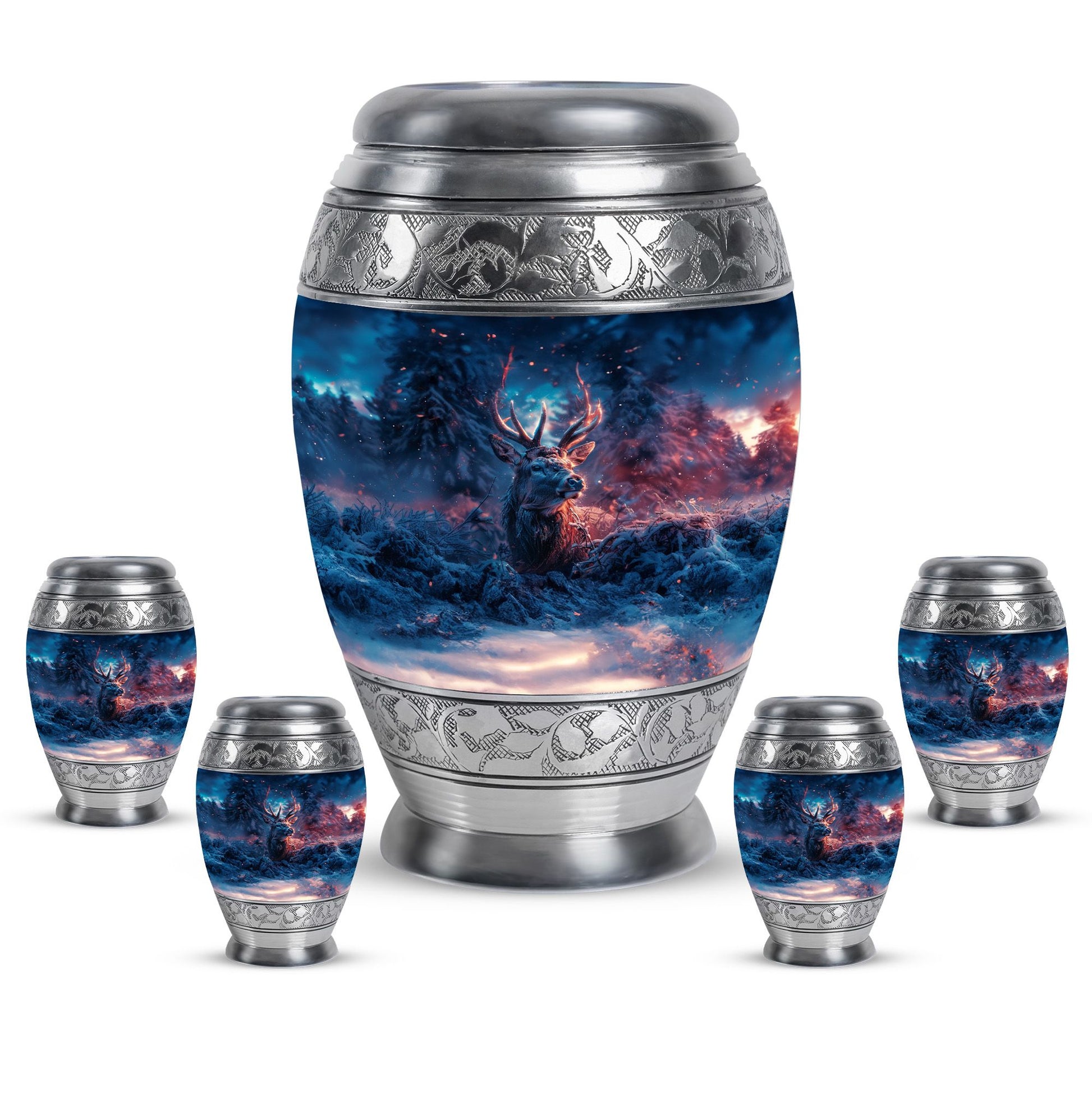 Made from high-quality aluminum, this adult male urn features a graceful elk motif representing strength, guidance, and eternal connection. Compact yet durable, it is ideal for families seeking urns for ashes adult male small keepsake or burial urns for human ashes adult male. With its secure screw-top lid, the urn ensures safe storage, making it suitable as cremation urns for human ashes adult female as well.