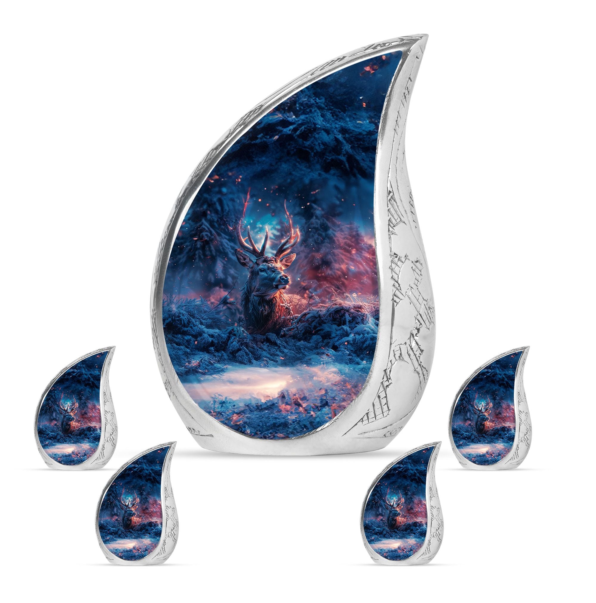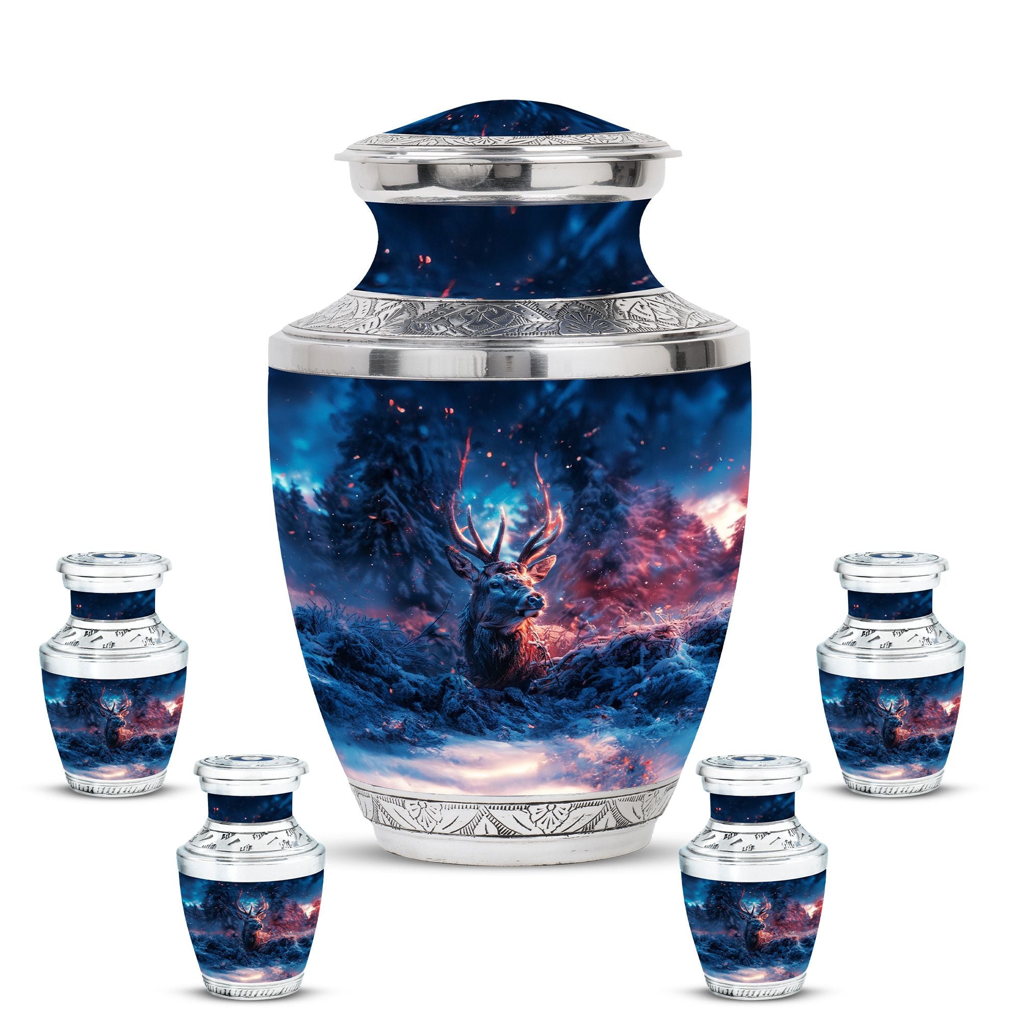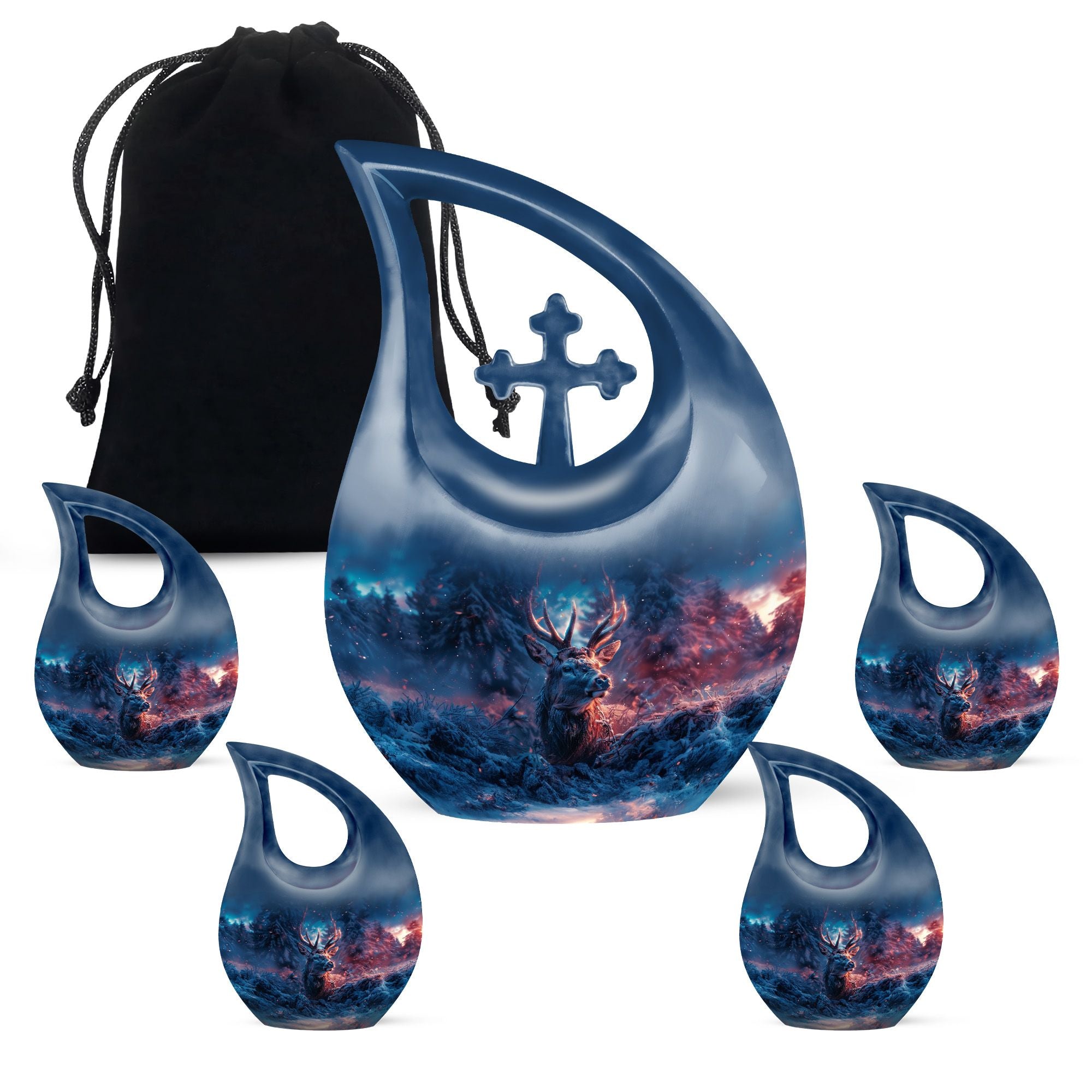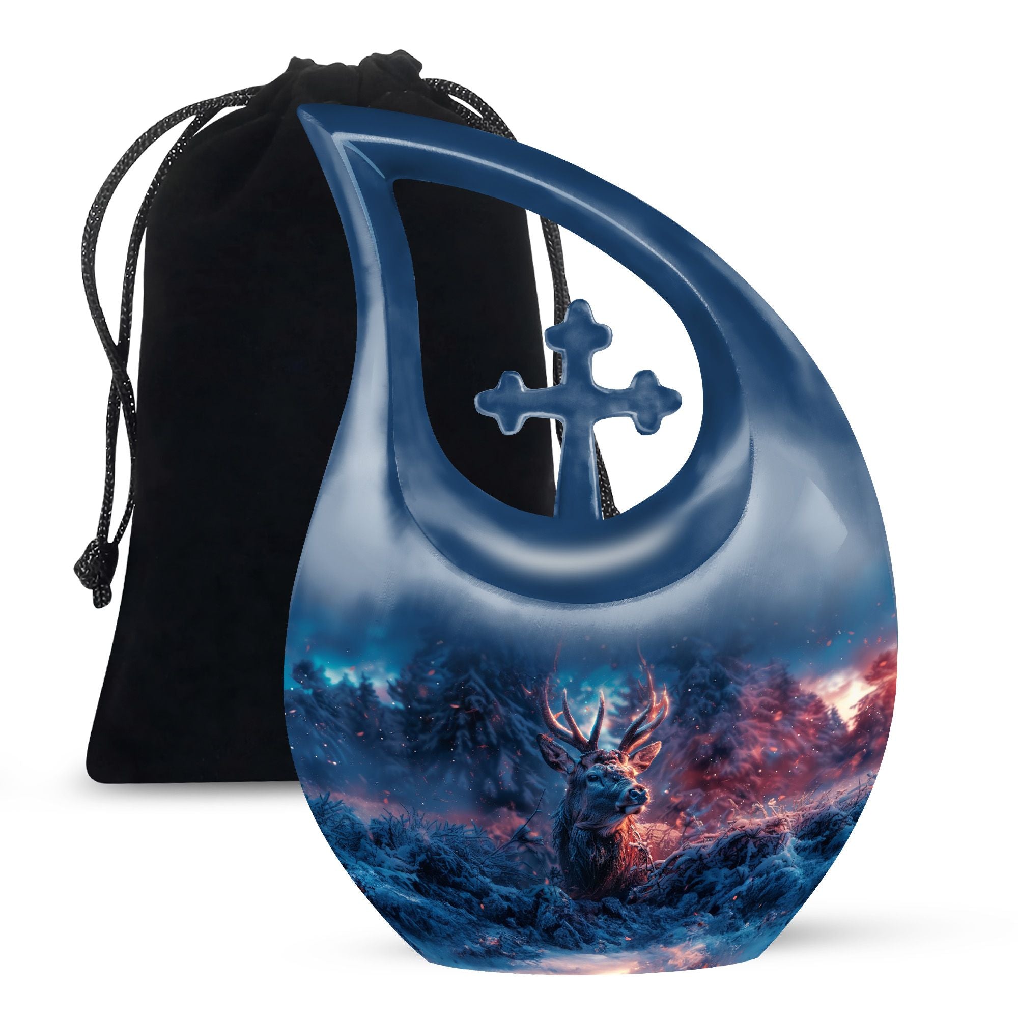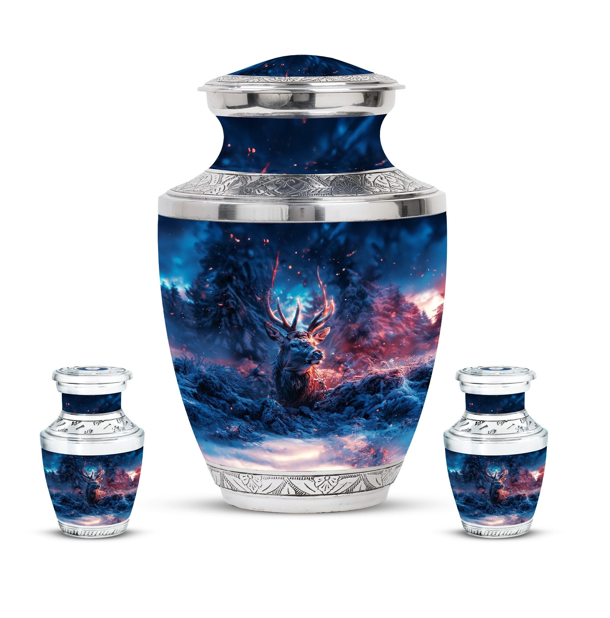 Made from high-quality aluminum, this adult male urn features a graceful elk motif representing strength, guidance, and eternal connection. Compact yet durable, it is ideal for families seeking urns for ashes adult male small keepsake or burial urns for human ashes adult male. With its secure screw-top lid, the urn ensures safe storage, making it suitable as cremation urns for human ashes adult female as well.