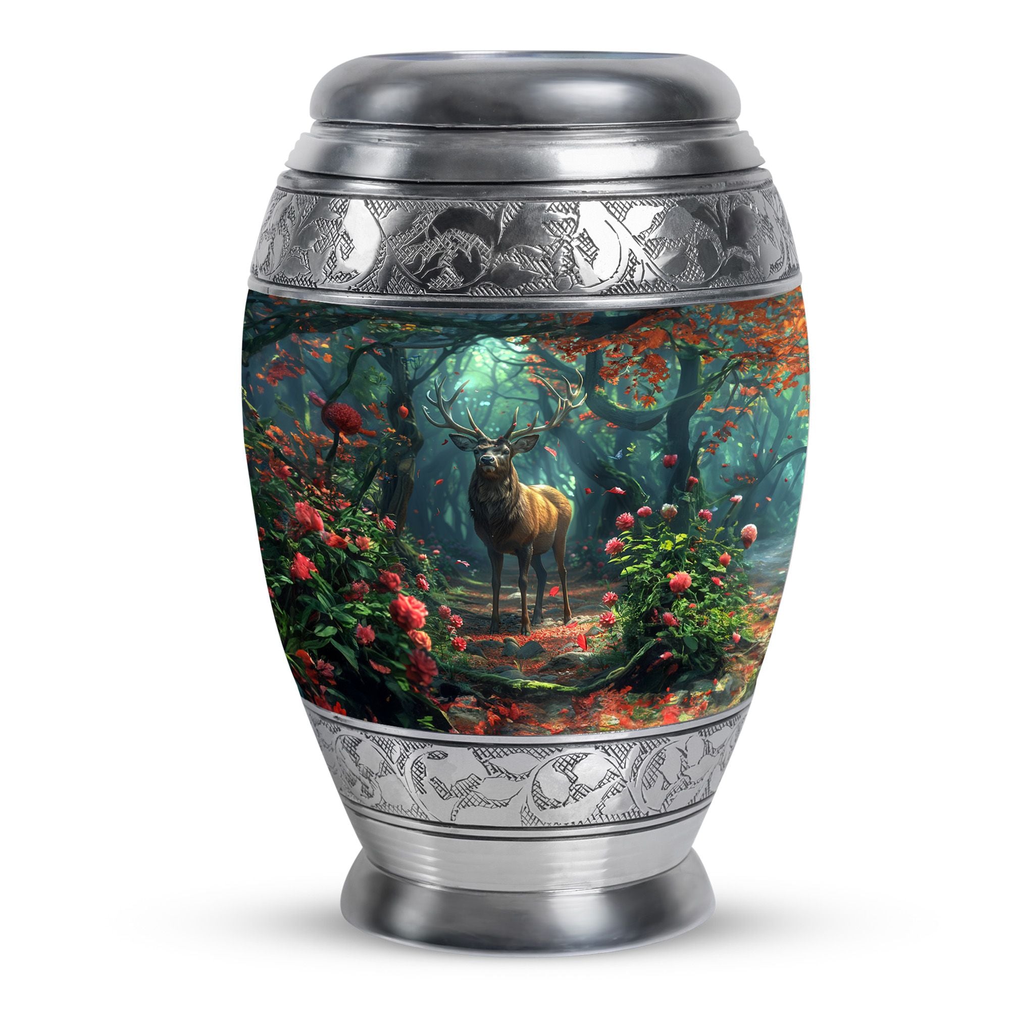 Expertly crafted from premium aluminum, this funeral adult urn features a noble elk motif symbolizing guidance, protection, and strength. Its secure screw-top lid ensures safe storage, while the elegant metallic finish adds timeless beauty to any memorial. Whether used as a large funeral urn ashes container or as small funeral urns in keepsake form, it offers durability and grace. Families looking for a funeral urn adult will appreciate its craftsmanship and symbolic value.