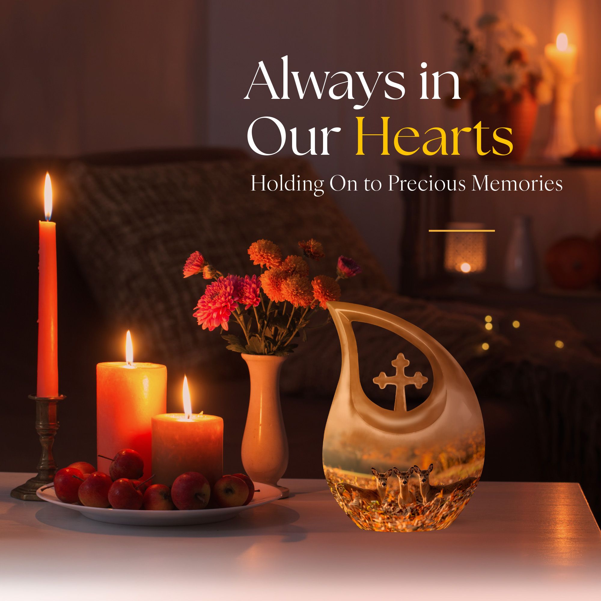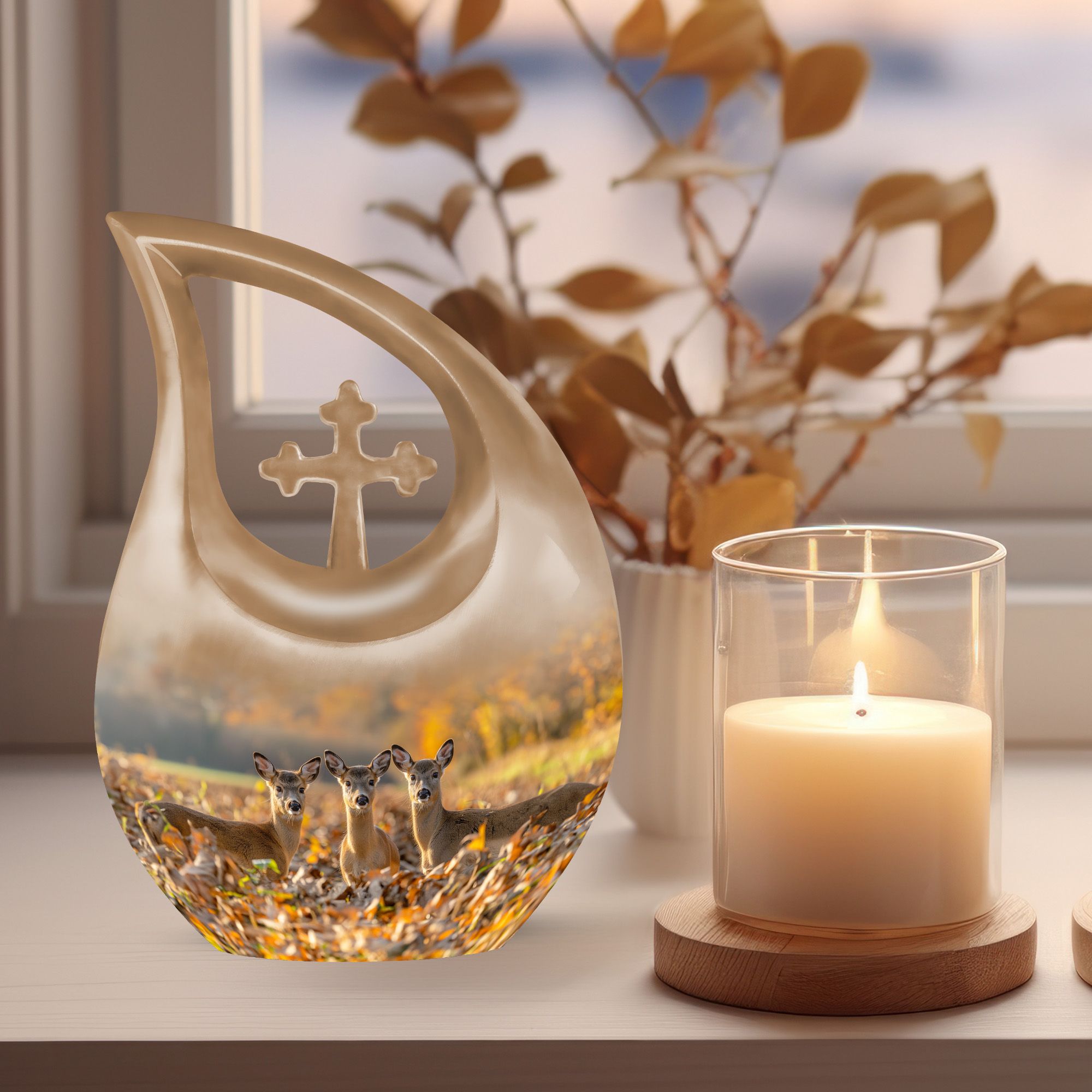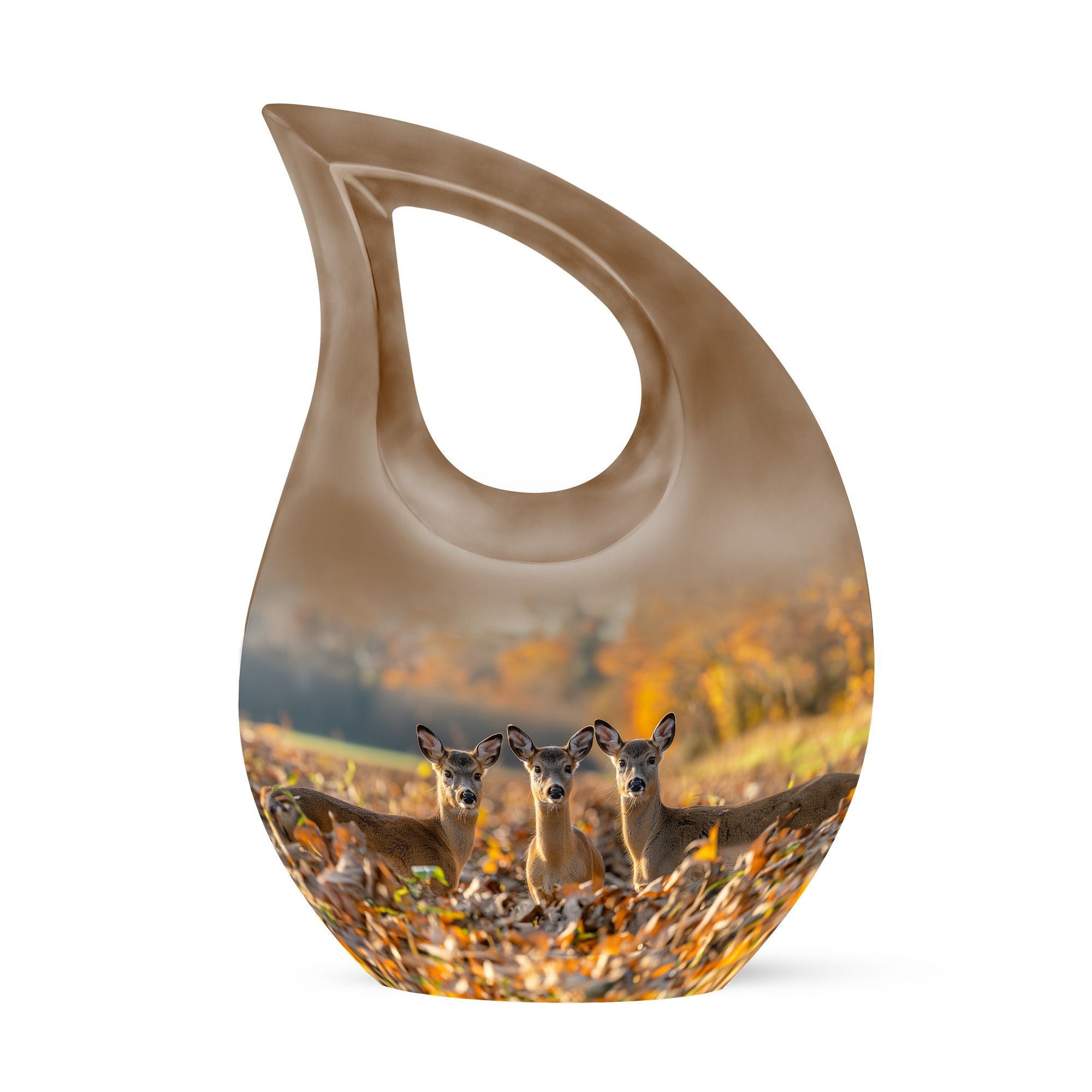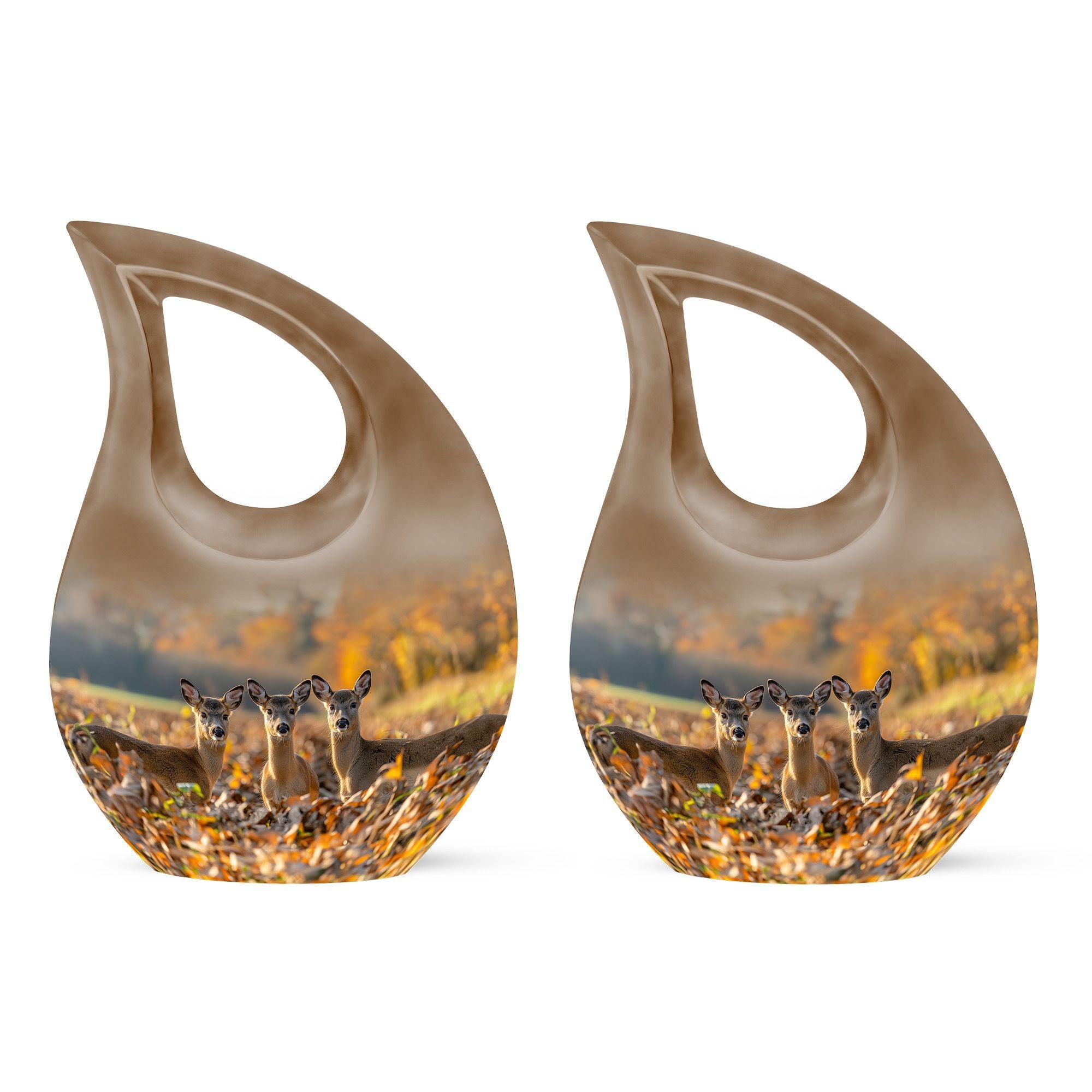 Honor your cherished one with this Deer Family Urn, a profound symbol of tranquility and togetherness. Crafted meticulously from sturdy aluminum, this Large Urn is designed to safely guard ashes with a capacity of 200 cubic inches. The intriguing Cross Drop theme, a unique tribute to the resilience of faith and family, bestows an unusual aesthetic that resonates with the heart. Furthermore, each urn comes with a velvet pouch, adding an extra layer of protection to the sacred contents. The urn stands as a full-size memorial, measuring 10 inches in height and weighing 3.3 pounds, offering a substantial and secure sanctuary. We also provide the provision to customize the urn by engraving names for an endearing, personal touch. The Deer Family Urn, an amalgamation of beauty and durability makes it one of the thoughtful memorial urns option for your precious loved ones. An item perfect for home memorial or burial, fitting seamlessly for any memorial ceremony.