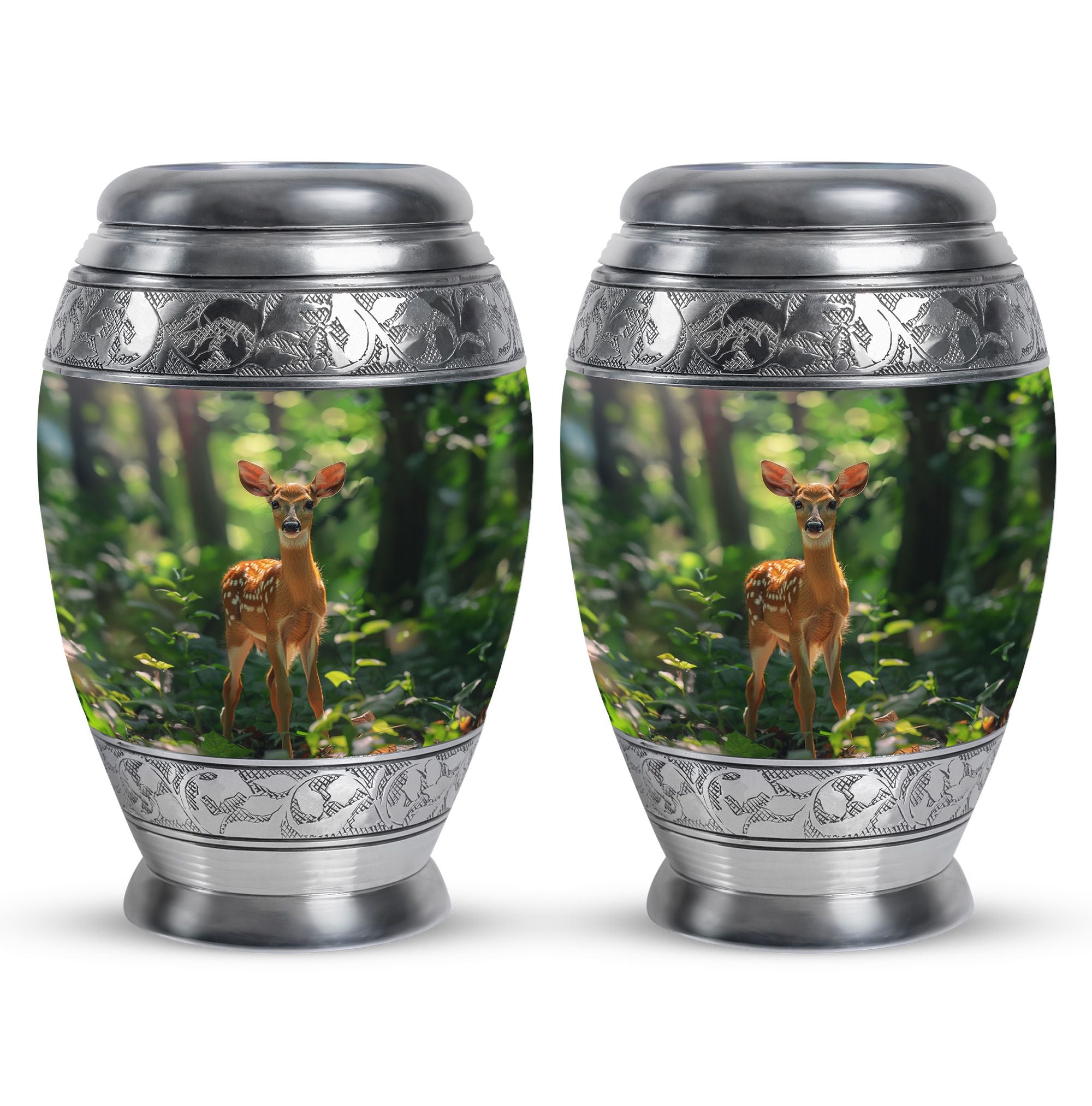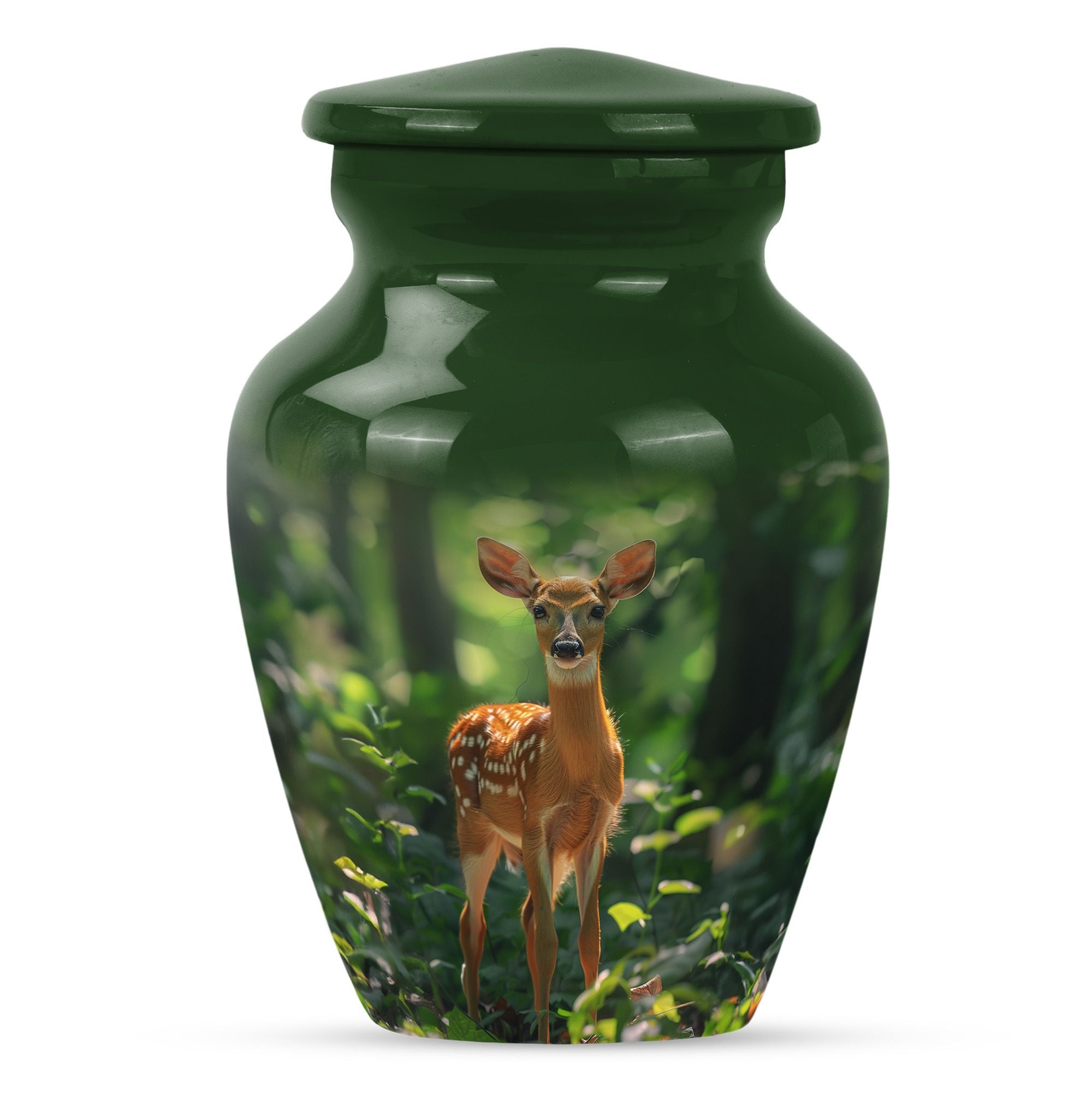 Crafted with care from durable aluminium, this urn blends artistry with security. The detailed deer motif set against a forest background makes it one of the most beautiful urns women and men can cherish. With its secure screw-top lid and elegant design, it ensures ashes remain protected while offering timeless beauty. As part of adult urns women collections or urn ashes men tributes, it serves with grace and dignity.