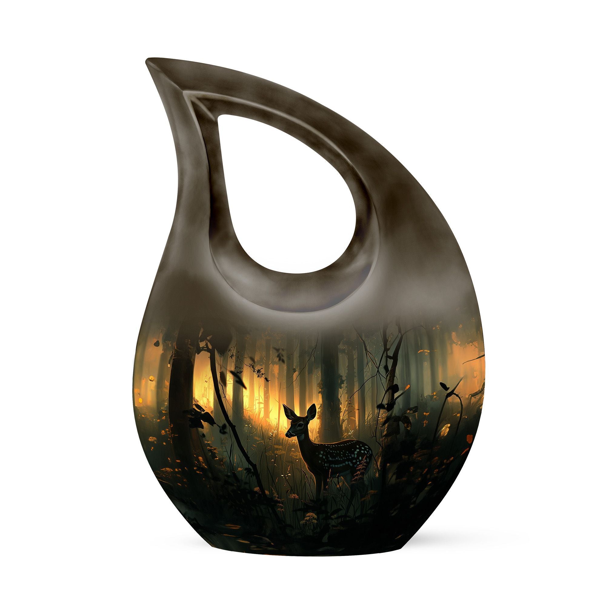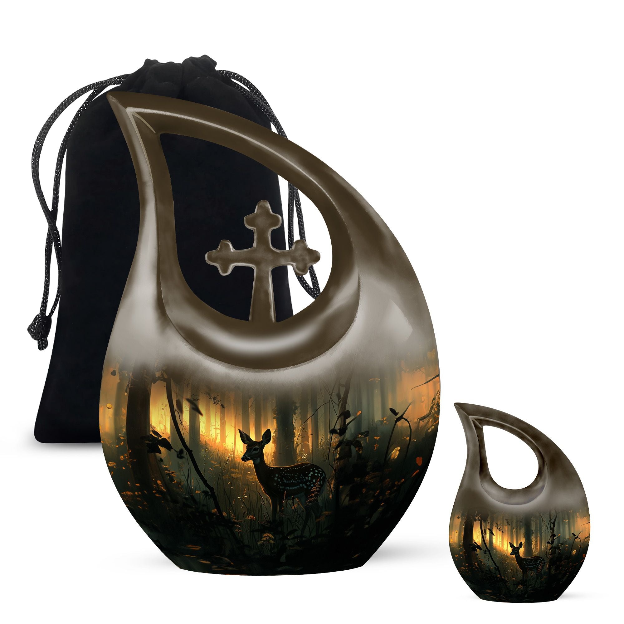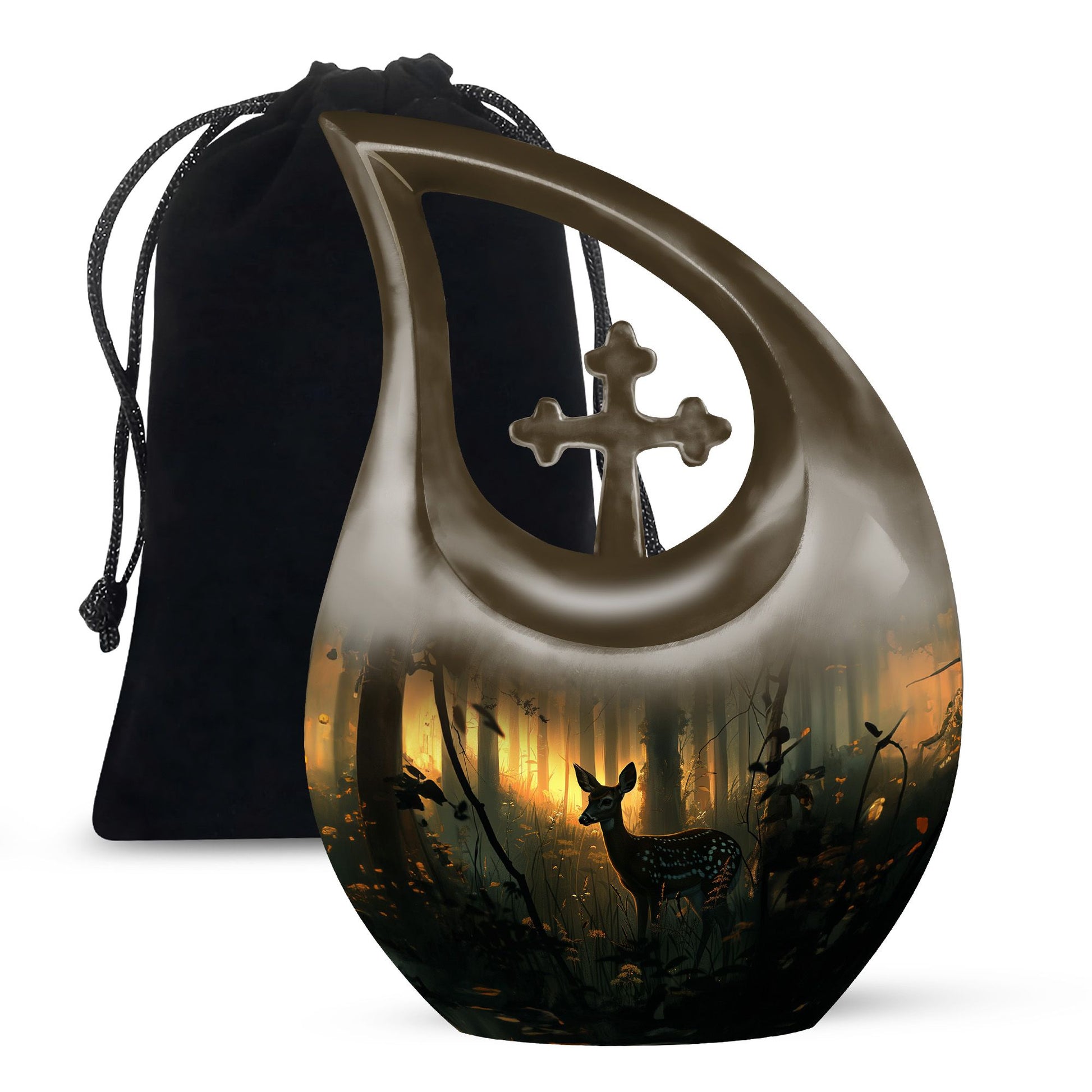 This Deer Urn, rightfully proclaimed as one of the best urns for ashes, is an exemplary product in our range of memorial urns for those seeking a unique and gentle tribute. Crafted from durable aluminium material, it boasts a rare Cross Drop layout that does not perceive its design, ensuring the urn reflects a design of your choice. It stands at 10 inches tall and weighs a sturdy 3.3 pounds. The generous capacity of this keepsake can hold up to 200 cubic inches of ashes within. The Deer Urn comes along with a complimentary velvet pouch for a discreet and secure containment of ashes. The unique feature of the Urn remains in the customization option it provides -You are free to engrave names for personalization. Notably, our urns make ideal choices for large urns, cremation containers, cremation boxes, burial urns and more. Remember your loved ones in the manner they deserve.