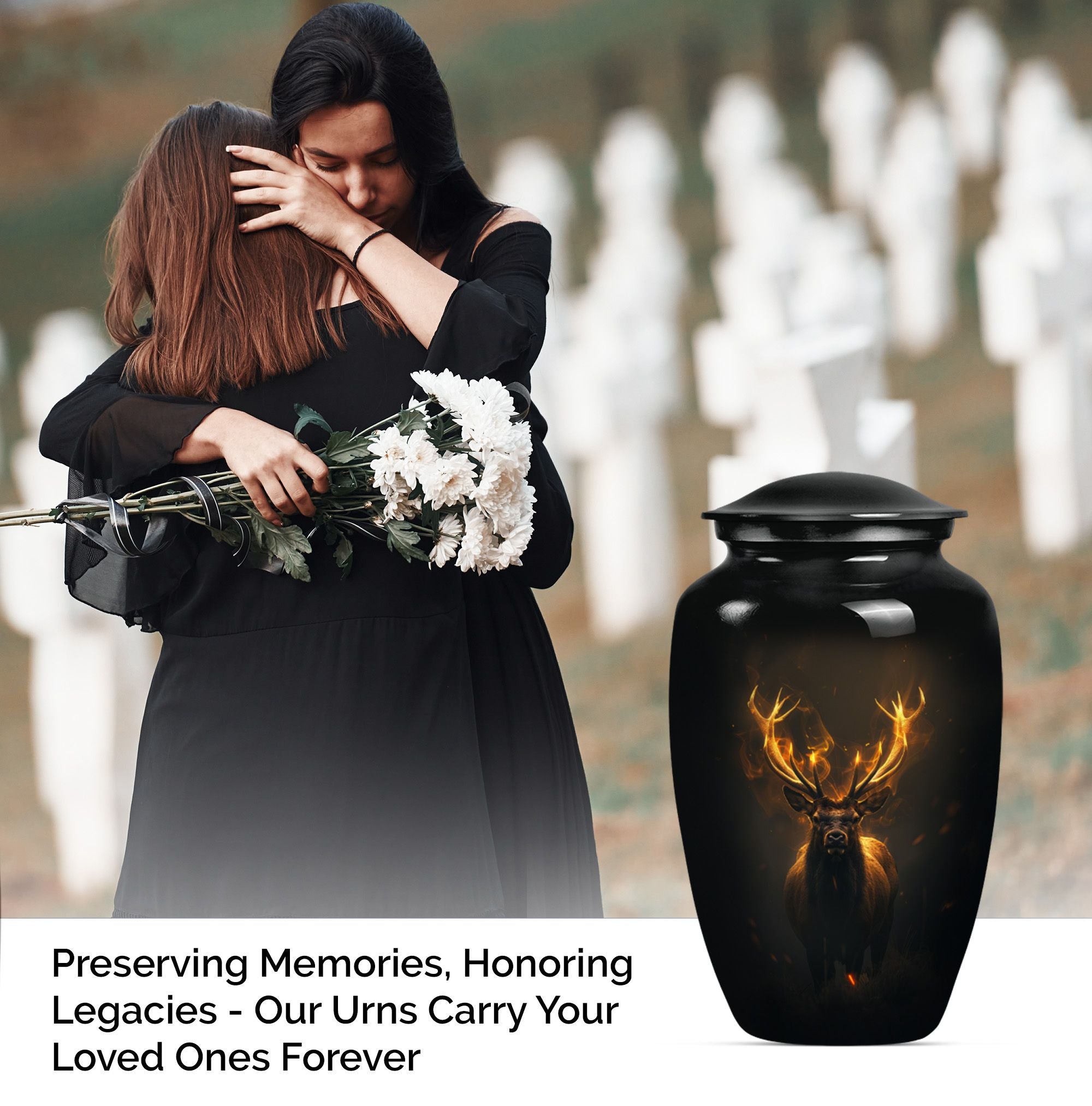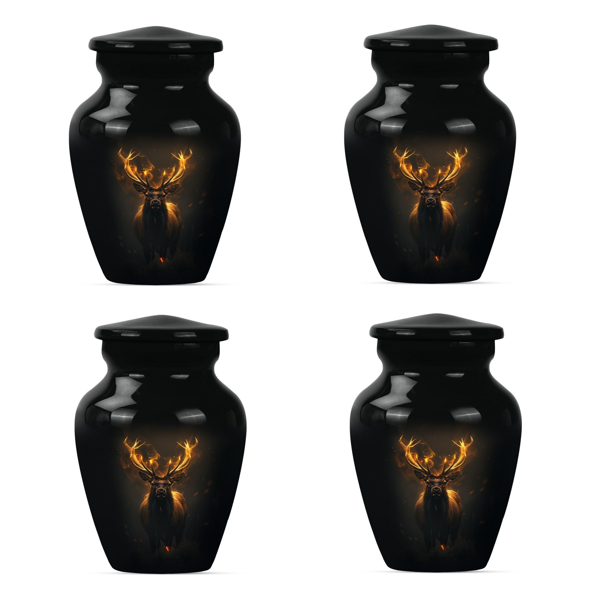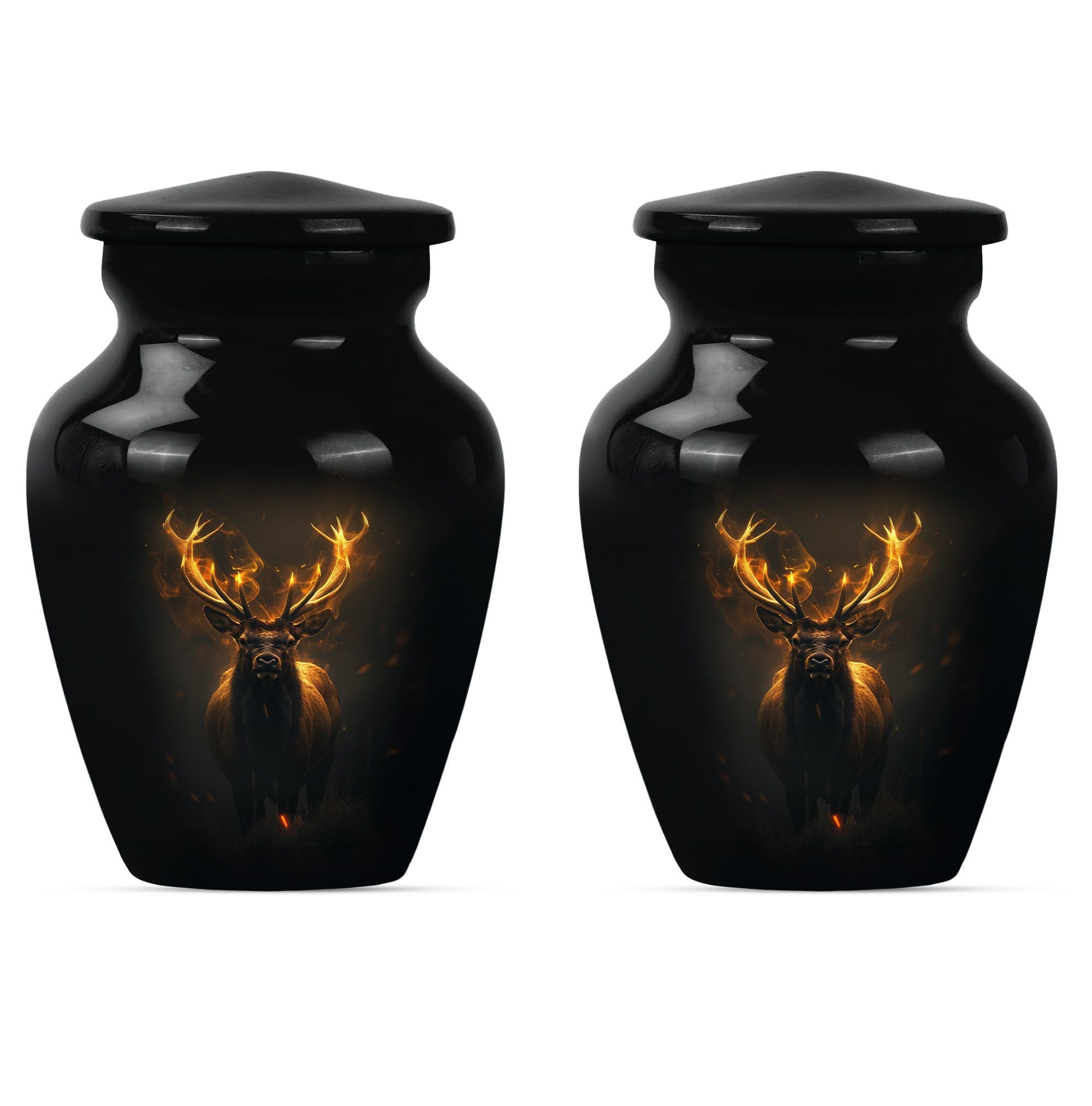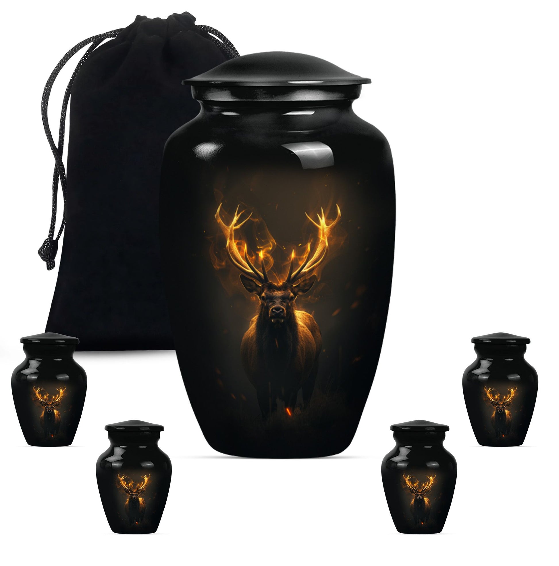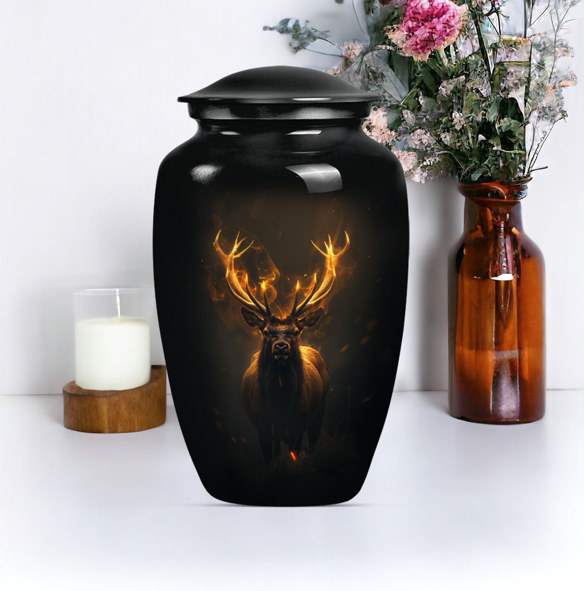 Immerse in the calming elegance of our Large Wolf Howling themed urn, an inviting memorial piece in your cherished parting rituals. Tailored from high-quality aluminium, this burial urn stands at a majestic 10-inch height; as it contains a generous capacity of 200 cubic inches. With a substantial weight of 3.3 pounds, this urn serves as a firm pedestal of treasured memories, resonating with the whisper of the wind's mournful cry, capturing the serene nature of a lone wolf's howling. Our package features an included velvet pouch designed to mindfully contain the precious ashes contained within. What differentiates our urn from the rest? Enjoy our customization features, add a personal touch, immortalize your beloved's name through our engraving service. This urn gracefully encapsulates key notions such as 'deer urn', 'burial urn for ashes adult', 'memorial adult urns', and 'cremation urns for dad'; embodying the gentle yet firm embrace of a lasting goodbye.