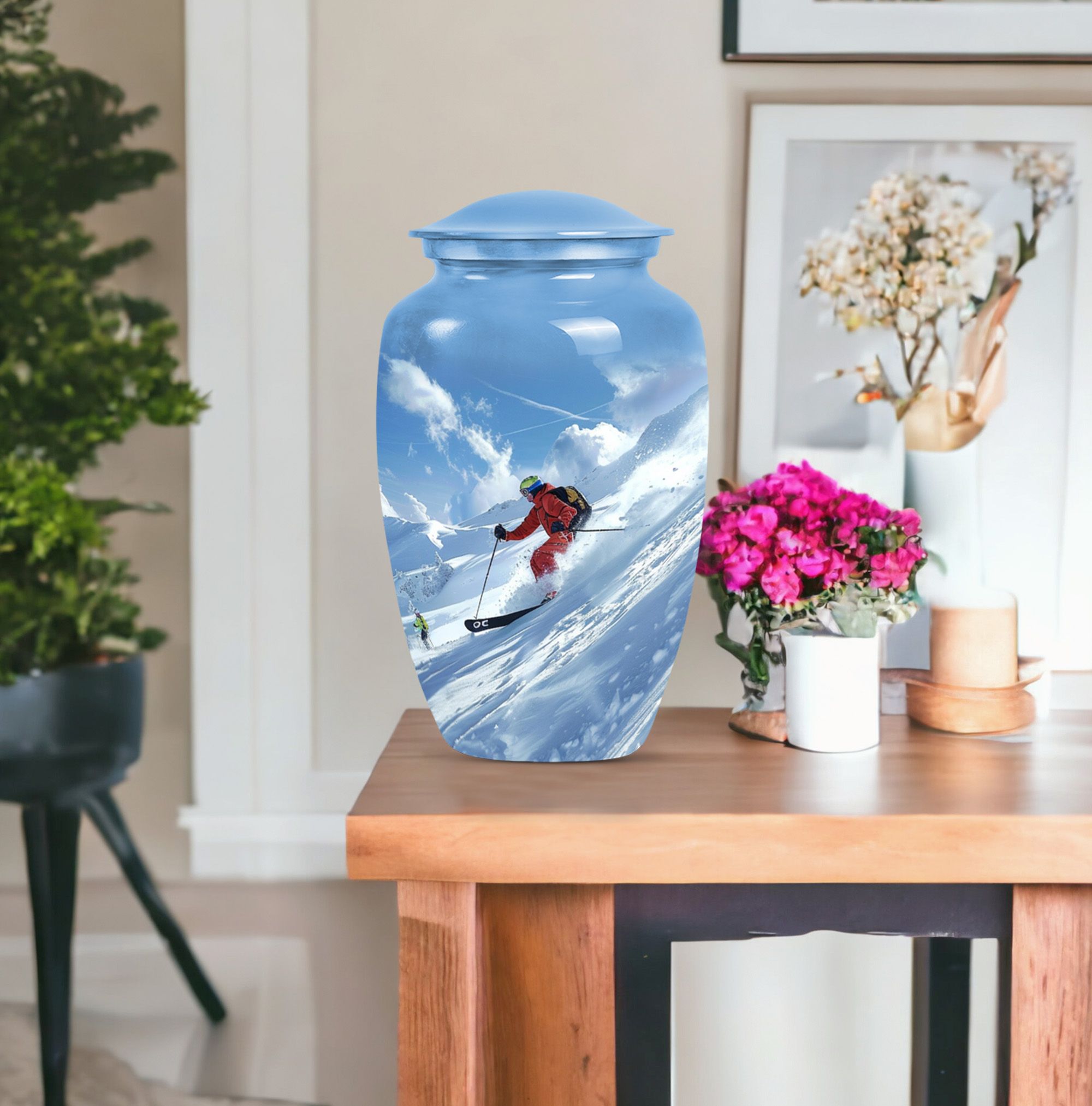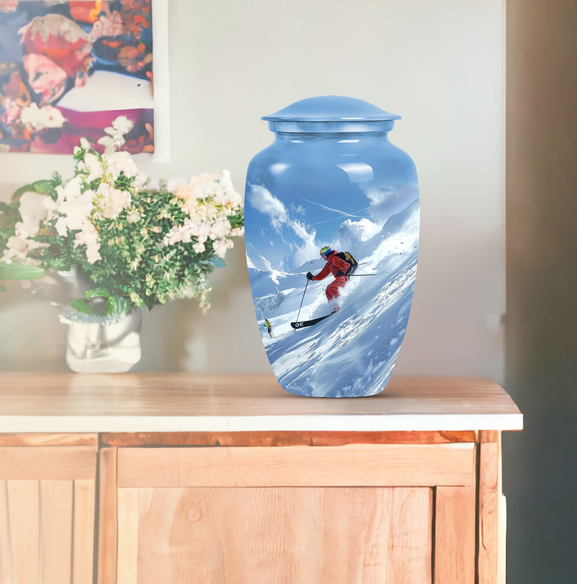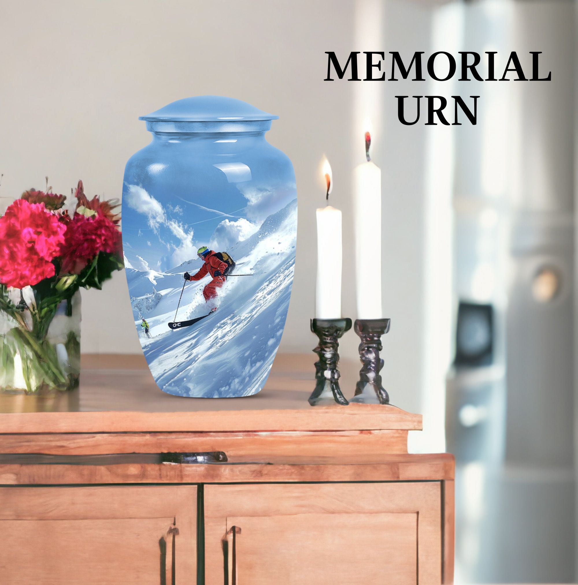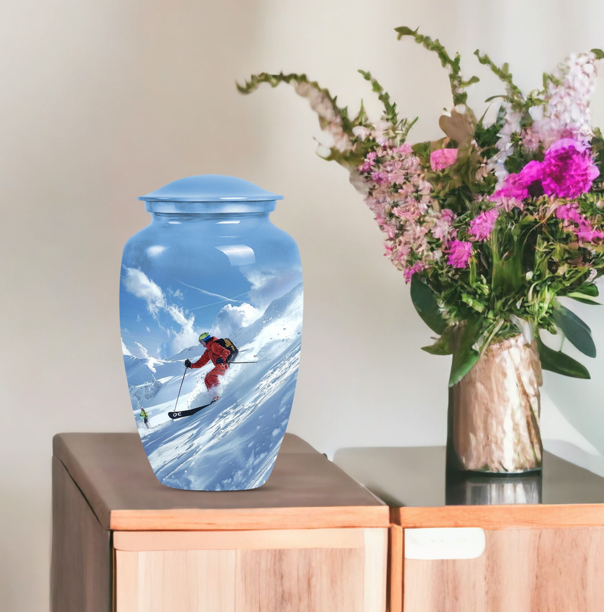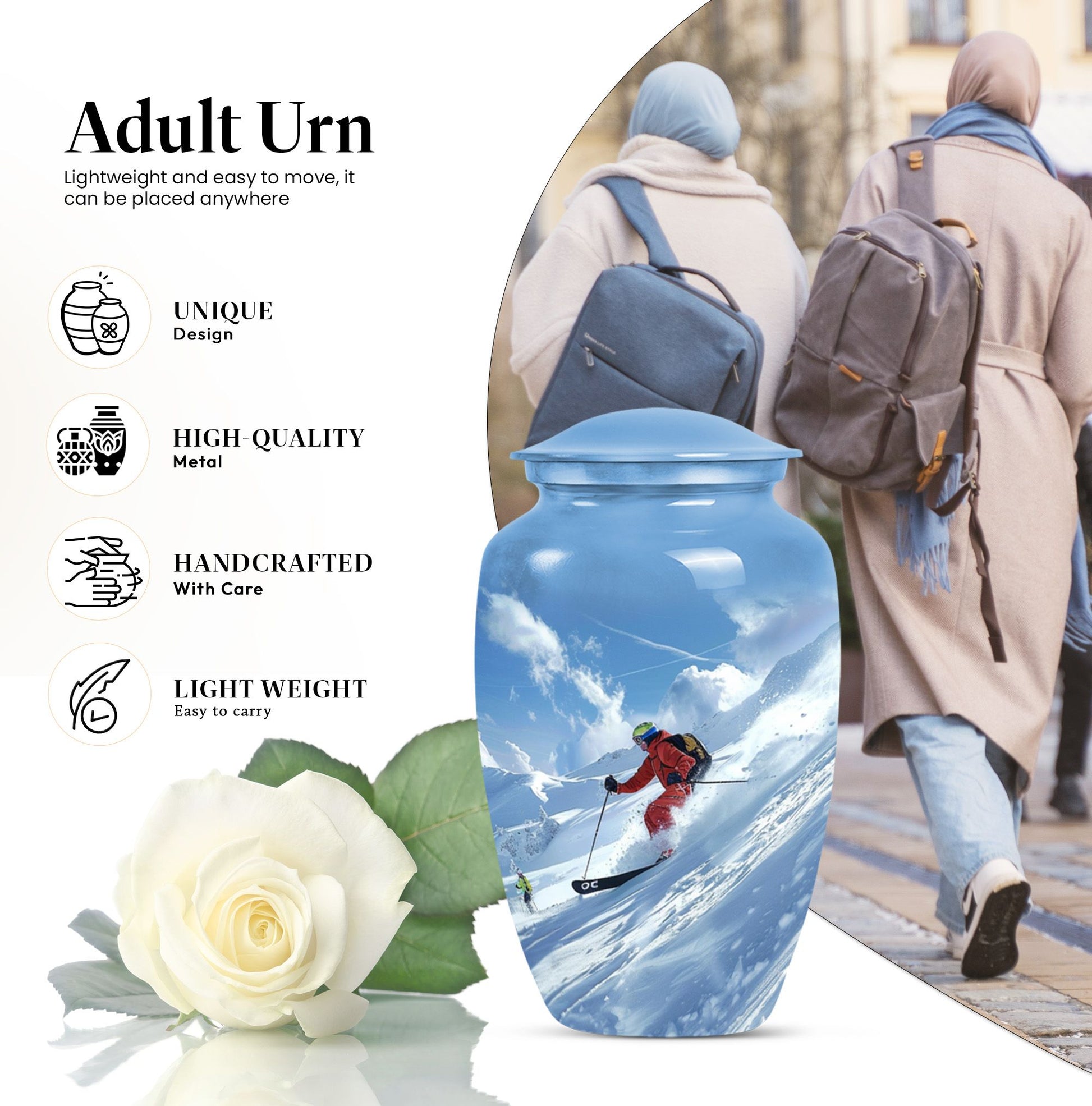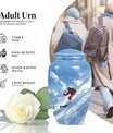Immerse in a powerful wave of remembrance with the poignant Deer Family Memorial Urn. Crafted from durable aluminium, this large urn offers longevity and visual appeal. The urn is elegantly contoured standing at 10 inches in height and weighing 3.3 pounds. It delivers a generous capacity of 200 cubic inches, ensuring ample room for adult ashes. Enhanced with the embodiment of a gramophone theme, this urn resonates with the everlasting rhythm of cherished memories. The urn subtly incorporates a classic urn style with an advanced customization feature - allowing for an engraved personal touch. As part of the package, a velvet pouch lends a protective, luxurious haven for containment of ashes. These memorial medium urns for ashes are synonymous with love, respect and a lasting tribute. Easily searchable terms like 'Burial urns for human ashes adult' and 'cremation urns for burial' are associated with this distinctive urn, rendering it a top pick in Memorial Ceremony Supplies for seniors and adults alike.