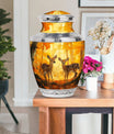 Crafted from durable aluminum, this large cremation urn blends elegance with strength. The smooth finish and detailed artwork make it ideal for display, while the secure screw-top lid ensures ashes are preserved with care. With its generous 200 cubic inch capacity, this large funeral urn is perfectly suited for families in need of cremation urn adult large, urn large adult male, or cremation urns for large human ashes adult. Its artistry makes it as beautiful as it is functional.