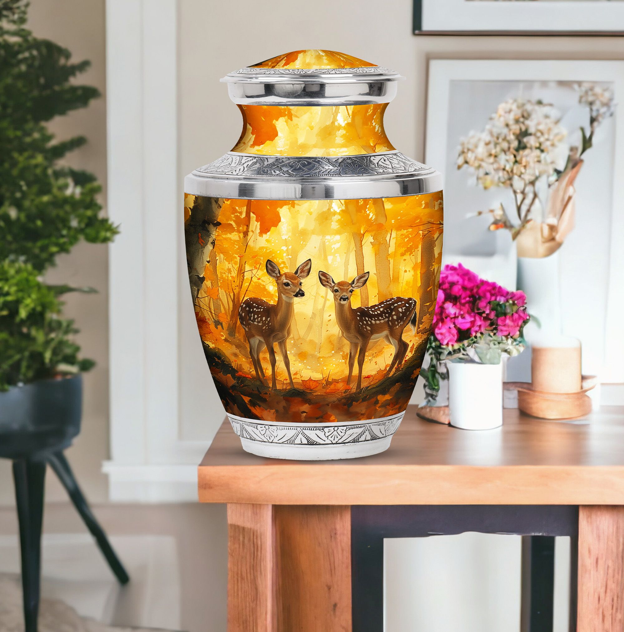 The deer family illustration brings a message of peace and eternal love, offering comfort to grieving hearts. More than just a vessel, this urn is a beautiful symbol of remembrance and a lasting memorial to someone deeply cherished.