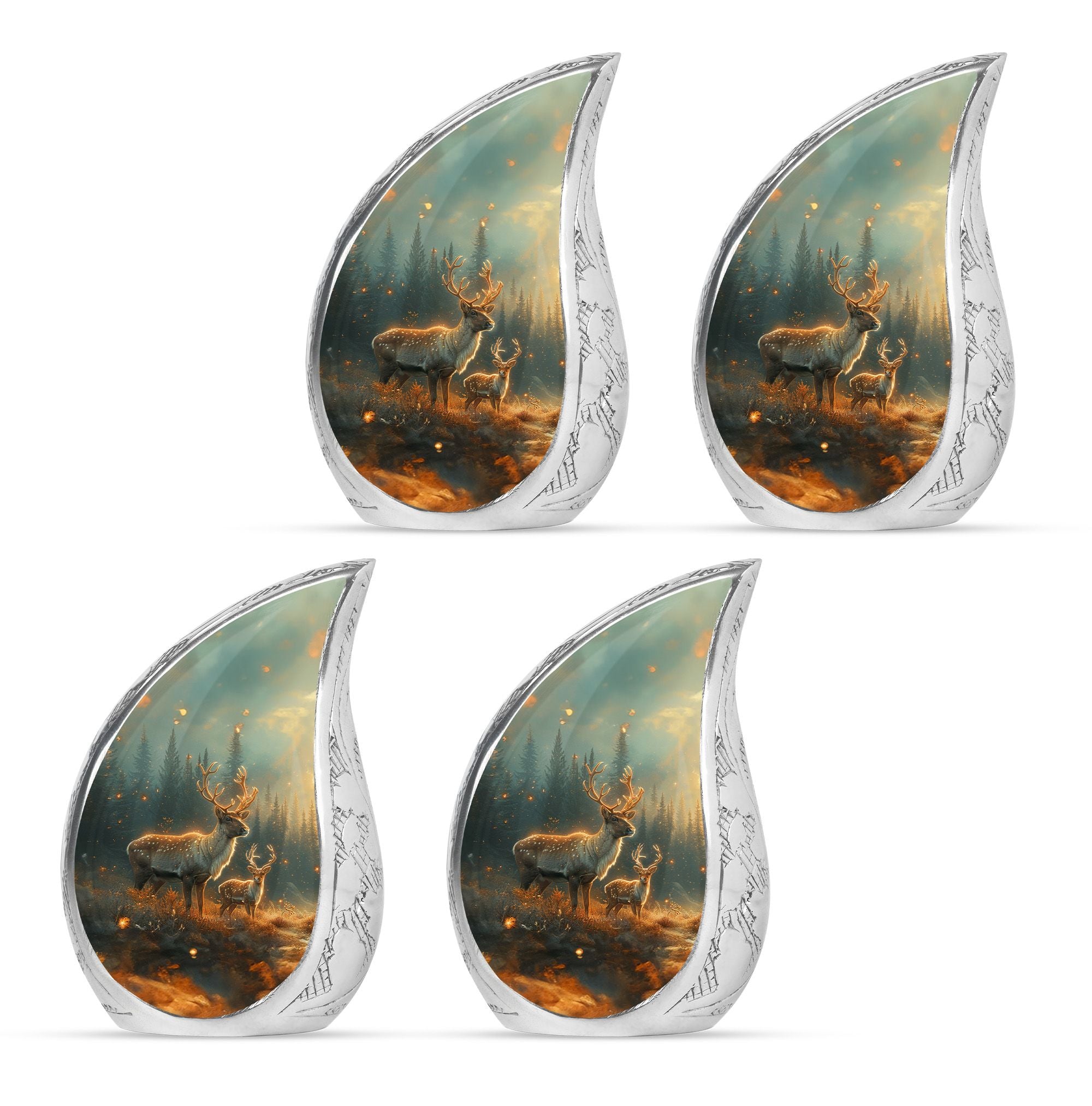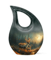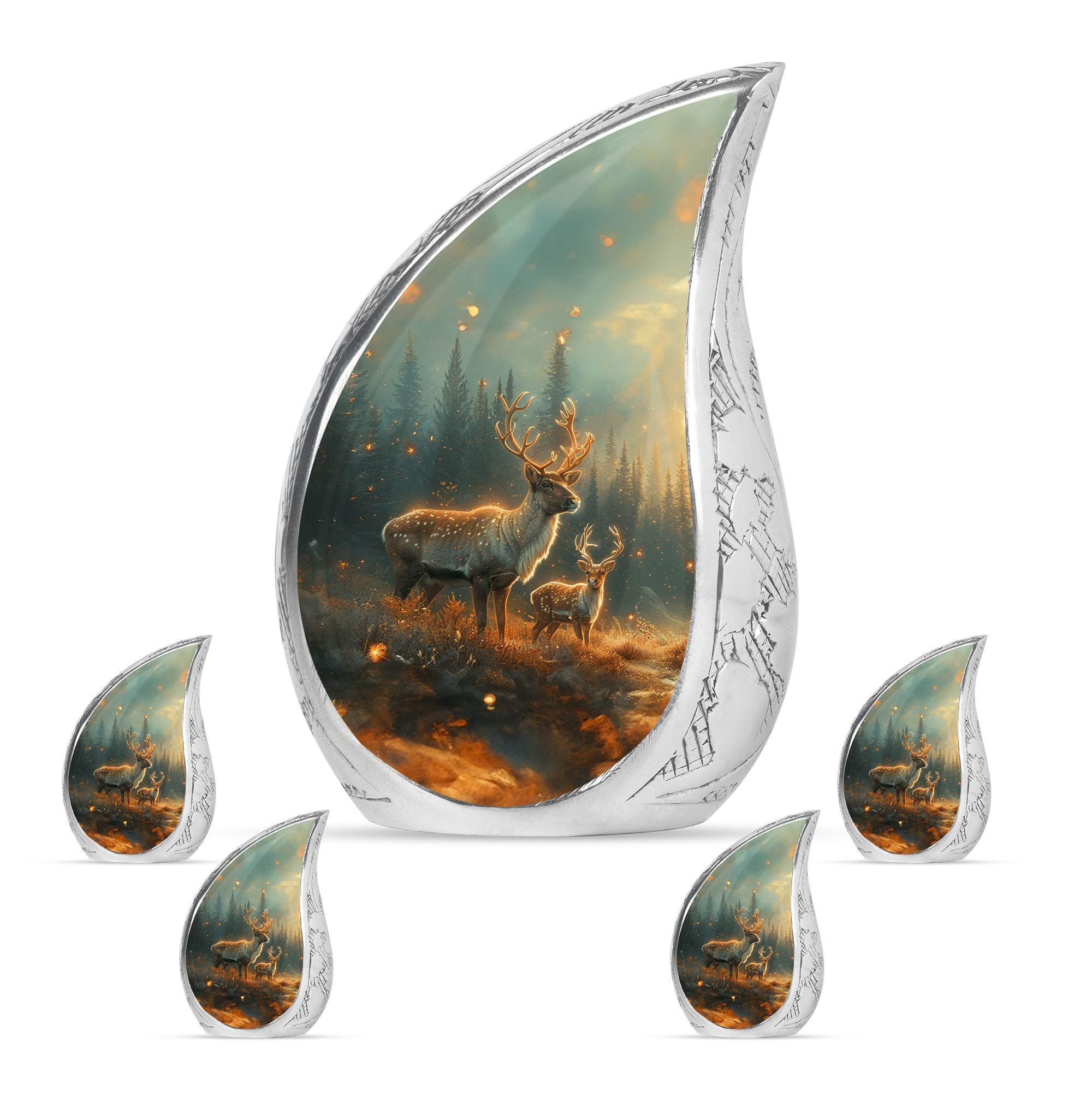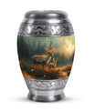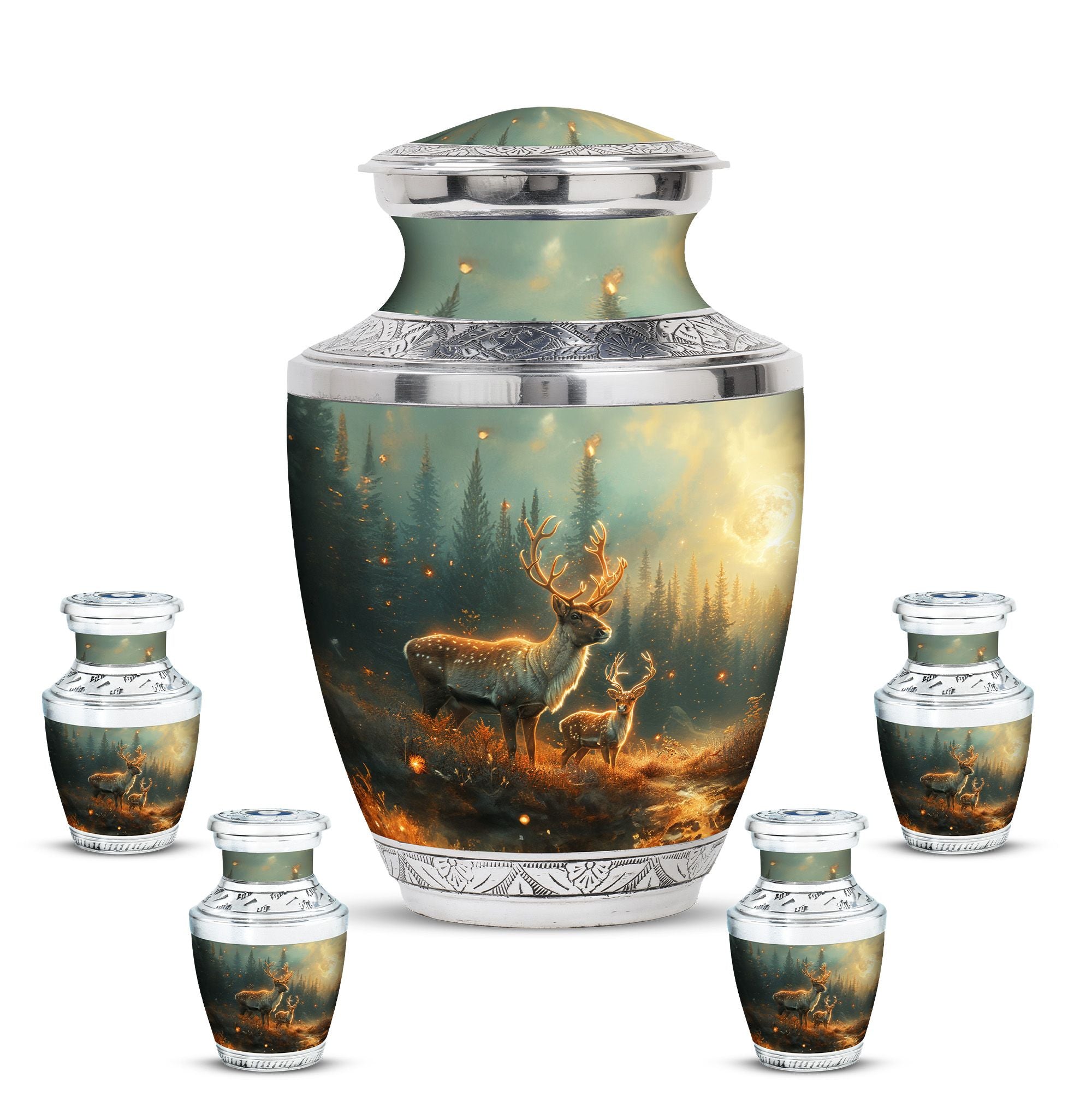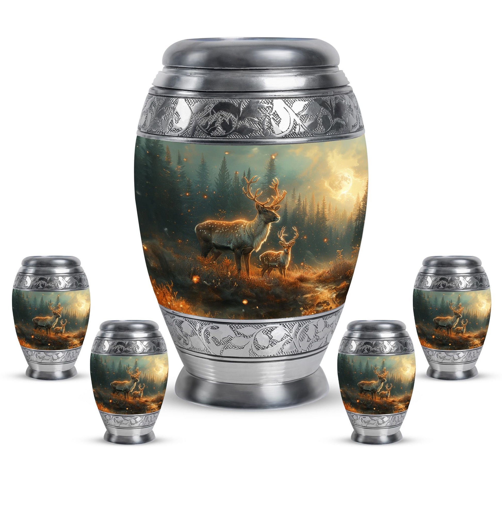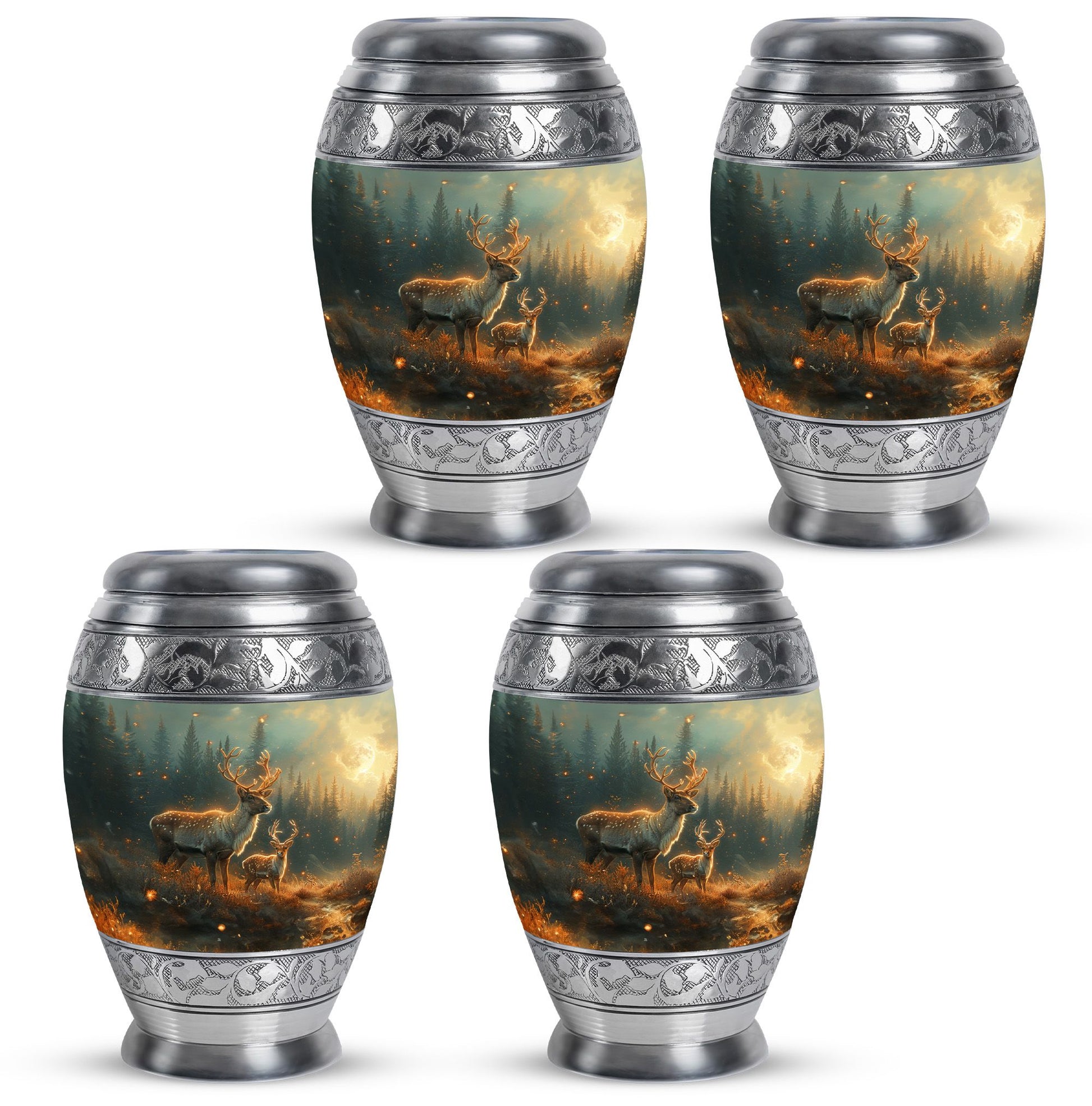 Crafted from durable aluminum, this large cremation urn features a detailed deer family motif, representing unity, love, and eternal protection. The elegant finish makes it a beautiful display piece while also being suitable as a burial urn. With its generous 200 cubic inch capacity, it is perfectly suited for urns for human ashes large adult, large urn for ashes for women, or adult large urns. A secure screw-top lid ensures the ashes are preserved safely. Personalization options make this large human ashes urn even more meaningful, allowing families to honor their loved one in a unique way.