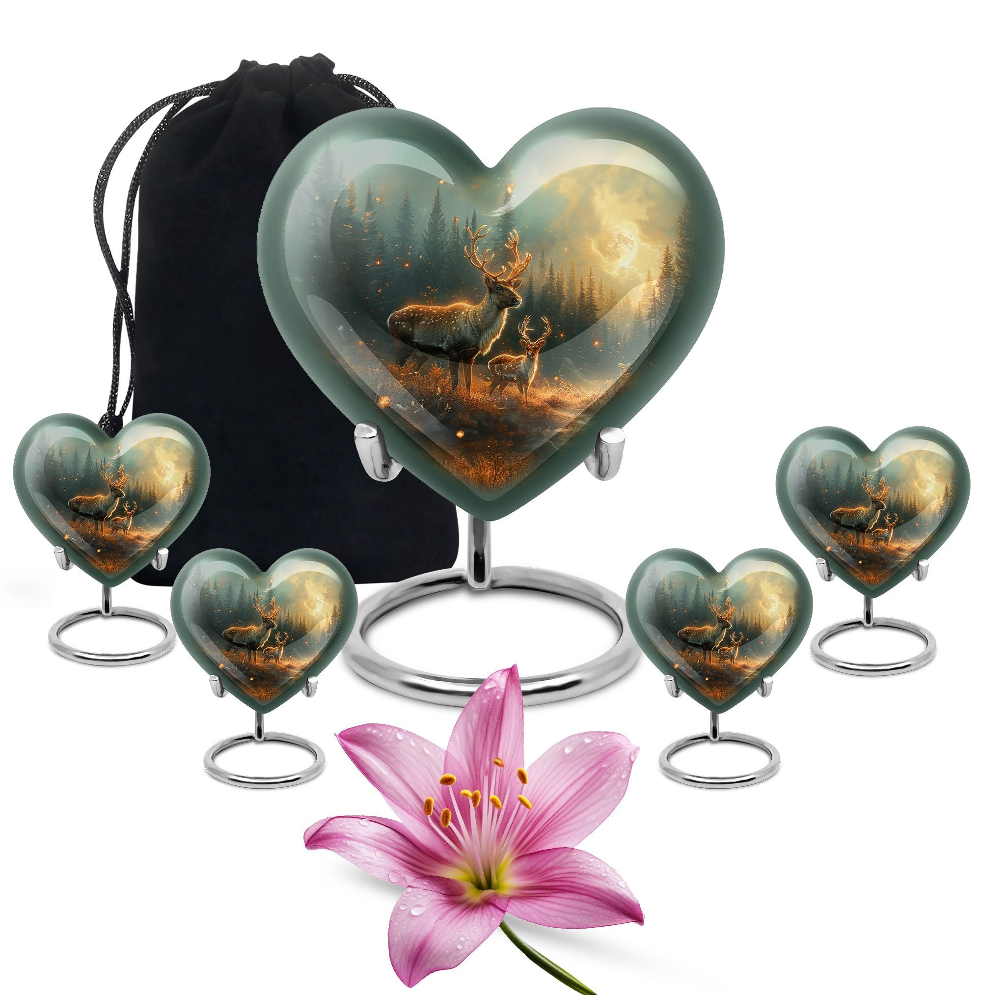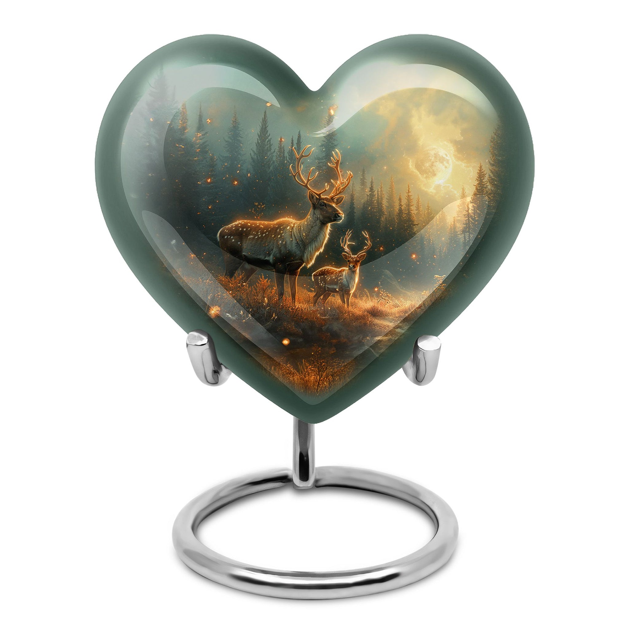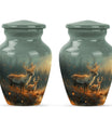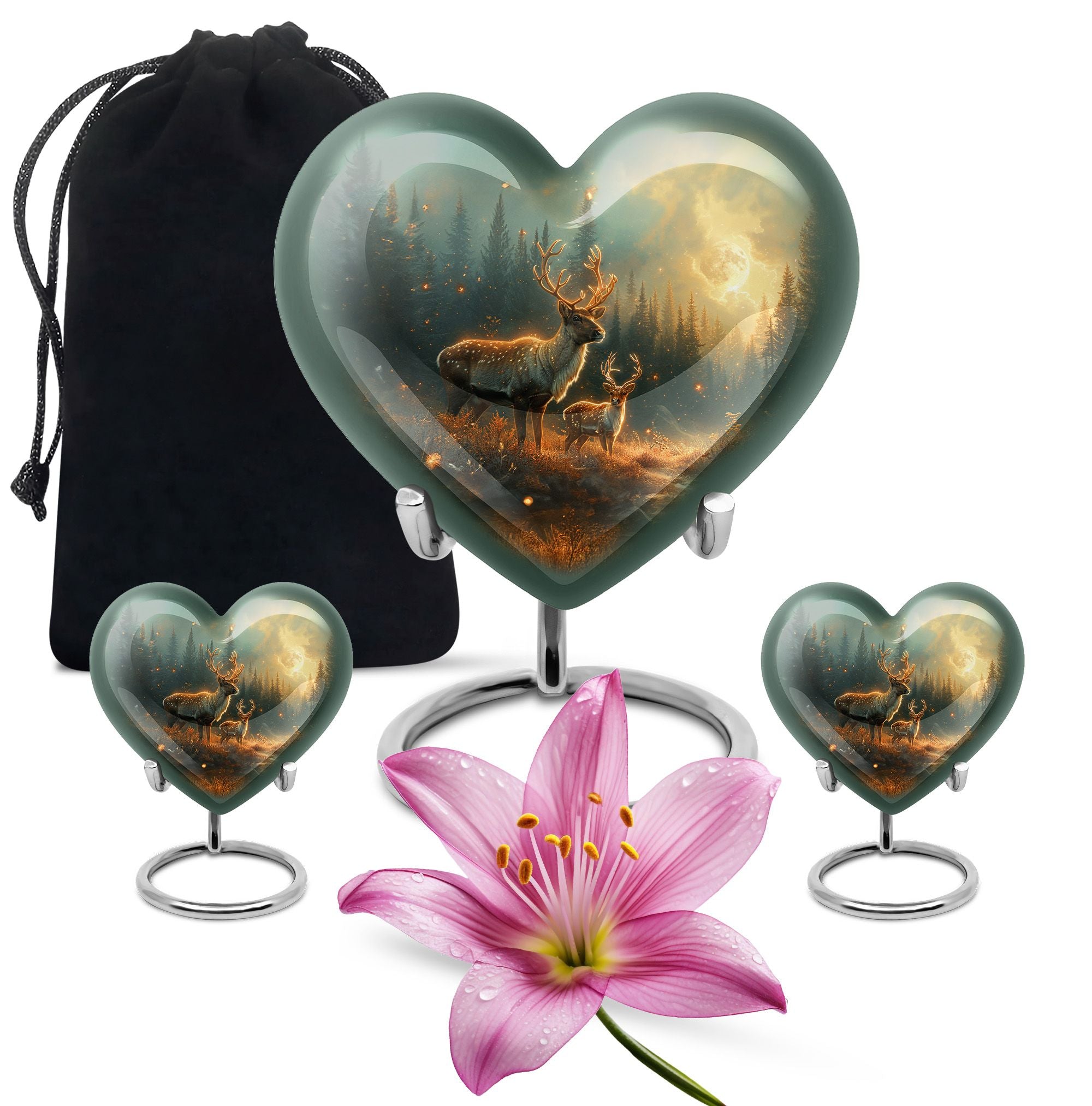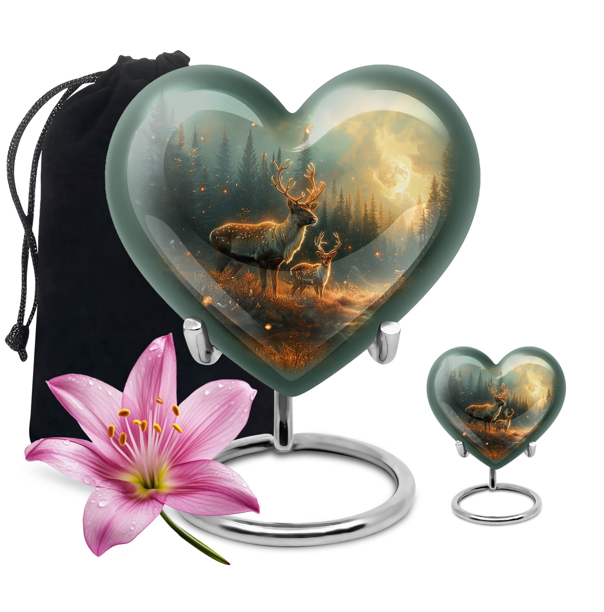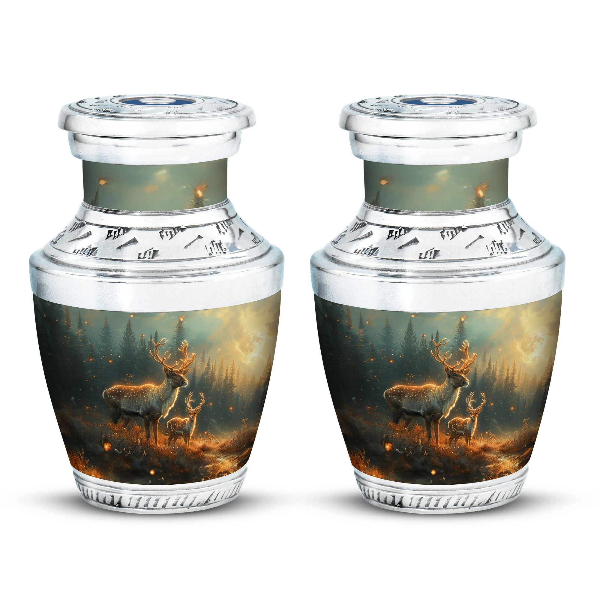 Crafted from durable aluminum, this large cremation urn features a detailed deer family motif, representing unity, love, and eternal protection. The elegant finish makes it a beautiful display piece while also being suitable as a burial urn. With its generous 200 cubic inch capacity, it is perfectly suited for urns for human ashes large adult, large urn for ashes for women, or adult large urns. A secure screw-top lid ensures the ashes are preserved safely. Personalization options make this large human ashes urn even more meaningful, allowing families to honor their loved one in a unique way.