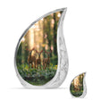 Made from durable aluminum, this large adult urn features a beautifully detailed deer family motif, symbolizing unity, protection, and eternal love. Its smooth finish and timeless design make it ideal for display or burial. With a generous 200 cubic inch capacity, it serves as an urn large adult or urn human ashes large, offering families peace of mind. A secure screw-top lid ensures ashes remain safe, while its artistry makes it a large decorative urn for human ashes as well.