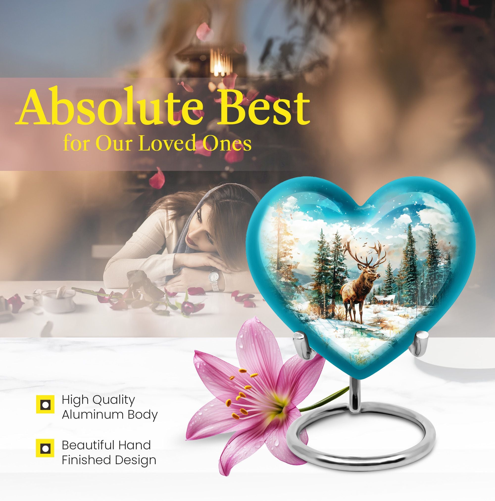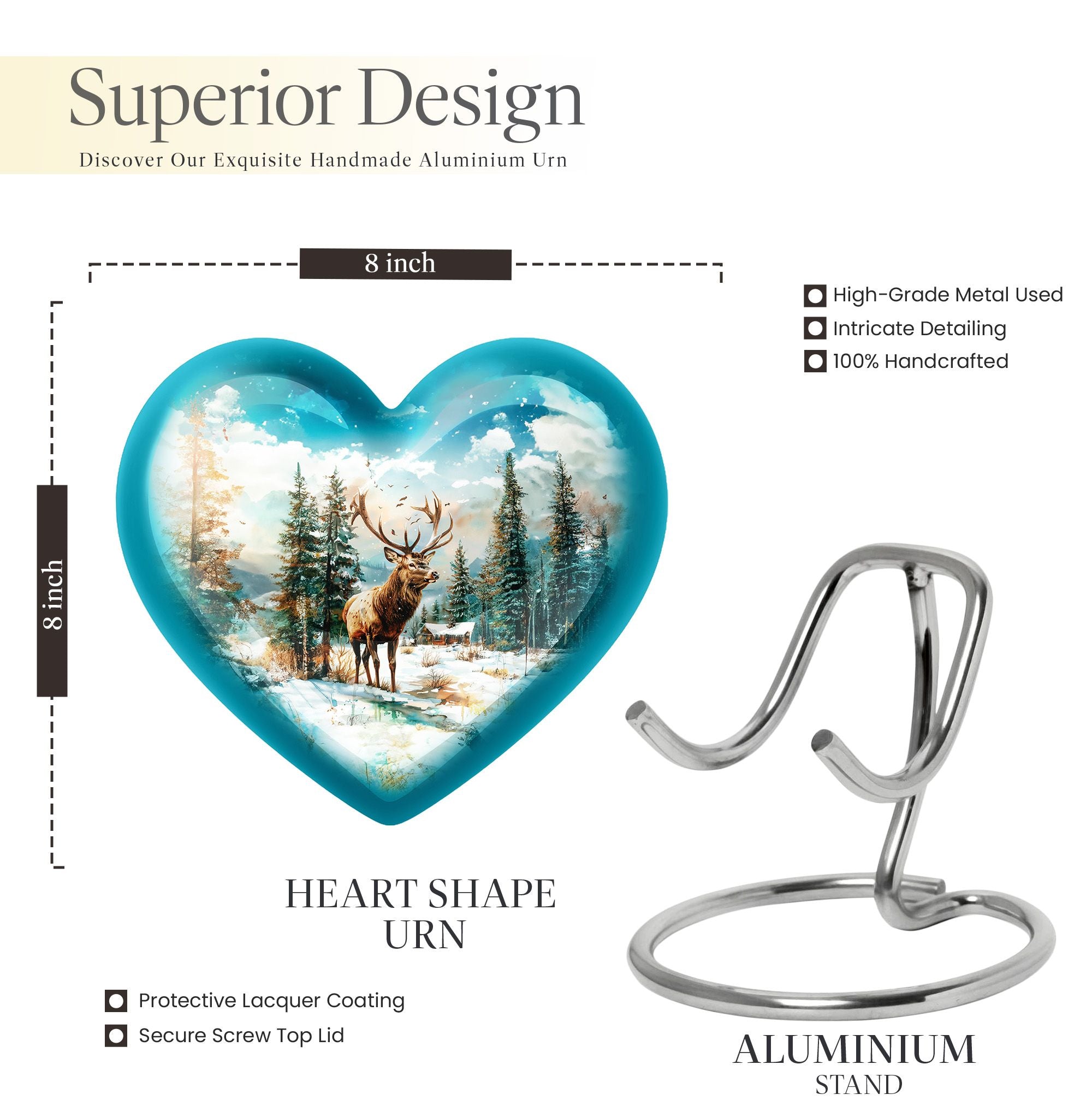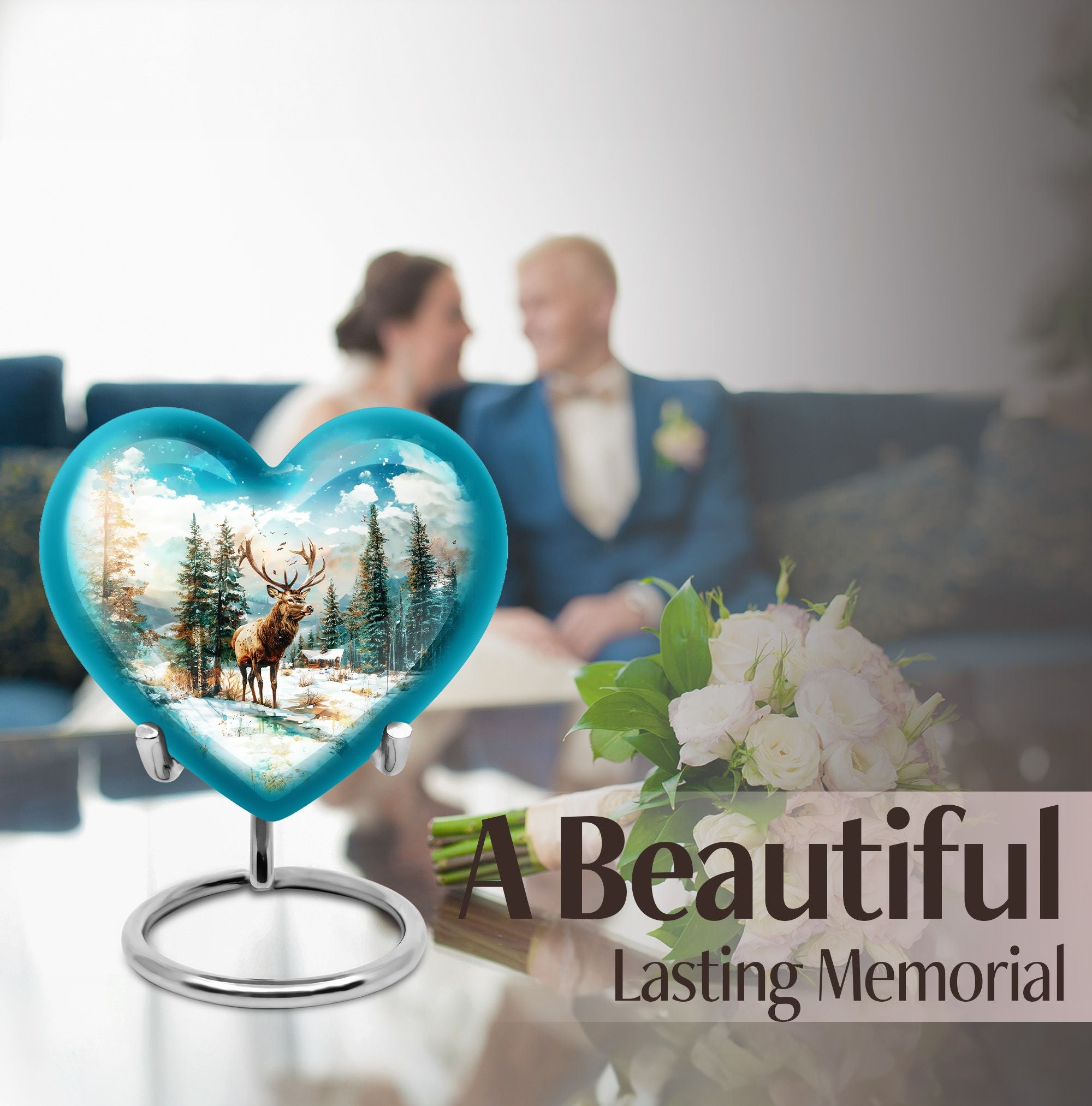 Adorned with a Gramophone theme, an endearing tribute to music lovers departed, is this Large 10-inch Aluminium Deer Urn. Made from durable material, it weighs 3.3 pounds and has dimensions of 10 inches in height. It possesses a capacity to contain up to 200 cubic inches of ashes safely. Our unique Heart urn design is completely authentic and unlike common urns. Furthermore, it grants you with the option to personalize this cremation urn with engraved names, adding an aspect of sentimentality. Another thoughtful inclusion is the velvet pouch provided, giving you a secure place for the containment of ashes. Distinctively crafted, it serves as a memorial medium urn that personifies your feelings significantly. Embrace the illustrious nature of funeral burial urns while cherishing the memories of your honoured dear ones.