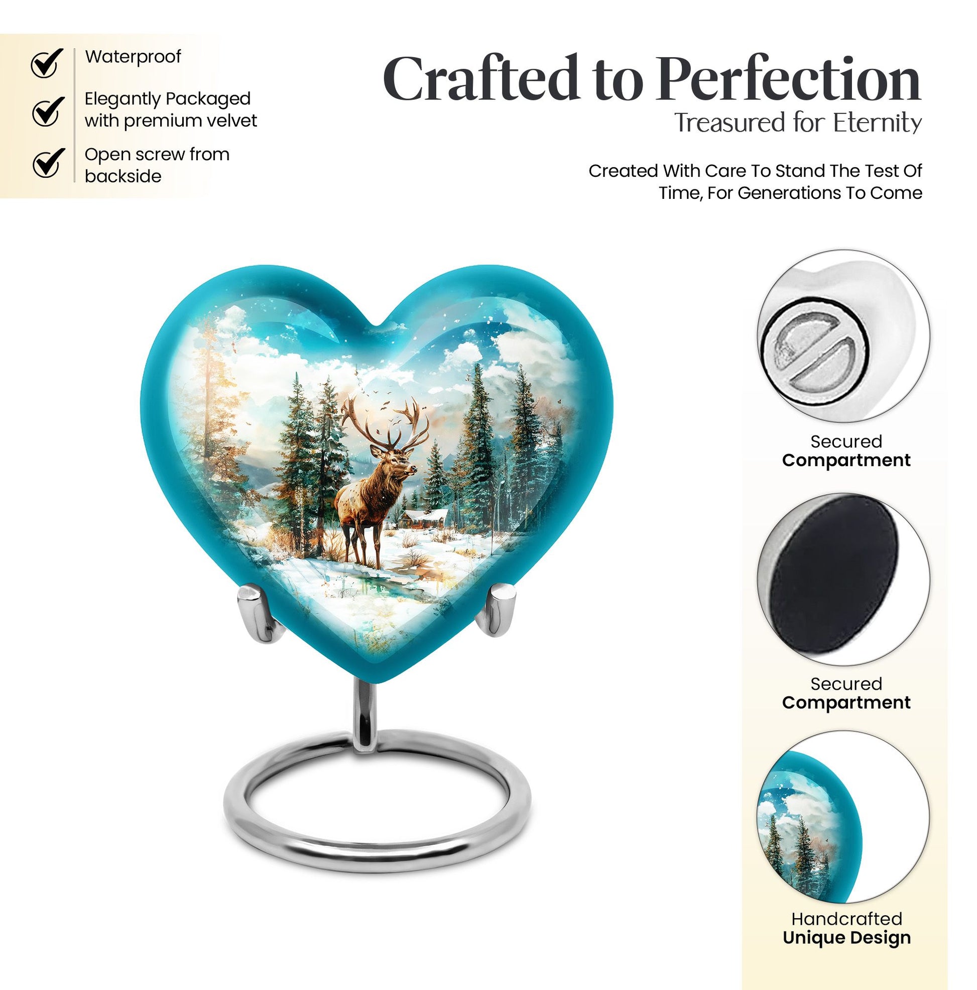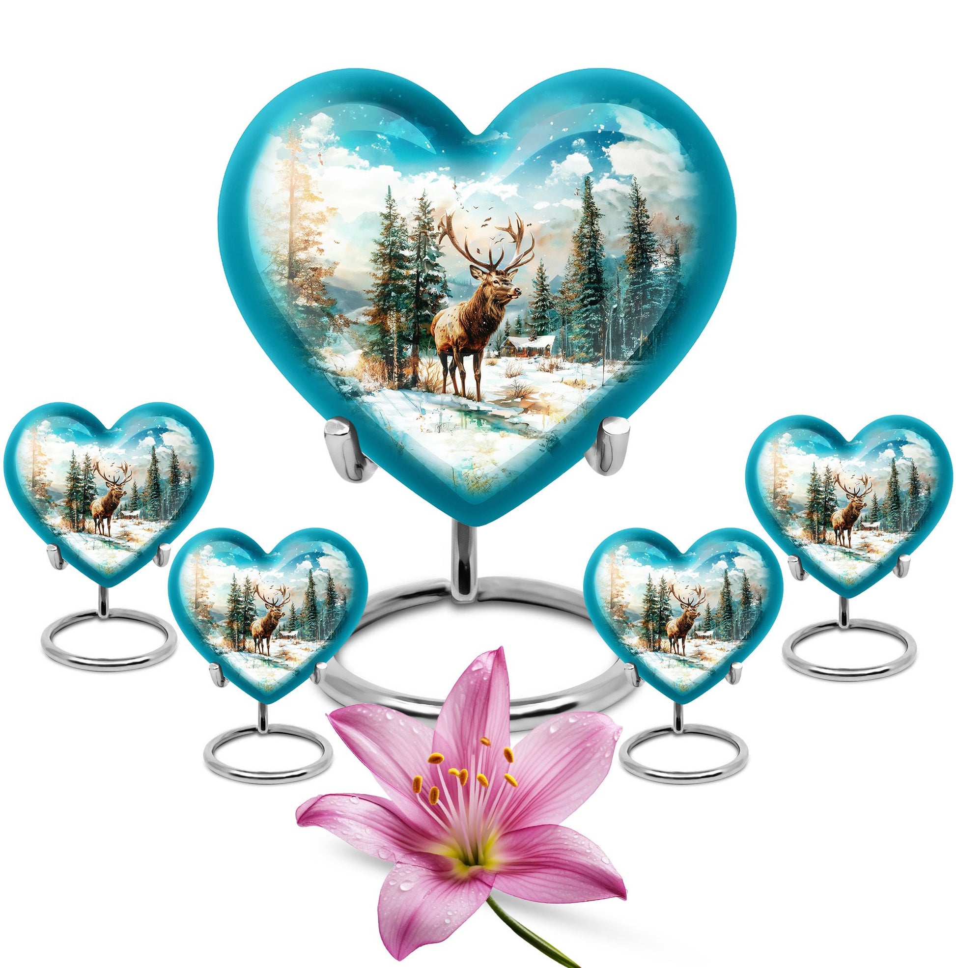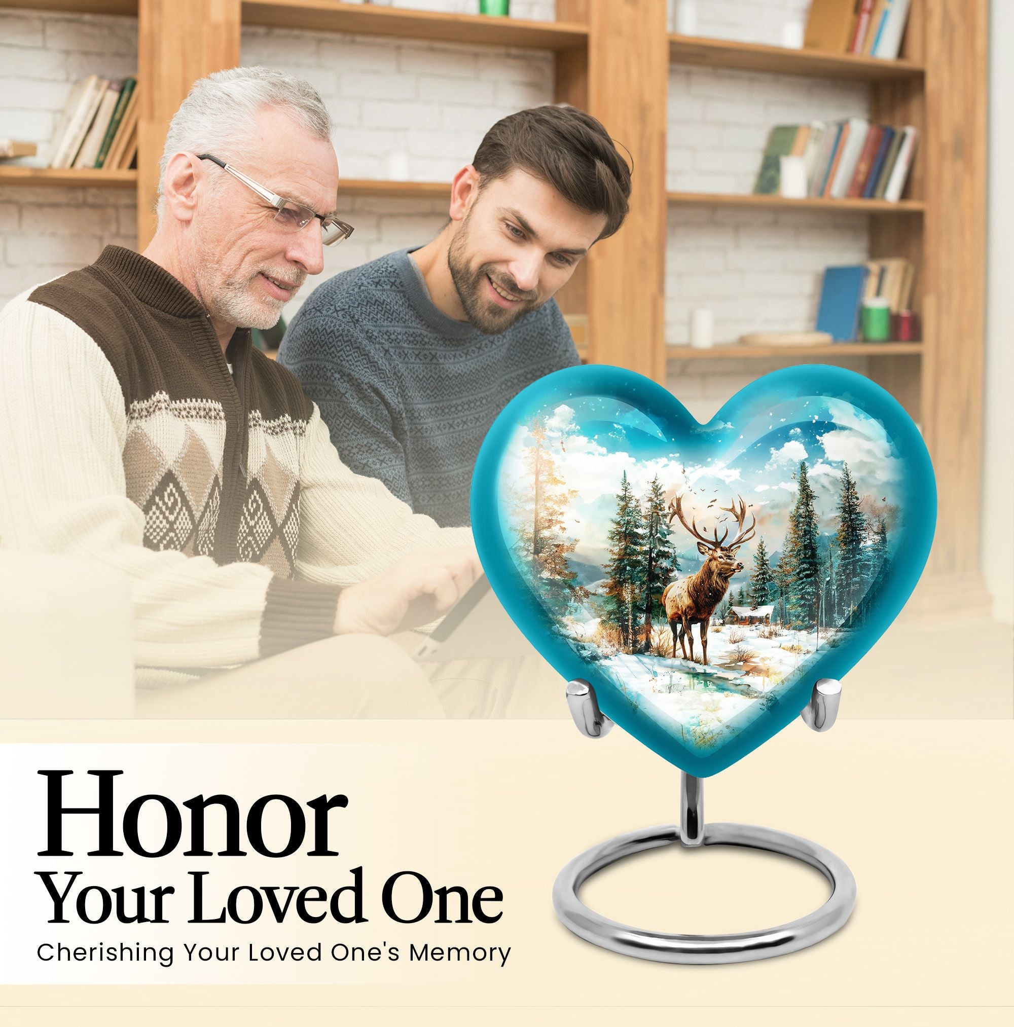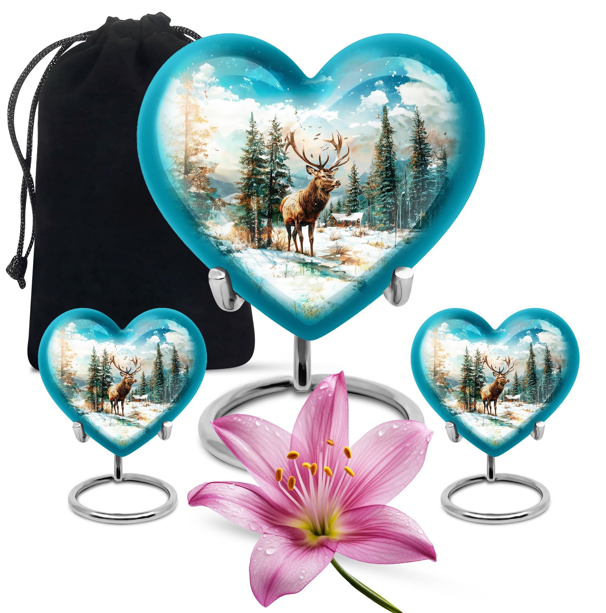 Adorned with a Gramophone theme, an endearing tribute to music lovers departed, is this Large 10-inch Aluminium Deer Urn. Made from durable material, it weighs 3.3 pounds and has dimensions of 10 inches in height. It possesses a capacity to contain up to 200 cubic inches of ashes safely. Our unique Heart urn design is completely authentic and unlike common urns. Furthermore, it grants you with the option to personalize this cremation urn with engraved names, adding an aspect of sentimentality. Another thoughtful inclusion is the velvet pouch provided, giving you a secure place for the containment of ashes. Distinctively crafted, it serves as a memorial medium urn that personifies your feelings significantly. Embrace the illustrious nature of funeral burial urns while cherishing the memories of your honoured dear ones.