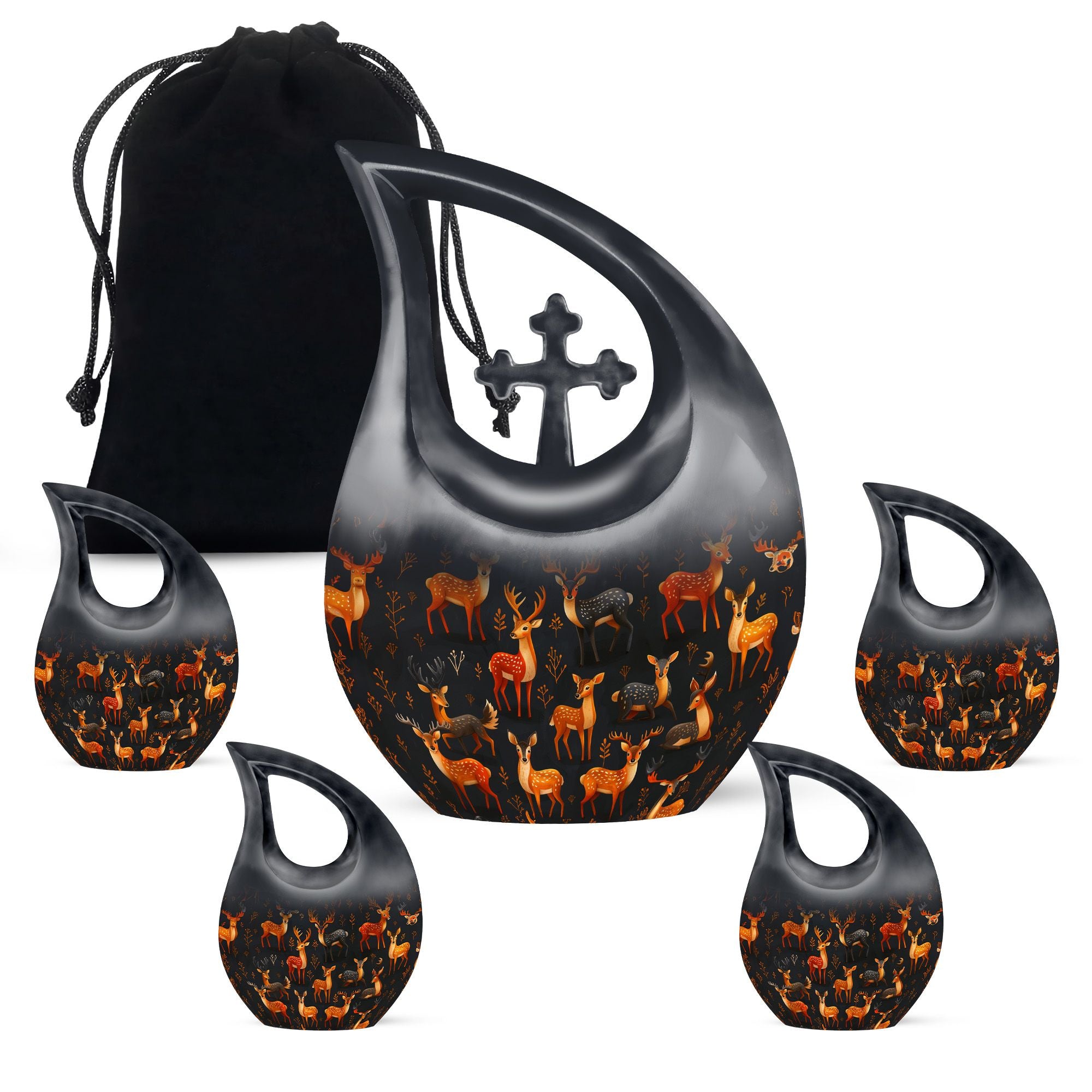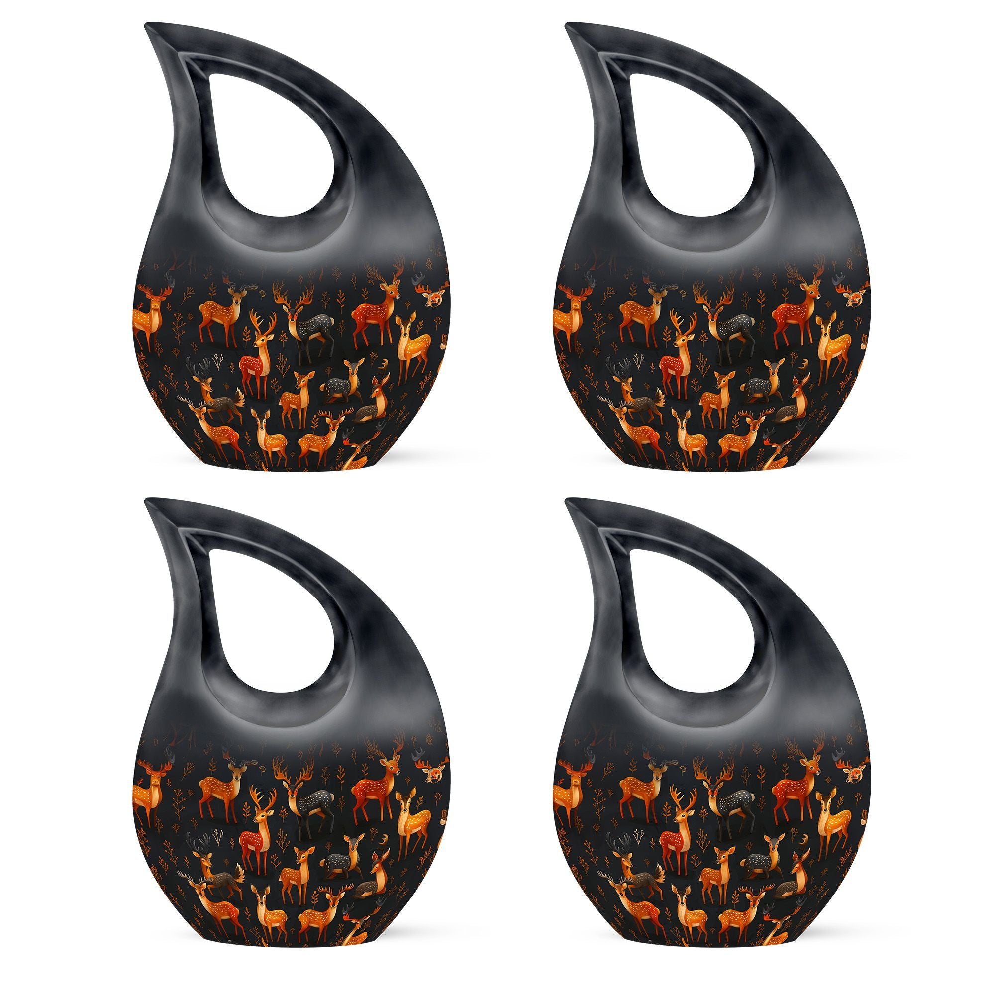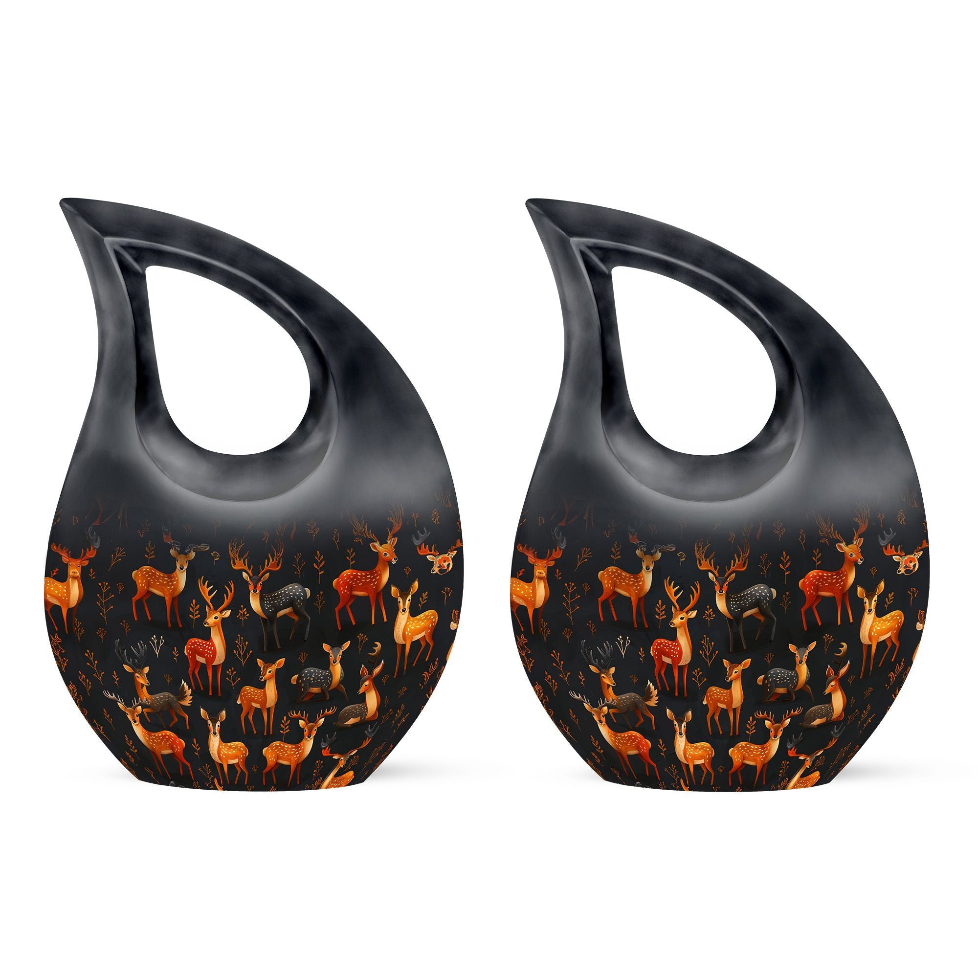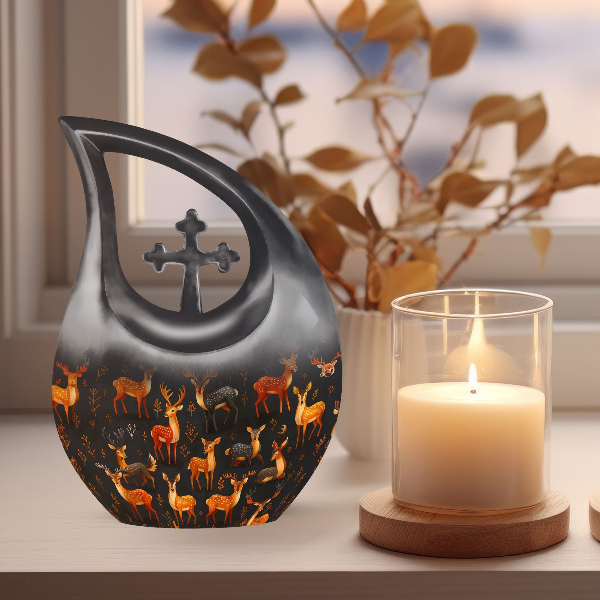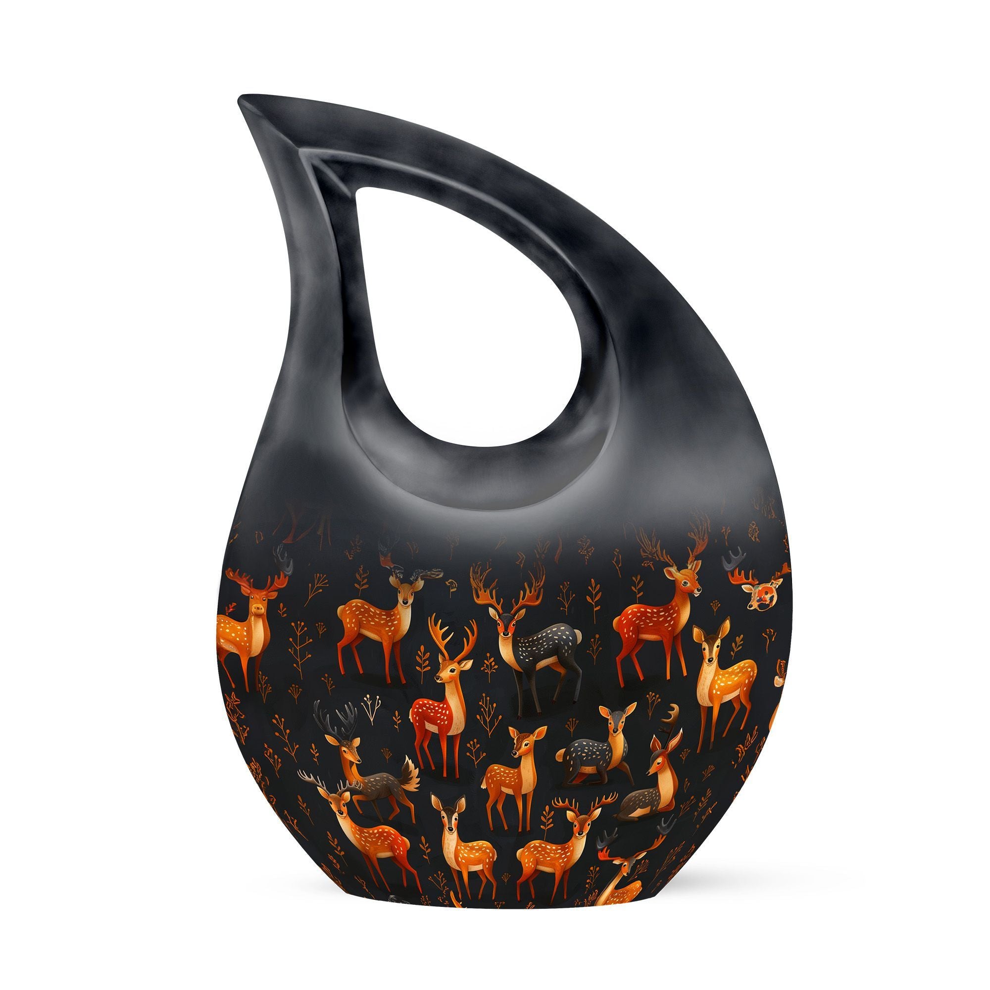 Presenting a poignant tribute to lost loved ones, our Deer Family Urn captivates with its sublime beauty. Crafted with care from high-quality aluminium, our 10-inch large urn weighs a solid 3.3 pounds and showcases a Cross Drop design. Its spacious interior has a capacity of 200 cubic inches, enough to respectfully hold the ashes of an adult. For convenient containment of ashes, a soft velvet pouch is included in the package. We offer the facility of engraving names on the urn to add a personalized touch to your remembrance. This elegantly designed urn serves perfectly as a memorial urn or burial urn for human ashes tracking the needs and search trends of our consumers. Our decorative urn, themed on the harmonious Deer Family, stands a class apart, radiating tranquility. Reflecting your love and emotion, this full-size urn indeed makes a cherished possession. Keywords: Deer Family Urn, Beautiful Urns, Decorative Urns, Memorial Urns, Burial Urns For Human Ashes, Full Size Urns For Human Ashes, Urn For Mom.