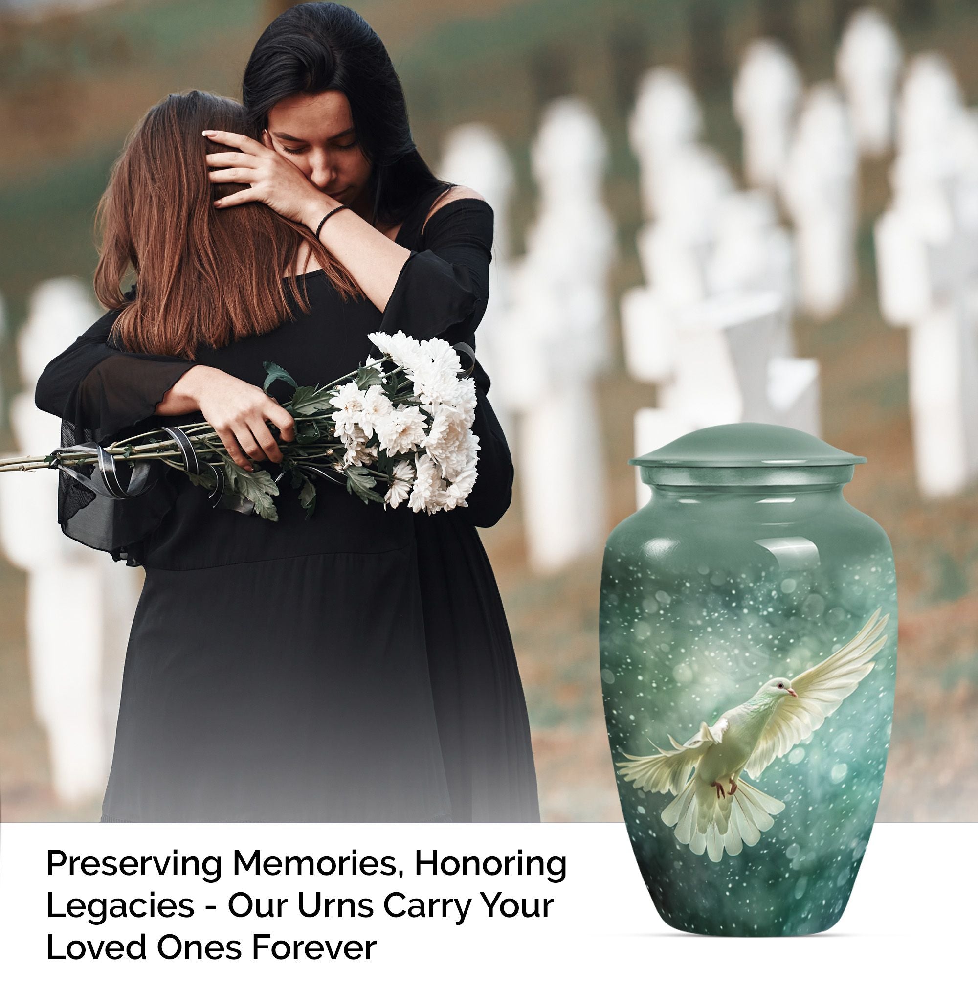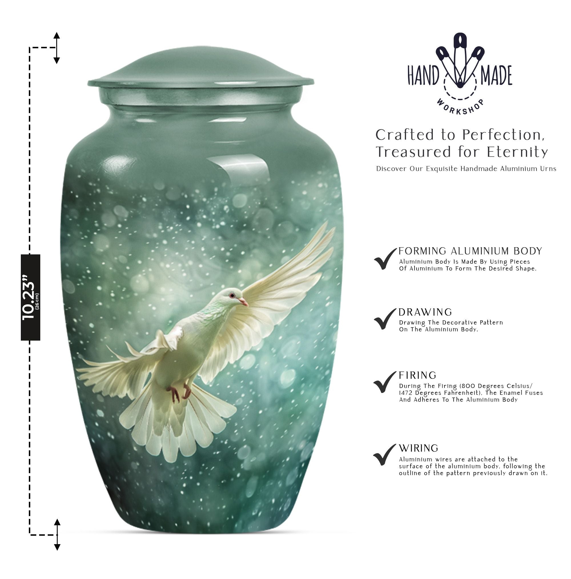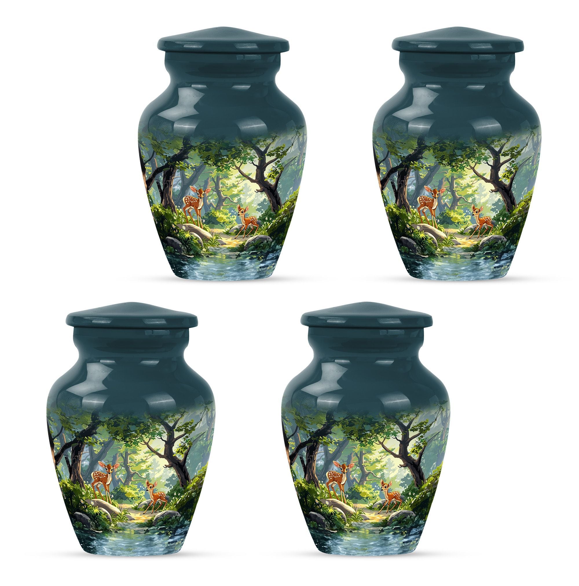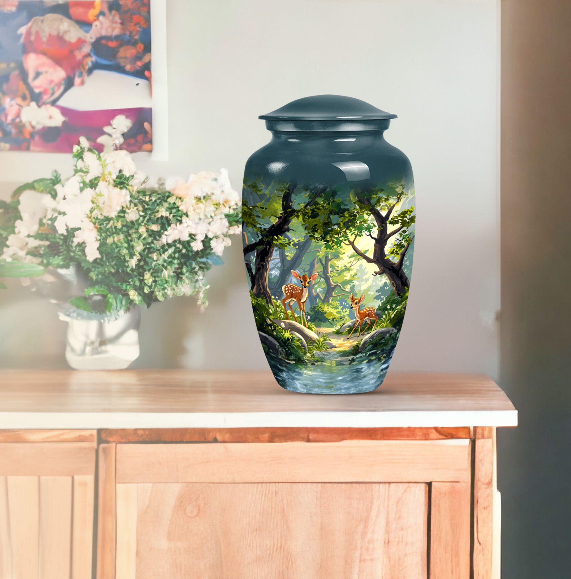 Discover a tasteful way to honor the memory of a loved one with the Classic 10 inch Gramophone Deer Urn. This large cremation urn, crafted from robust and lightweight aluminium, brings sophistication and lasting durability to any memorial ceremony. Painstaking care has been taken over every detail, from its weight of 3.3 pounds to its ideal capacity of 200 cubic inches, perfect for accommodating the needs of most adults. Personal touches matter - that's why we also offer you the opportunity to personalize this funeral urn with engraved names. The urn brings ease-of-use to the forefront with its plush velvet pouch for containment of ashes, adding a subtly dignified touch to the mourning process. This elegant adult cremation urn, ideal for men and women alike, is more than just a metal urn. It's the utter manifestation of reverence.