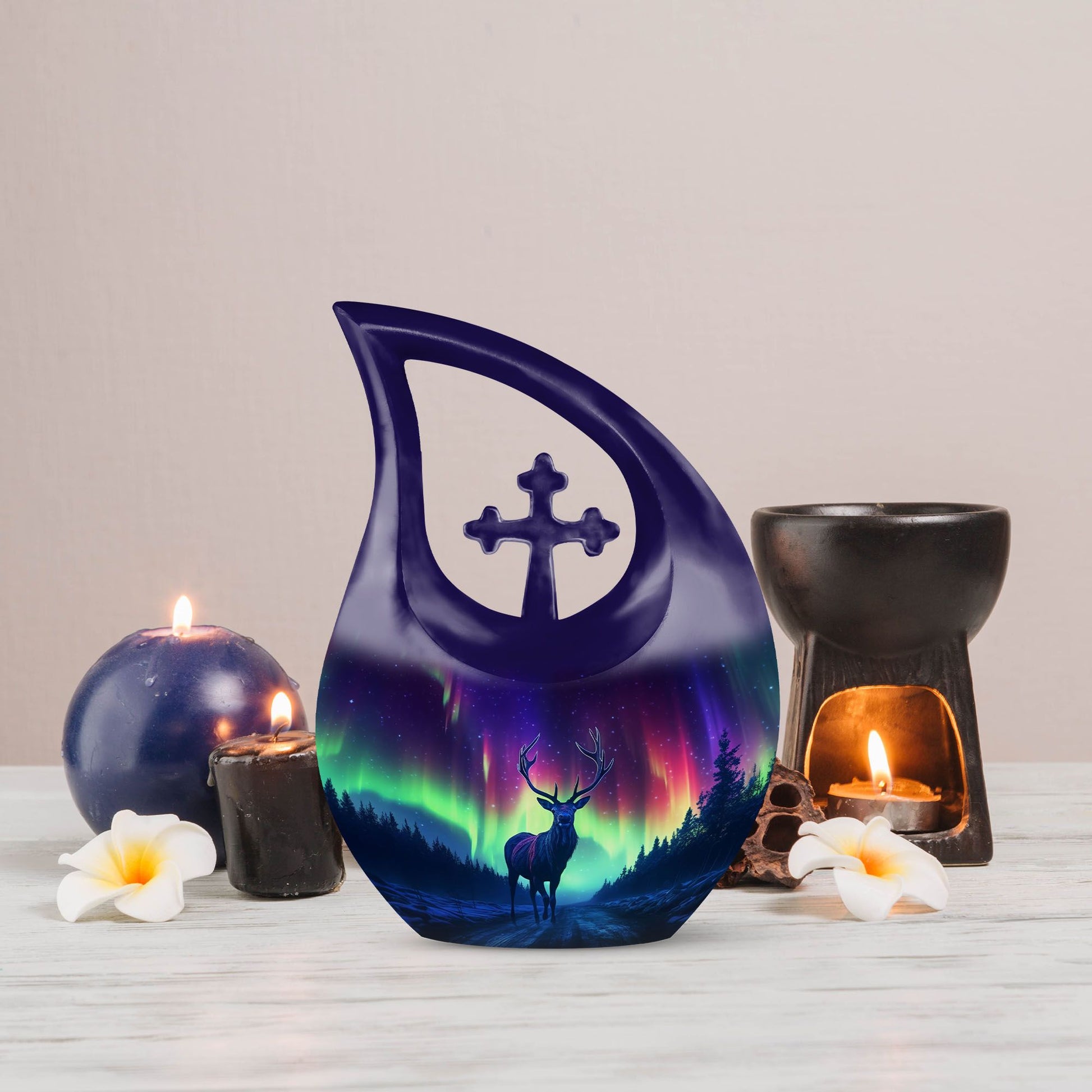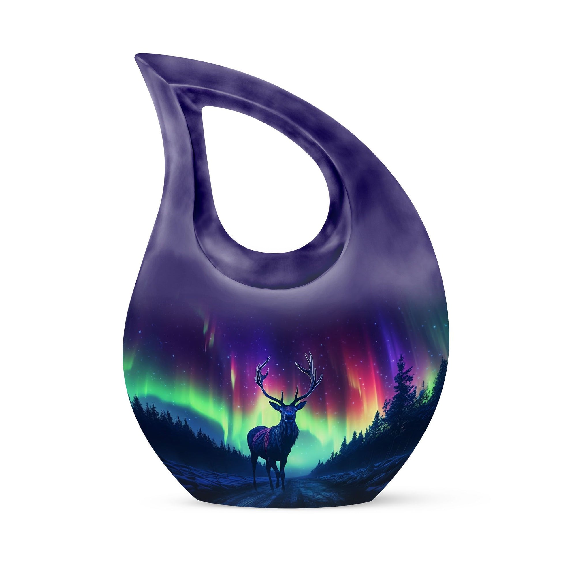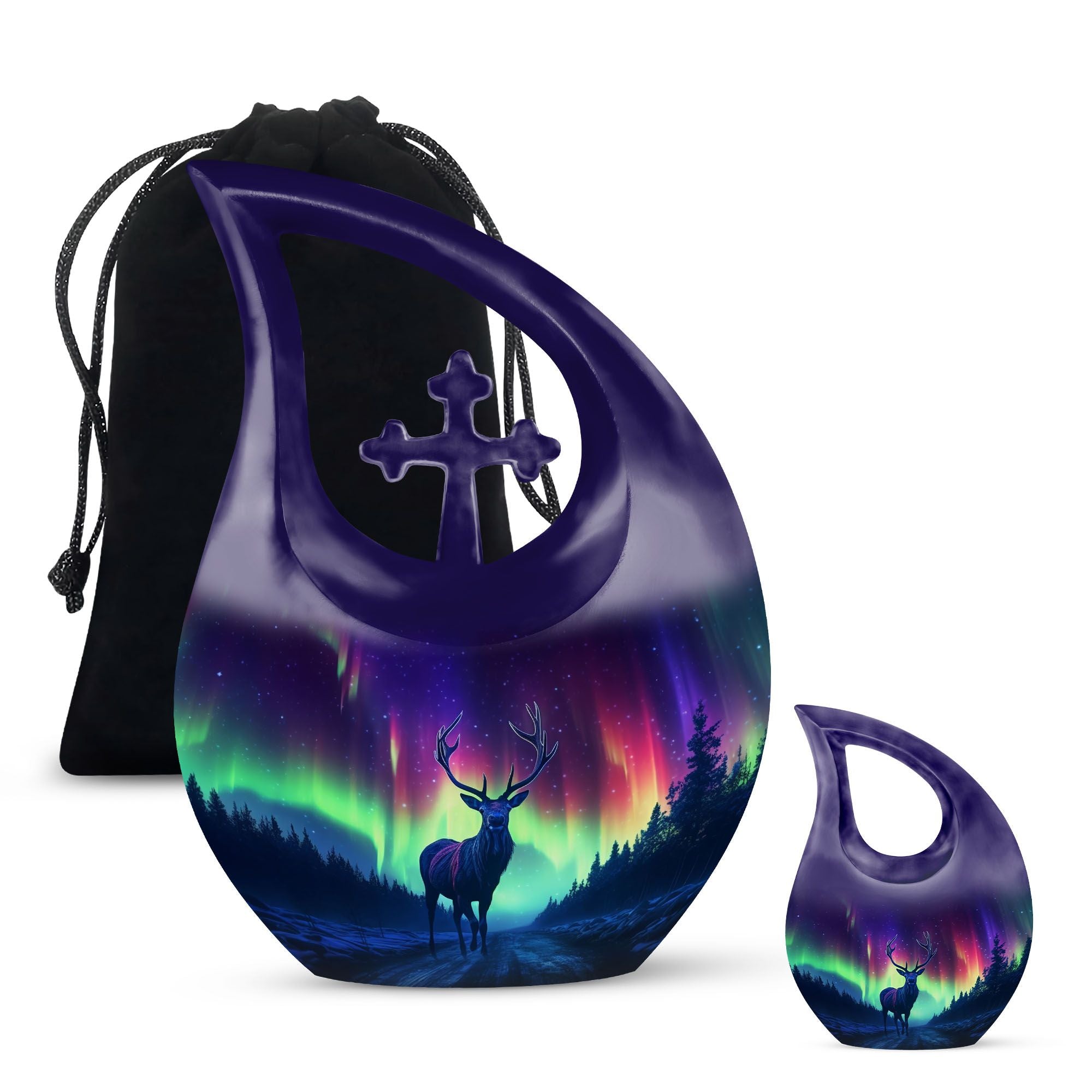 Celebrate the memory of your loved one with the Reindeer Memorial Urn, inspired by the Aurora Borealis. This beautifully designed cremation urn provides a meaningful way to honor cremation ashes, with both a full-size urn and mini keepsake options. Ideal for families seeking mini urns for human ashes mom, mini urns for human ashes dad, or mini keepsake urns for human ashes, it ensures every memory is cherished.