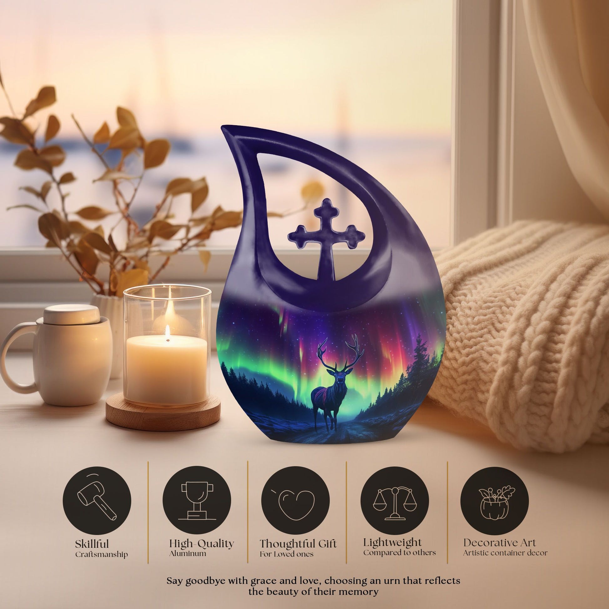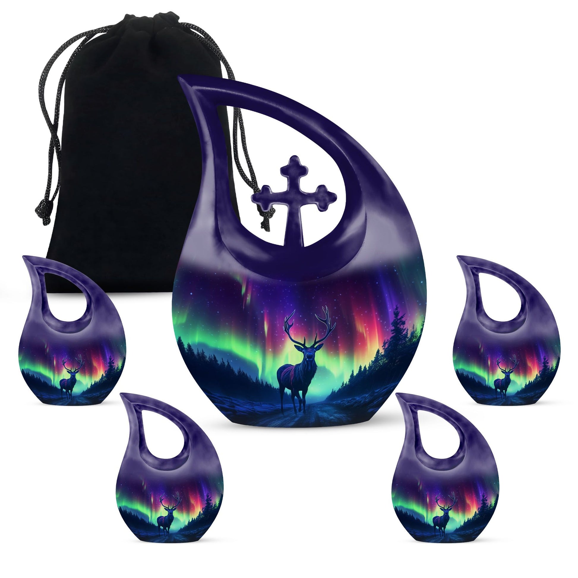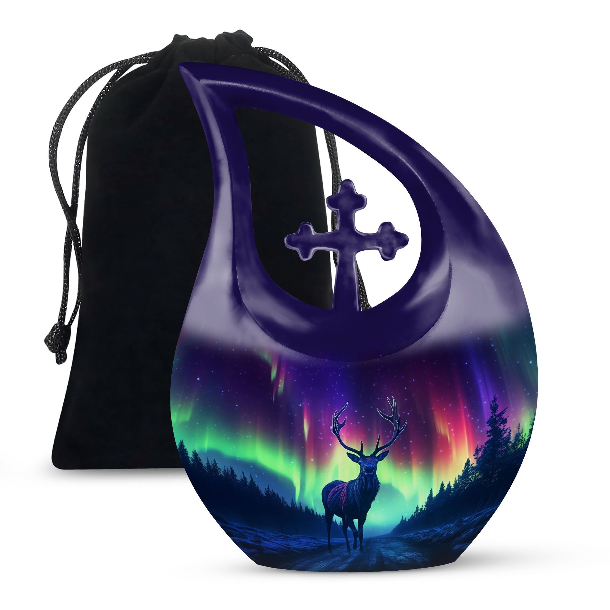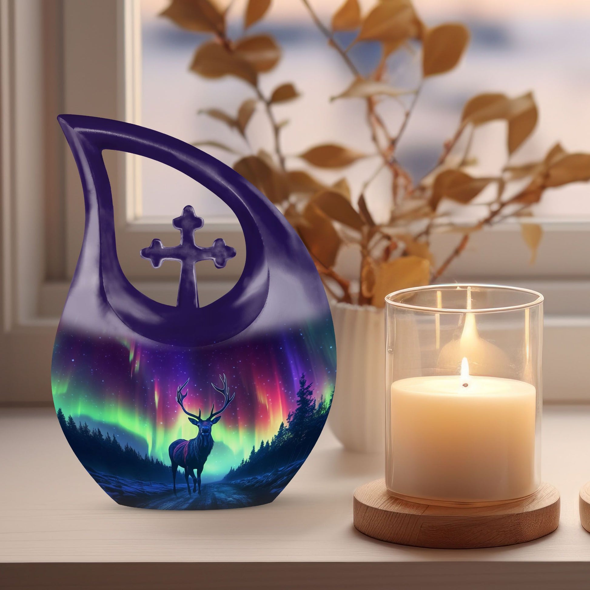 Celebrate the memory of your loved one with the Reindeer Memorial Urn, inspired by the Aurora Borealis. This beautifully designed cremation urn provides a meaningful way to honor cremation ashes, with both a full-size urn and mini keepsake options. Ideal for families seeking mini urns for human ashes mom, mini urns for human ashes dad, or mini keepsake urns for human ashes, it ensures every memory is cherished.