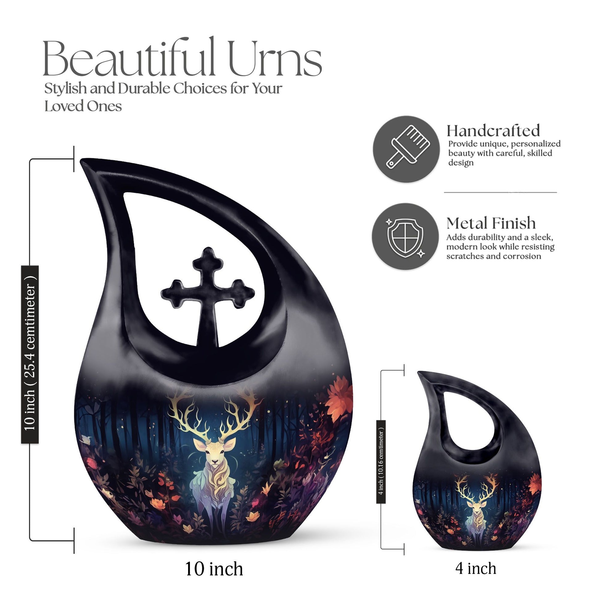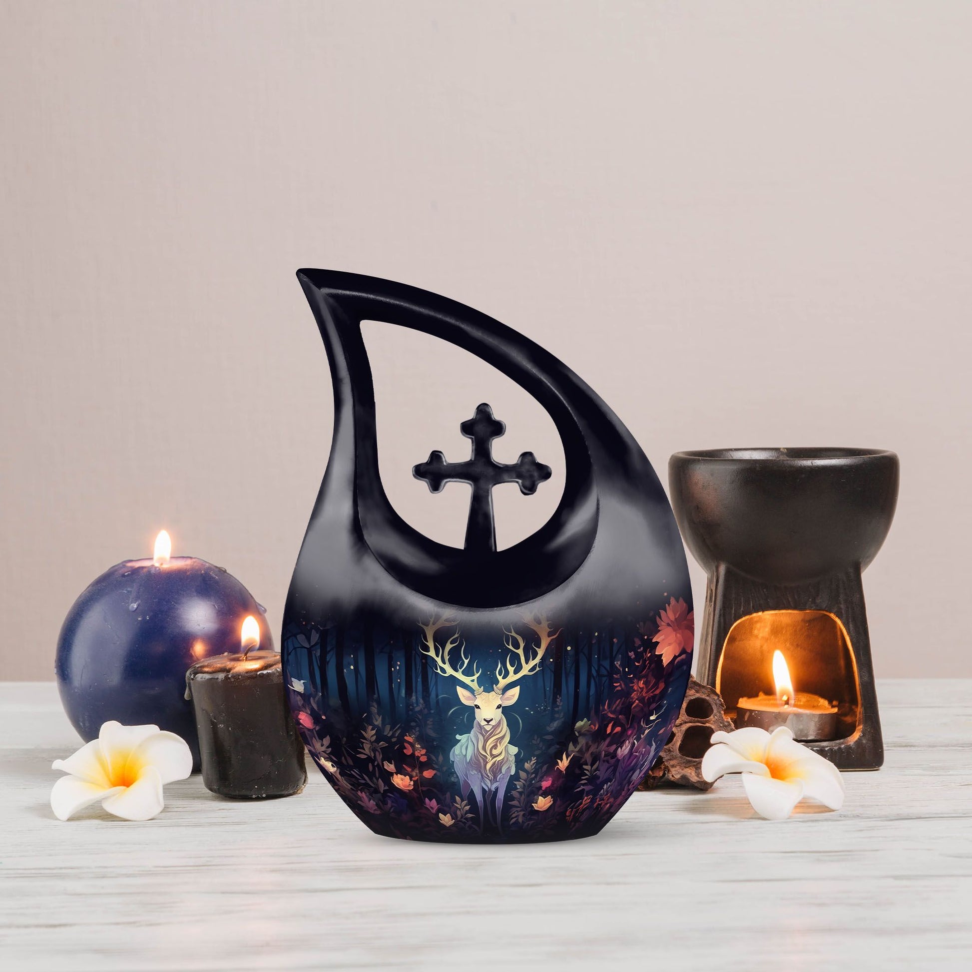 Celebrate a life intertwined with nature through this Forest Deer Cremation Urn for Human Ashes, a beautifully handcrafted memorial piece designed to symbolize serenity, freedom, and natural grace. Adorned with a detailed deer amid a forest landscape, this urn evokes tranquility and reverence — making it one of the most beautiful urns women and men will cherish for generations.
