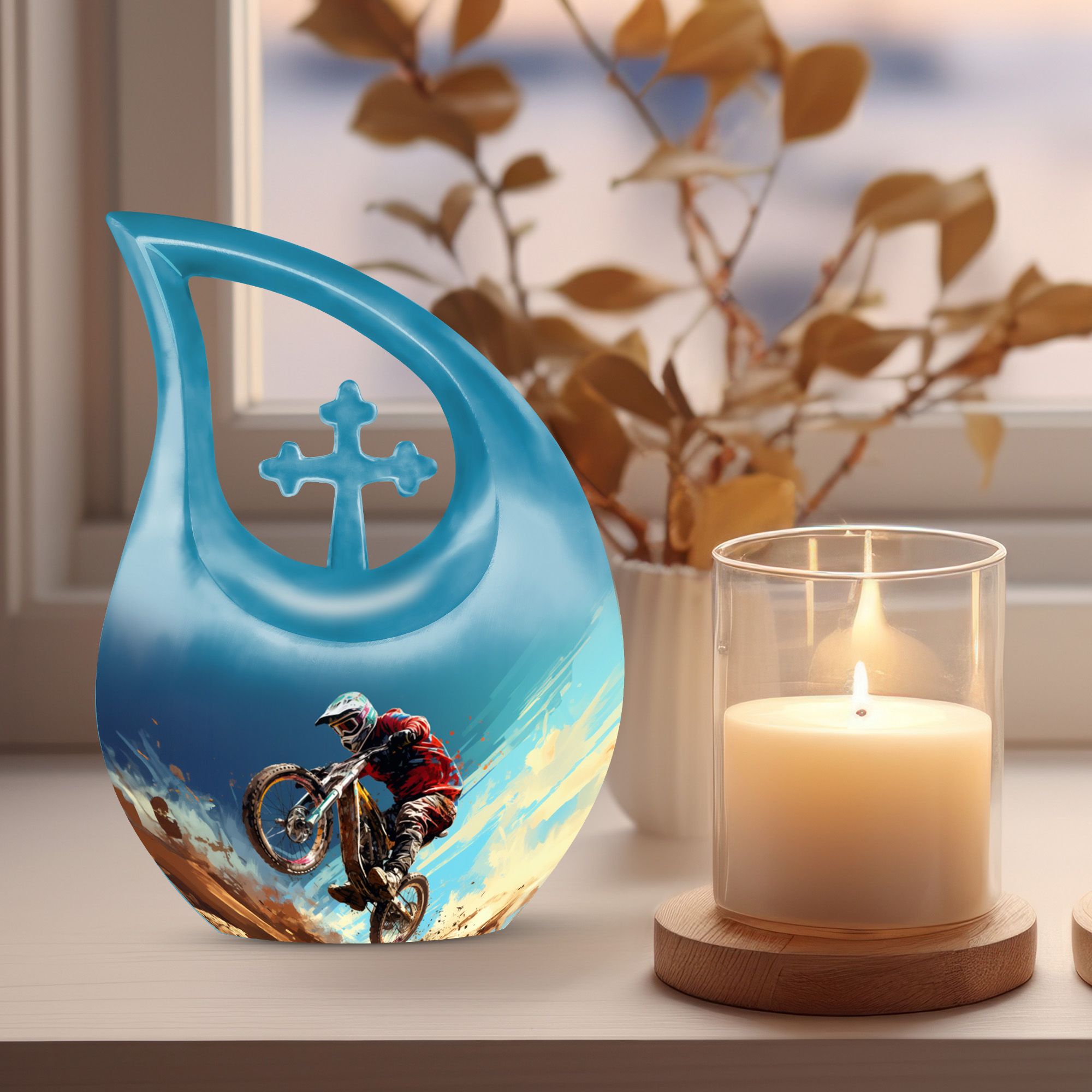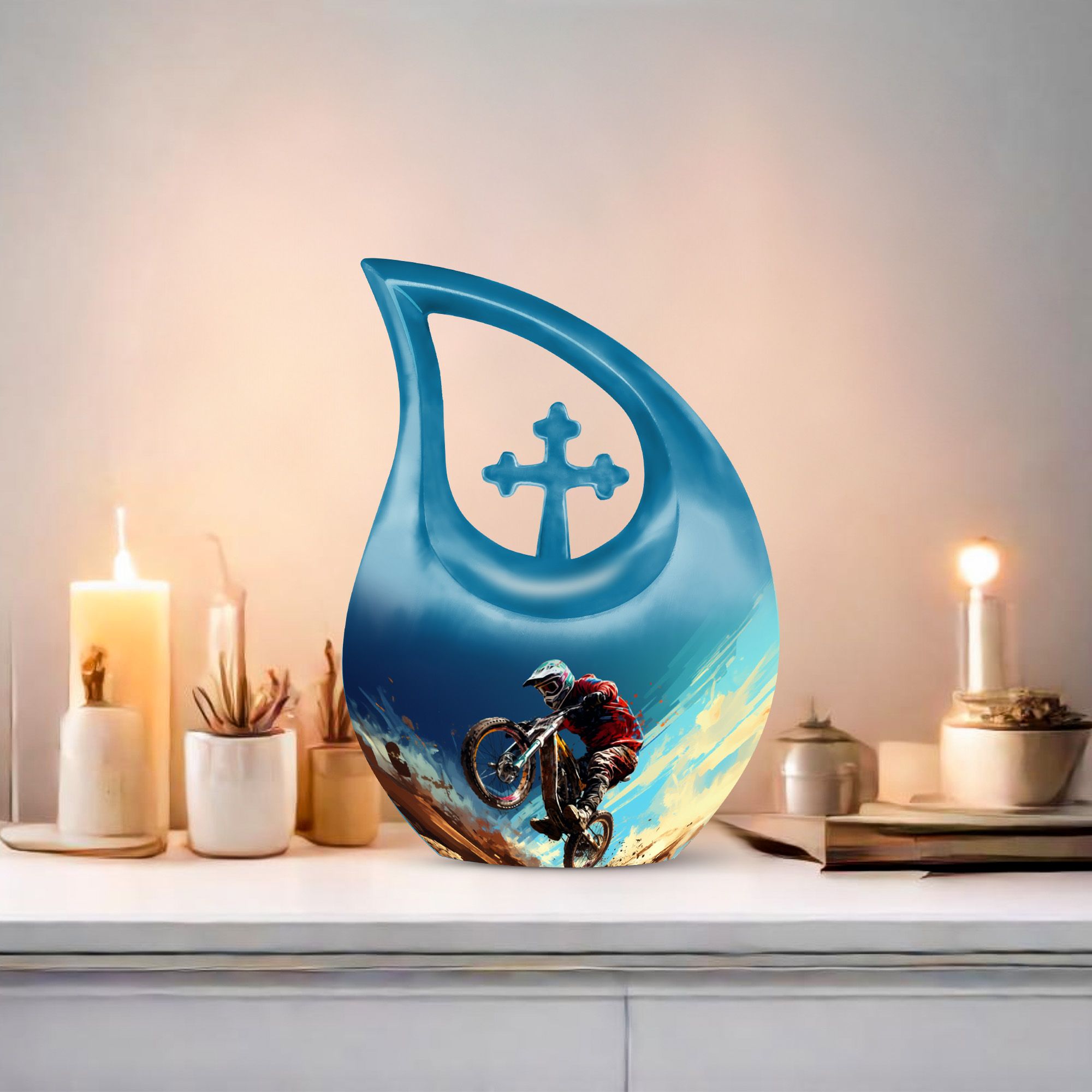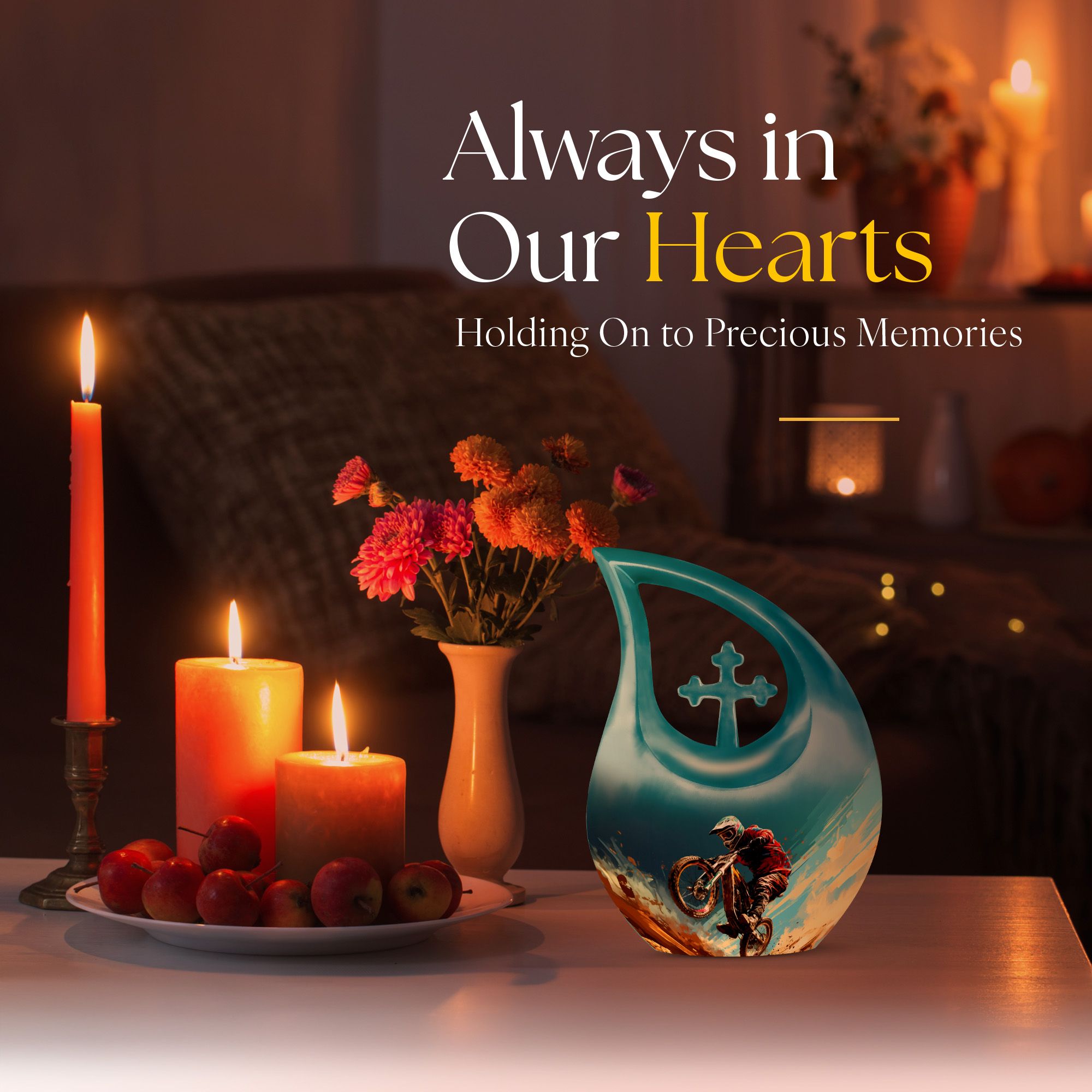 A meaningful and dignified tribute, this motocross urn preserves precious memories with strength, beauty, and heartfelt respect.
