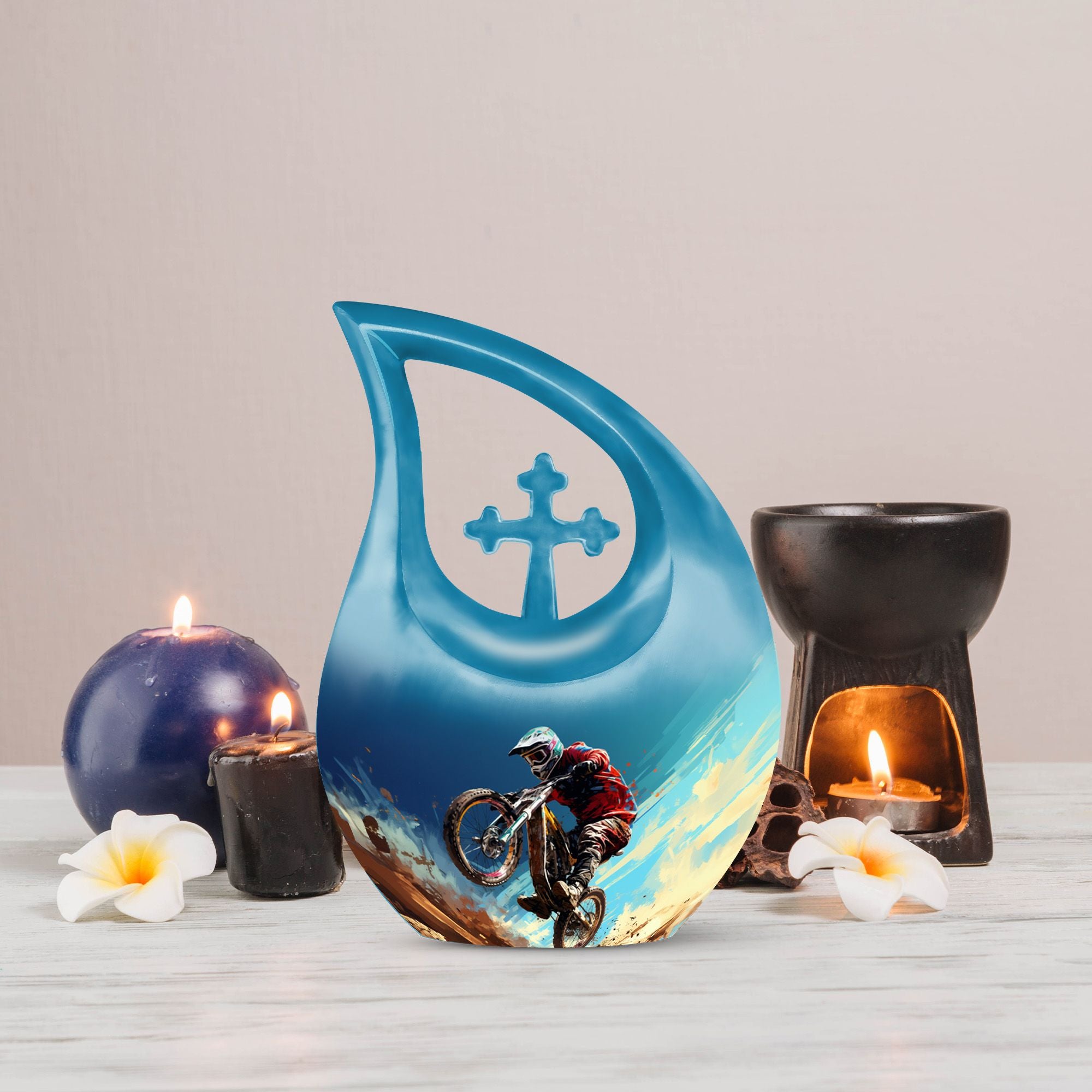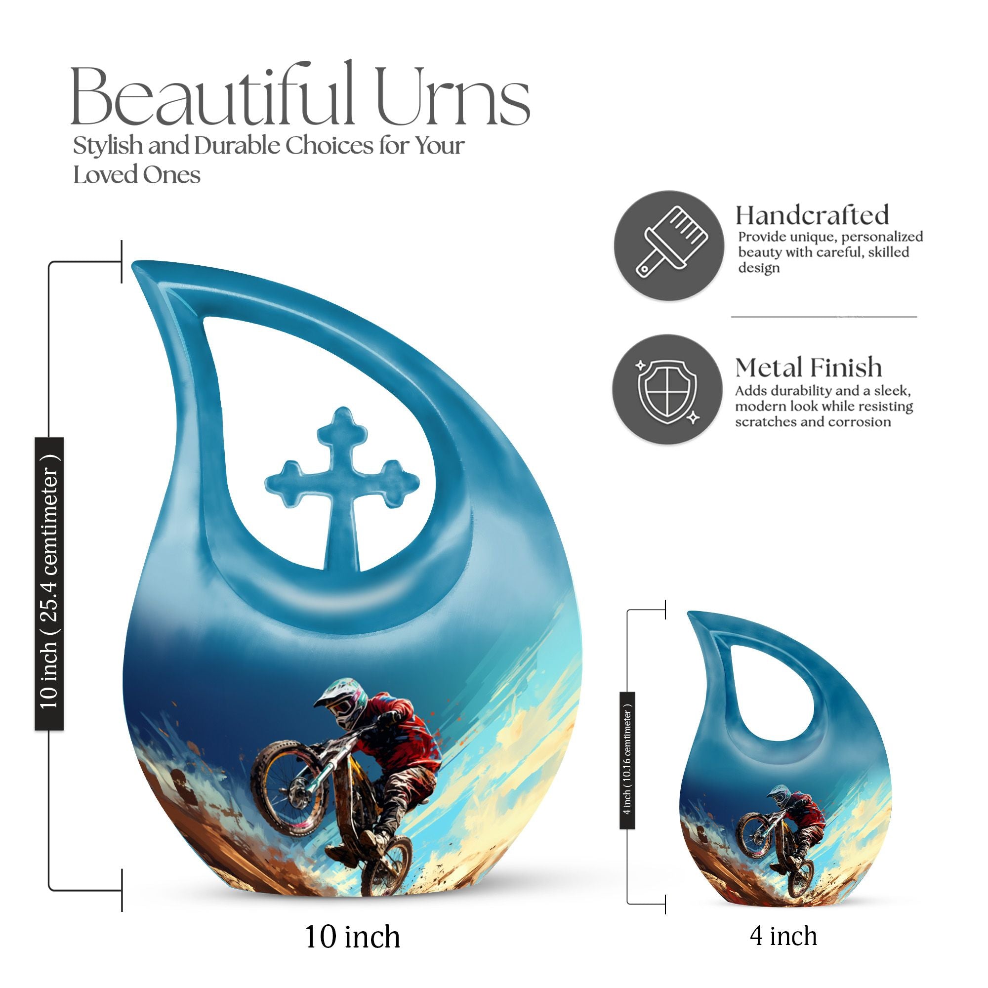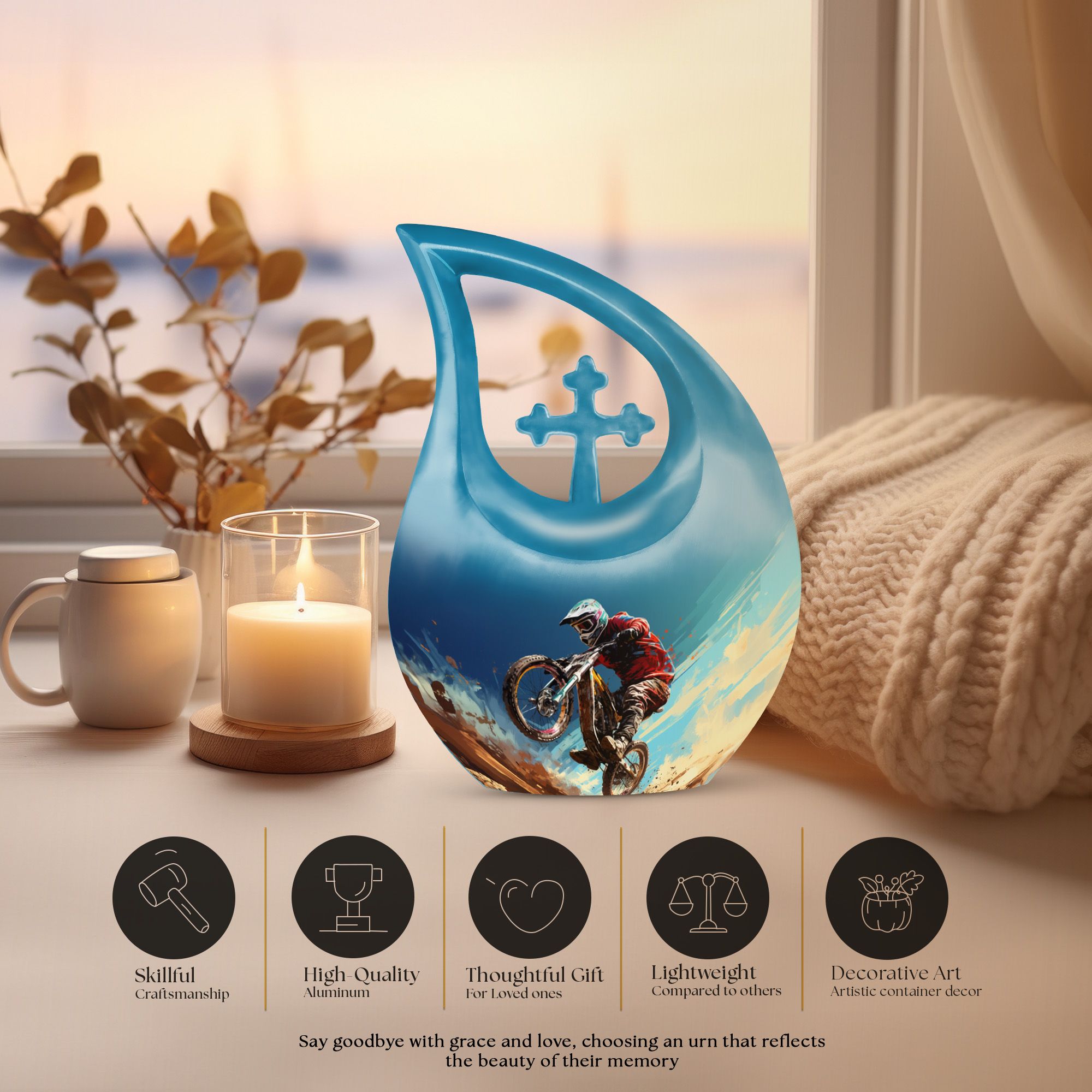 A meaningful and dignified tribute, this motocross urn preserves precious memories with strength, beauty, and heartfelt respect.