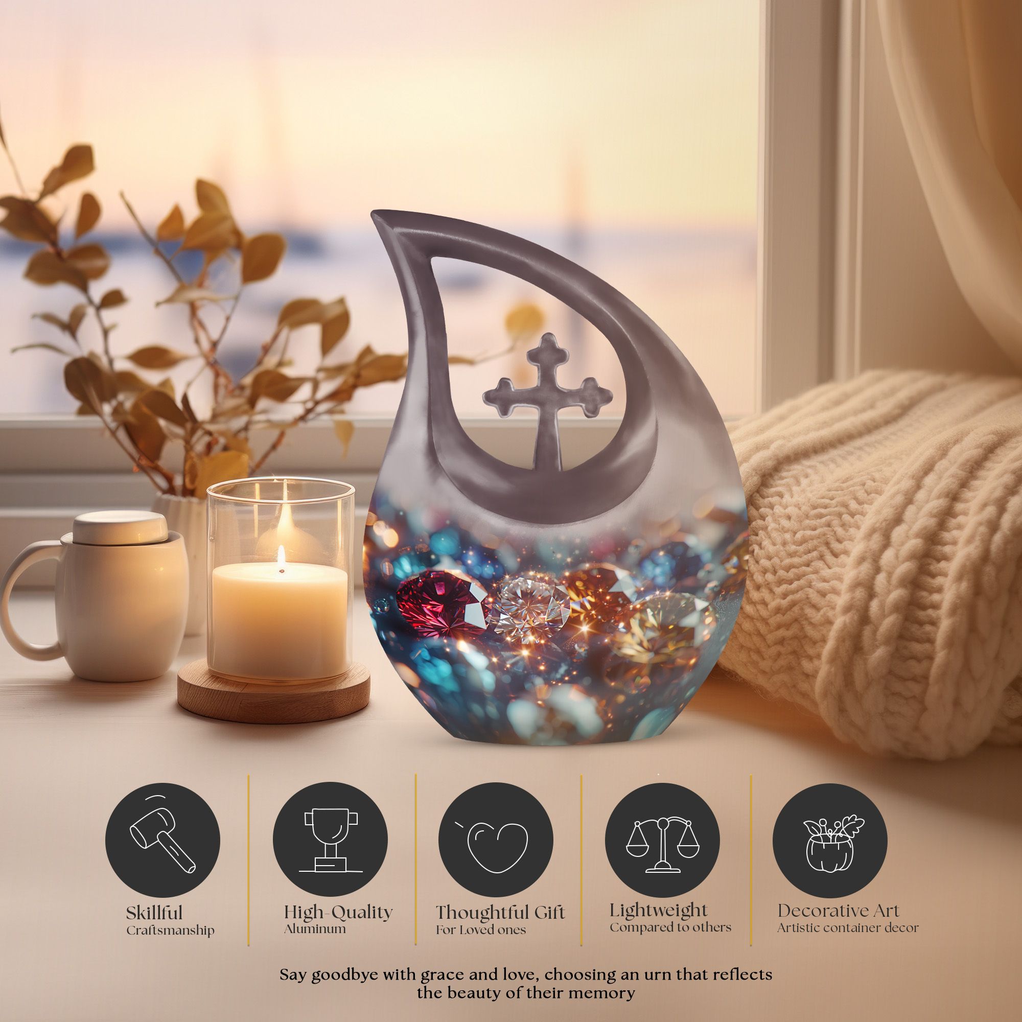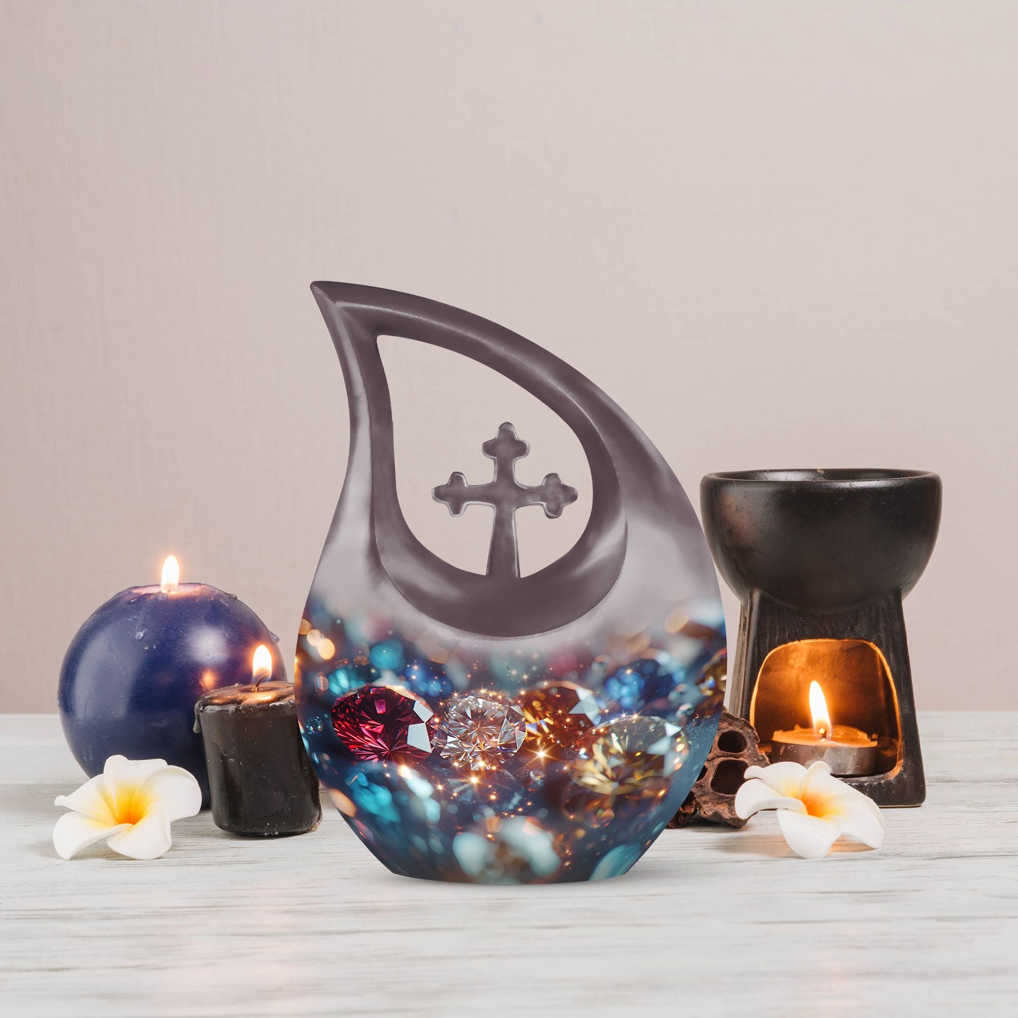 This Diamond Funeral Urn provides a timeless and meaningful way to honor a loved one, offering comfort and dignity for families seeking keepsake urns for human ashes for male and female. Its brilliant diamond-inspired design symbolizes strength, purity, and everlasting love, making it a beautiful tribute for a cherished family member.