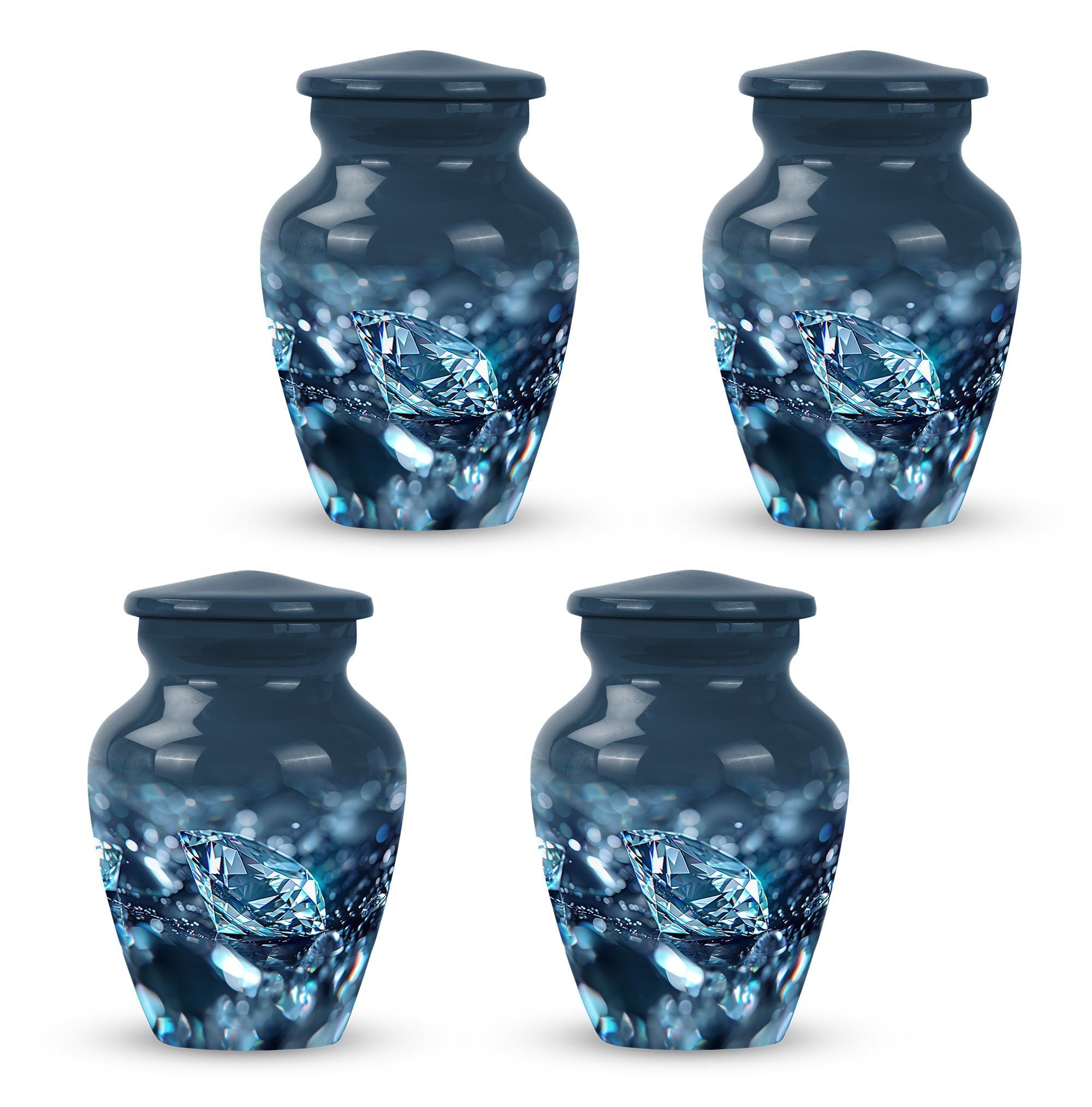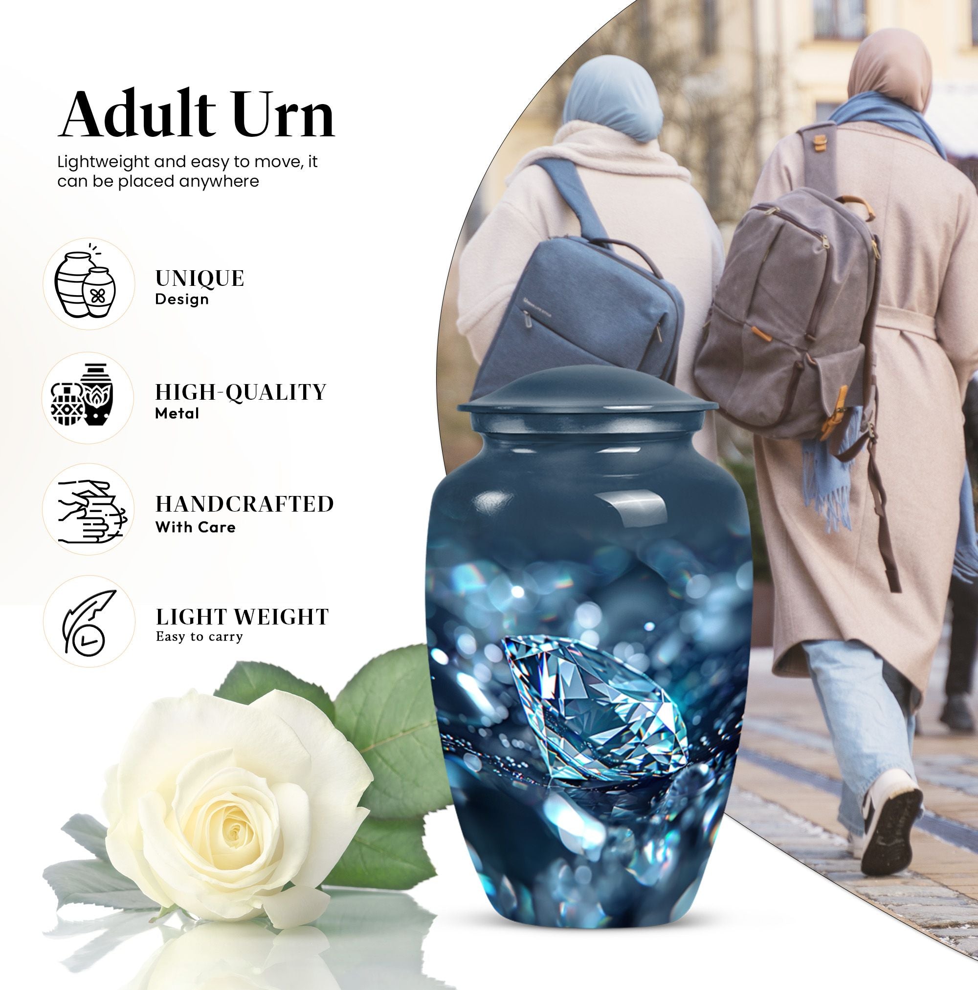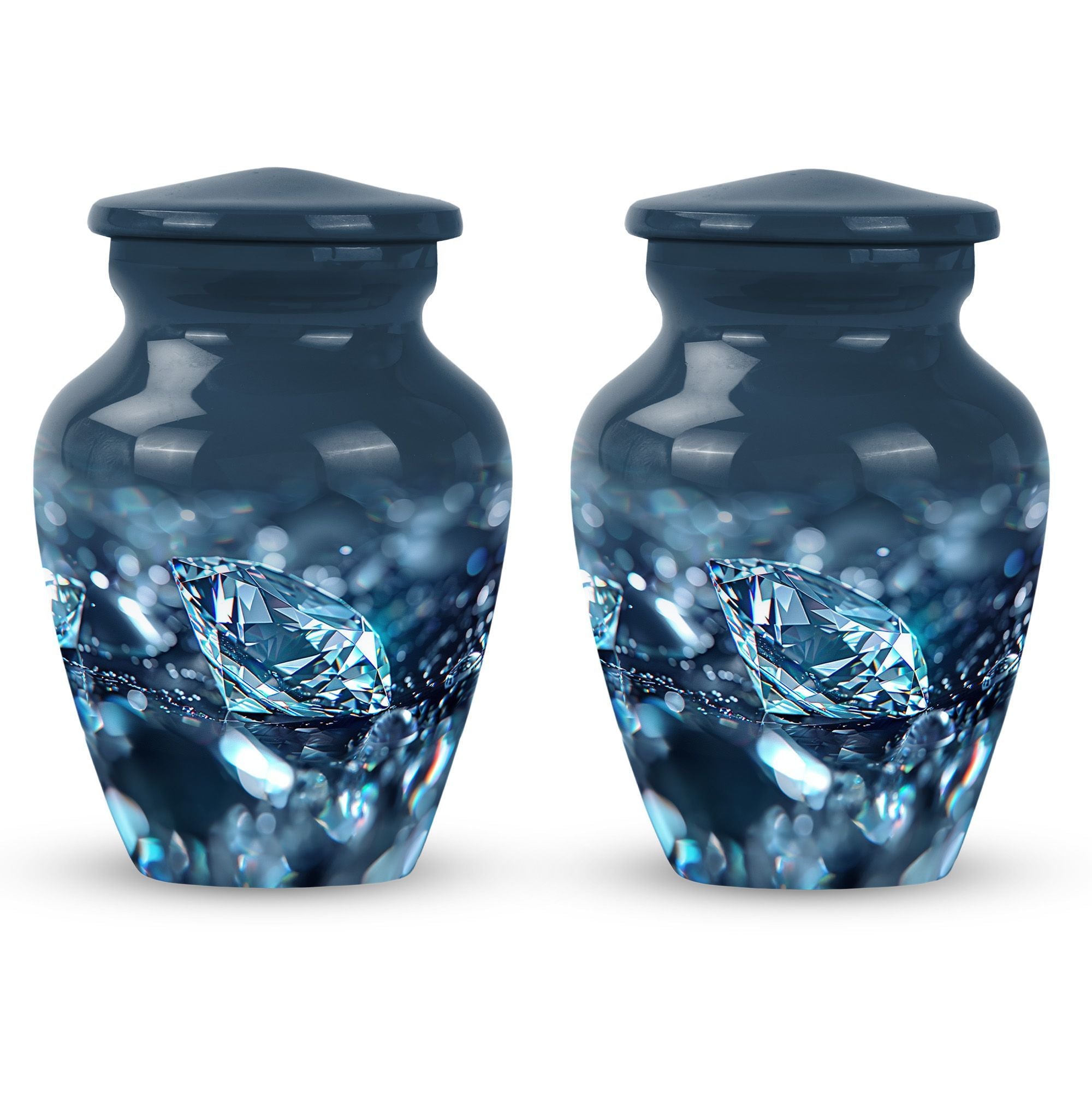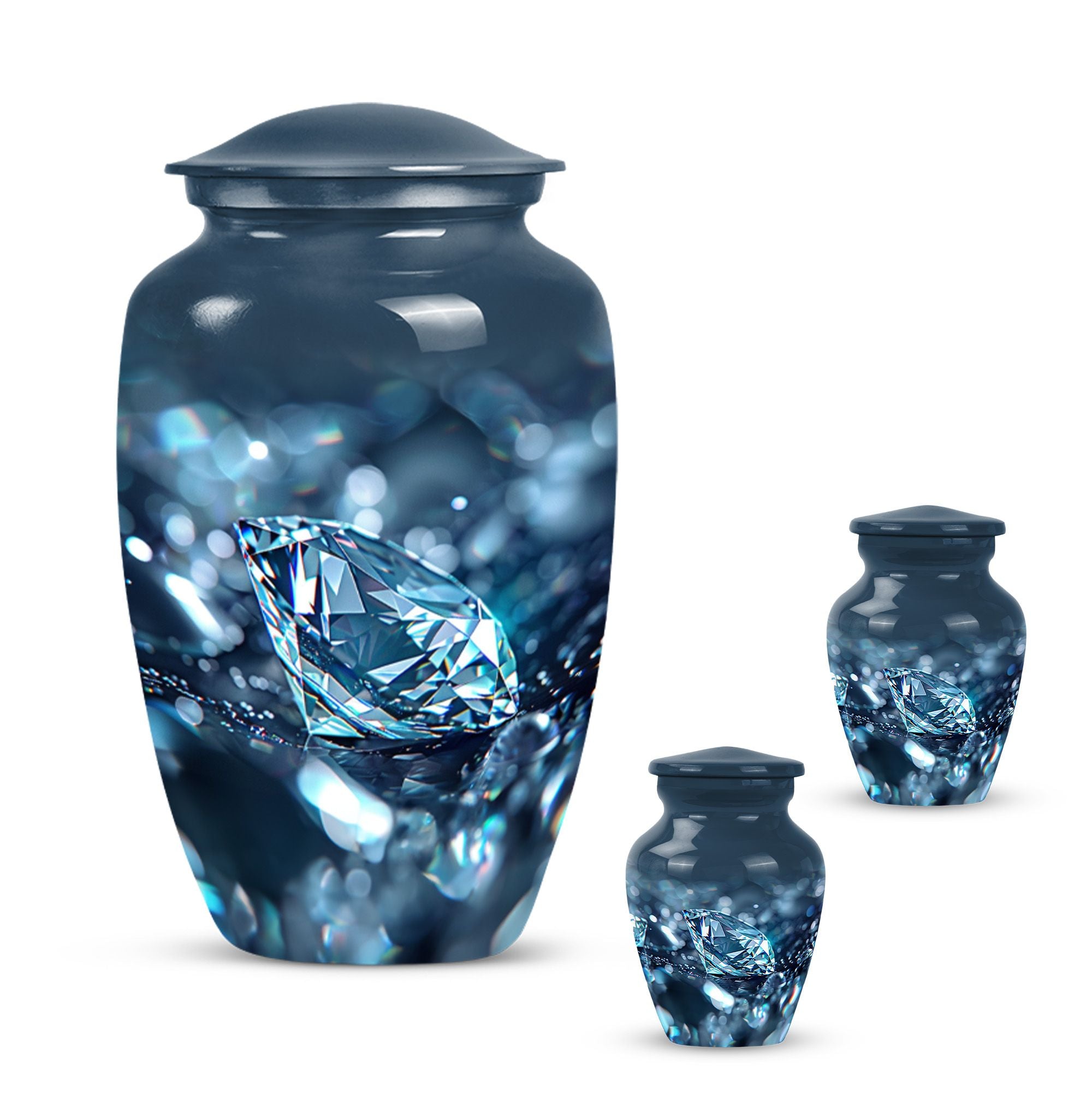 Elegantly constructed, this 10-inch diamond urn is an ideal solution for safekeeping your loving mother's cremation ashes. Highlighting its uniqueness, this classic urn radiates with a trendy abstract theme, blending perfectly with urban homes' decor. Crafted from robust aluminium, the urn weighs a sturdy 3.3 pounds, assuring its longevity and durability. With a generous capacity of 200 cubic inches, this large urn is suitable for adult male ashes, meeting diverse requirements. Adorned with the ability for personalization, you can engrave cherished names, binding memories closer to the heart. The set includes a soft velvet pouch for reliable containment and protection of ashes. Uplifting the reverence of ceremonial memorials, this compact urn turns the journey of remembering your loved ones into a personal sanctuary of remembrance. Suitable keywords for this product include 'cremation urn', 'burial urns for cremation ashes mother' and 'man metal cremation urn'.