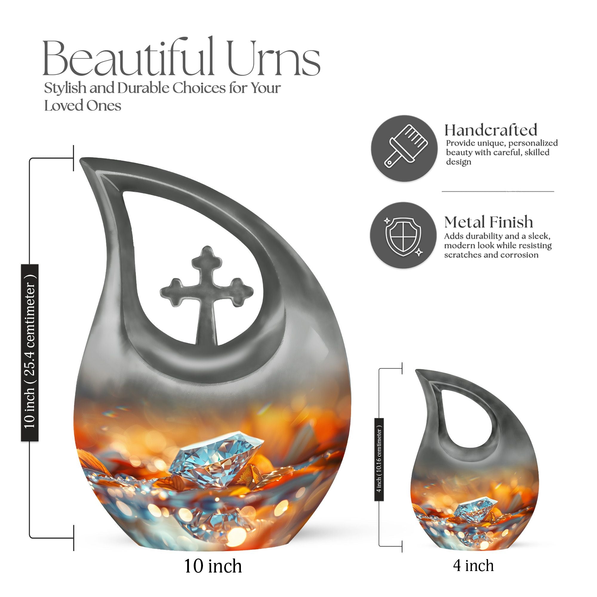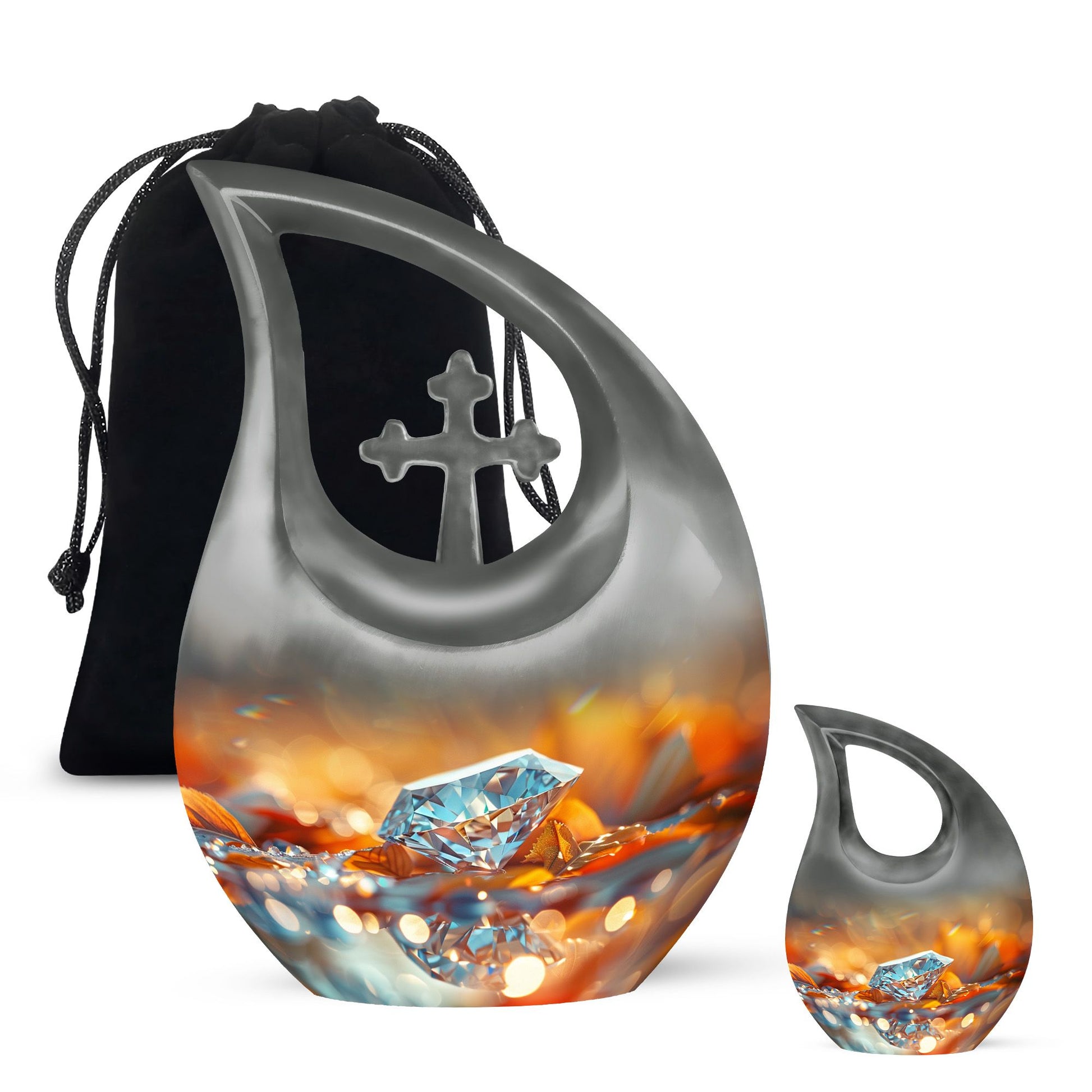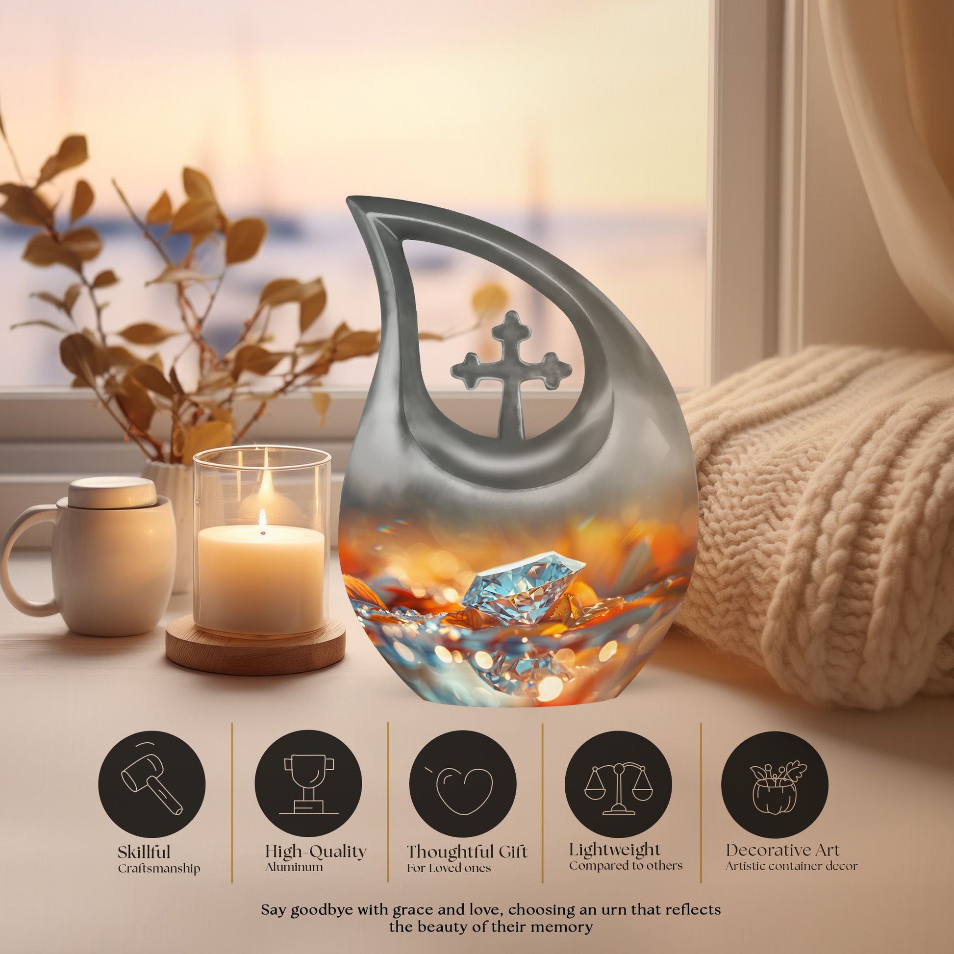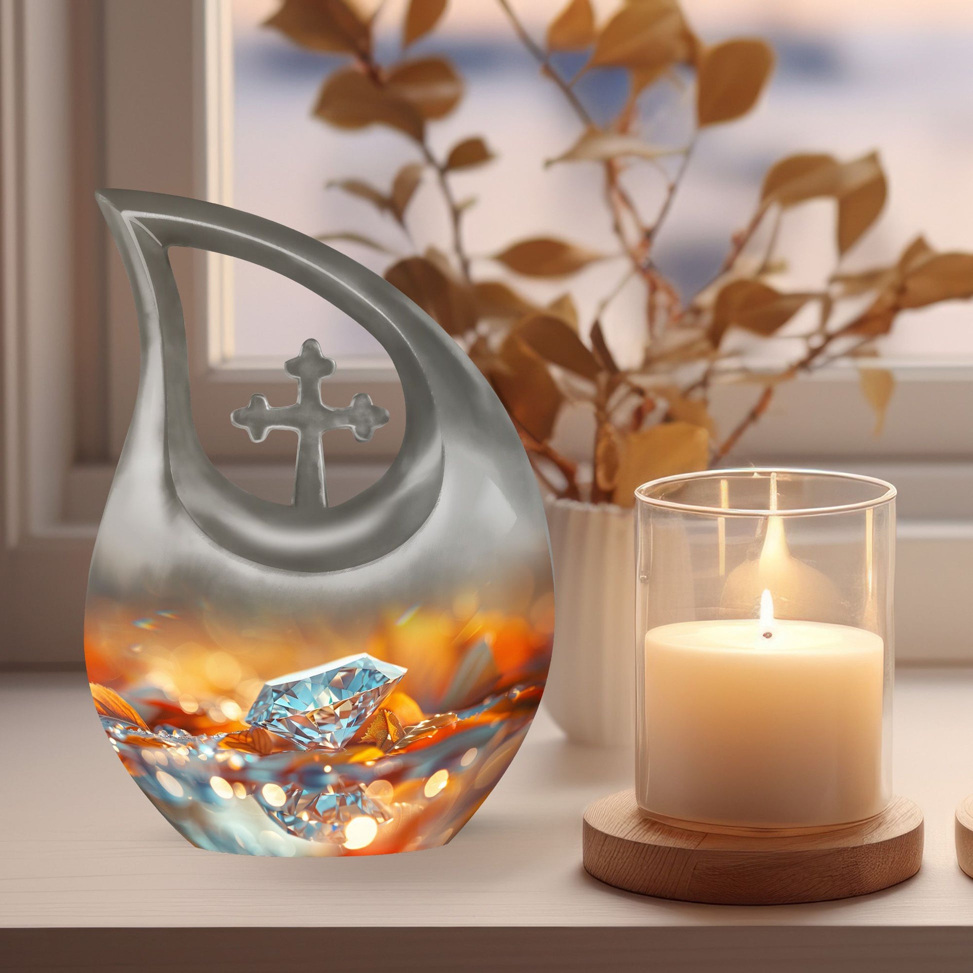 Crafted to honor memories with grace and love, this Diamond Memorial Urn offers a heartfelt resting place for those seeking small burial urns for adult human ashes or meaningful cremation keepsakes for ashes. Its shimmering diamond pattern symbolizes everlasting connection, making it a comforting choice for families remembering someone dear.