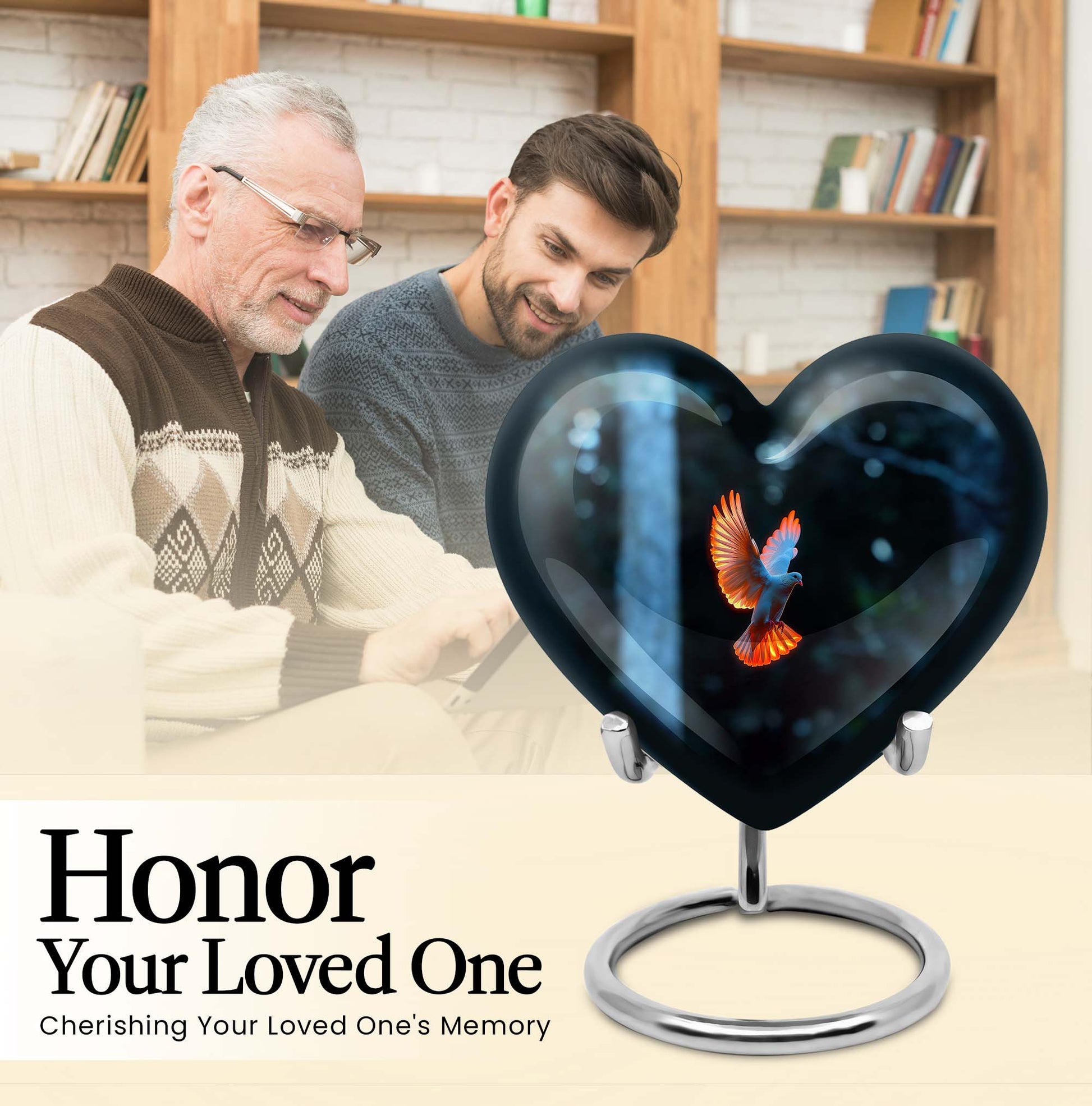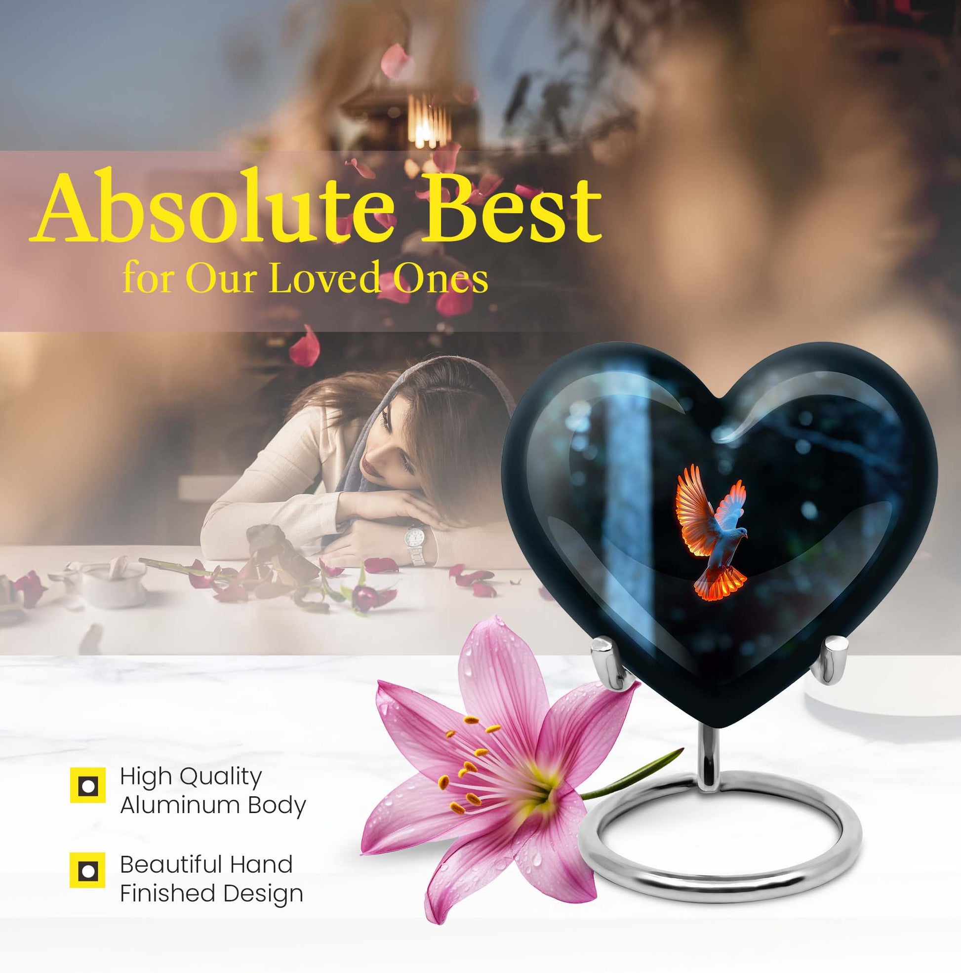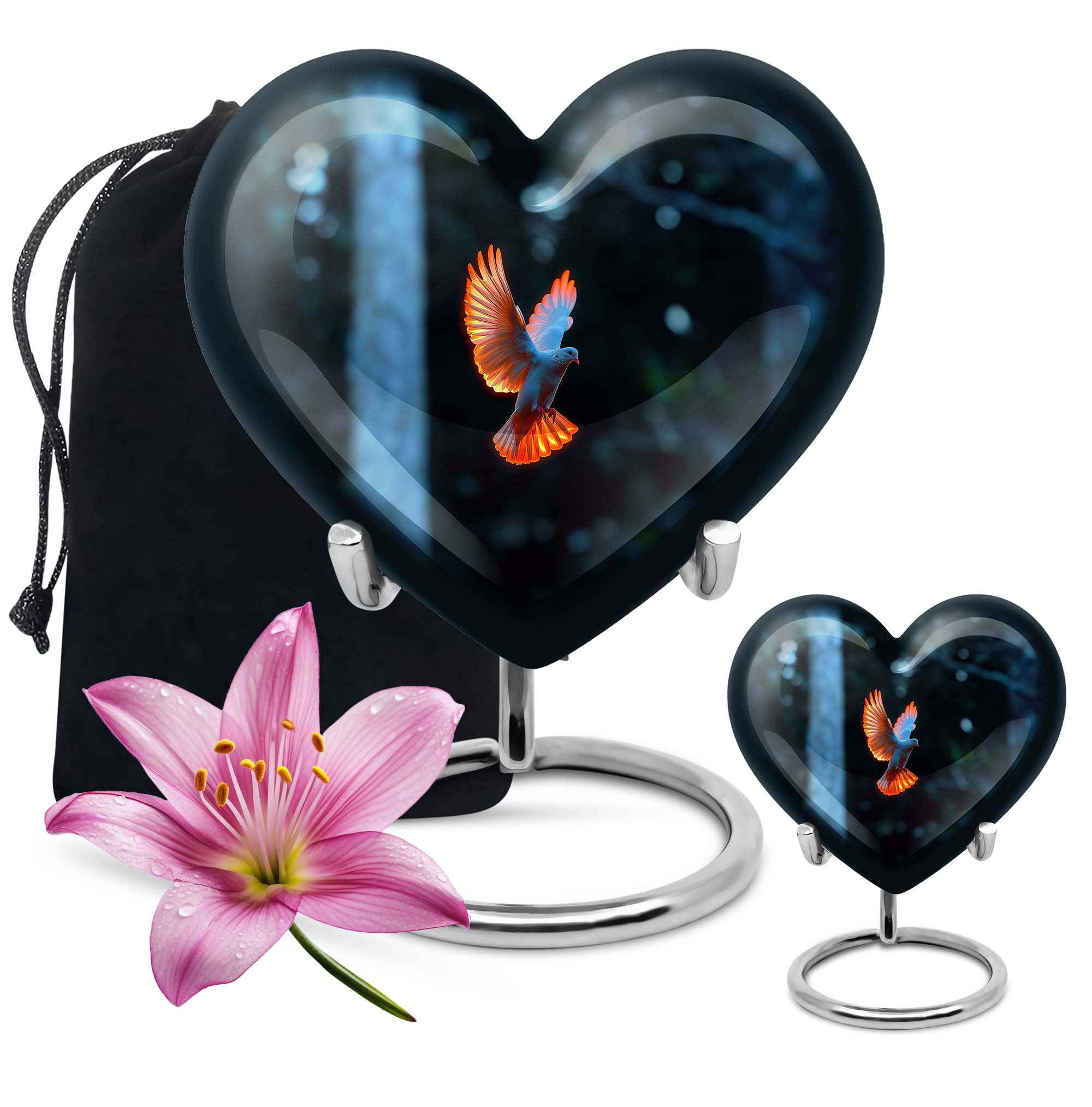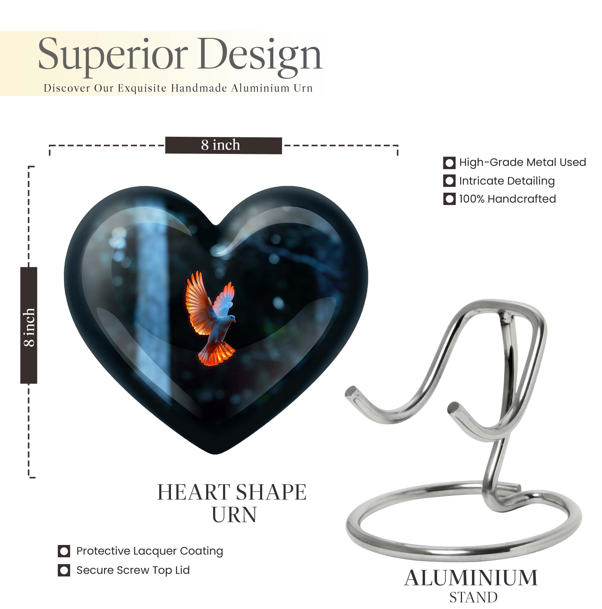 Cherish the memory of your loved ones with this captivatingly designed dove urn, a respectful final rest display that beautifully encapsulates your love for them. This 10-inch, large urn professes an appealing heart design with an underlining floral theme, making it an exquisite resting place for adult ashes of both men and women. Made of robust aluminium, this cremation urn is skillfully designed for longevity and durability. It weighs 3.3 pounds and holds a total capacity of up to 200 cubic inches, truly a voluminous container for the cherished ashes. The package also includes a velvet pouch which further aids in the containment of ashes. One can further instill their personal touch by customizing it with engraved names, a testament to undying memories. This large sized burial funeral urn is an ideal choice, prioritizing both aesthetics and functionality. Perfect for ash adult ashes from either men or women, it also aptly suits earth-bound burial processes. Cosset the reminiscences in an urn that is both dignified and elegant.