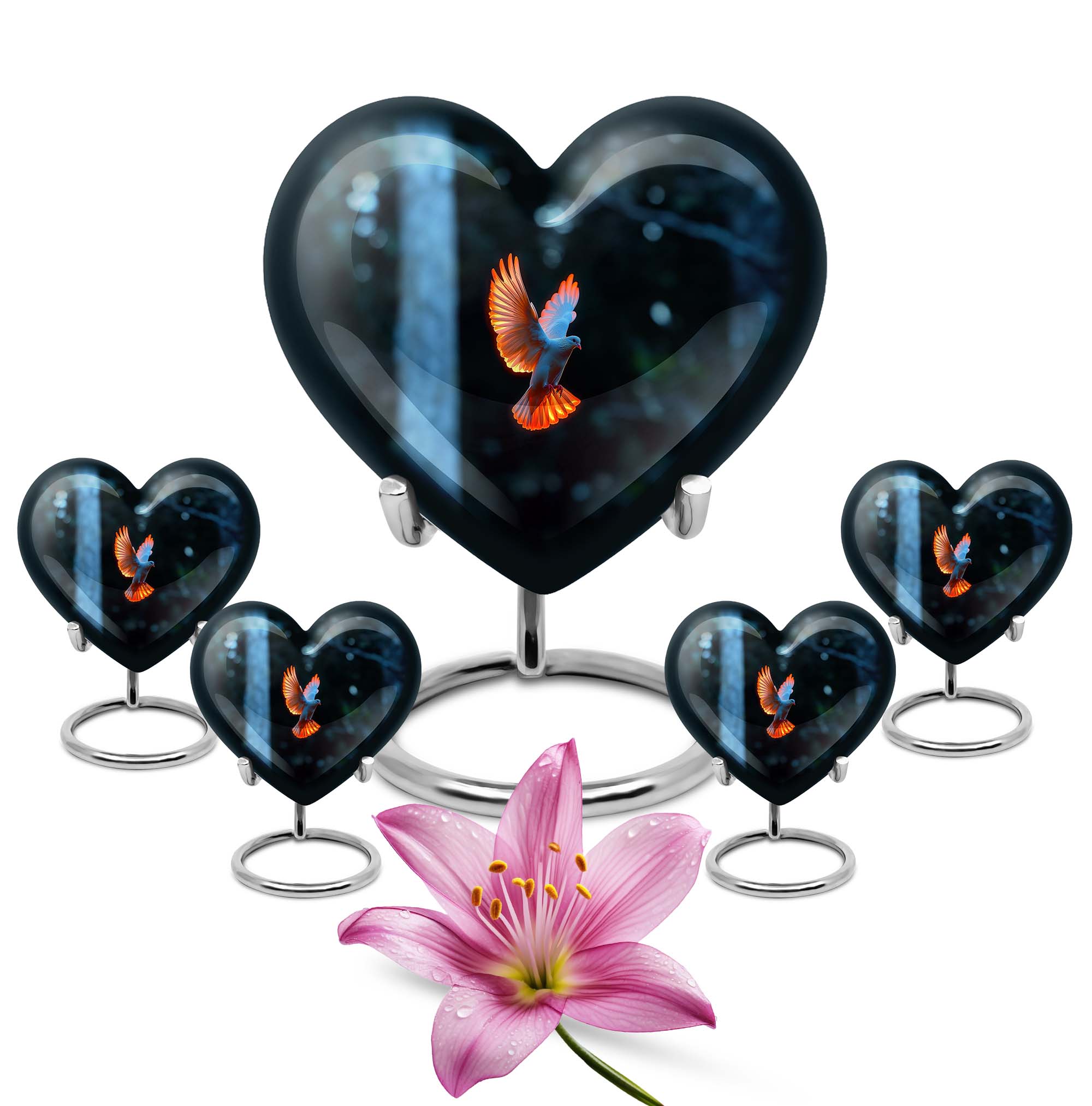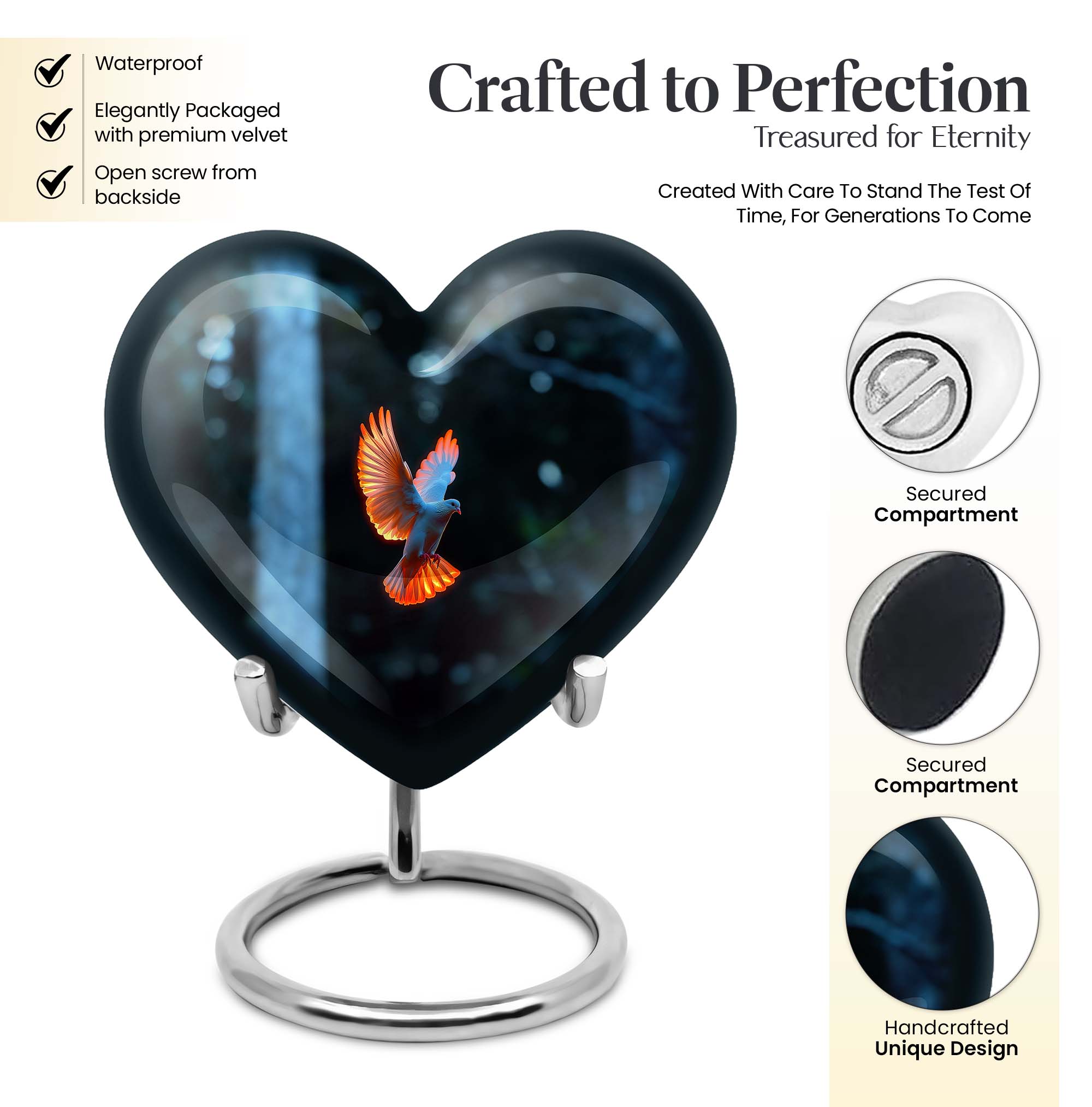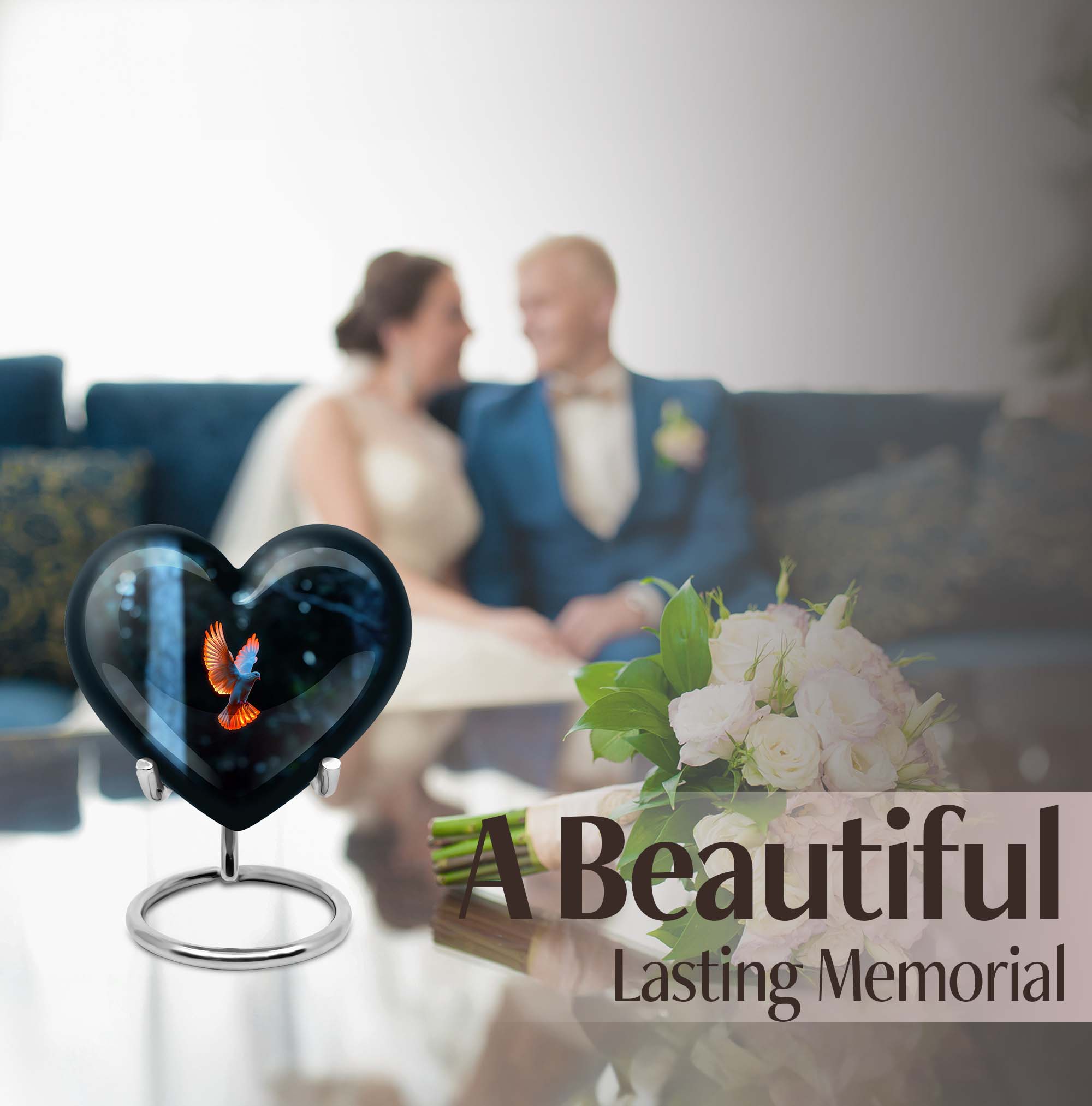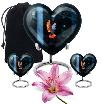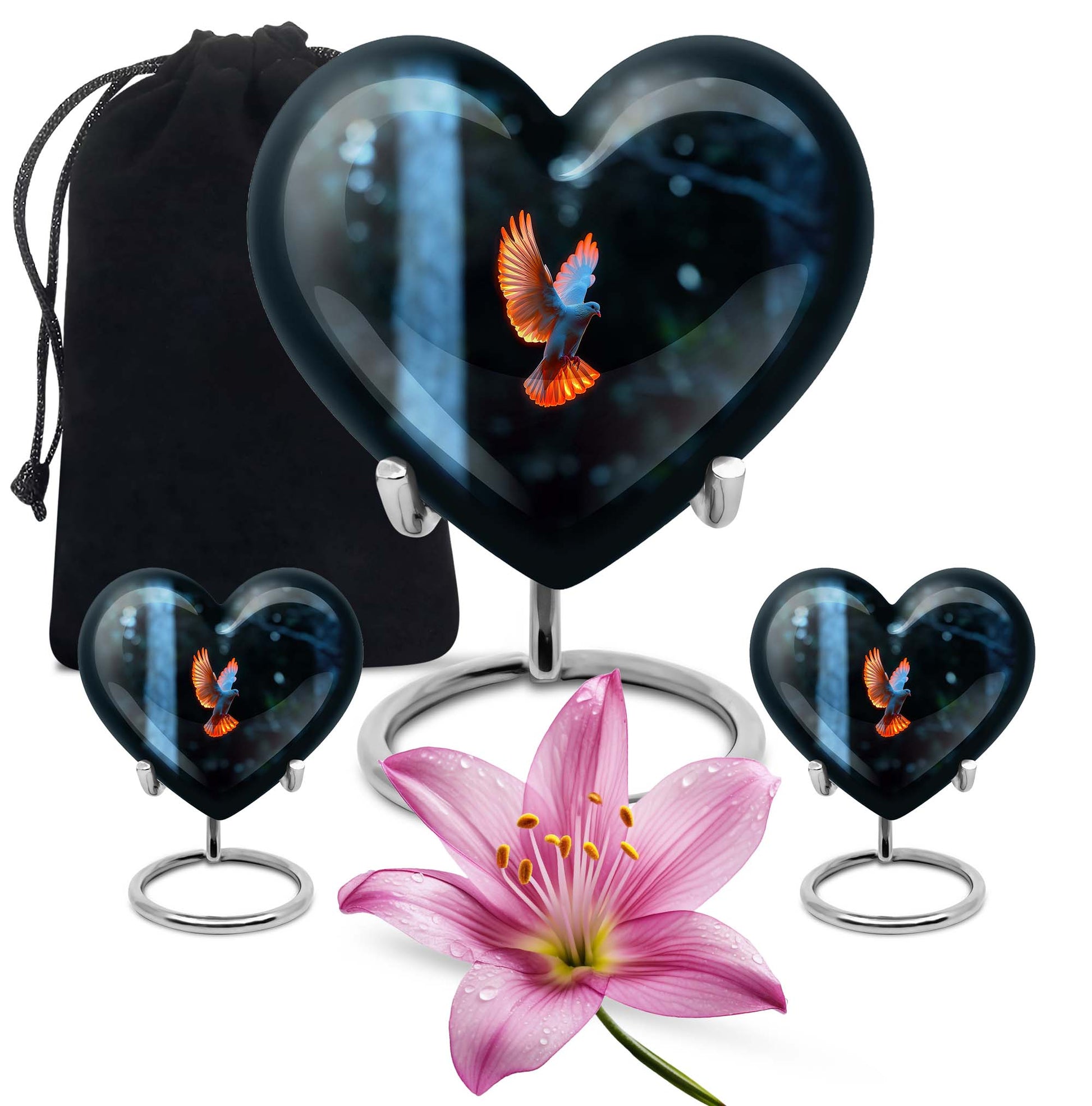 Cherish the memory of your loved ones with this captivatingly designed dove urn, a respectful final rest display that beautifully encapsulates your love for them. This 10-inch, large urn professes an appealing heart design with an underlining floral theme, making it an exquisite resting place for adult ashes of both men and women. Made of robust aluminium, this cremation urn is skillfully designed for longevity and durability. It weighs 3.3 pounds and holds a total capacity of up to 200 cubic inches, truly a voluminous container for the cherished ashes. The package also includes a velvet pouch which further aids in the containment of ashes. One can further instill their personal touch by customizing it with engraved names, a testament to undying memories. This large sized burial funeral urn is an ideal choice, prioritizing both aesthetics and functionality. Perfect for ash adult ashes from either men or women, it also aptly suits earth-bound burial processes. Cosset the reminiscences in an urn that is both dignified and elegant.