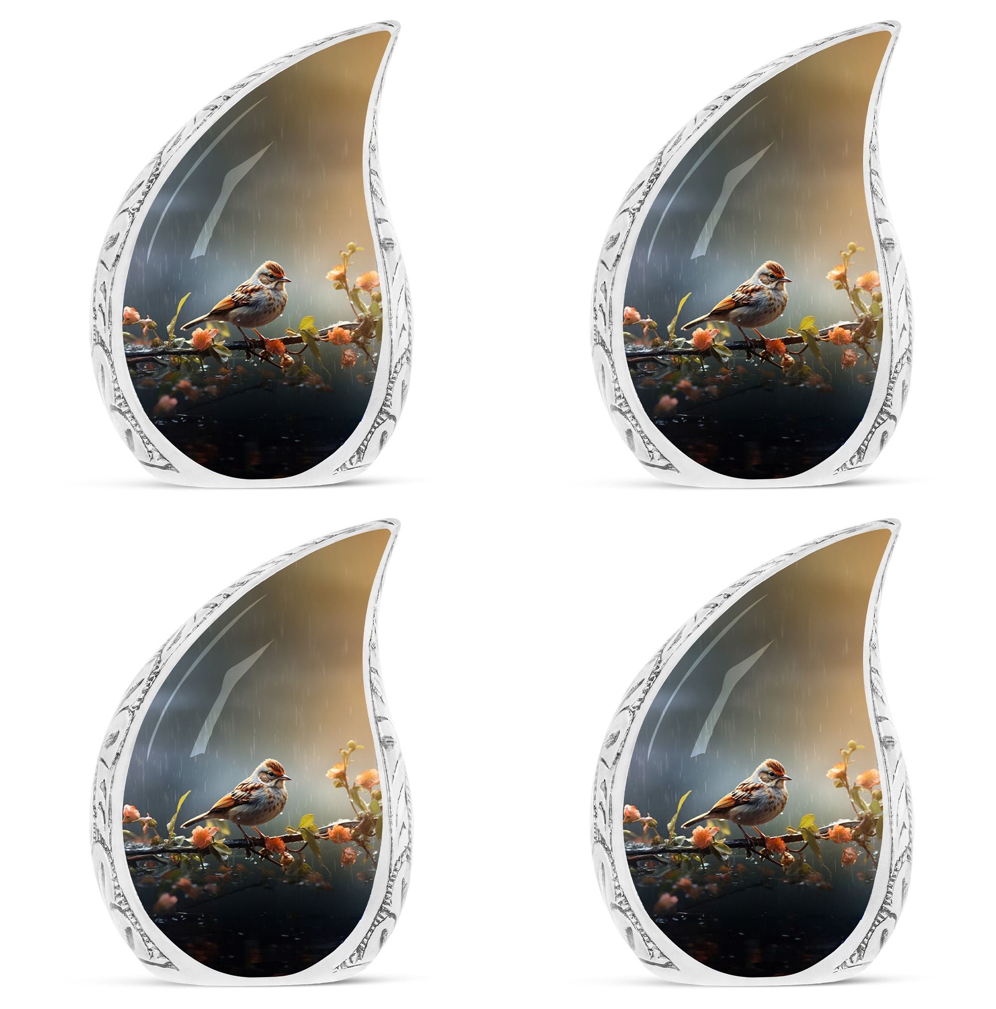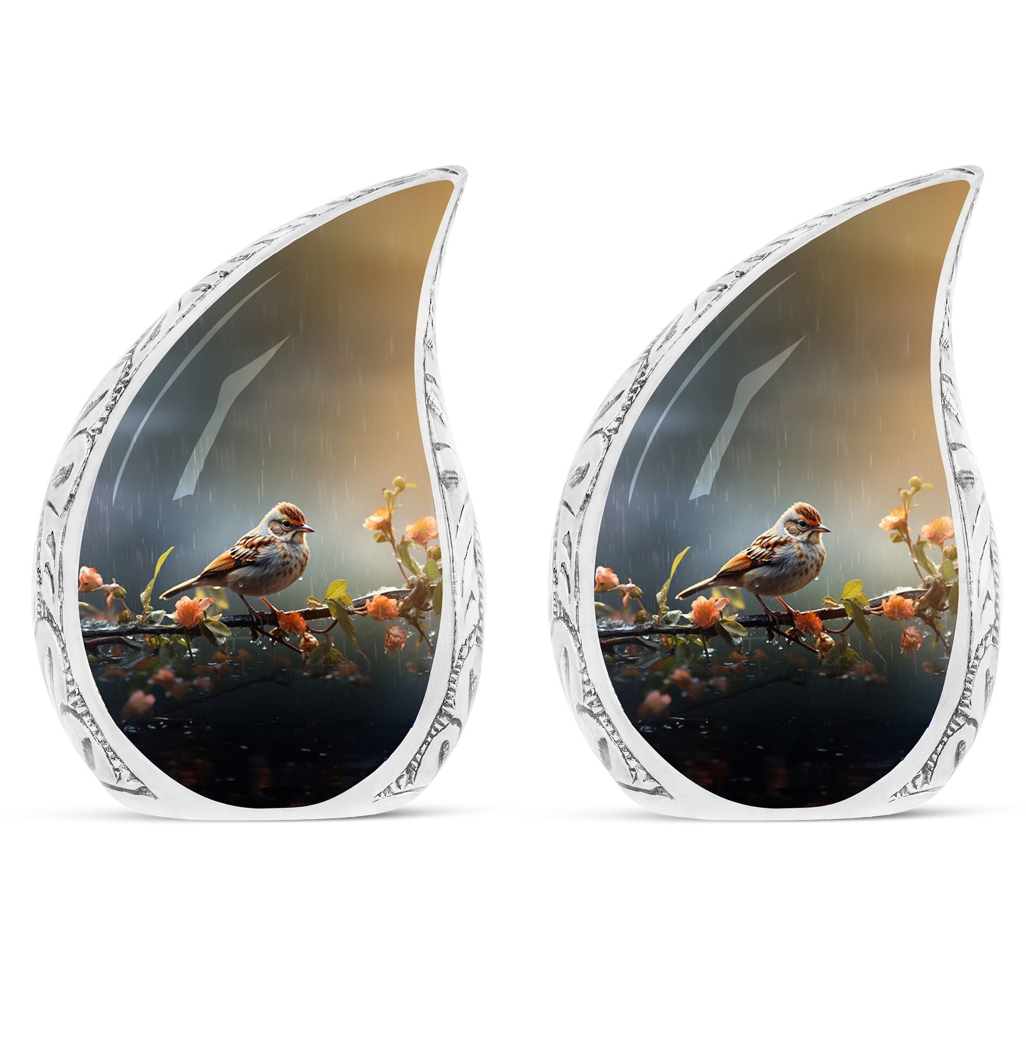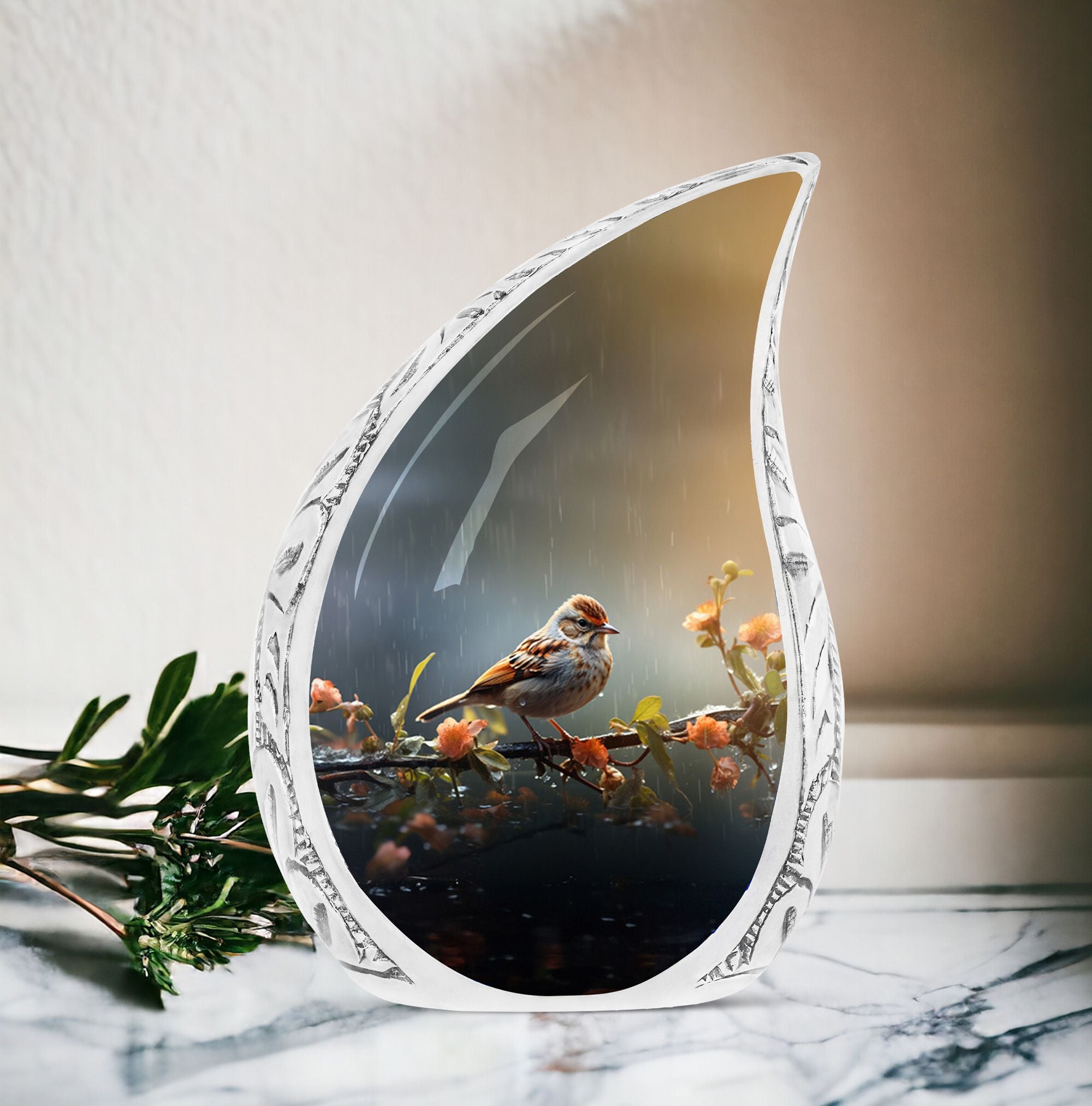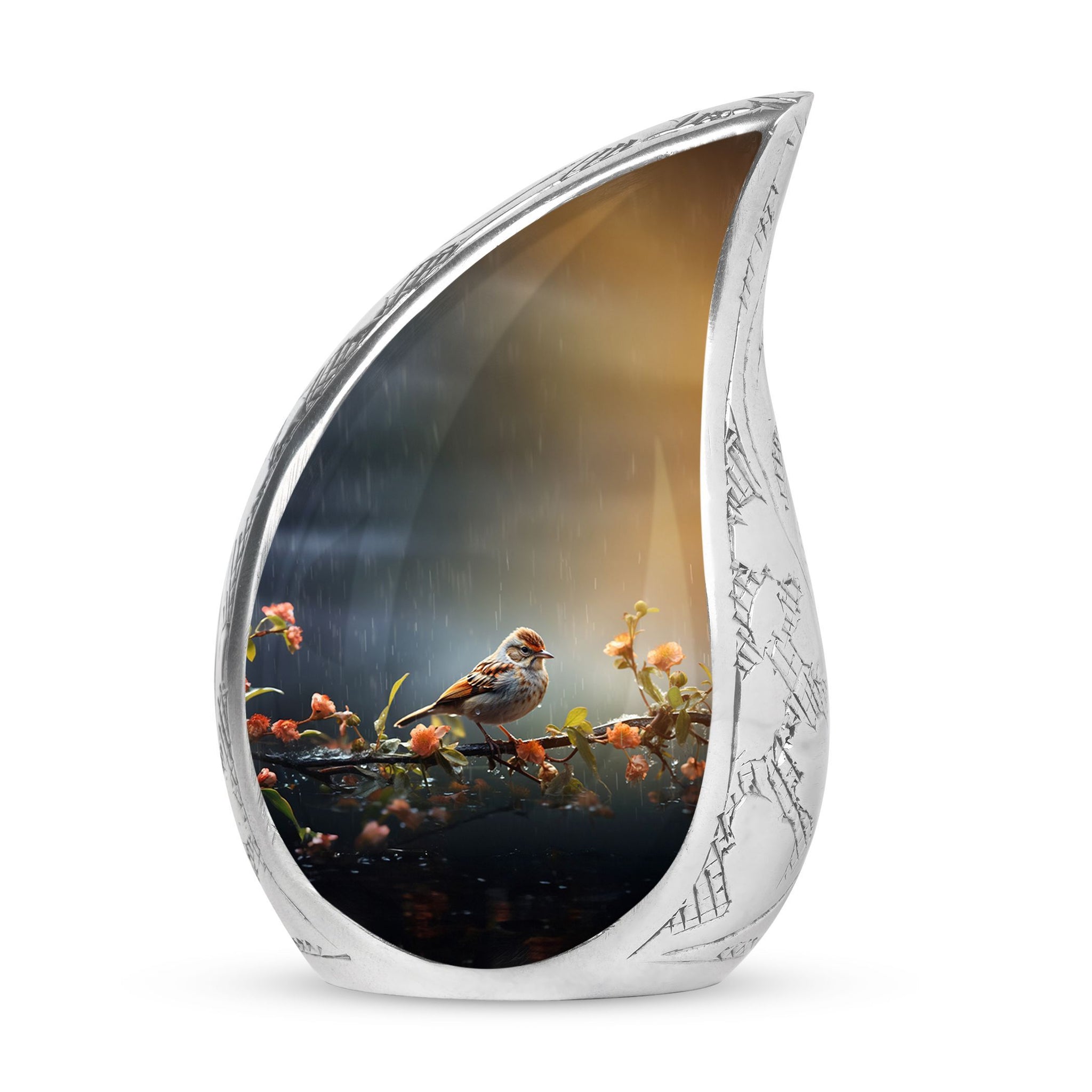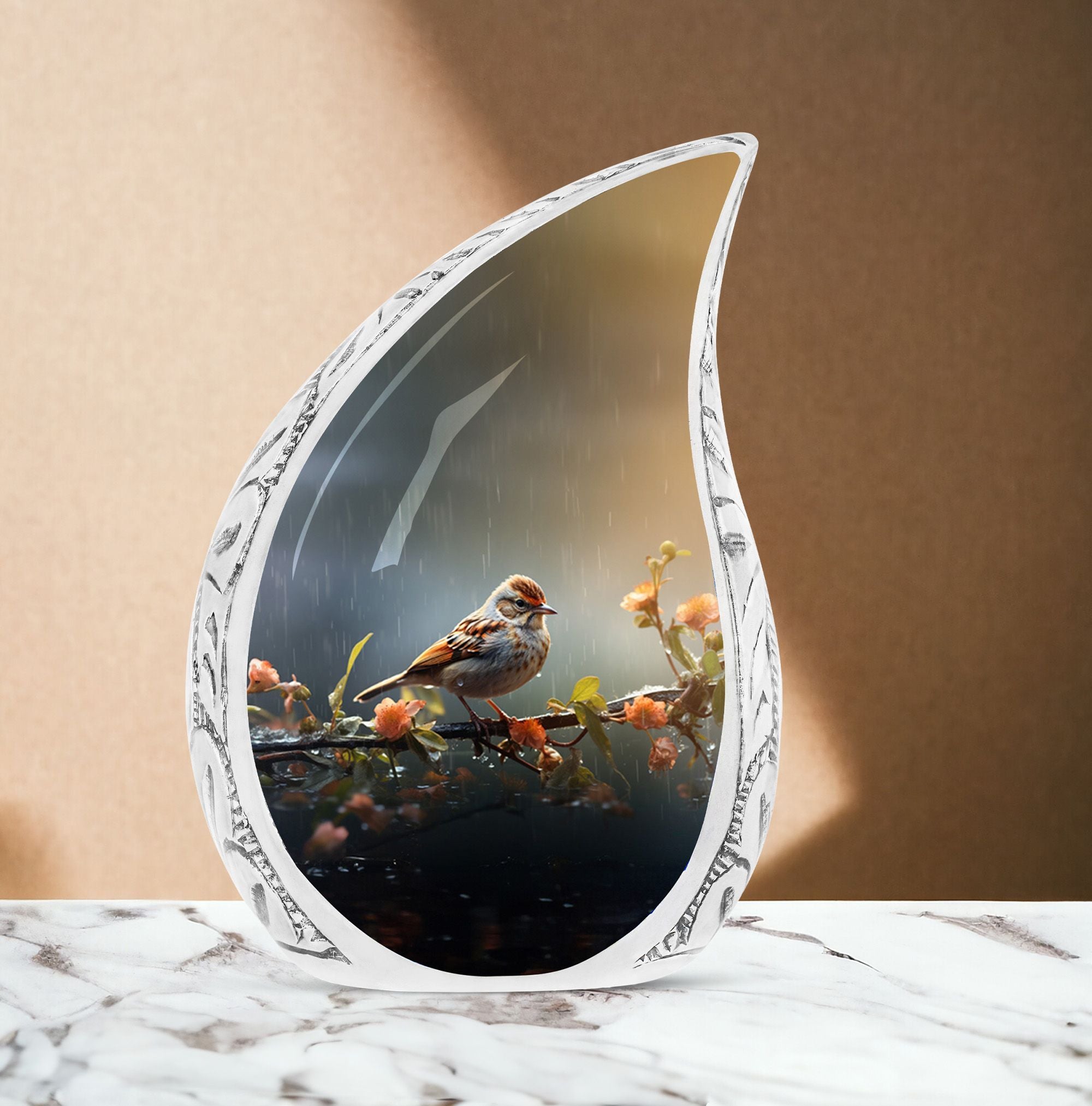 Engage in the healing process with our Red Sparrow urns for ashes, a high-quality resting place for your loved ones. With a size of 3 inches and a solid weight of 3.3 pounds, these large urns offer a capacity of 200 cubic inches, ample space for securely storing ashes. Handcrafted from superior aluminium, the Classic Urn is designed to be durable yet elegant. The package includes a soft velvet pouch for containing the ashes, adding a level of sophistication and protection. Each urn allows for personalization, letting you engrave names and create a unique tribute to your dearly departed. Whether you're looking for urns for Mom or decorative urns for human ashes, our product aligns with the solemnity of the situation while serving as a memorable keepsake. It serves as an ideal addition to memorial ceremonies. Our offering speaks to those who value quality and meaningfulness in their ashes holders for cremation and containers for human ashes.
