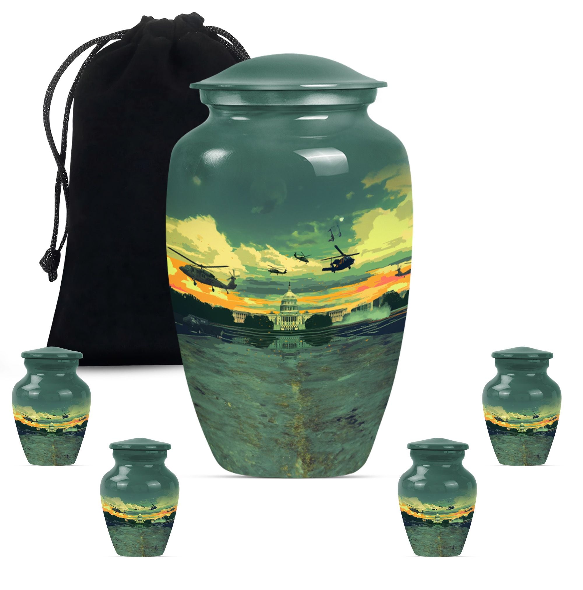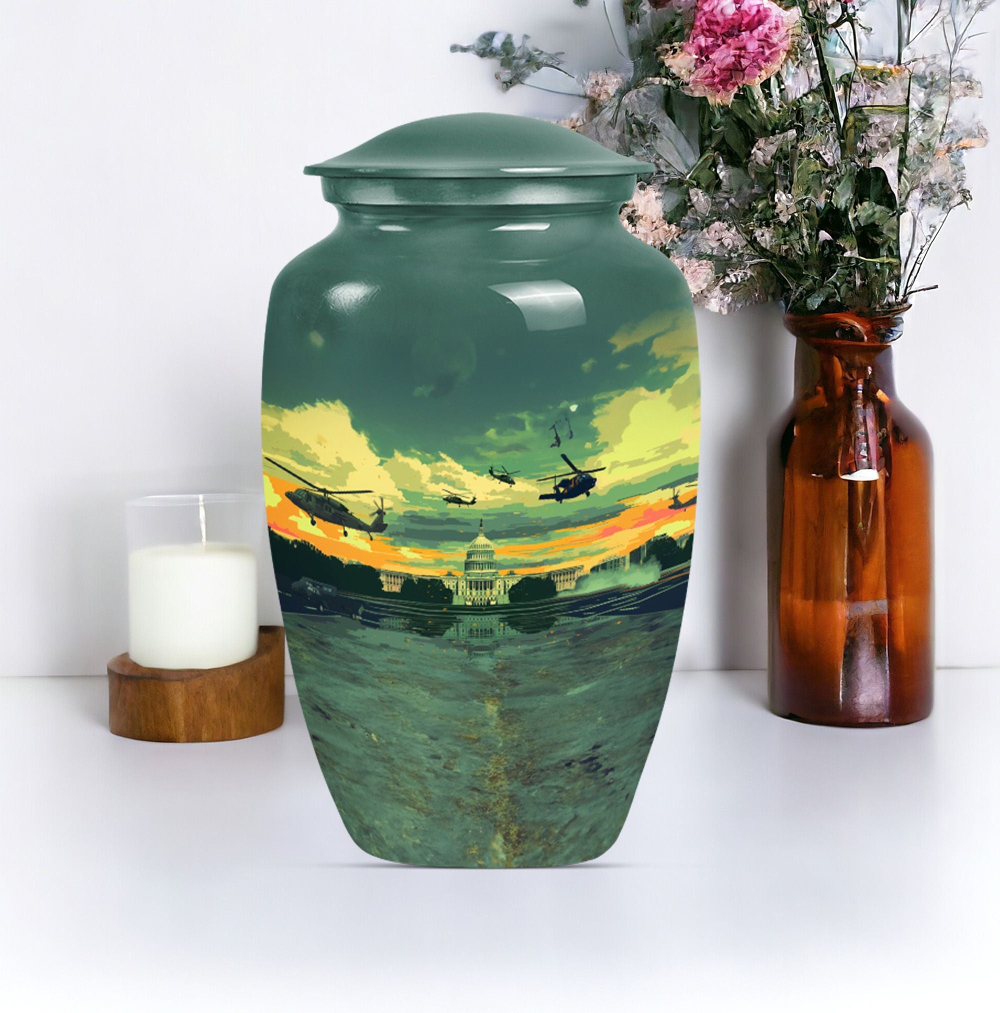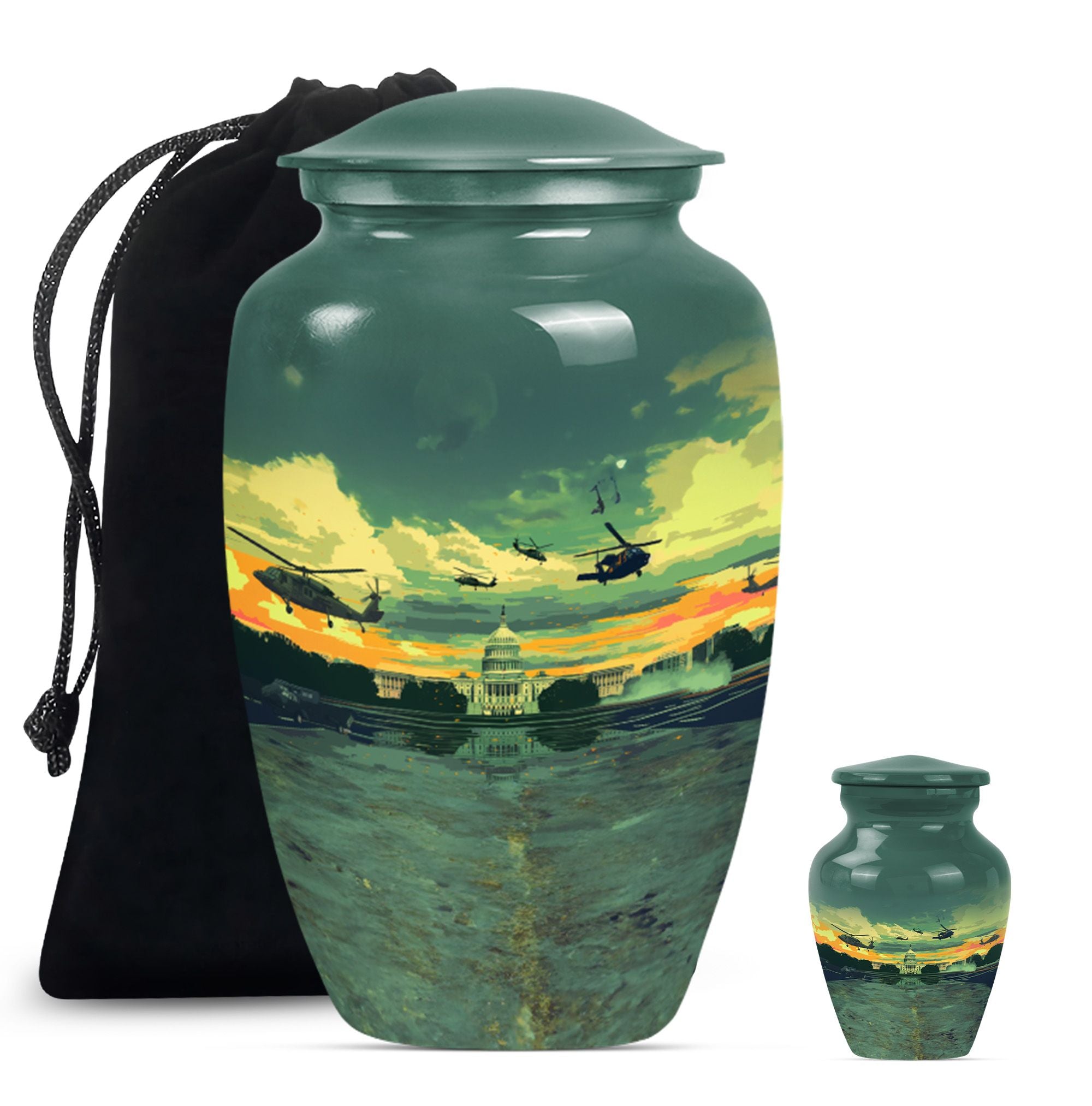 Honor the memory of your departed loved ones with our classic 10-Inch Military Urn. Crafted meticulously from high-quality, enduring Aluminium, this large urn is specifically designed to provide a dignified resting place. Featuring a weight of 3.3 pounds and dimensions of 10 inches in height, the urn offers ample space with its 200-cubic inch capacity, making it a suitable choice among memorial adult urns. The abstract theme doesn't impose a specific sense of style, making it a respectful choice for any individual. Each purchase also includes a lovely velvet pouch, providing a safe and respectable containment for the ashes. Elevate the personal touch with customization options that allow for engraved names. This memorial urn aligns perfectly with those seeking military urns or cremation urns for burial in the ground. Appreciate the remembrance of your loved ones with this quintessential symbol of commemoration.