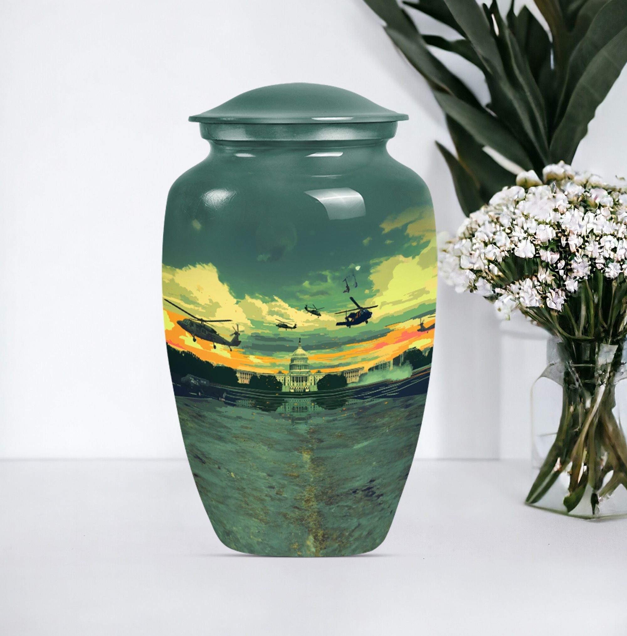 Honor the memory of your departed loved ones with our classic 10-Inch Military Urn. Crafted meticulously from high-quality, enduring Aluminium, this large urn is specifically designed to provide a dignified resting place. Featuring a weight of 3.3 pounds and dimensions of 10 inches in height, the urn offers ample space with its 200-cubic inch capacity, making it a suitable choice among memorial adult urns. The abstract theme doesn't impose a specific sense of style, making it a respectful choice for any individual. Each purchase also includes a lovely velvet pouch, providing a safe and respectable containment for the ashes. Elevate the personal touch with customization options that allow for engraved names. This memorial urn aligns perfectly with those seeking military urns or cremation urns for burial in the ground. Appreciate the remembrance of your loved ones with this quintessential symbol of commemoration.