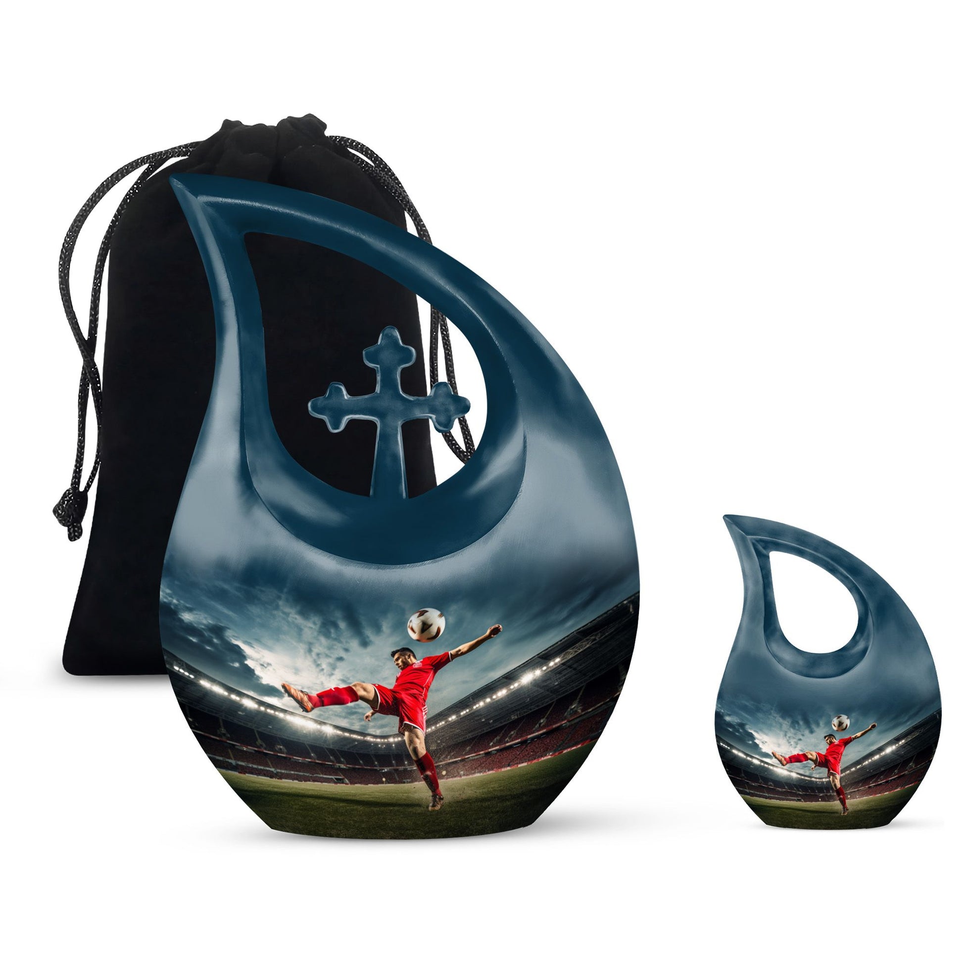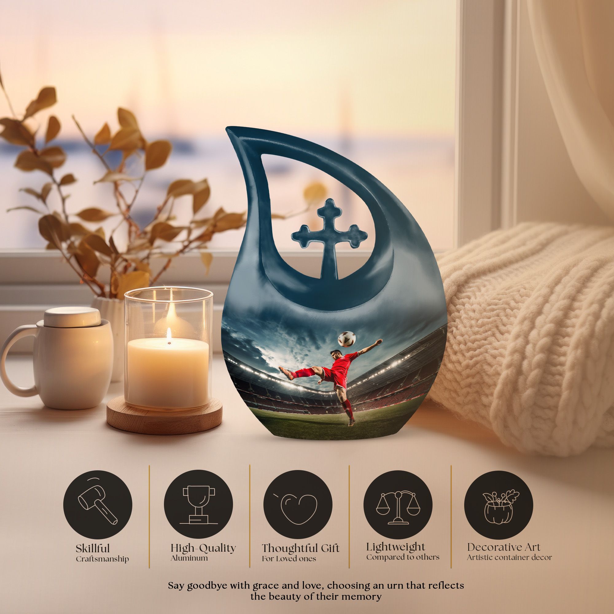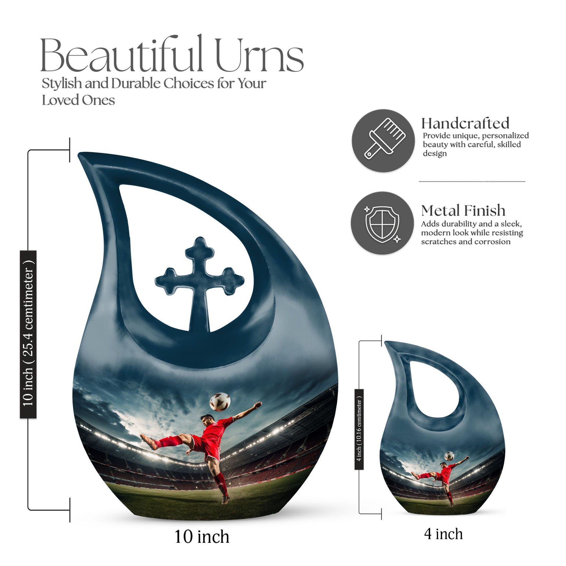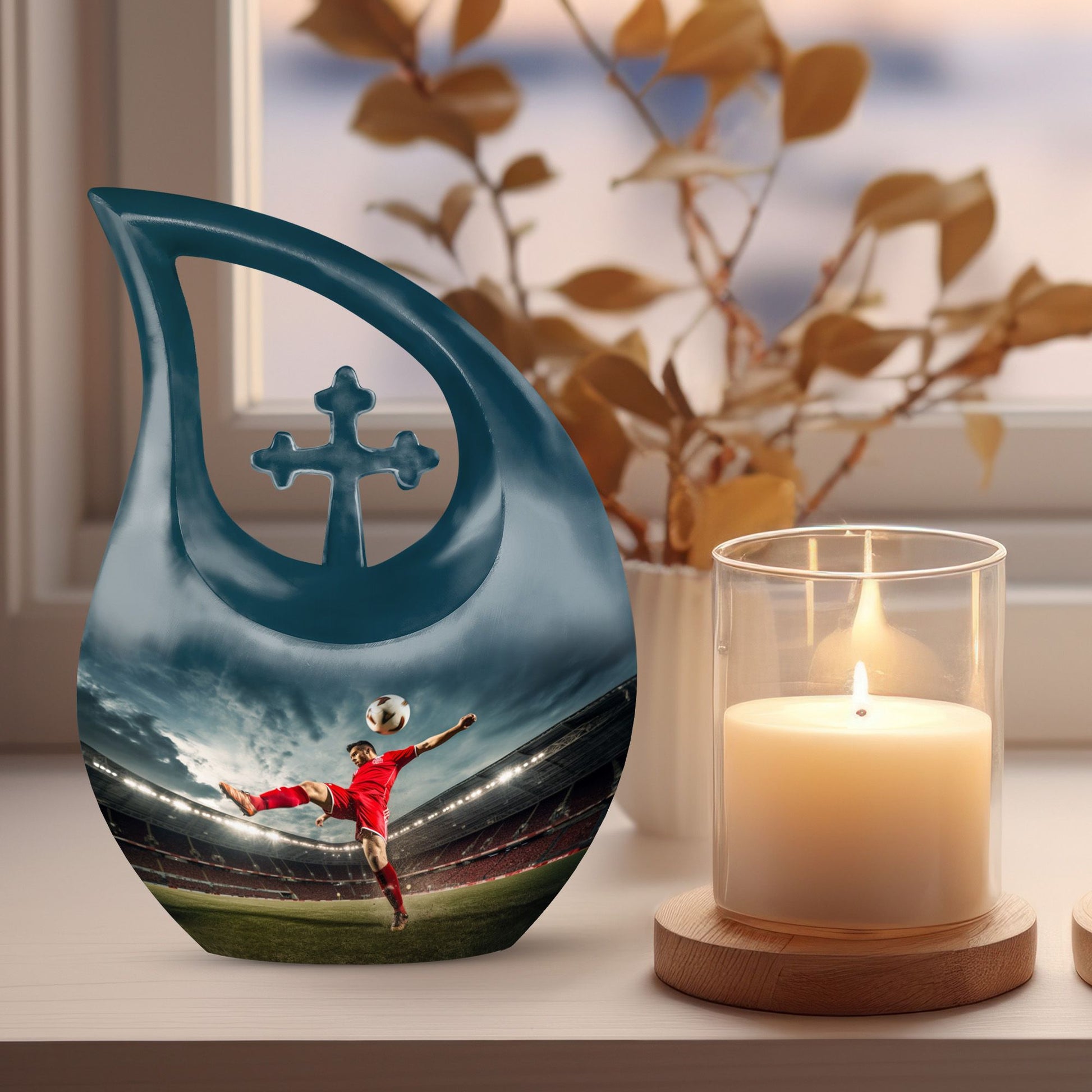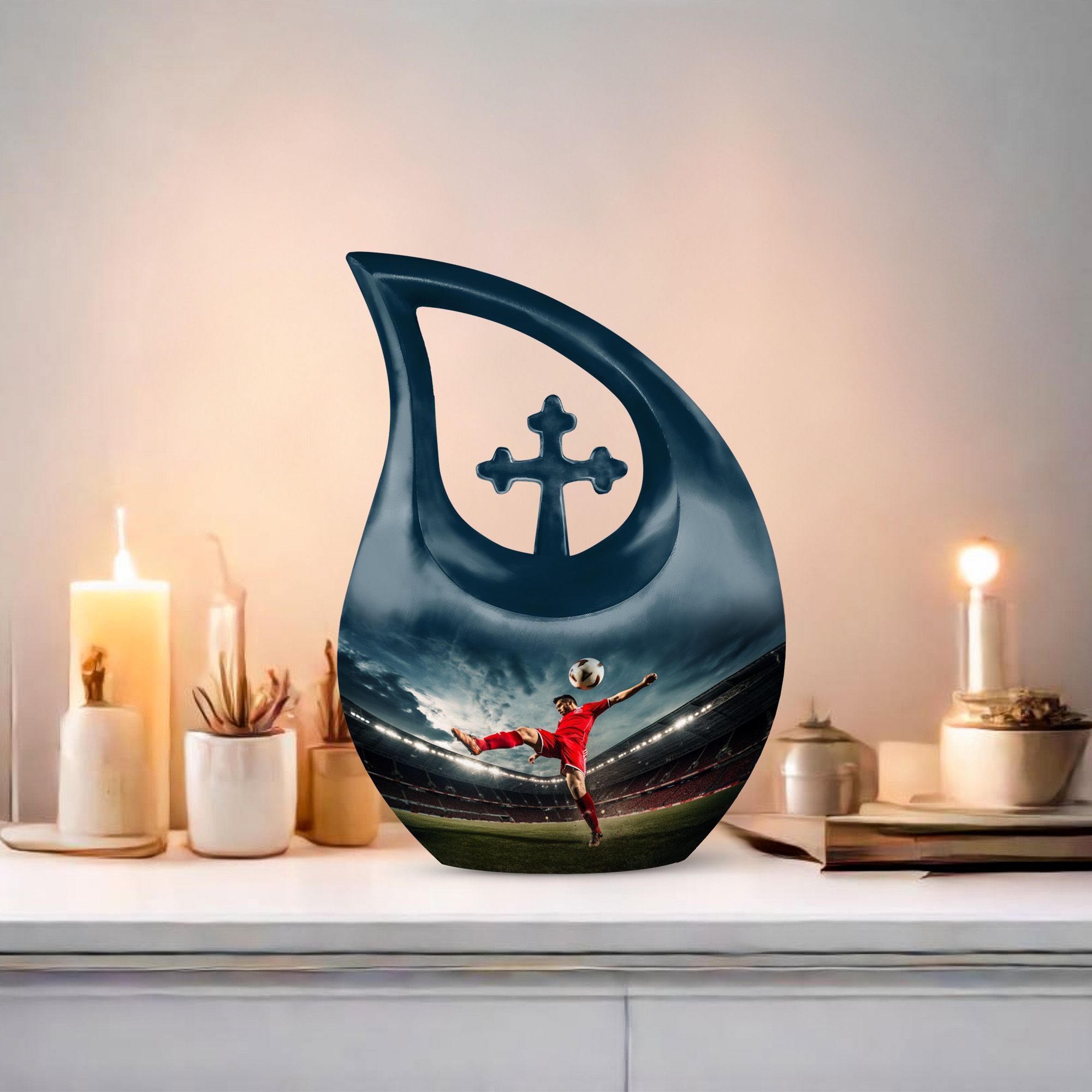 A tribute filled with passion, energy, and lifelong memories, this Soccer Memorial Urn for Cremation honors the spirit of someone who loved the game. Designed for both men and women, it offers a meaningful and uplifting way to preserve a cherished life—ideal for families seeking a large urn human ashes option with a sporty, personal touch.