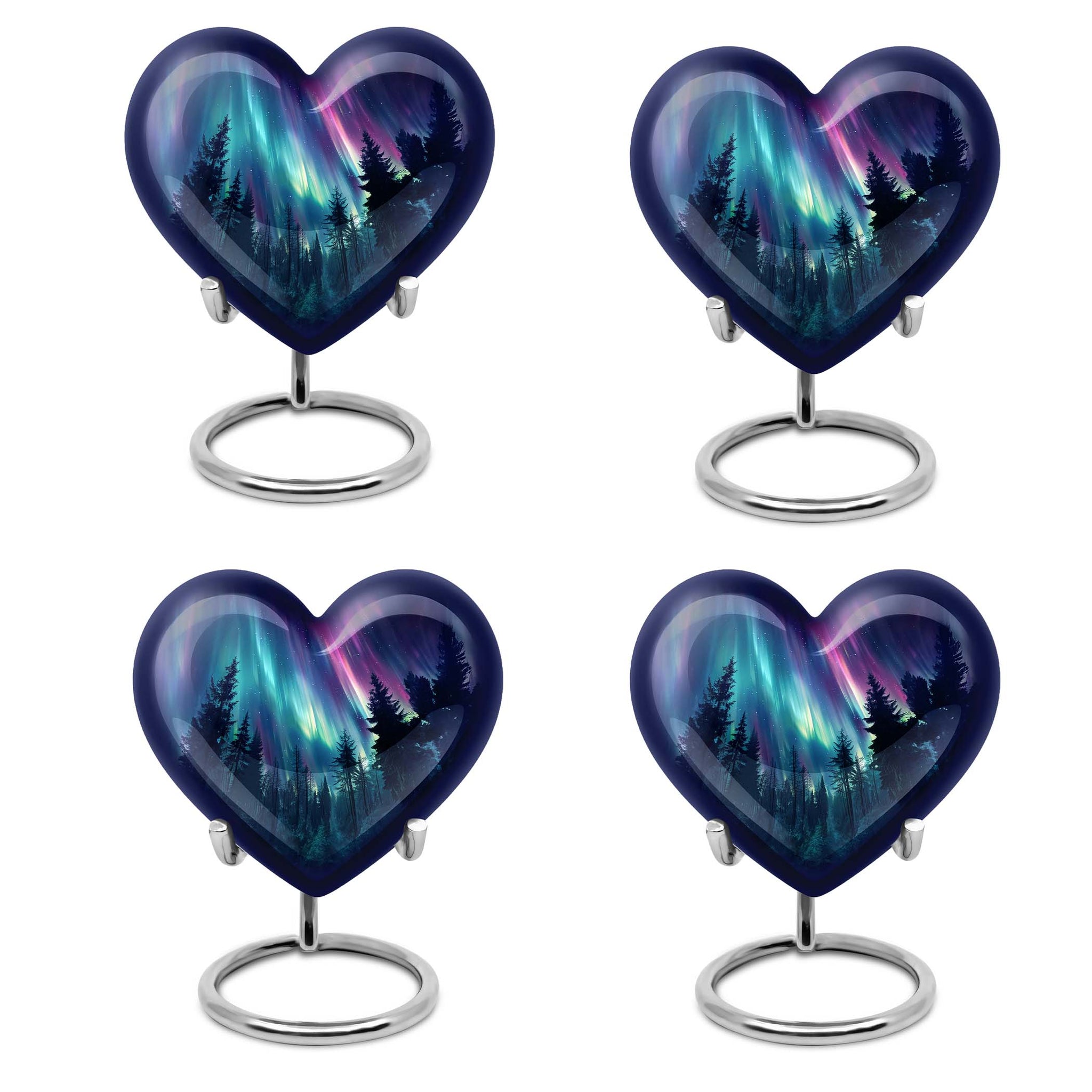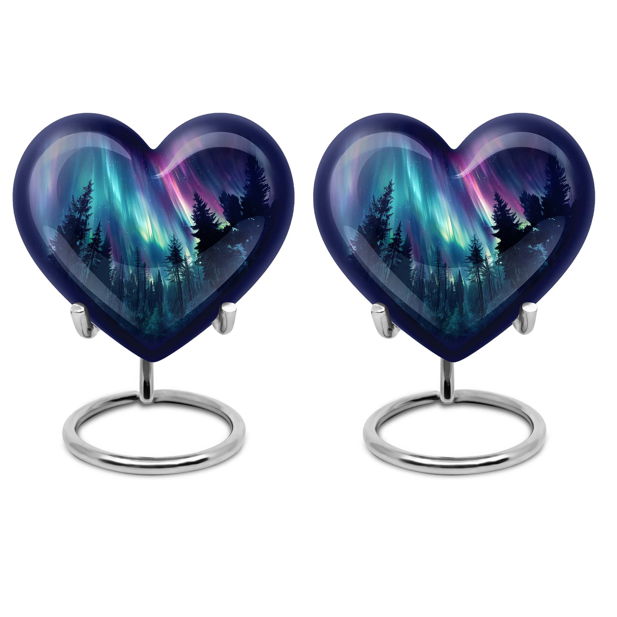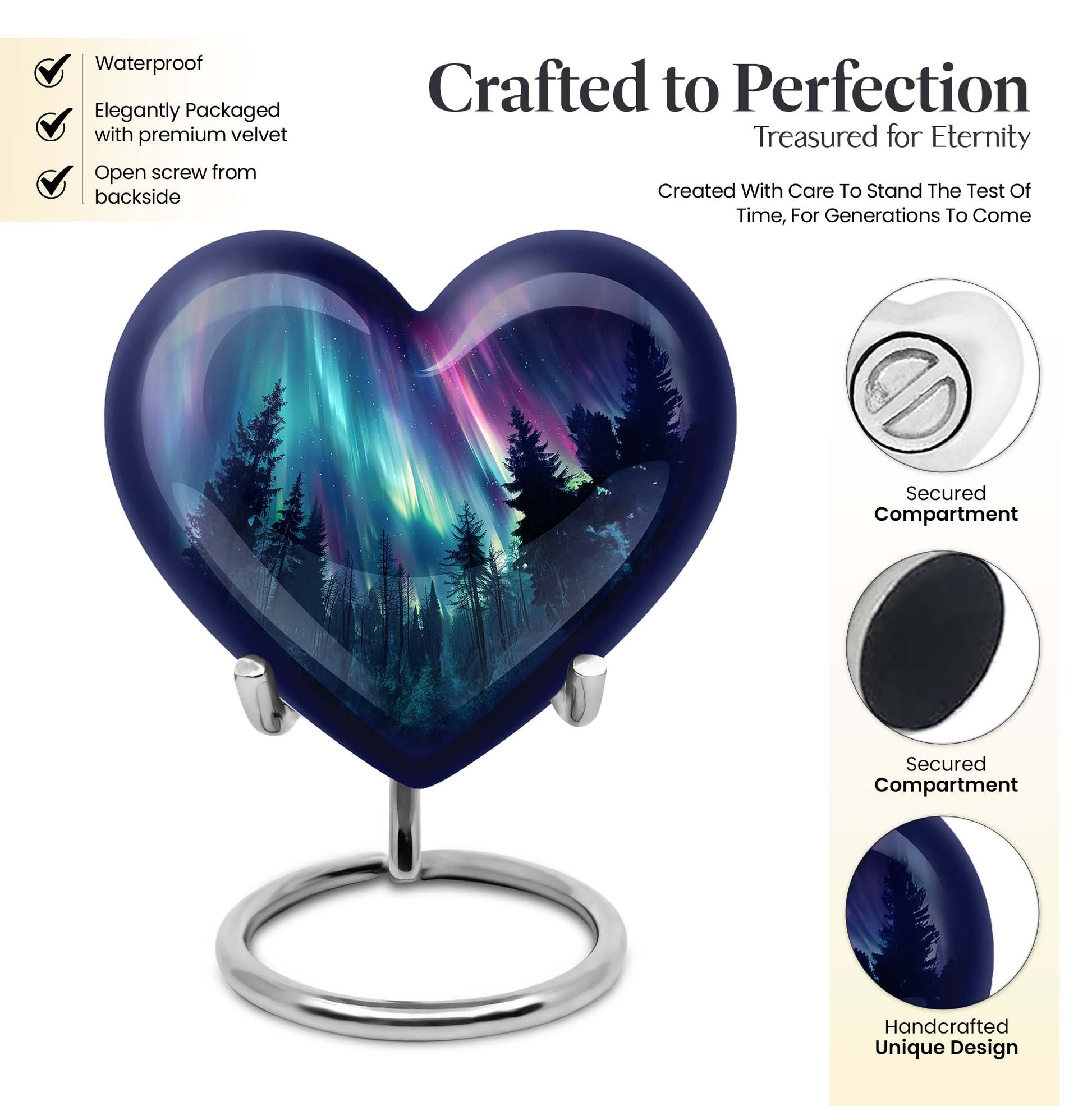 Embrace a unique way to remember your loved ones with the AURORA Urn. Crafted from quality aluminium, this monumental burial urn for human ashes stands tall at 10 inches, displaying an intriguing abstract theme that beautifully embodies a heartfelt message of eternal love and peace. It tips the scale at 3.3 pounds, providing a substantial capacity of 200 cubic inches, ample space for adult ashes. The AURORA Urn features an endearing heart motif, enhancing the emotional connection to your departed ones. For a more personalized touch, make use of the urn's customization option and engrave names on it, making it a timeless testament to their memory. This sizeable urn comes with a velvet pouch that offers graceful containment of the ashes, adding dignity and respect to your memorial essentials. Whether you're seeking funeral urns for mom or other loved ones, our burial urn sets an honorable stage for remembrance. Take a step towards closure, choose AURORA for your memorial urn needs.