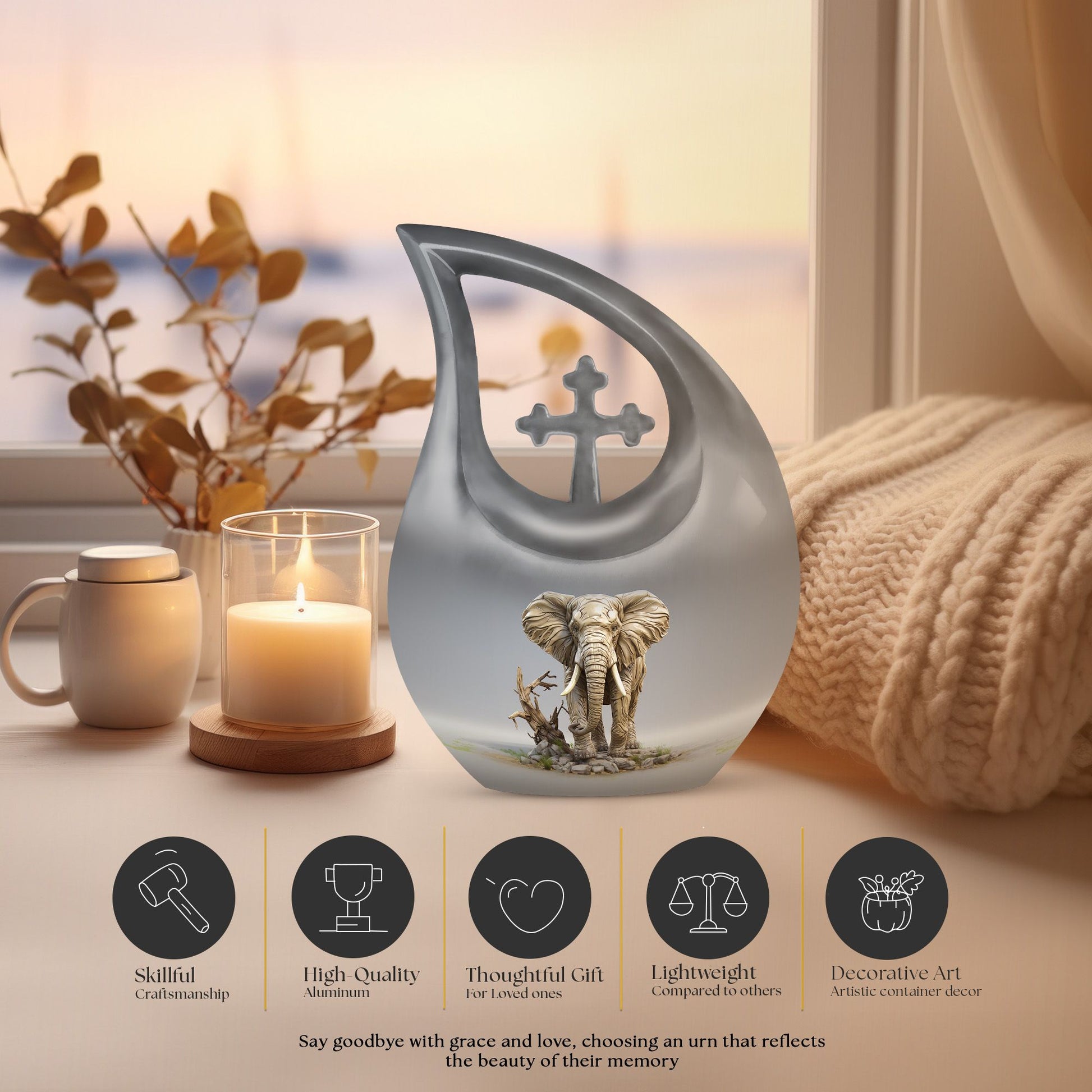 Expertly handcrafted, this large decorative urn is made from durable aluminium, ensuring both strength and elegance. Its stunning elephant motif symbolizes wisdom and serenity, making it a perfect centerpiece for any memorial space. With a polished finish and secure sealing, this cremation urn large ensures the safe keeping of ashes while offering timeless visual appeal. Whether you need large urns for human ashes or large funeral urns, this design blends artistry with compassion.