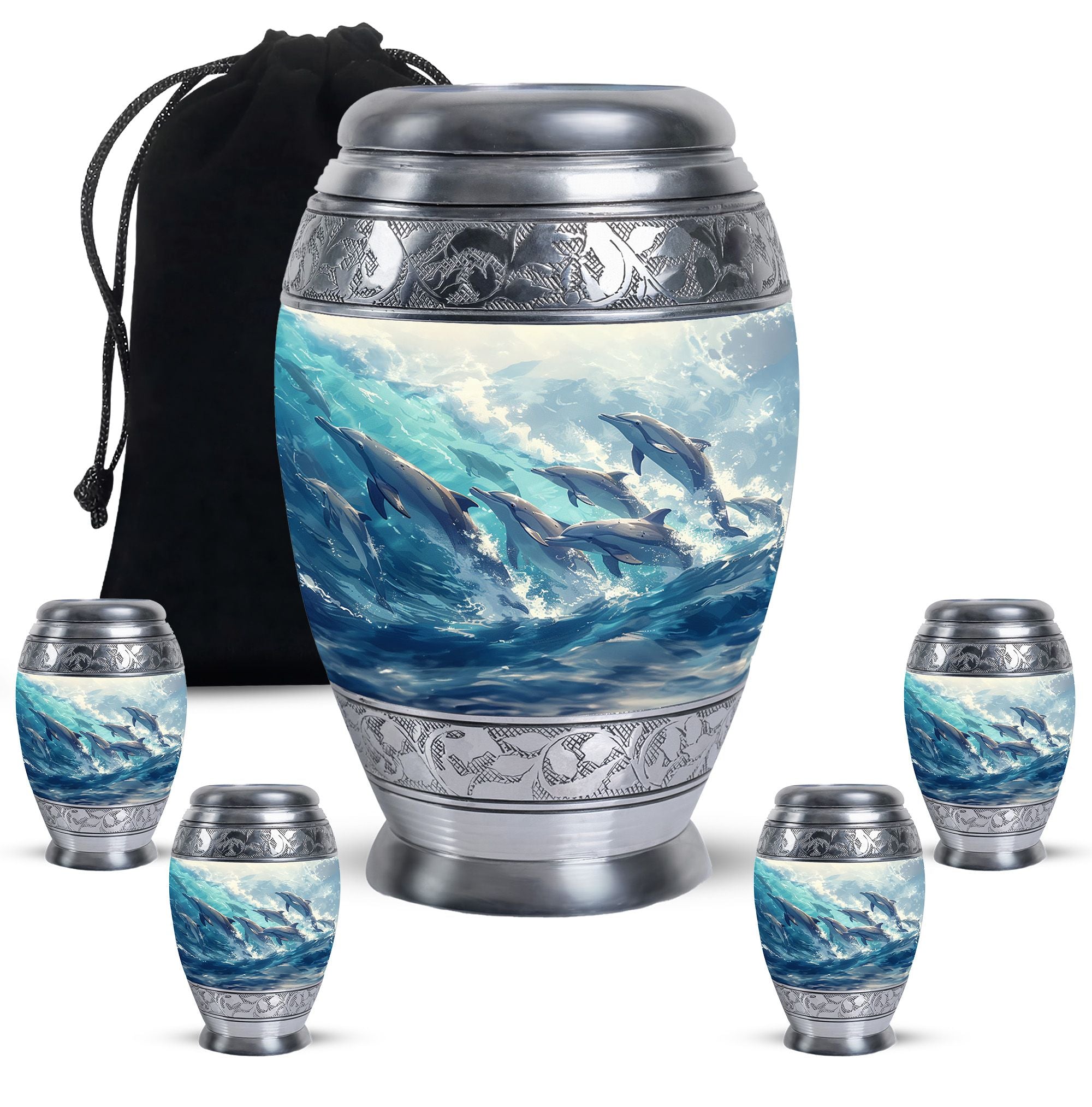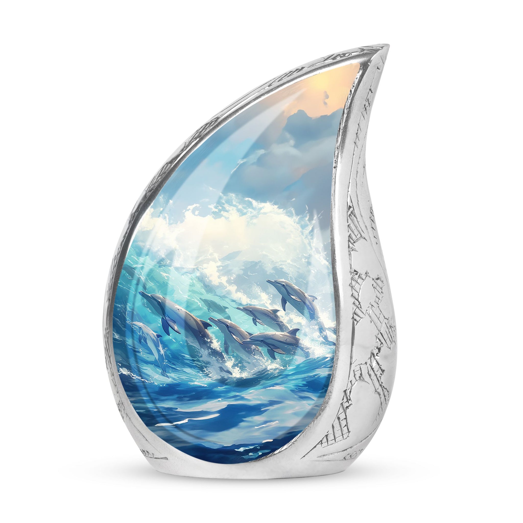 The Dolphin Family Cremation Urn is a compassionate and symbolic memorial, representing unity, guidance, and eternal love. With its detailed dolphin design set against a calming ocean scene, it serves as a meaningful choice for urns for adult male ashes, a mini urn for ashes adult male, or urns for cremation ashes female. Families can honor both men and women with dignity and peace through this unique design.