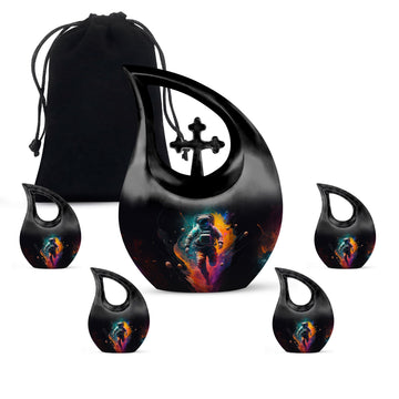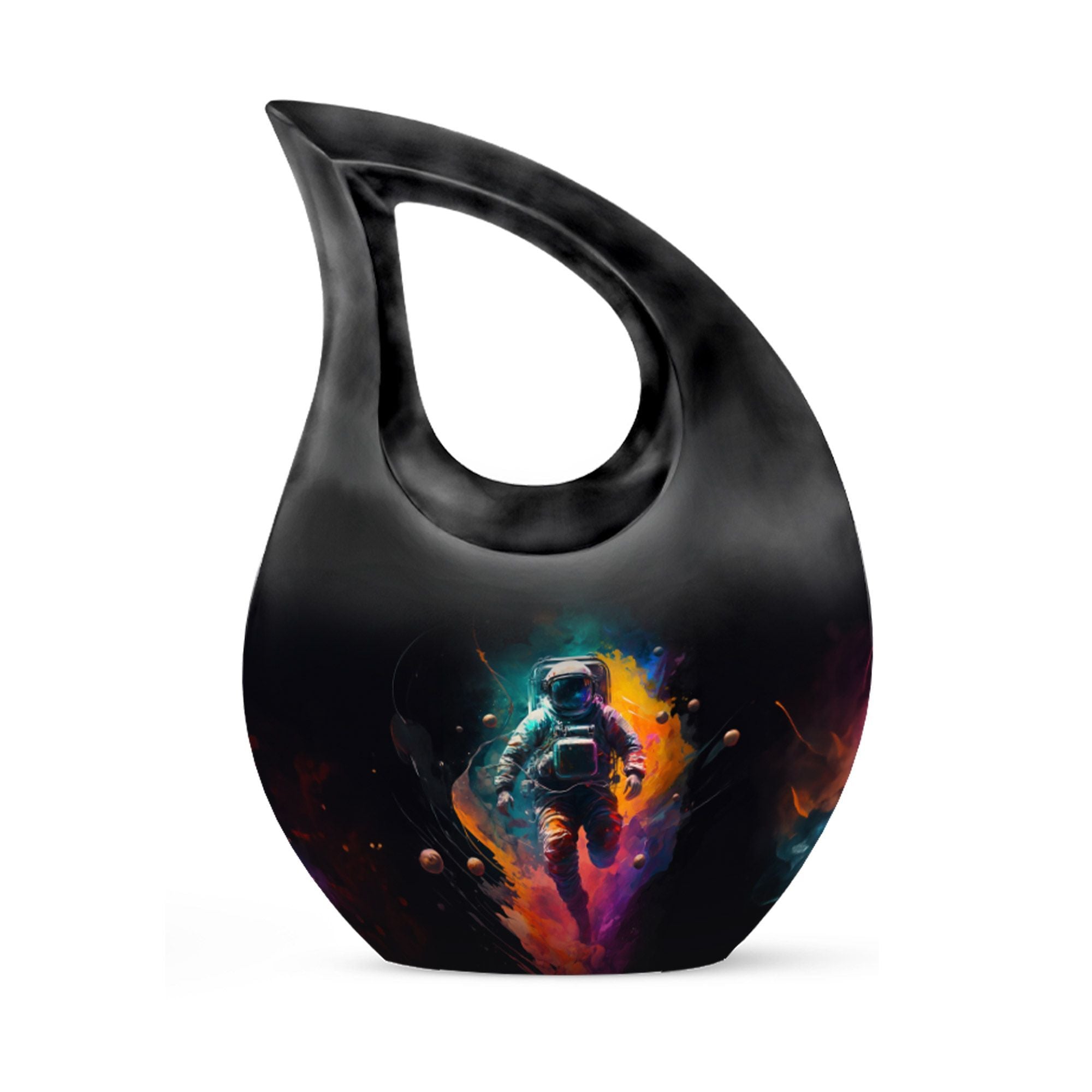 Celebrate the brilliance and individuality of your loved one with our Vibrant Astronaut Cremation Urn. Designed to embody light, energy, and eternal connection, this black teardrop urn with neon cosmic art offers a meaningful resting place for both men and women. Whether chosen as an urn for human ashes adult women or urn for human ashes adult men, it represents life’s infinite journey through color and cosmos.
