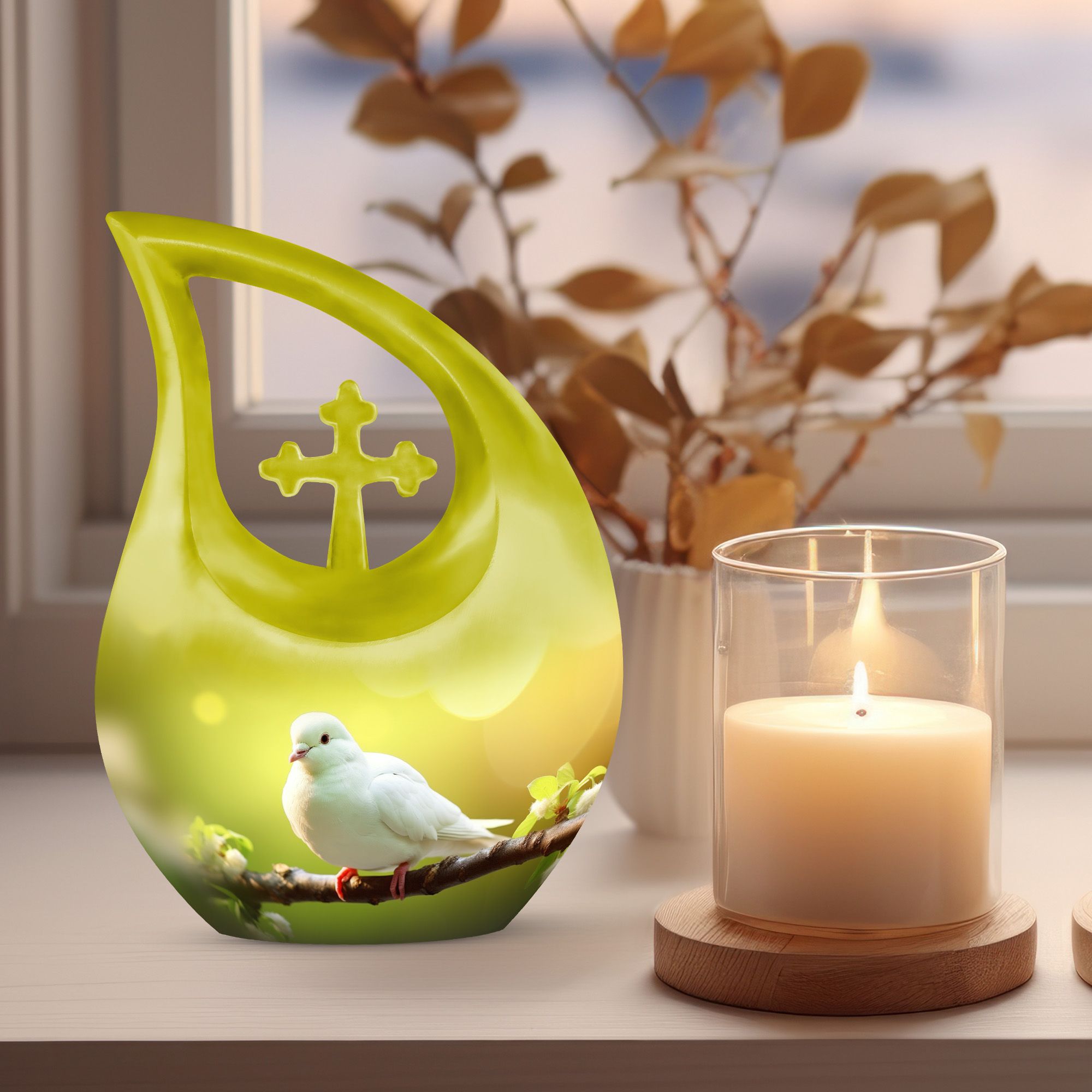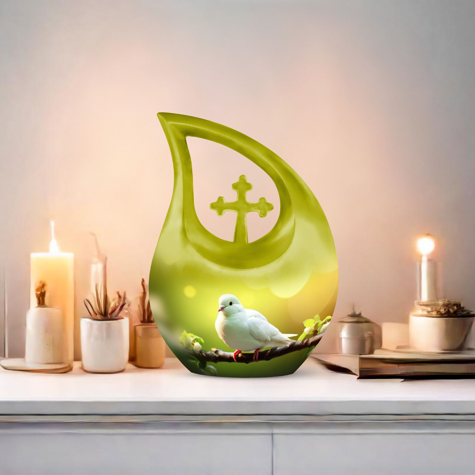 Honor the memory of your loved one with this Vibrant Green Dove Memorial Urn, a heartfelt symbol of peace, renewal, and eternal love. With its rich green finish and graceful dove motif, this urn represents the soul’s peaceful journey and the beauty of everlasting remembrance. Designed for both men and women, it serves as a meaningful tribute among unique urns for human ashes and adult funeral urns collections.
