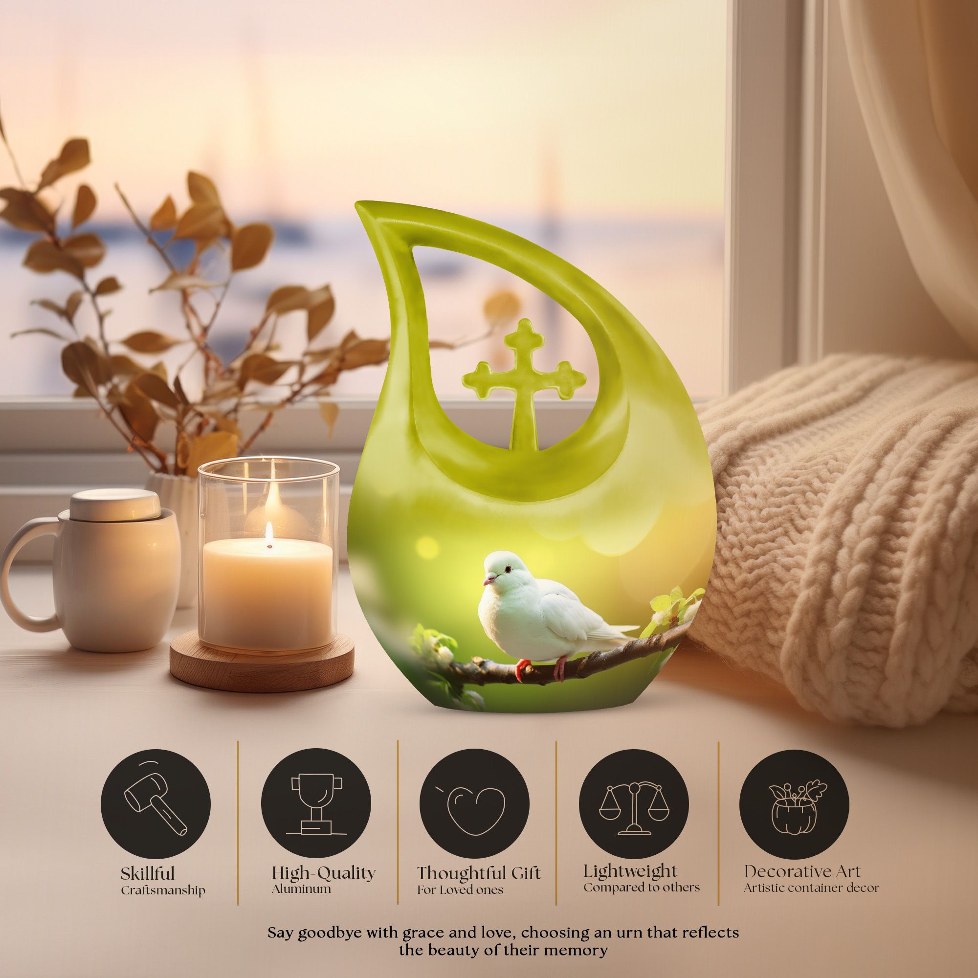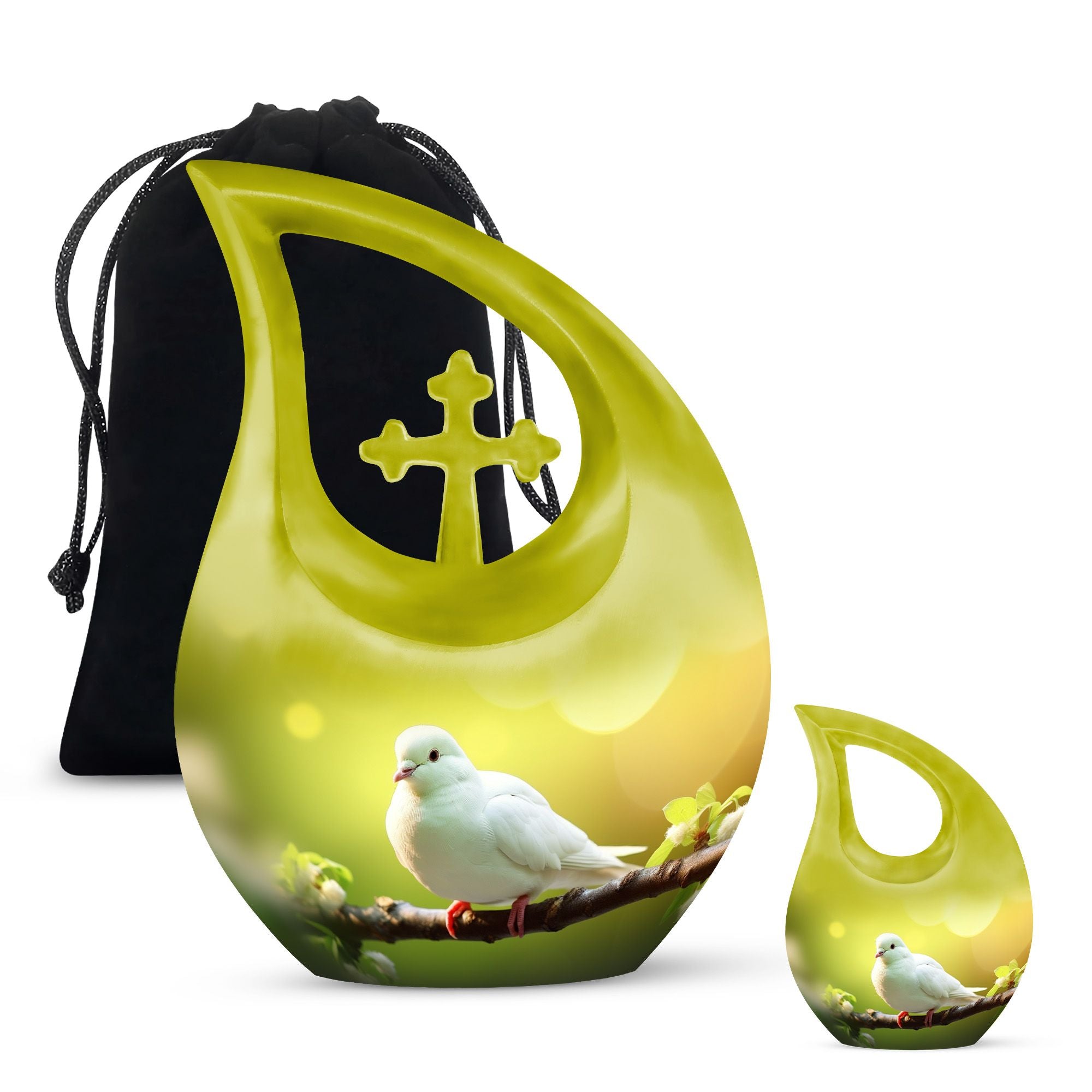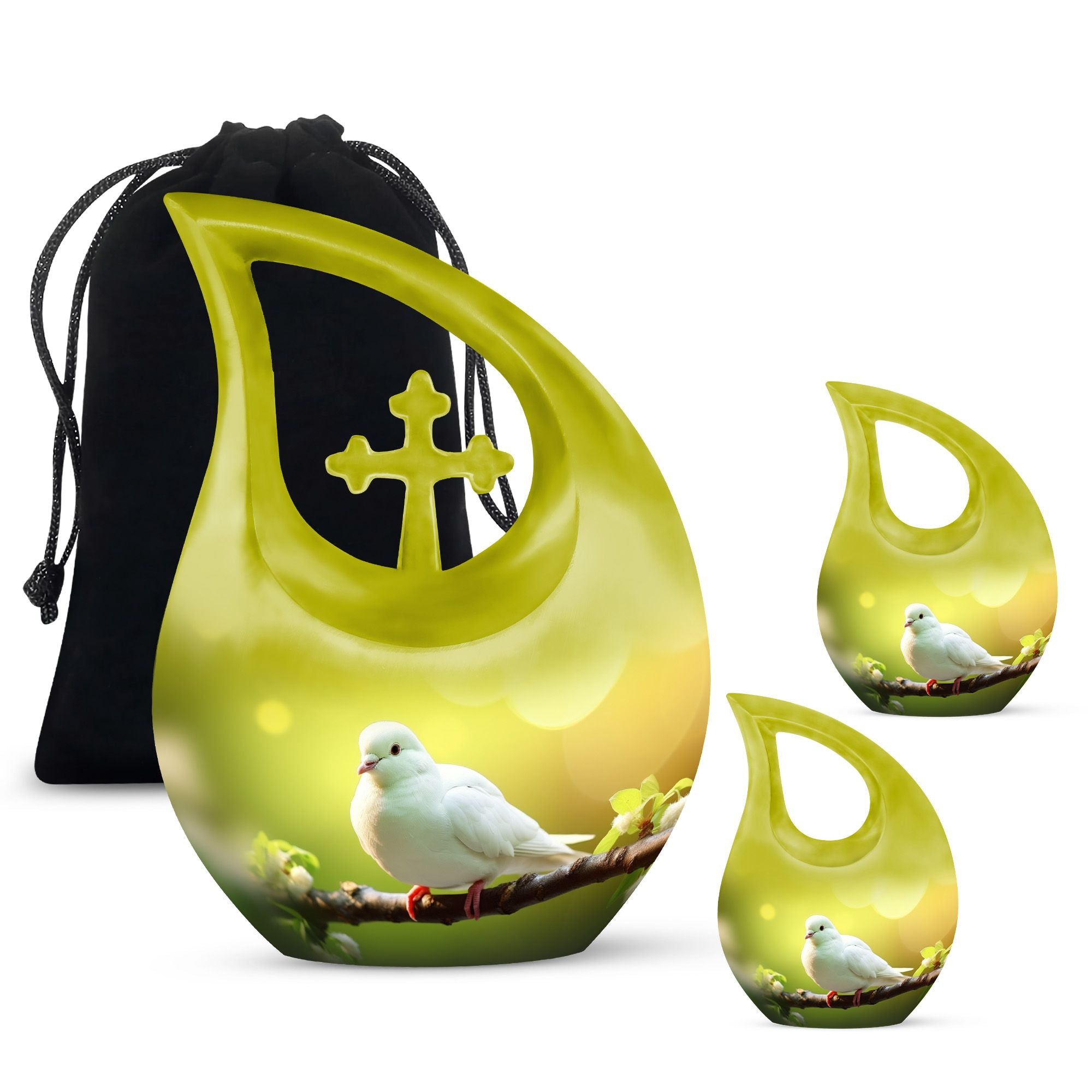 The dove’s image reflects peace, hope, and eternal light — a symbol that love transcends all. This unique urn for ashes and its matching keepsake companions bring comfort, unity, and a lasting reminder that the spirit lives on in serenity and grace.