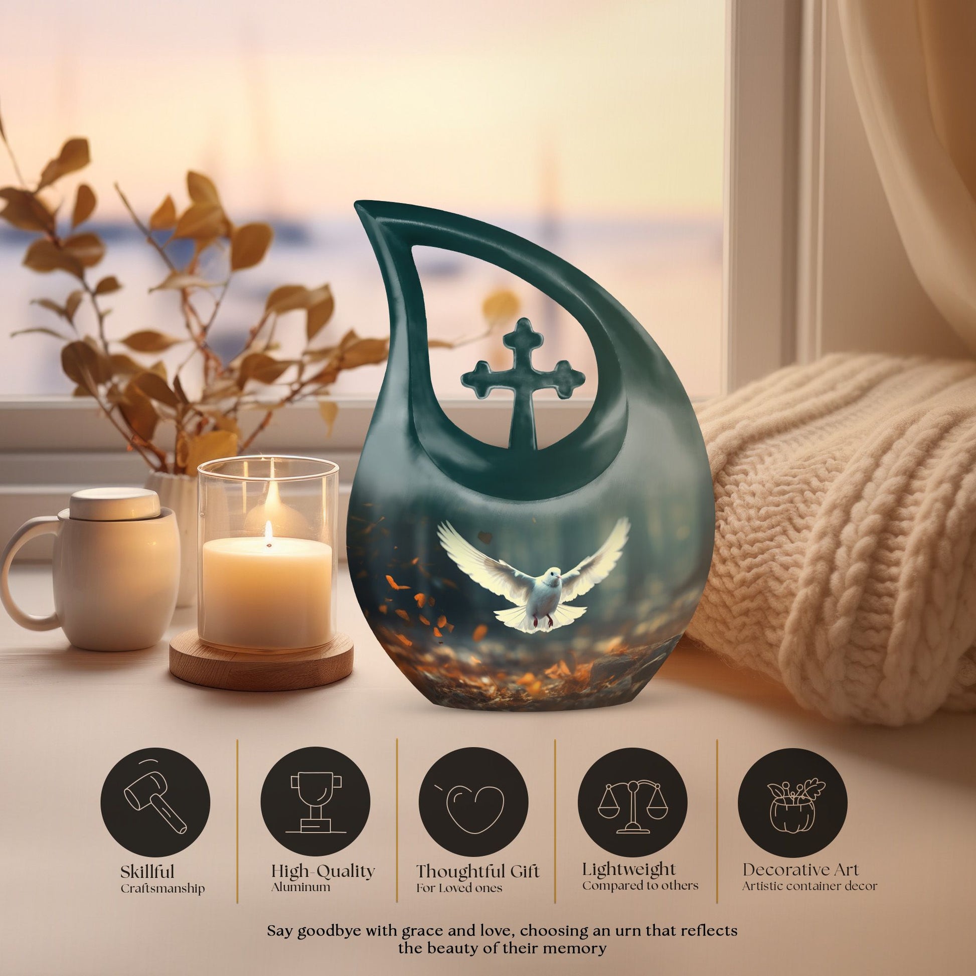 The White Dove Funeral Urn for Ashes symbolizes serenity, purity, and eternal love. Designed to capture the gentle flight of a dove, this memorial piece offers comfort to those cherishing precious memories. Ideal for families seeking mini urns for human ashes or mini urns for sharing ashes, it brings solace through beauty and meaning.