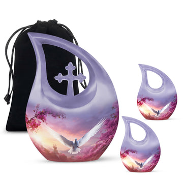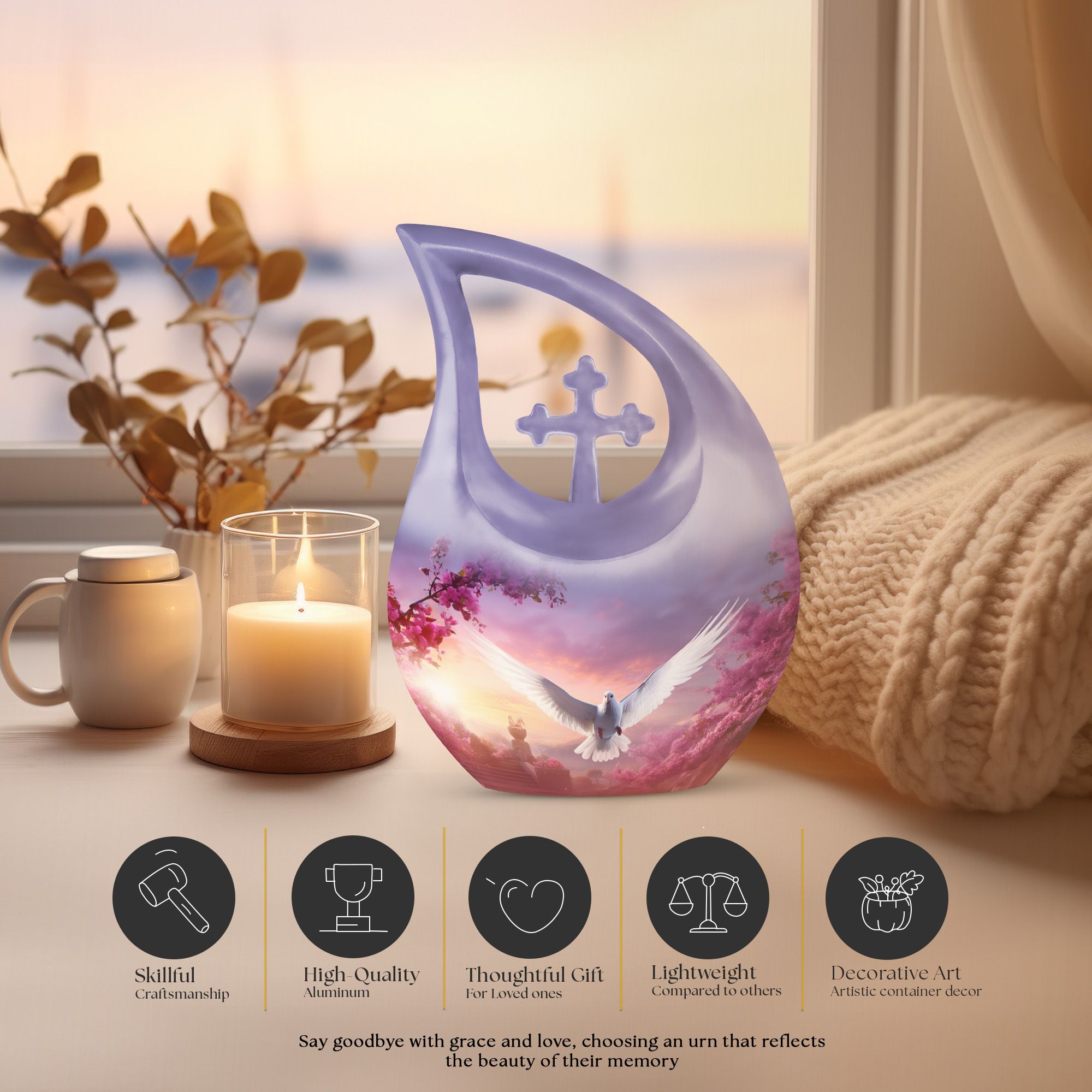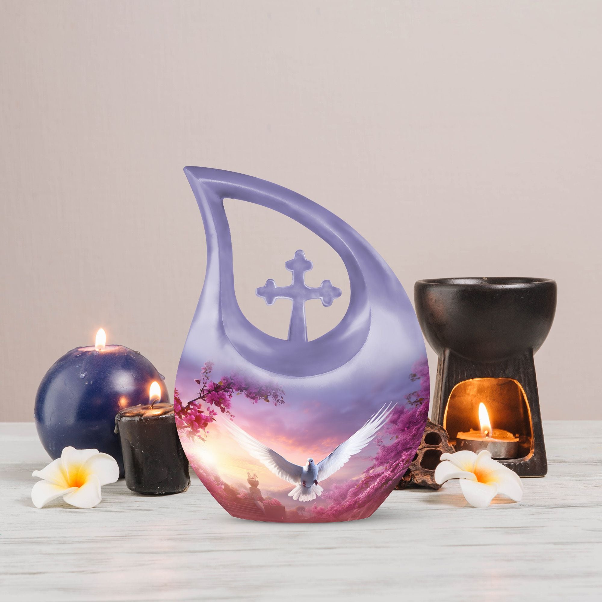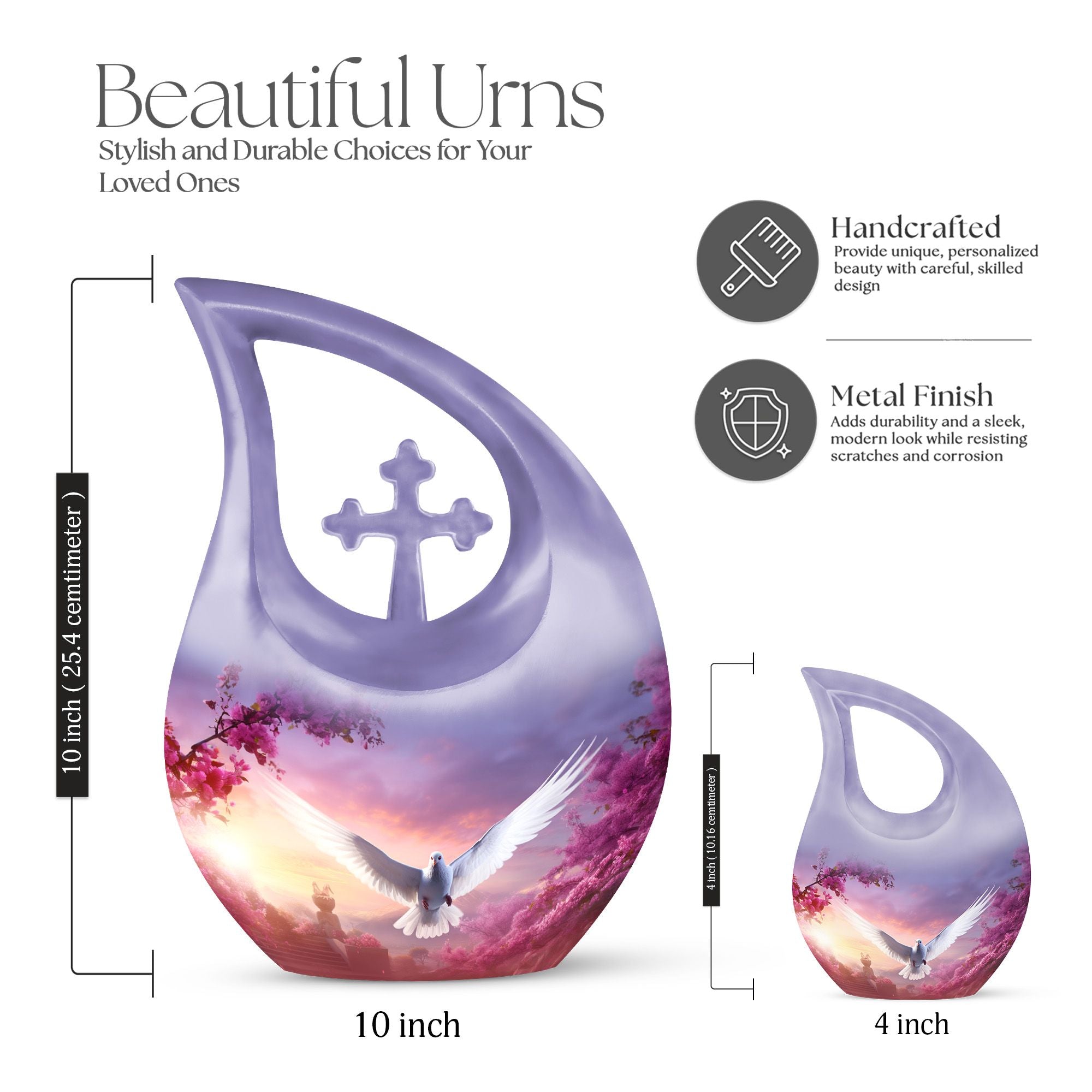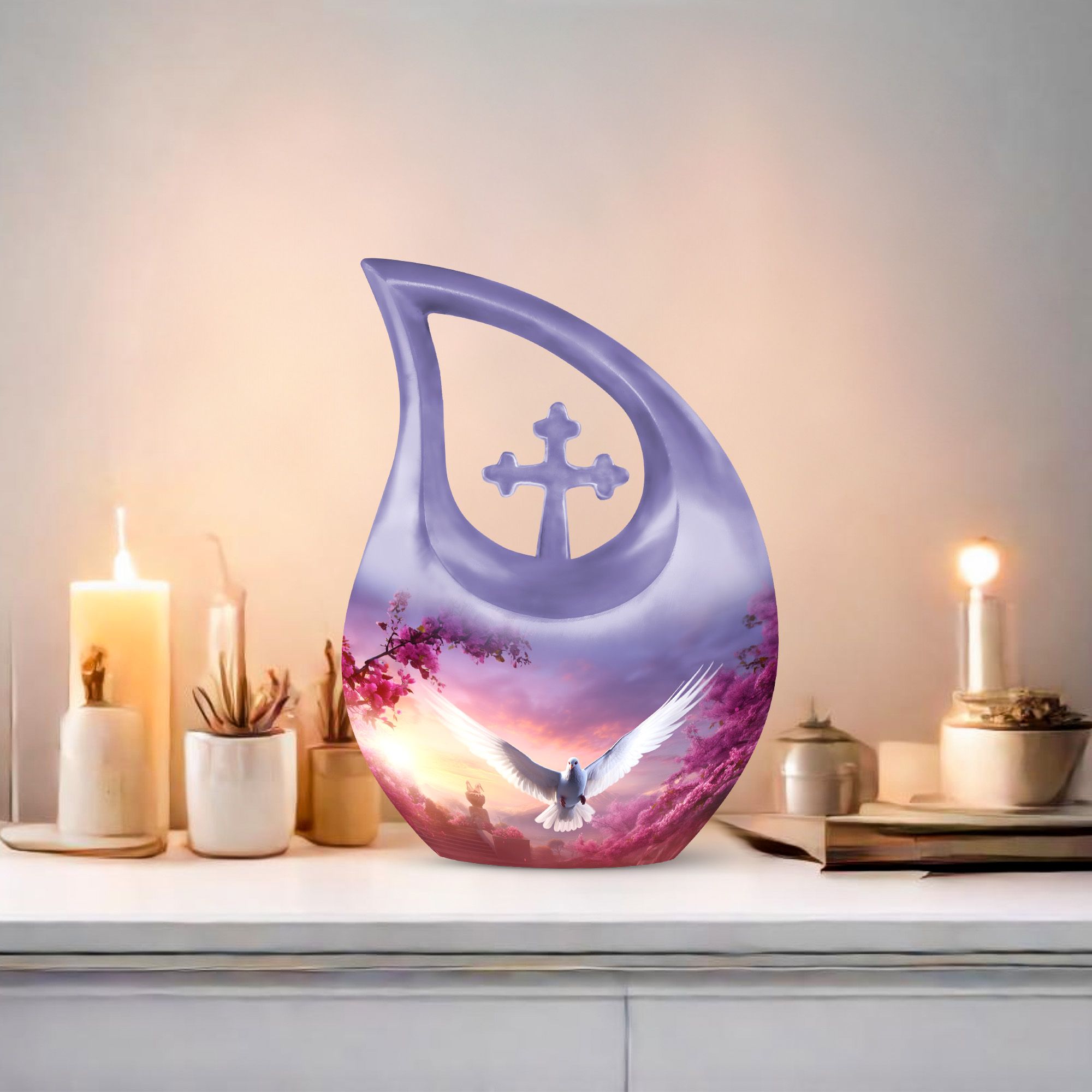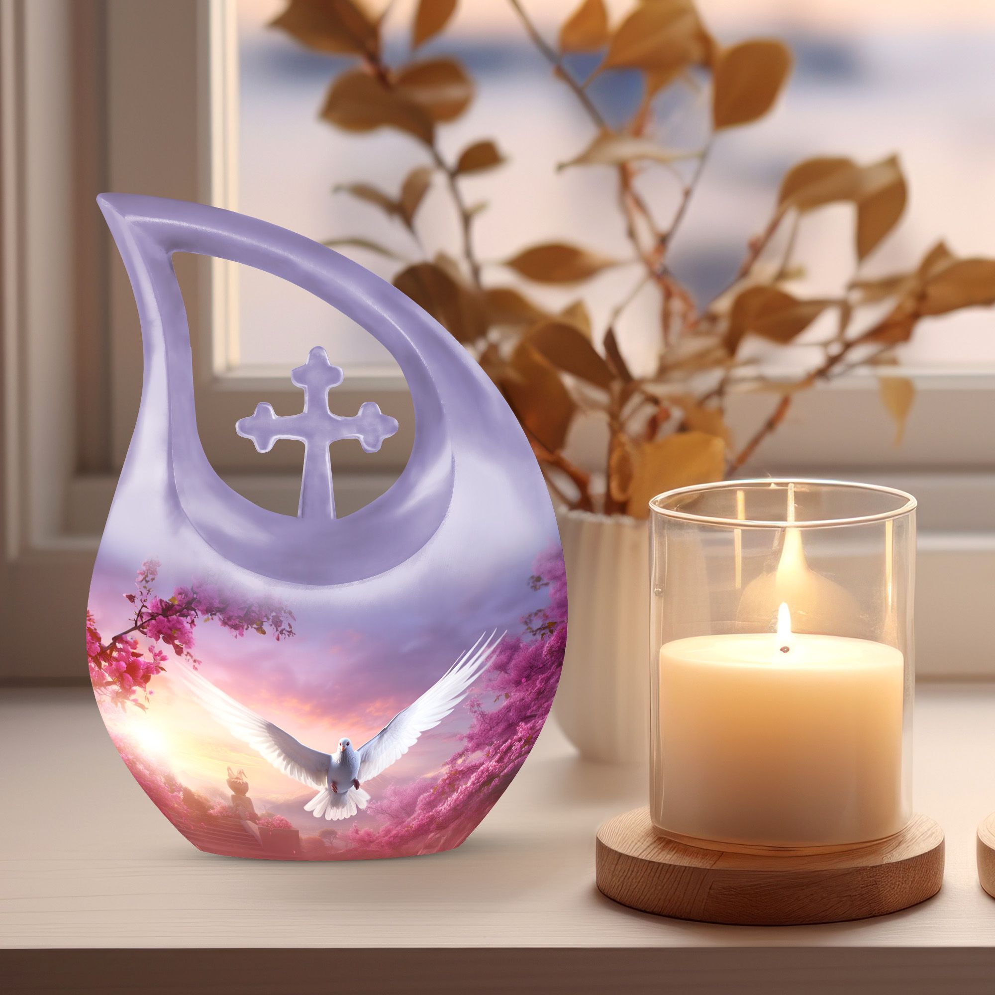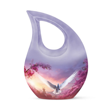 The Flying White Dove Urn for Adult Female embodies peace, grace, and everlasting remembrance. Its elegant dove motif surrounded by delicate pink blossoms symbolizes the soul’s gentle ascent toward serenity. Perfect as miniature urns for ashes or keepsake mini urns, this memorial collection offers a heartfelt way to preserve cherished memories.