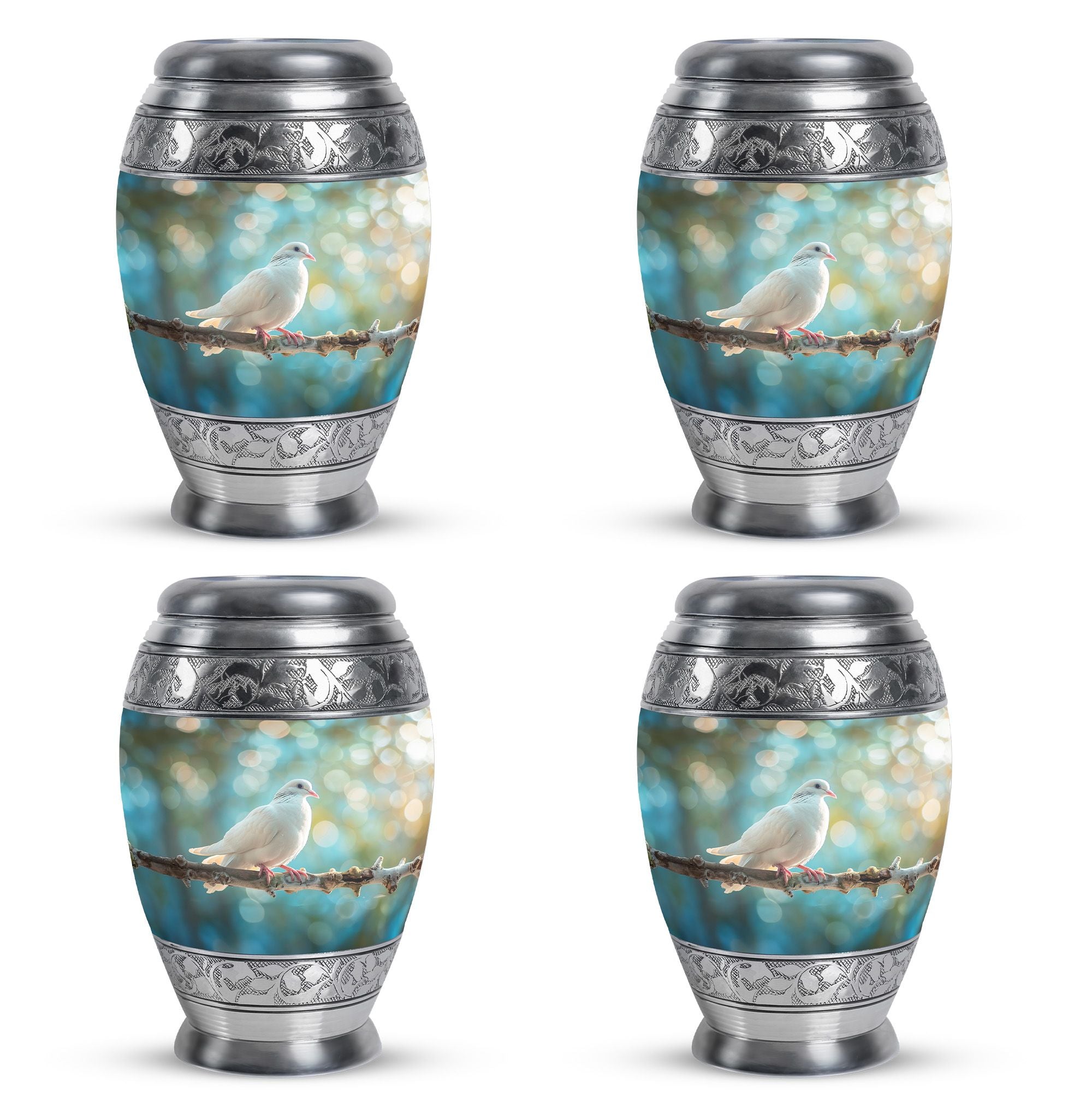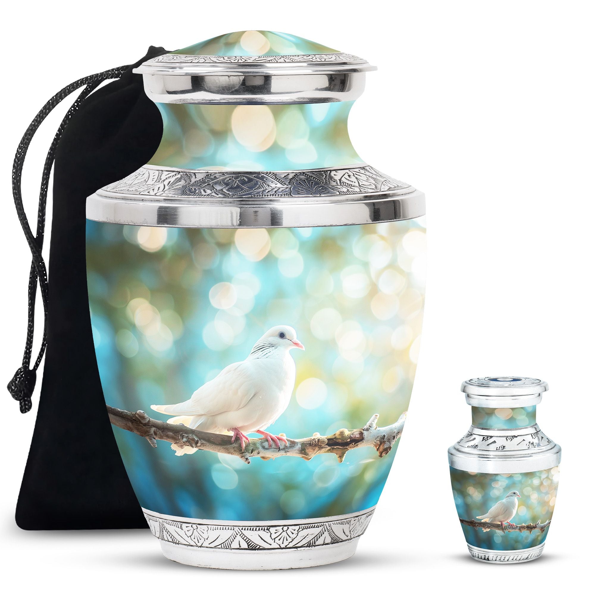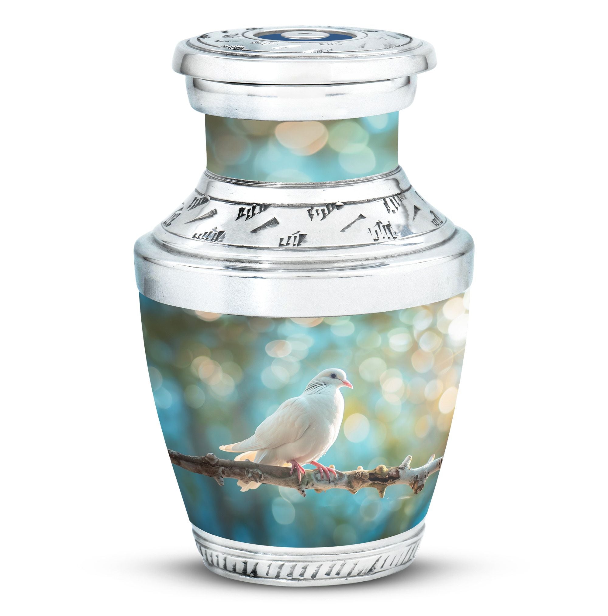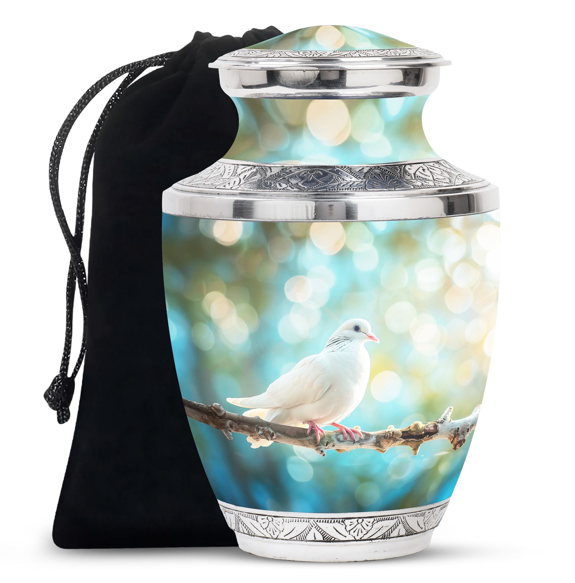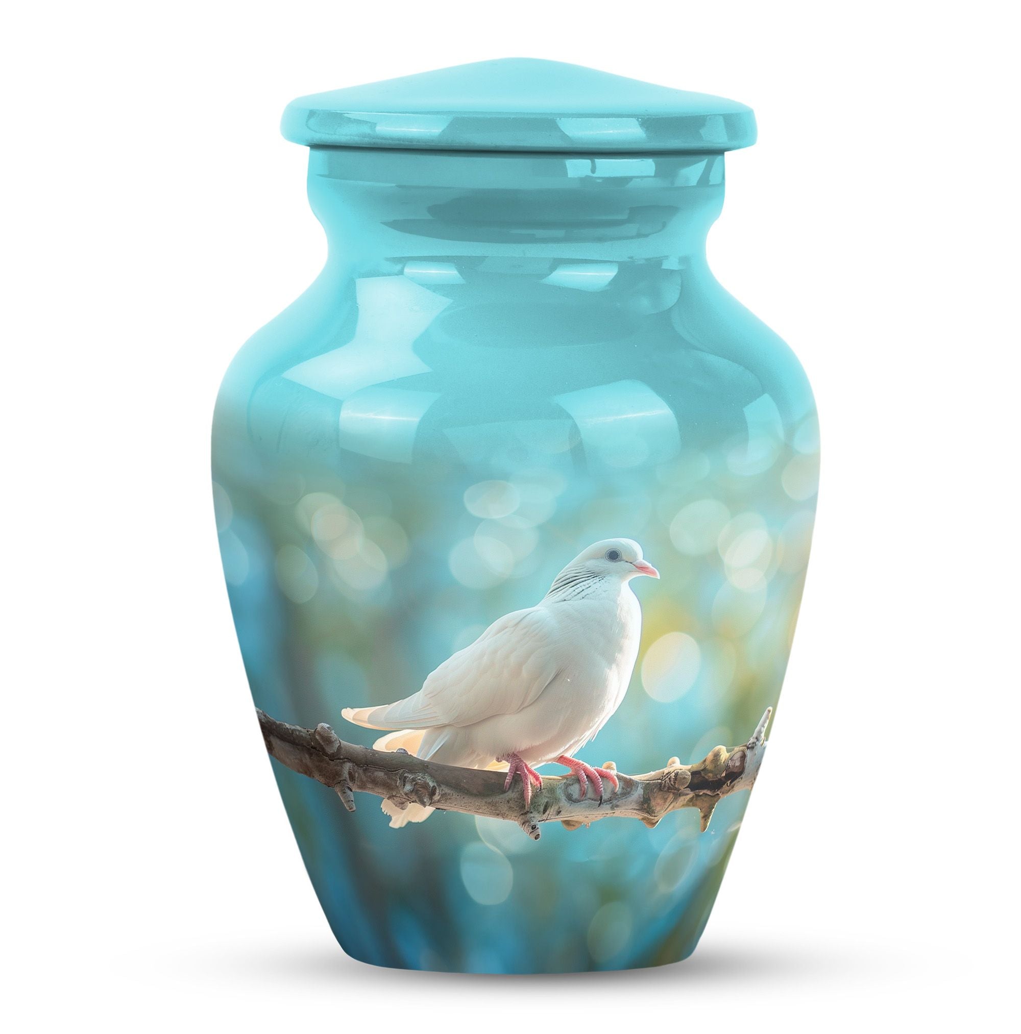 Crafted from durable aluminium, this metal urn combines elegance with lasting strength. Its secure screw-top lid and 10-inch height with 200-cubic-inch capacity make it suitable as a mini urns for ashes, perfect memorials urns, or perfect memorials cremation urns. The graceful white dove design embodies peace and remembrance, making it perfect for display in home memorials or graveside ceremonies, also doubling as keepsake cremation urns.