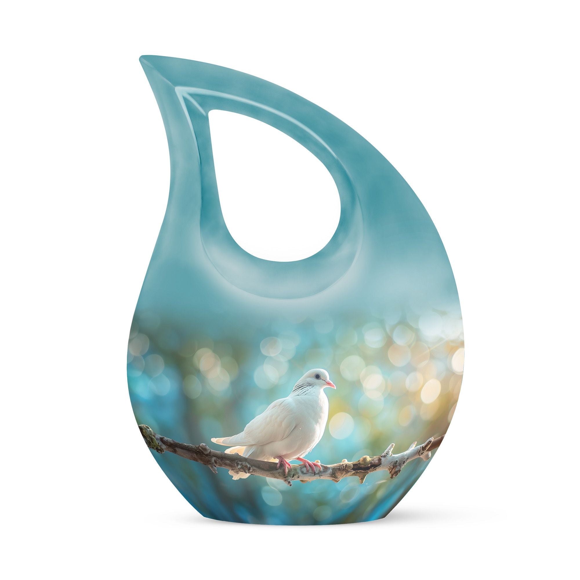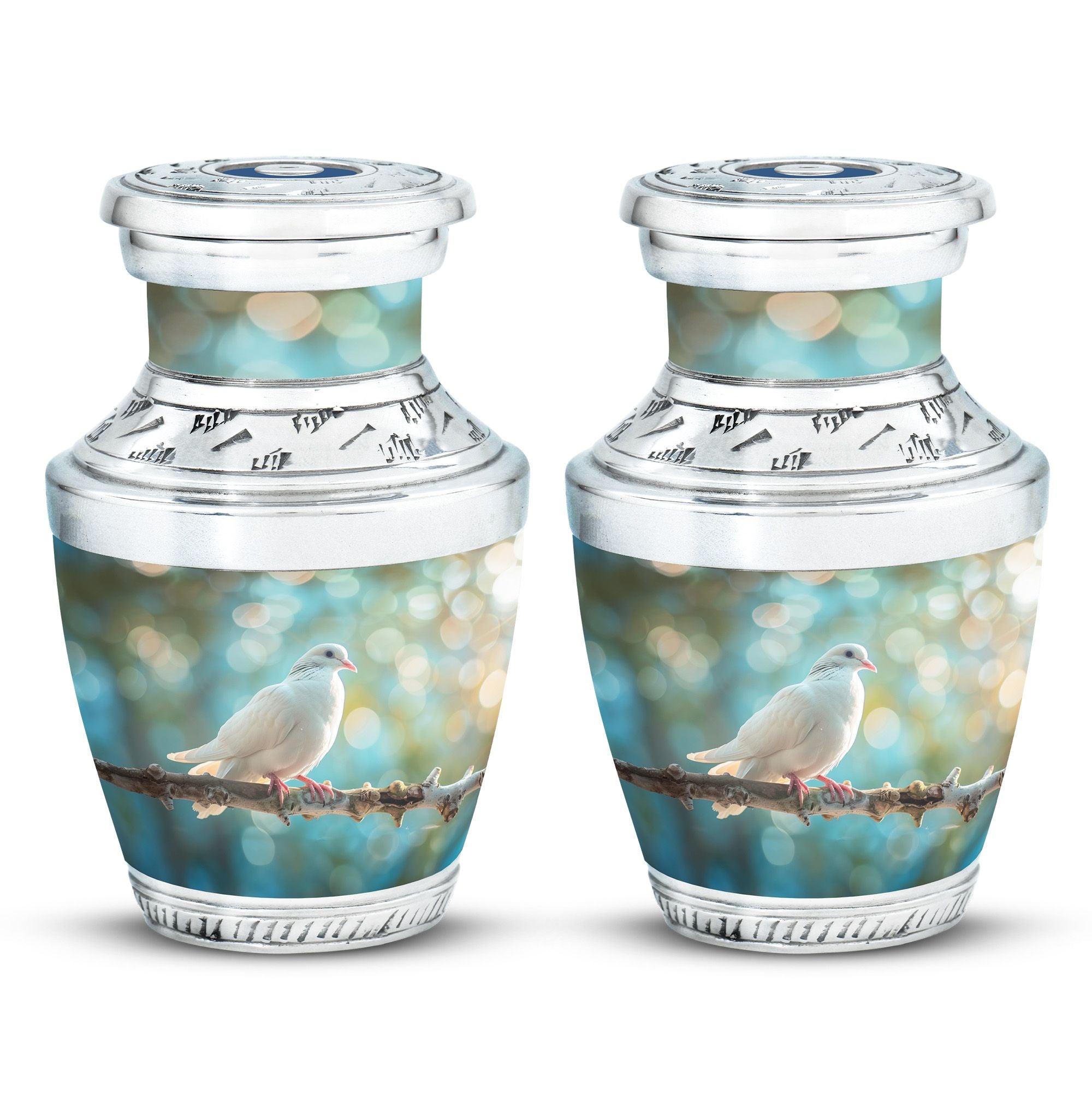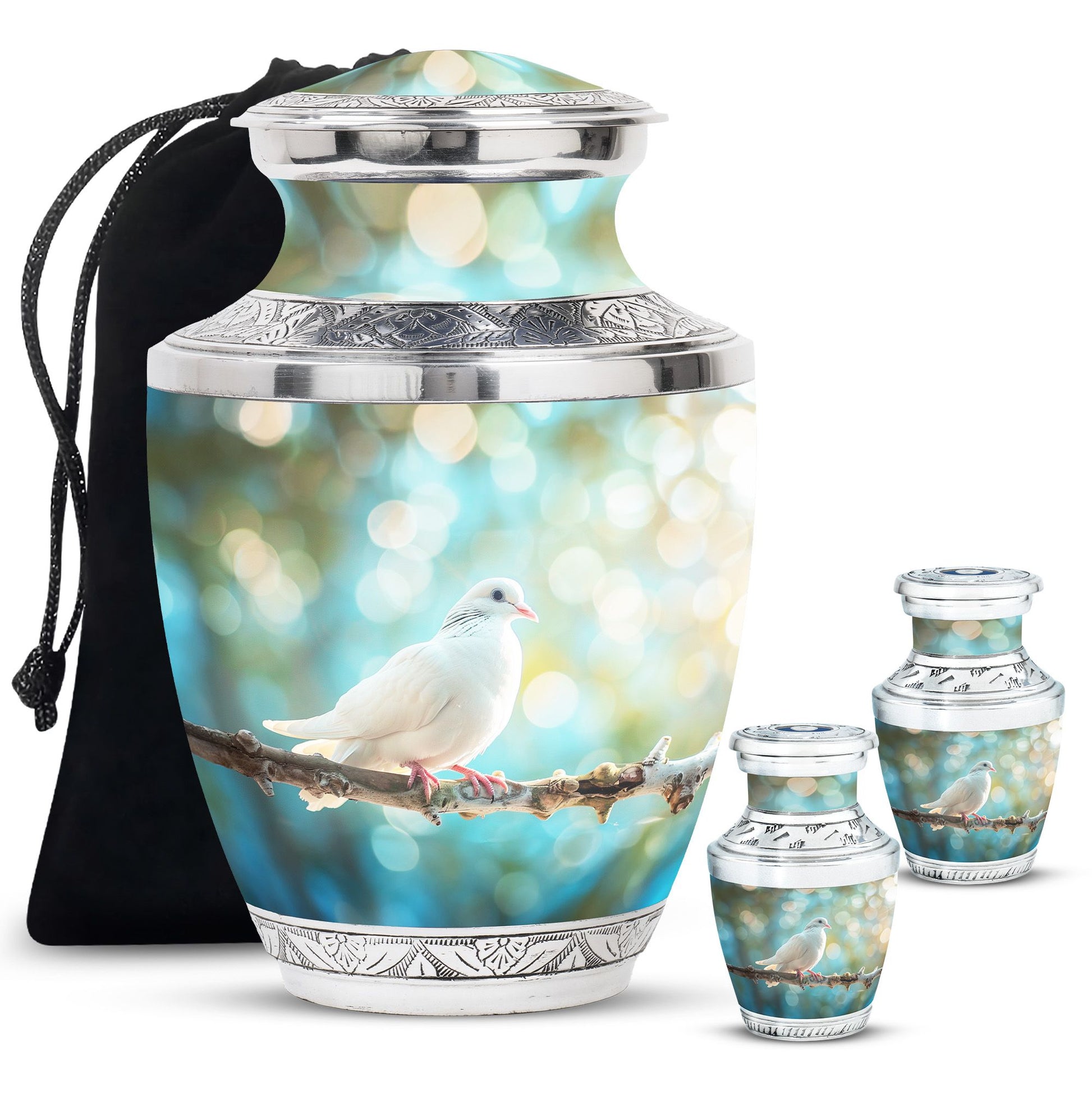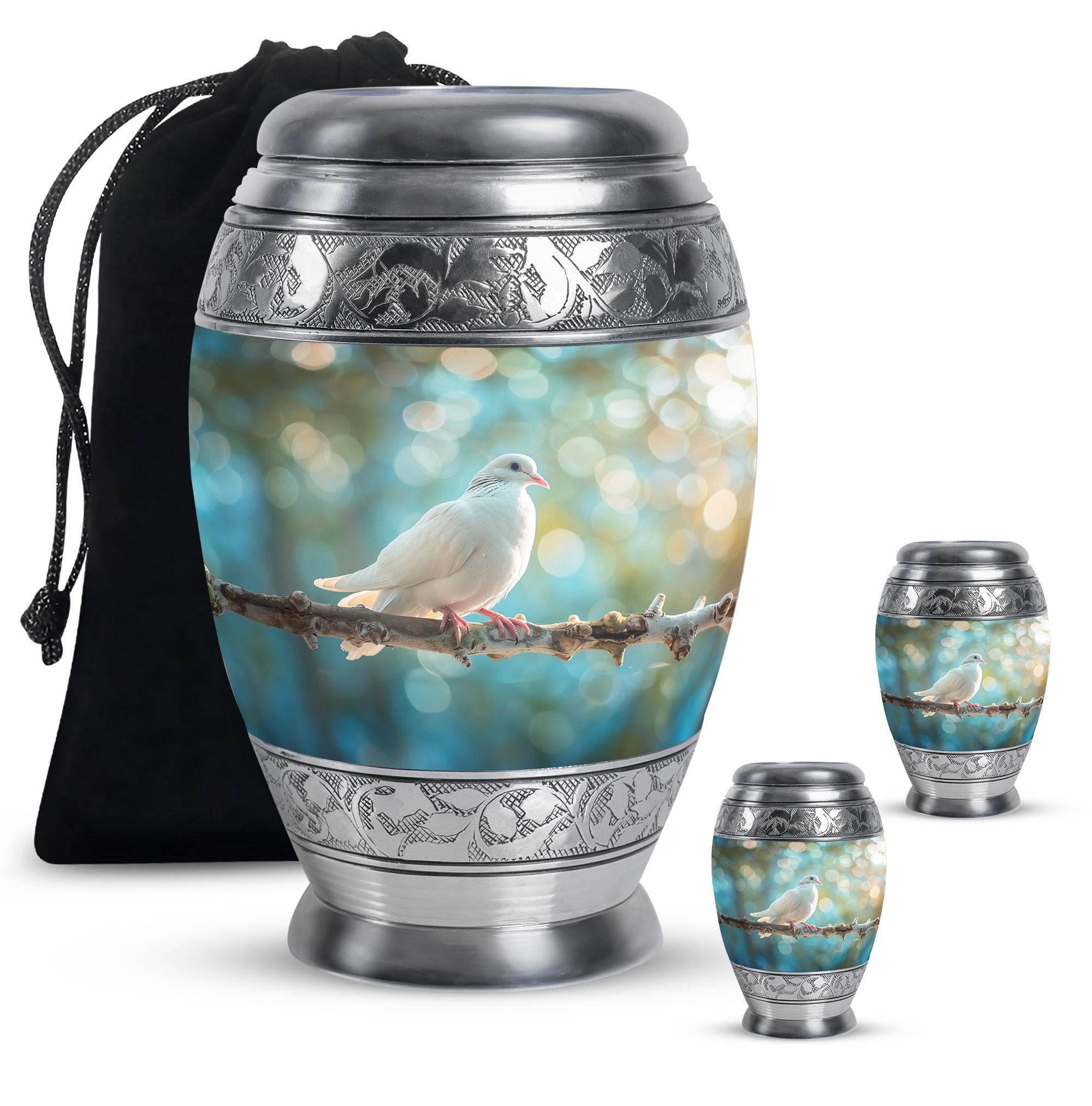 Crafted from durable aluminium, this metal urn combines elegance with lasting strength. Its secure screw-top lid and 10-inch height with 200-cubic-inch capacity make it suitable as a mini urns for ashes, perfect memorials urns, or perfect memorials cremation urns. The graceful white dove design embodies peace and remembrance, making it perfect for display in home memorials or graveside ceremonies, also doubling as keepsake cremation urns.