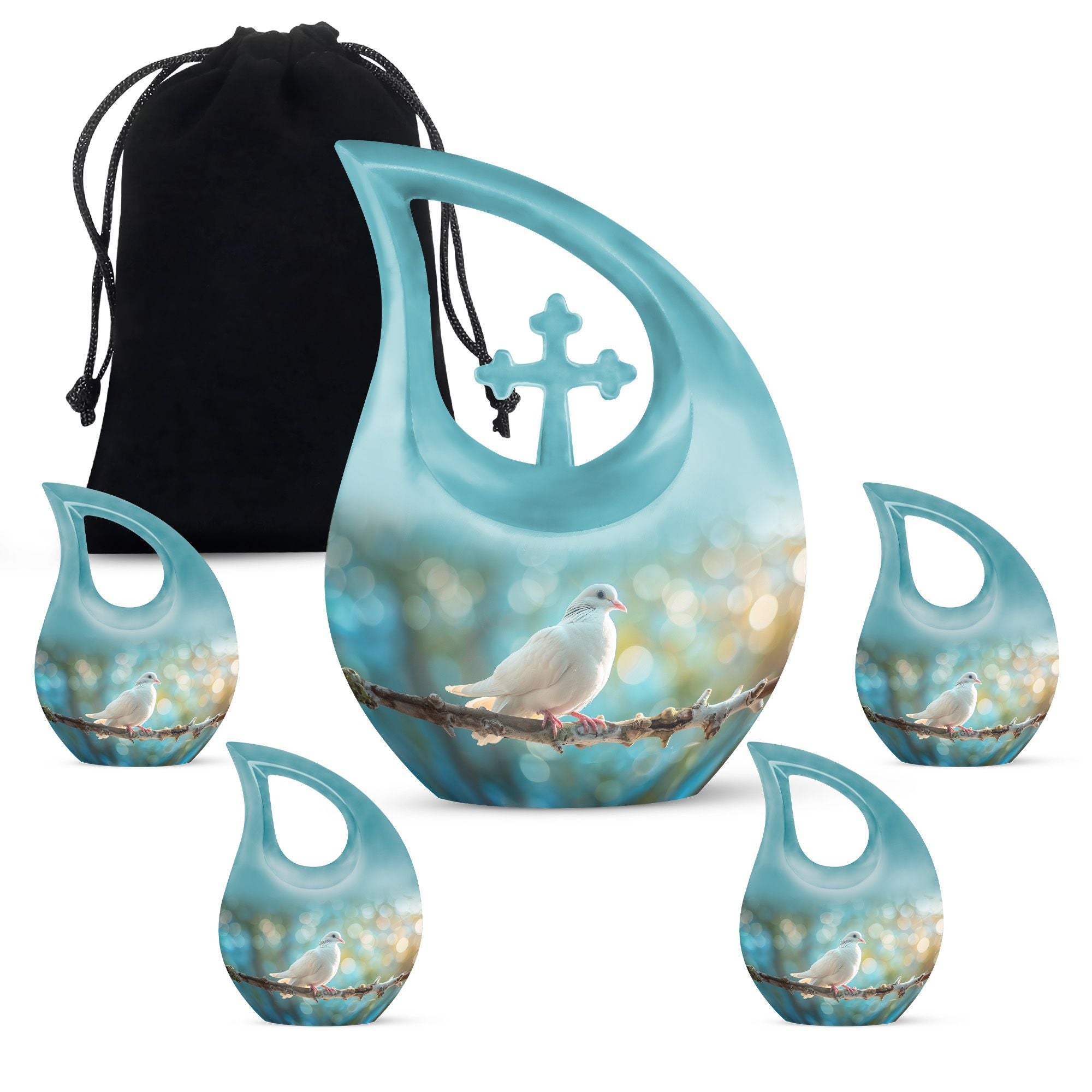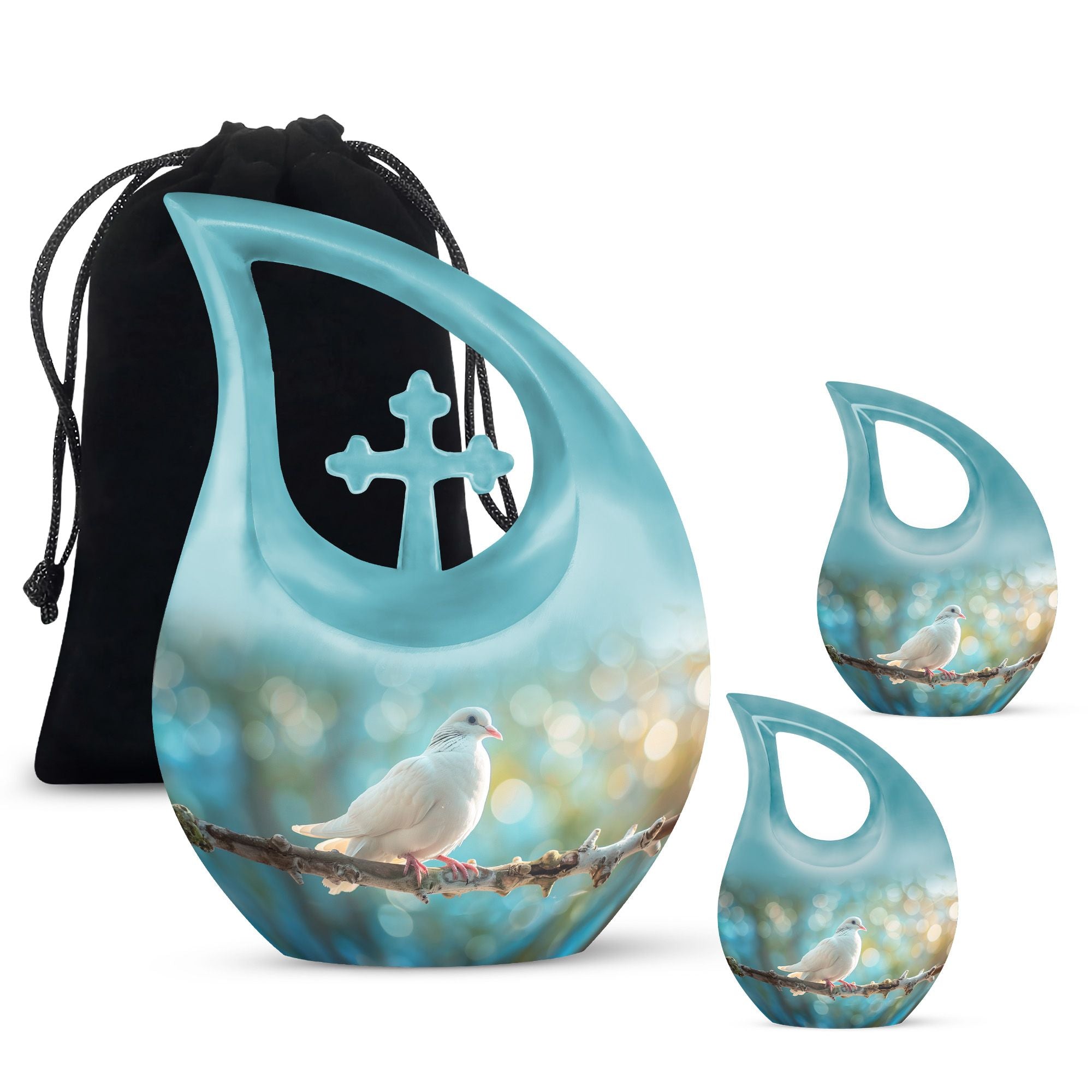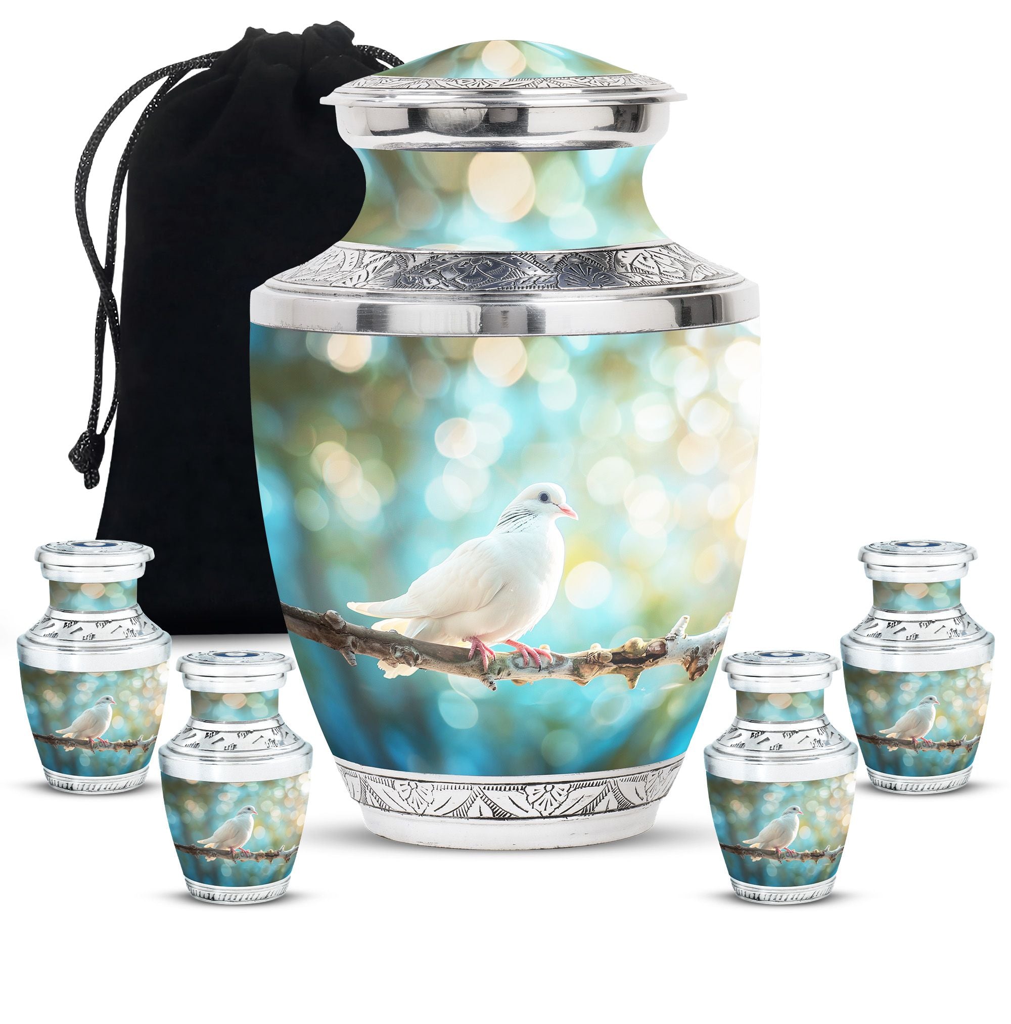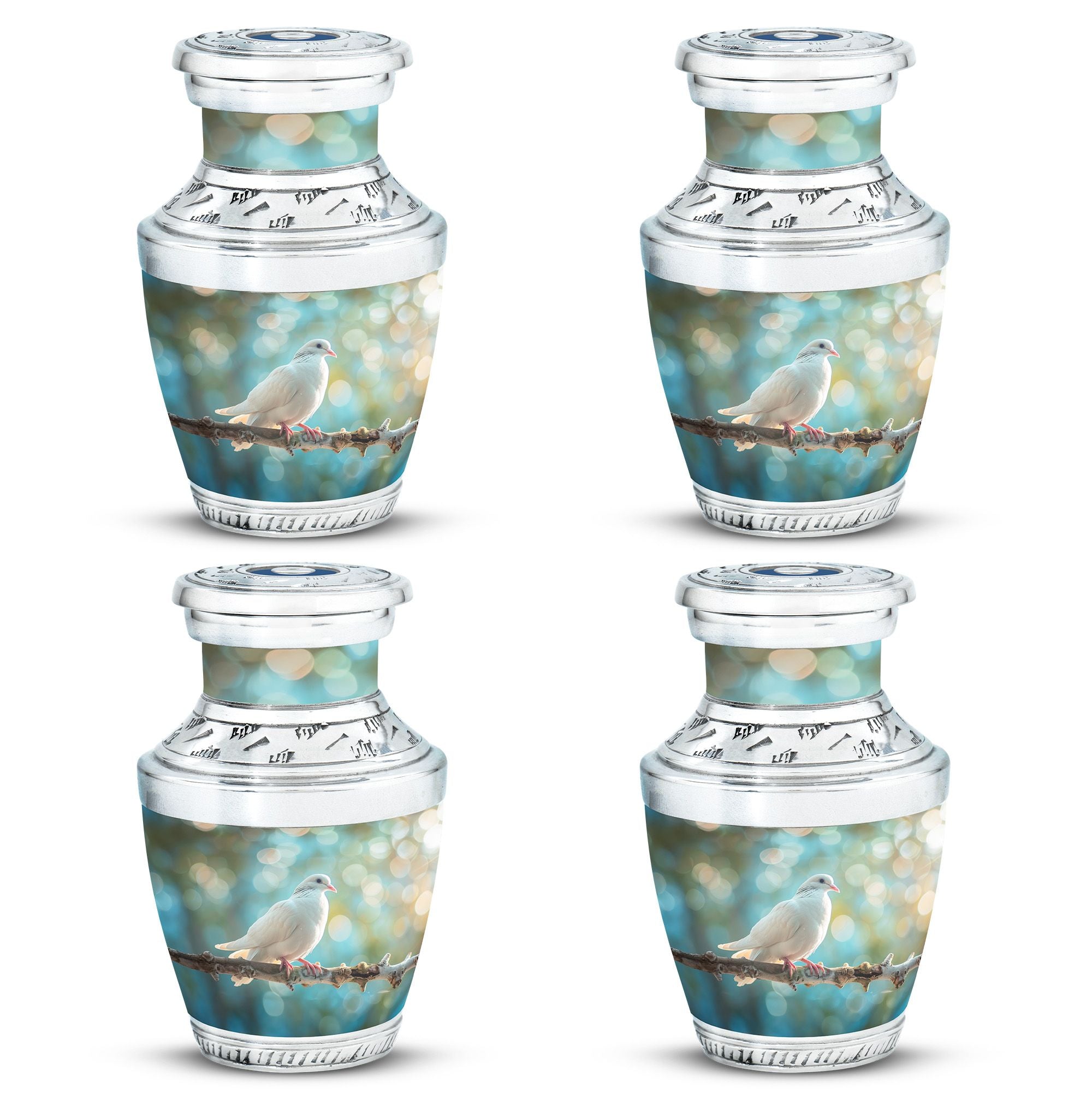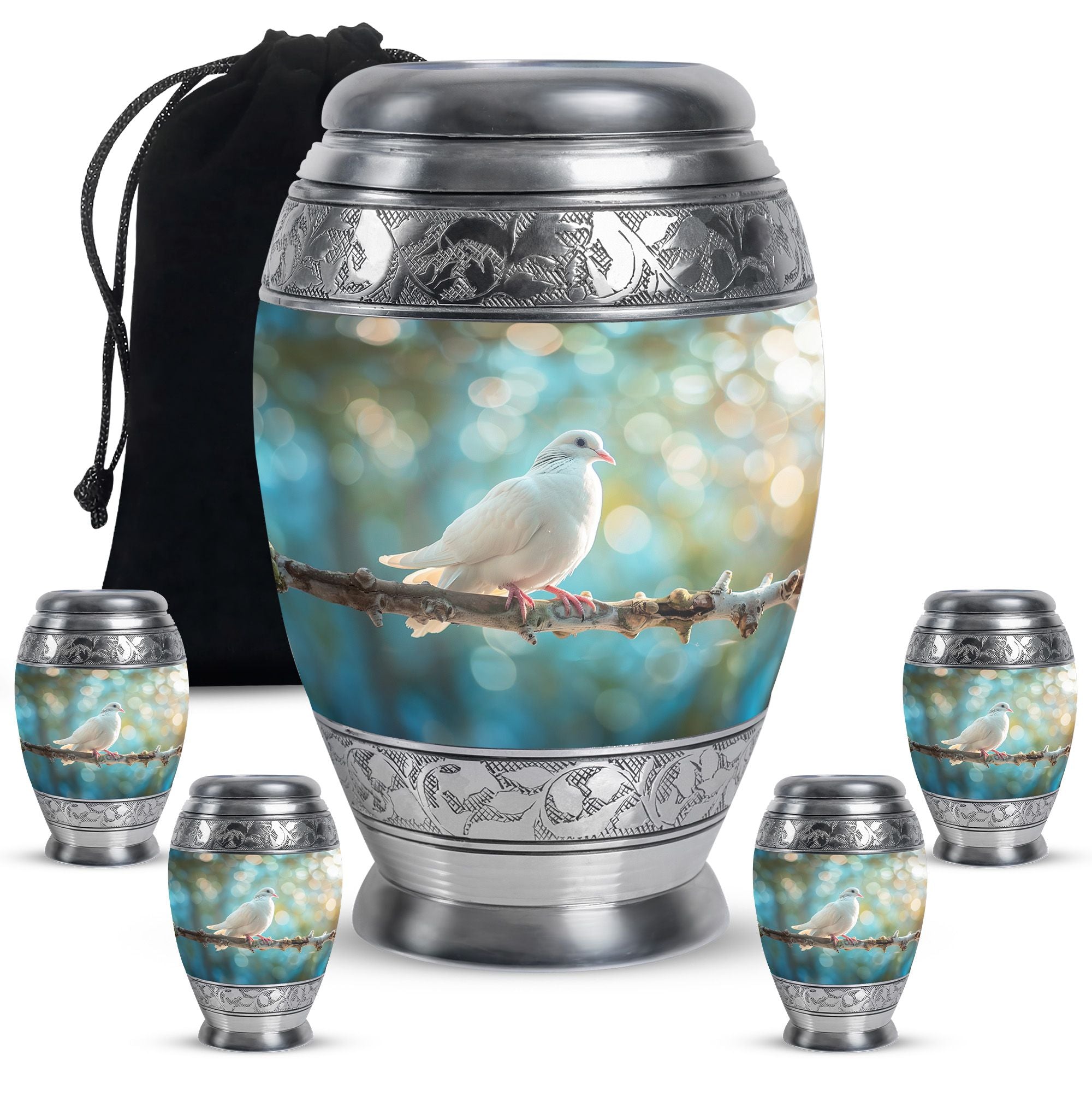 Crafted from durable aluminium, this metal urn combines elegance with lasting strength. Its secure screw-top lid and 10-inch height with 200-cubic-inch capacity make it suitable as a mini urns for ashes, perfect memorials urns, or perfect memorials cremation urns. The graceful white dove design embodies peace and remembrance, making it perfect for display in home memorials or graveside ceremonies, also doubling as keepsake cremation urns.
