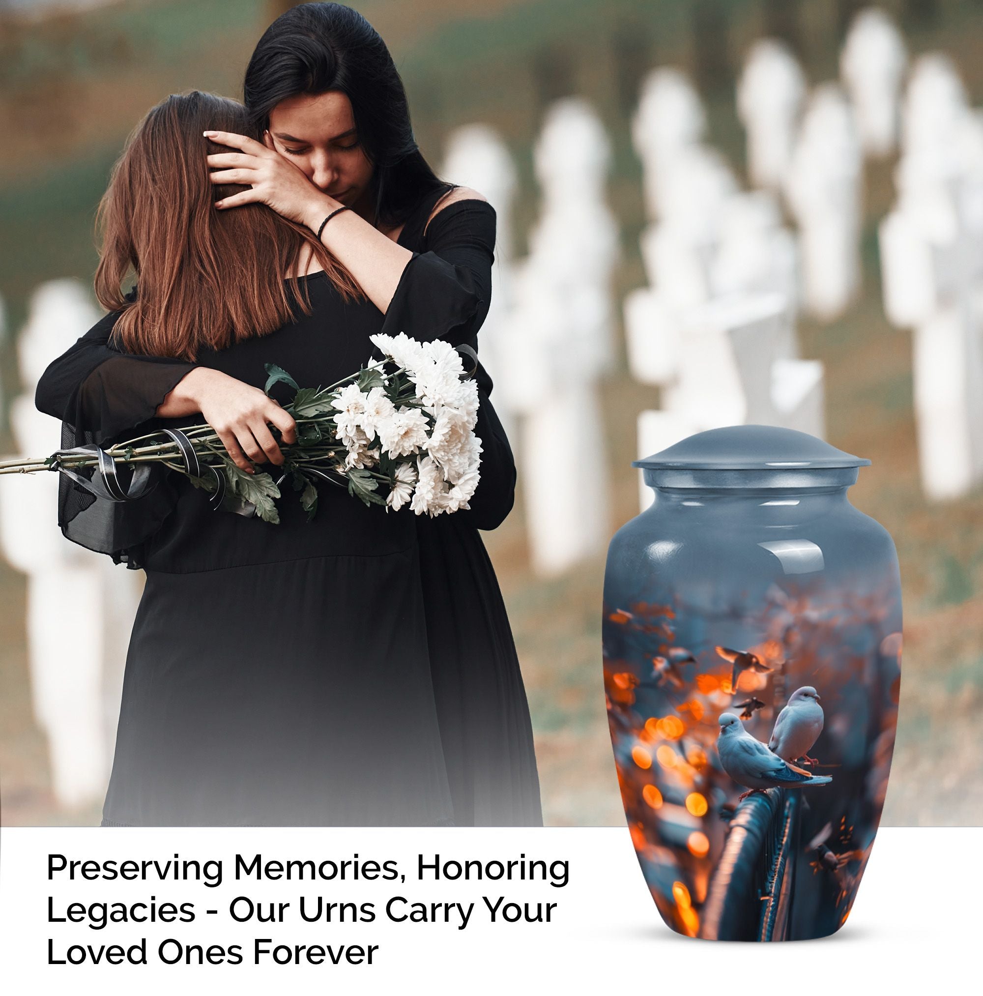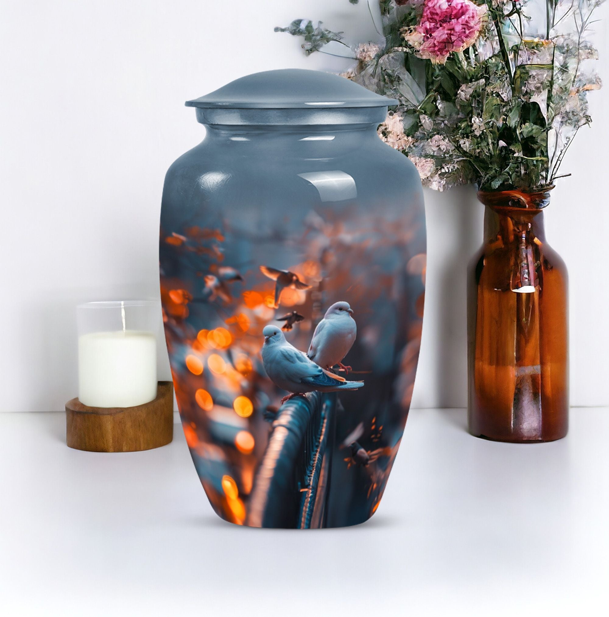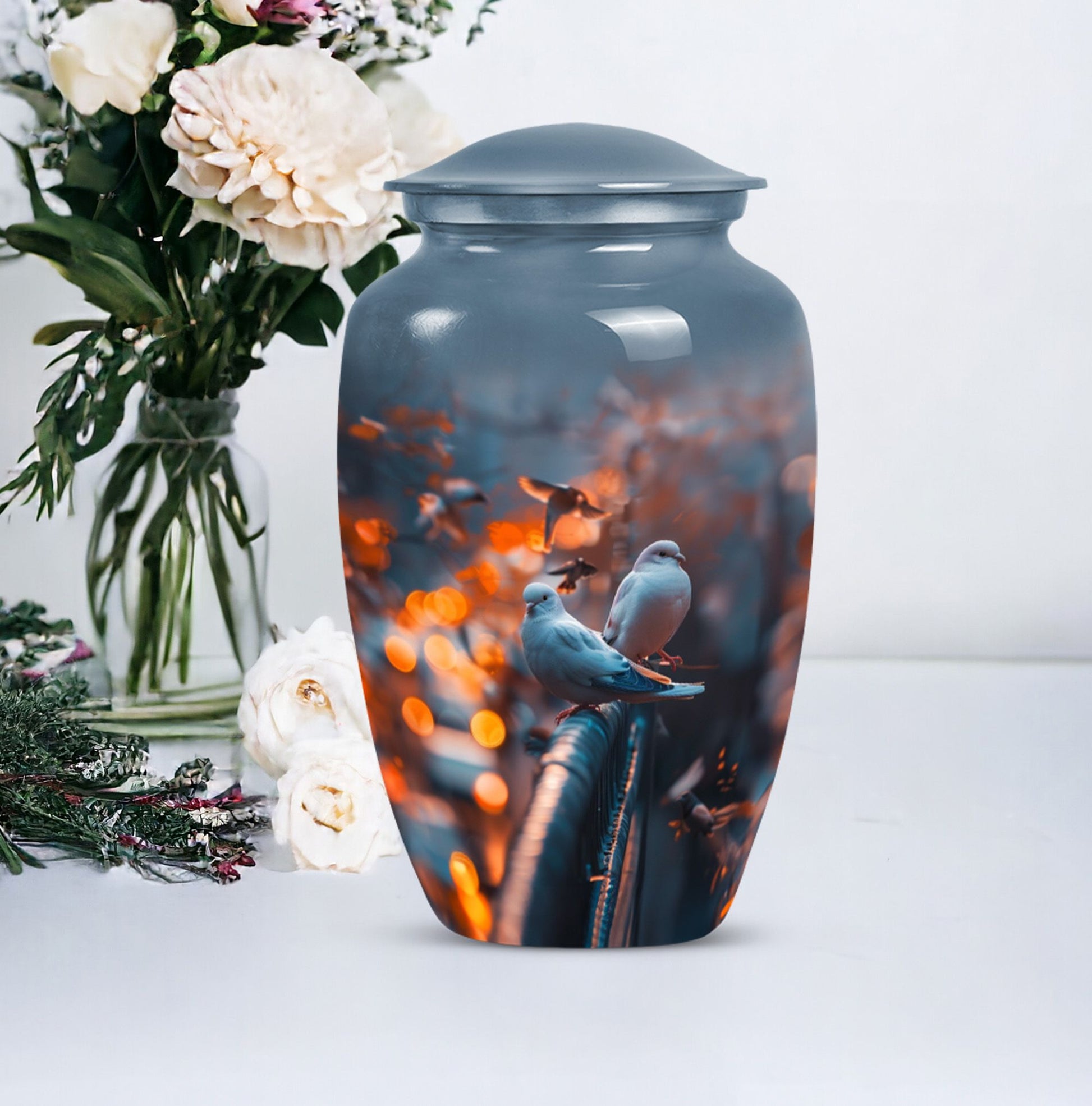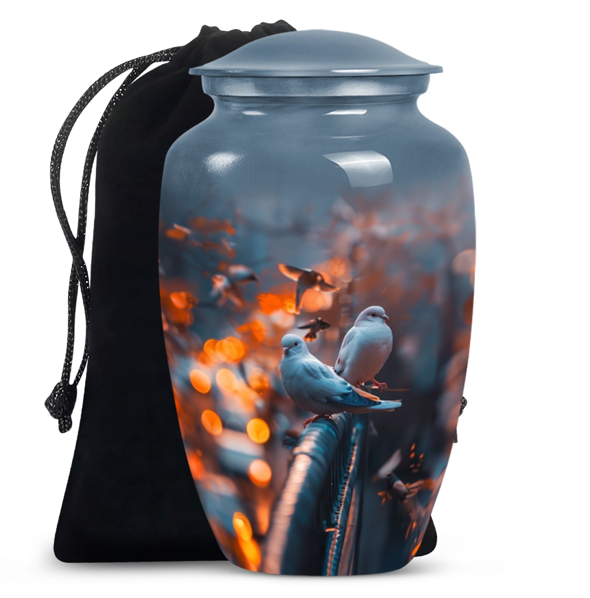 Experience the peace and tranquility that comes with the perfect memorial piece, a symbol of enduring love and spiritual solace. The 10 Inch Classic Urn is a magnificent testament to the beauty that lies within each farewell. Crafted from Aluminium, this large urn carries a significant weight of 3.3 pounds, bearing with it a palpable presence of the departed. Its timeless design is accentuated by the floral theme, adding an engaging element of charm and sanctity. This urn offers a capacity of 200 cubic inches, safeguarding those precious remains with reverence. The provision of personalization by engraving names makes this urn even more special, serving as the ideal remembrance for your cherished ones. Along with the urn, you will receive a velvet pouch for the sacred containment of ashes. This cremation urn, commonly referred to as a 'dove urn' or 'memorial forever urn', is fitting for adults and seniors appealing to both their faith and aesthetic sensibility. It is an excellent choice for those searching for funeral urns for human ashes adult or urns metal. This exquisitely designed human cremation urn helps to ensure that memories live on and love stays unending.