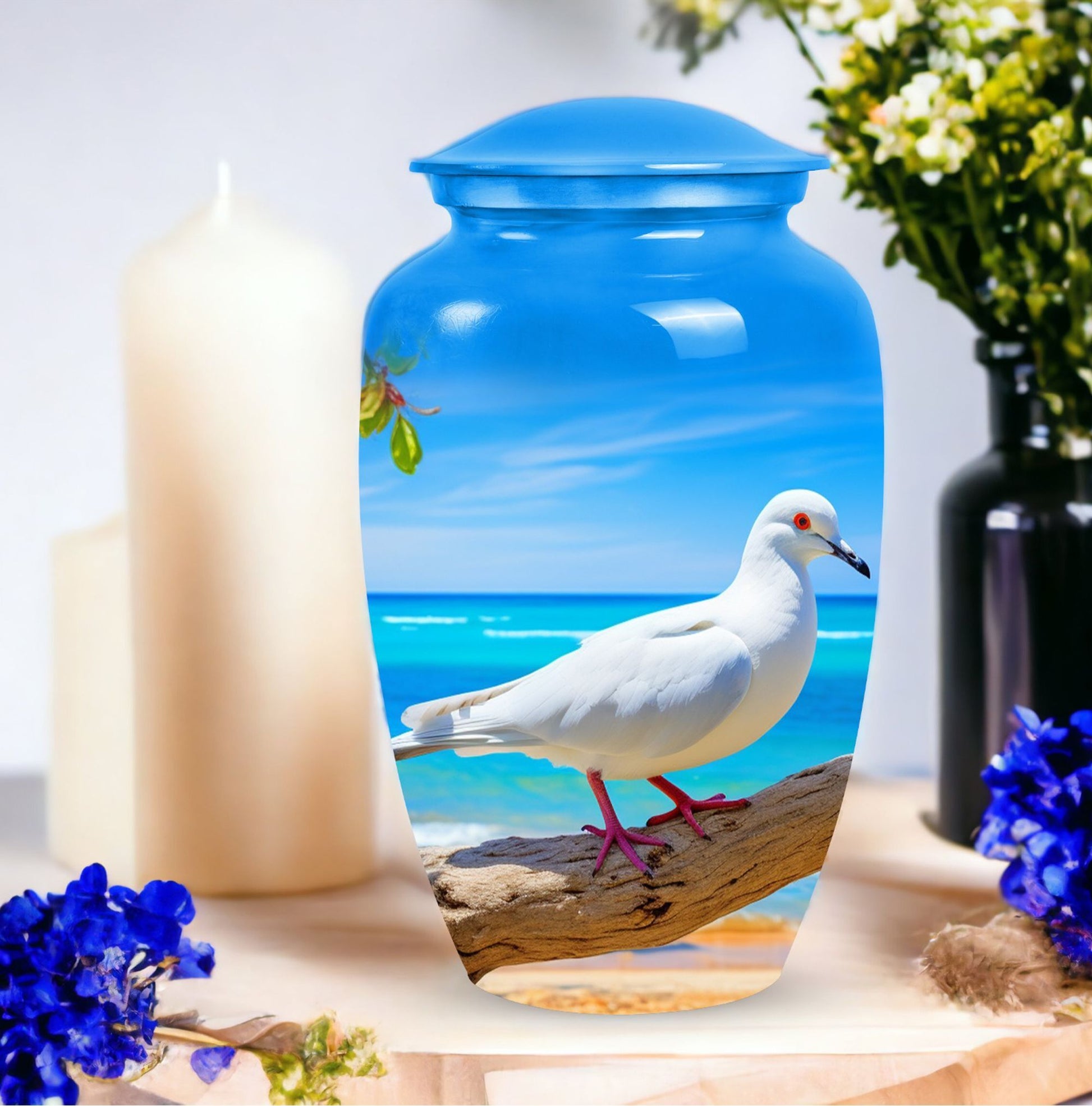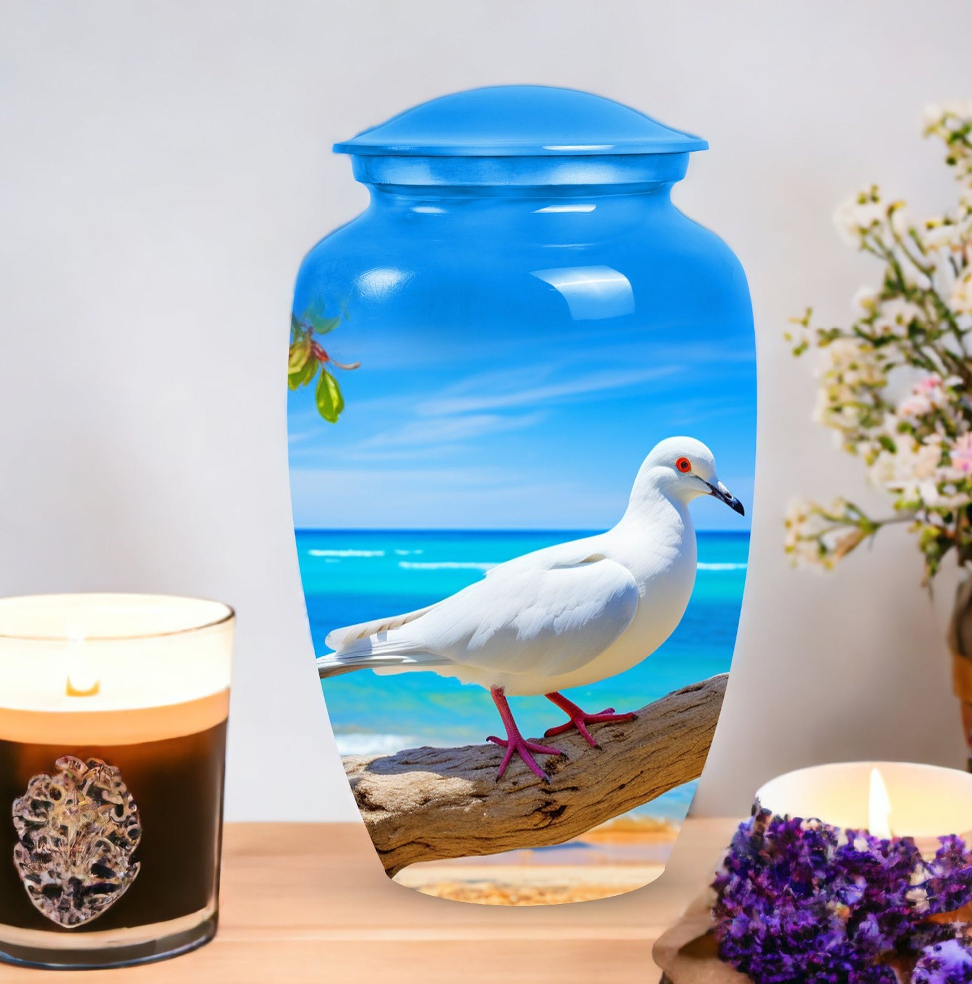 Illuminate the journey into eternity with our Dove Cremation Urn, a breathing piece of craftsmanship that combines the unparalleled durability of aluminium with a classic touch, making it the optimal choice for Large Urns. Weighing just 3.3 pounds yet robust, this memorial urn is designed to hold up to 200 cubic inches of ashes, encapsulating a loved one’s tangible essence with utmost respect. Housed in a velvet pouch for added dignity, this custom urn measures a stately 10 inches in height and the compact 3-inch size ensures an effortless placement in the desired area. Our urn has been carefully crafted to endure time, symbolic of the enduring love you hold. To personalize, we provide the option to engrave names, adding a unique finishing touch to our beautiful urns. Our Dove Cremation Urn serves as more than a resting place, it serves as a tribute, a memory, an everlasting symbol of love. Embrace the modern Urn, Birth the eternal memorial with our burial Urns for Ashes.