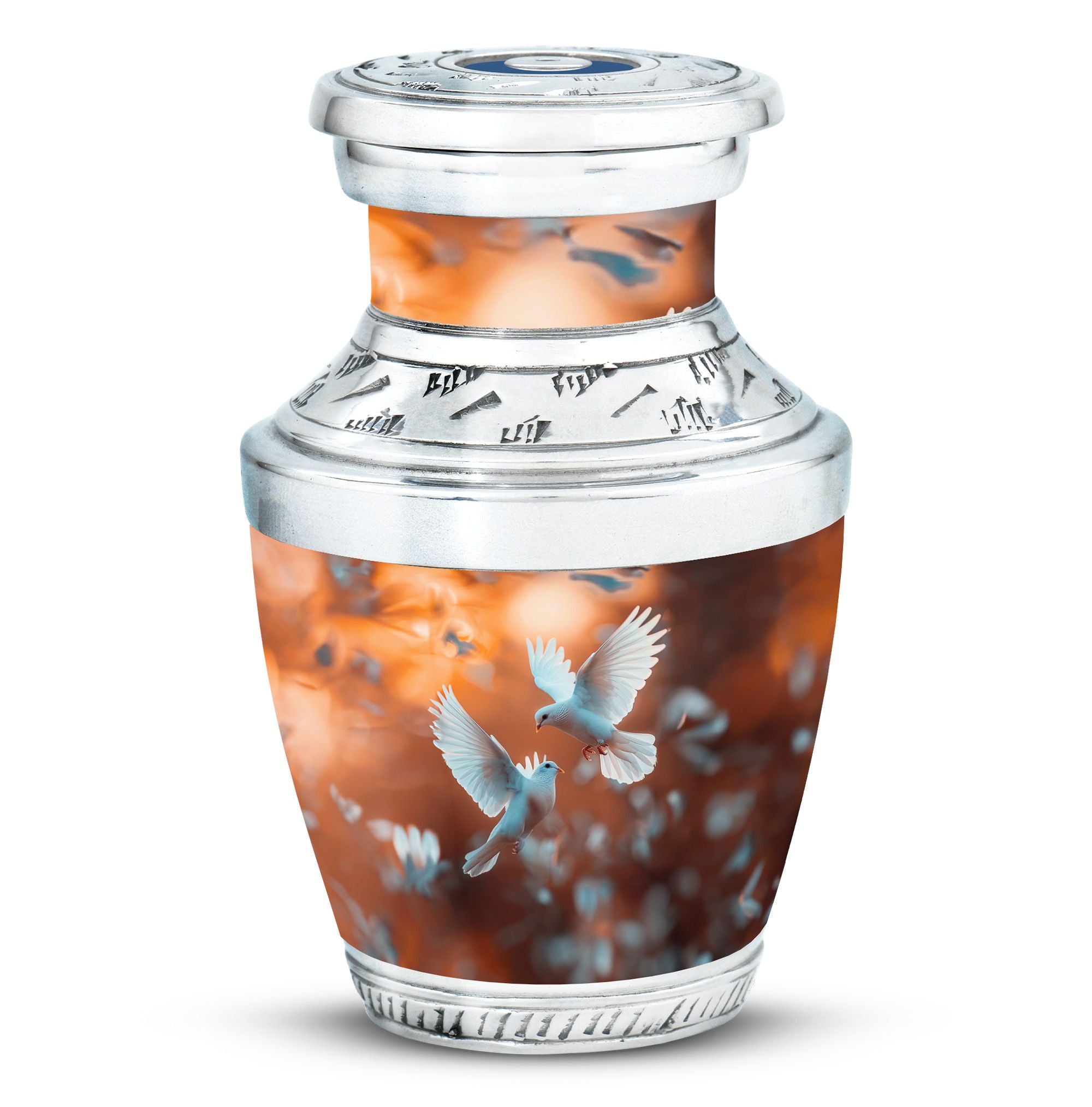 Expertly crafted from durable aluminium, this urn combines beauty and strength. Its elegant dove design with a soft white finish makes it a meaningful choice for urns cremation ashes female tributes or burial urns adult female memorials. With a 200 cubic inch capacity, it is well-suited as large urns for female & male remembrance, while the secure screw-top lid ensures the ashes remain safe and protected. This versatile design also serves as mini urns for human ashes adult male keepsakes or as an urn ash adult female memorial piece.