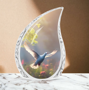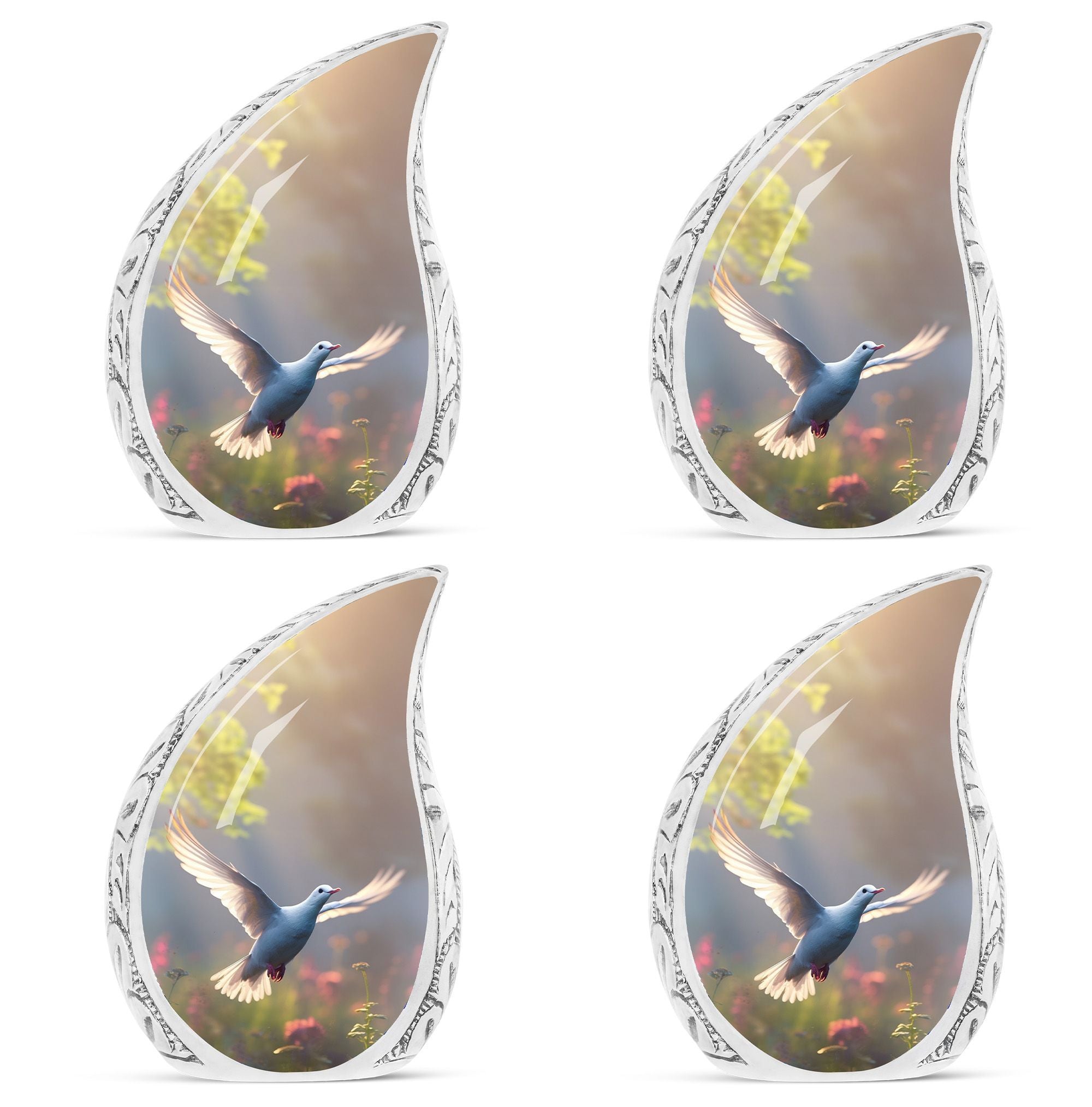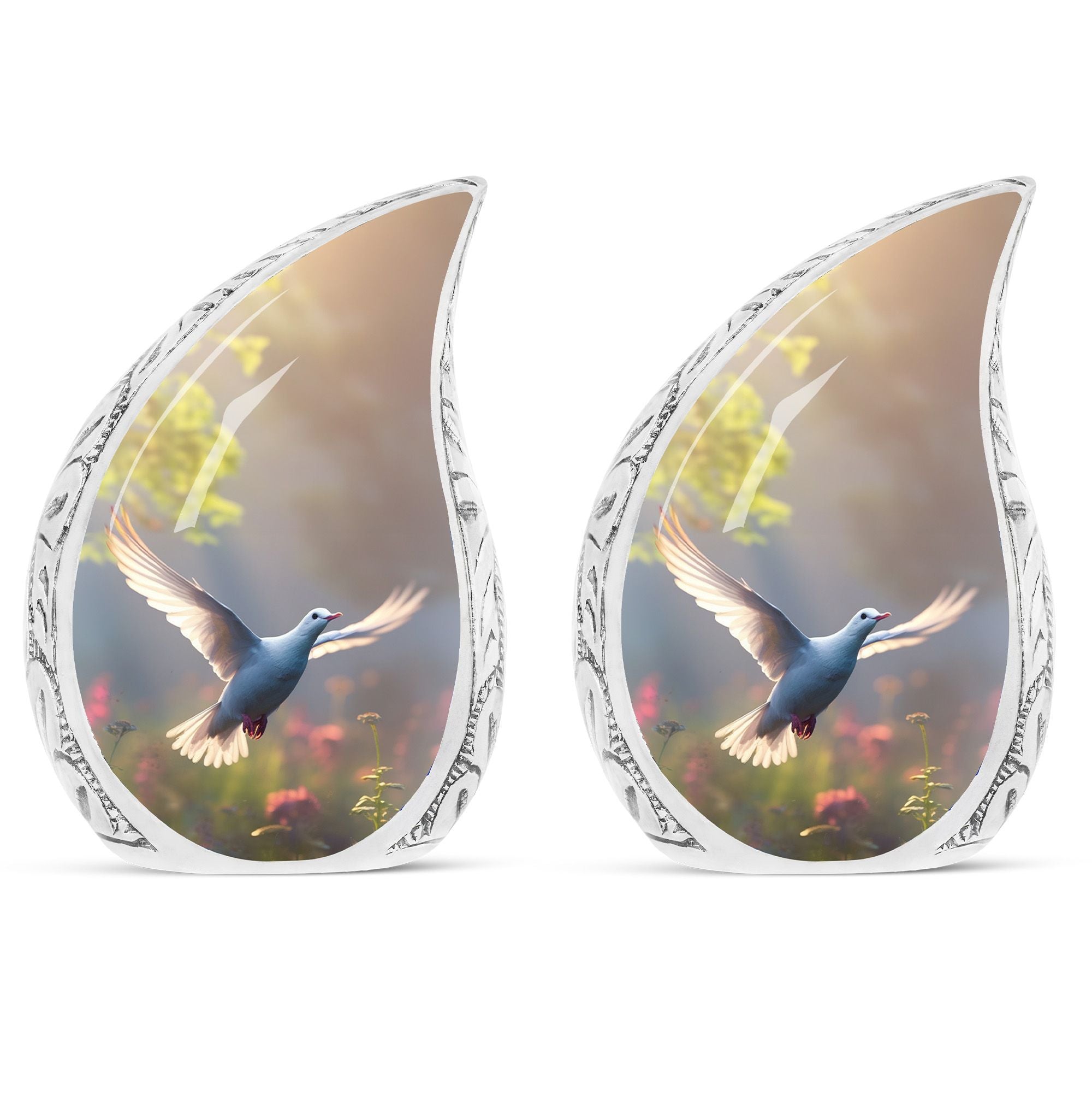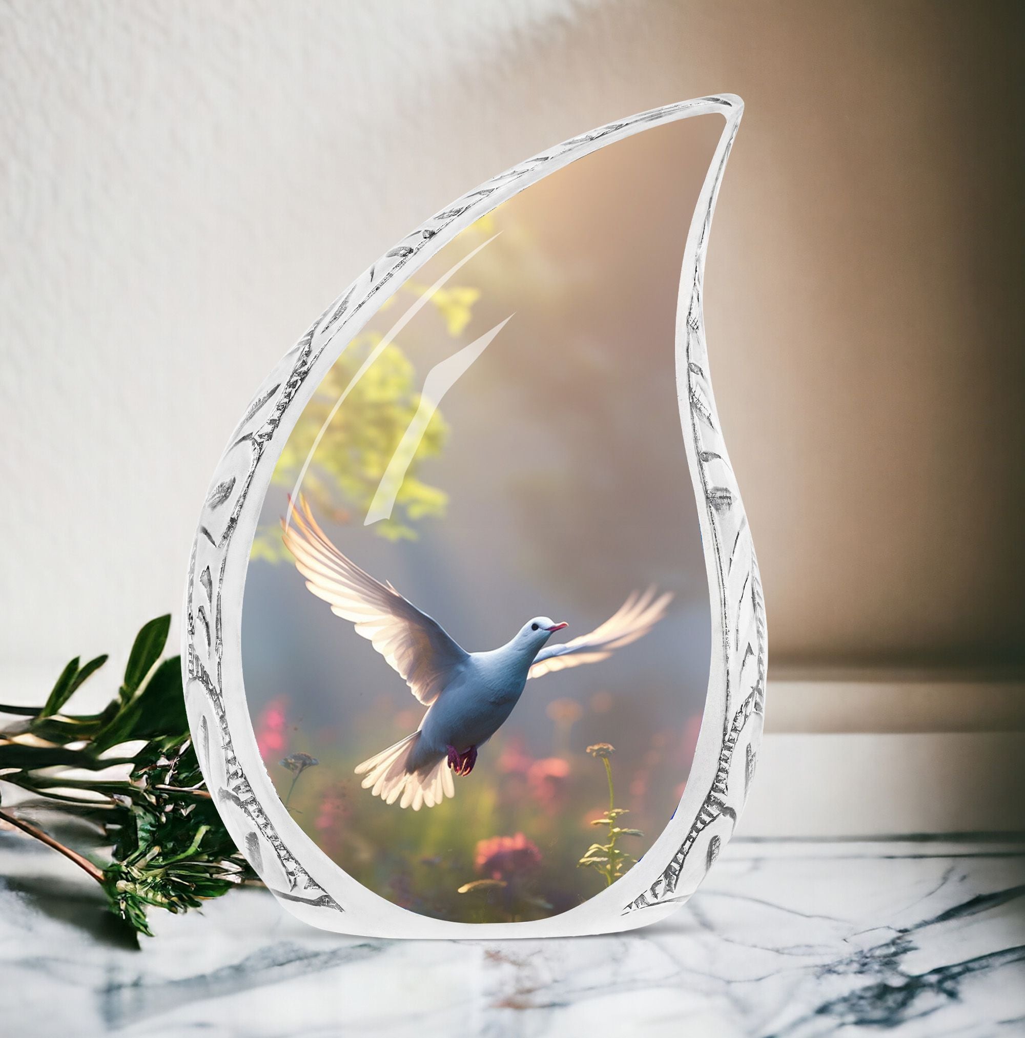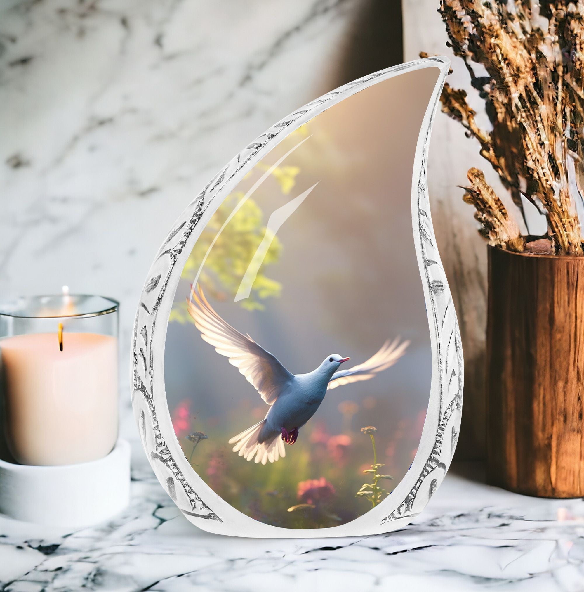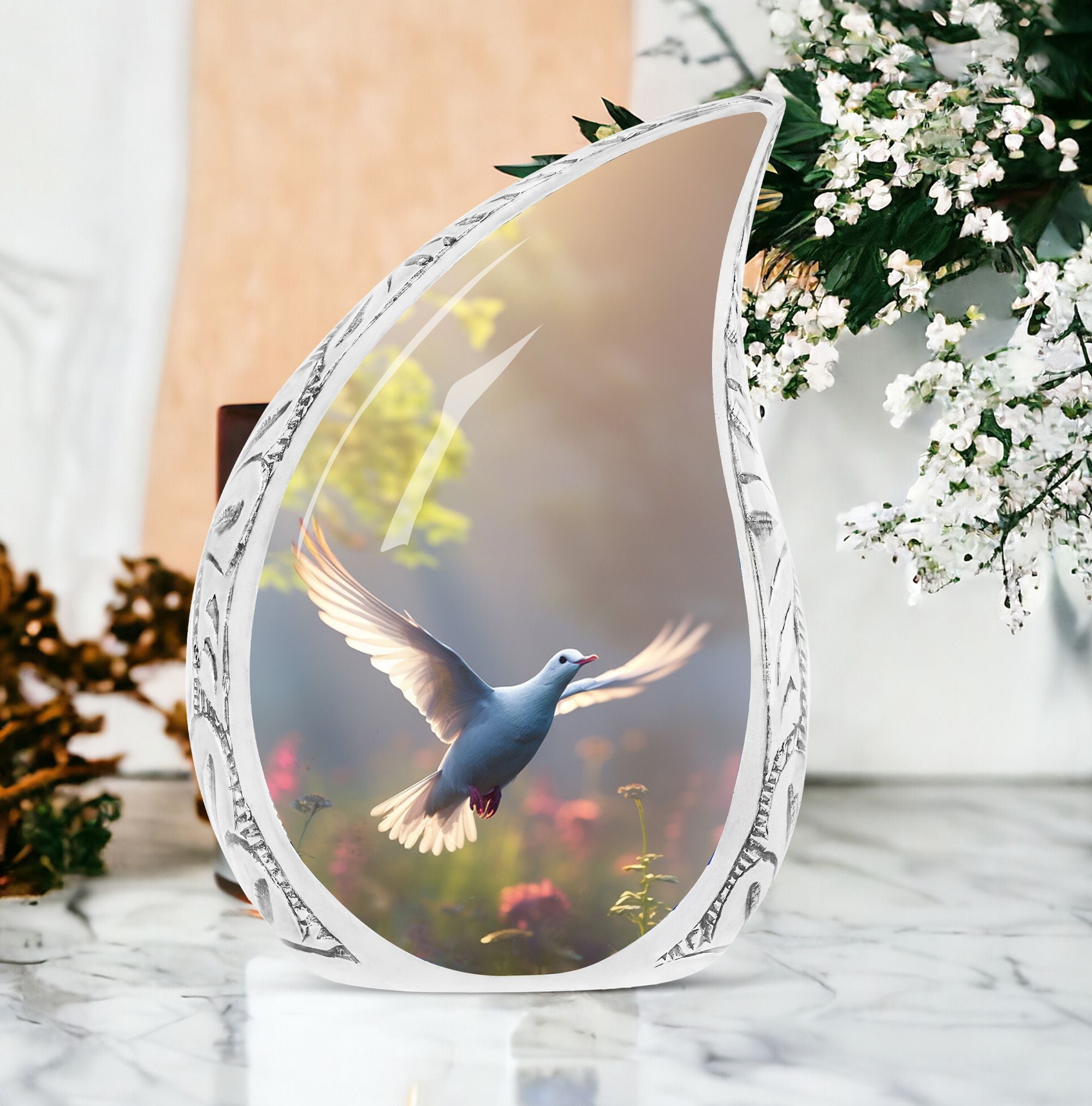 Discover peace, comfort, and a touch of elegance with our expertly crafted 3-Inch Dove Urn. These cremation urns are an ideal choice for those seeking a respectful and dignified way to honor their loved ones. Made from high-quality Aluminium, our Large Urns feature a weight of just 3.3 pounds making it easy to relocate or transport. With a space capacity of 200 cubic inches and standing 10 inches in height, these cremation urns can hold a significant amount of ashes while maintaining their classy appeal. Customize these Metal Urns for Human Ashes with engraved names, thus adding a touch of personality and love. The package includes a velvet pouch for containment of ashes, ensuring a high level of care and consideration. With emphasis on usability and aesthetic beauty, our Unique Urns for Dad or Decorative Urns for Ashes for Mom aim to provide comfort during a time of loss while honoring the memory of the loved ones.