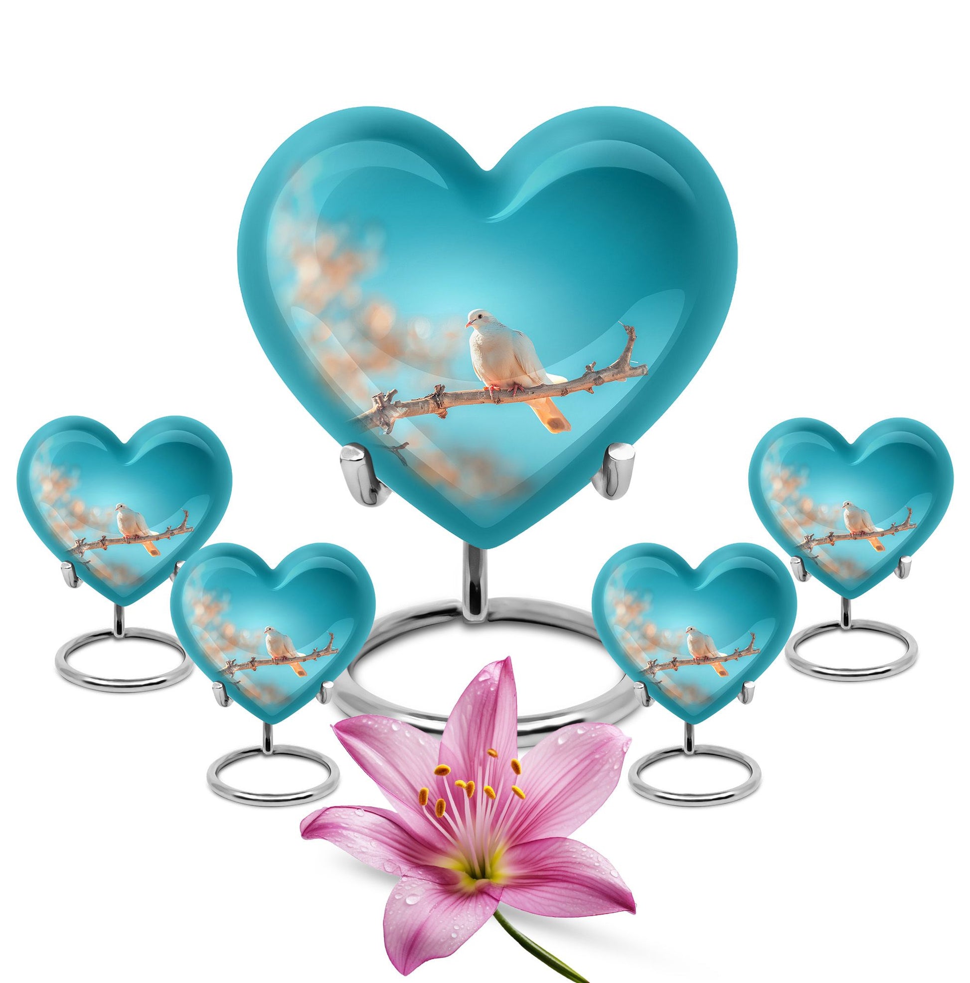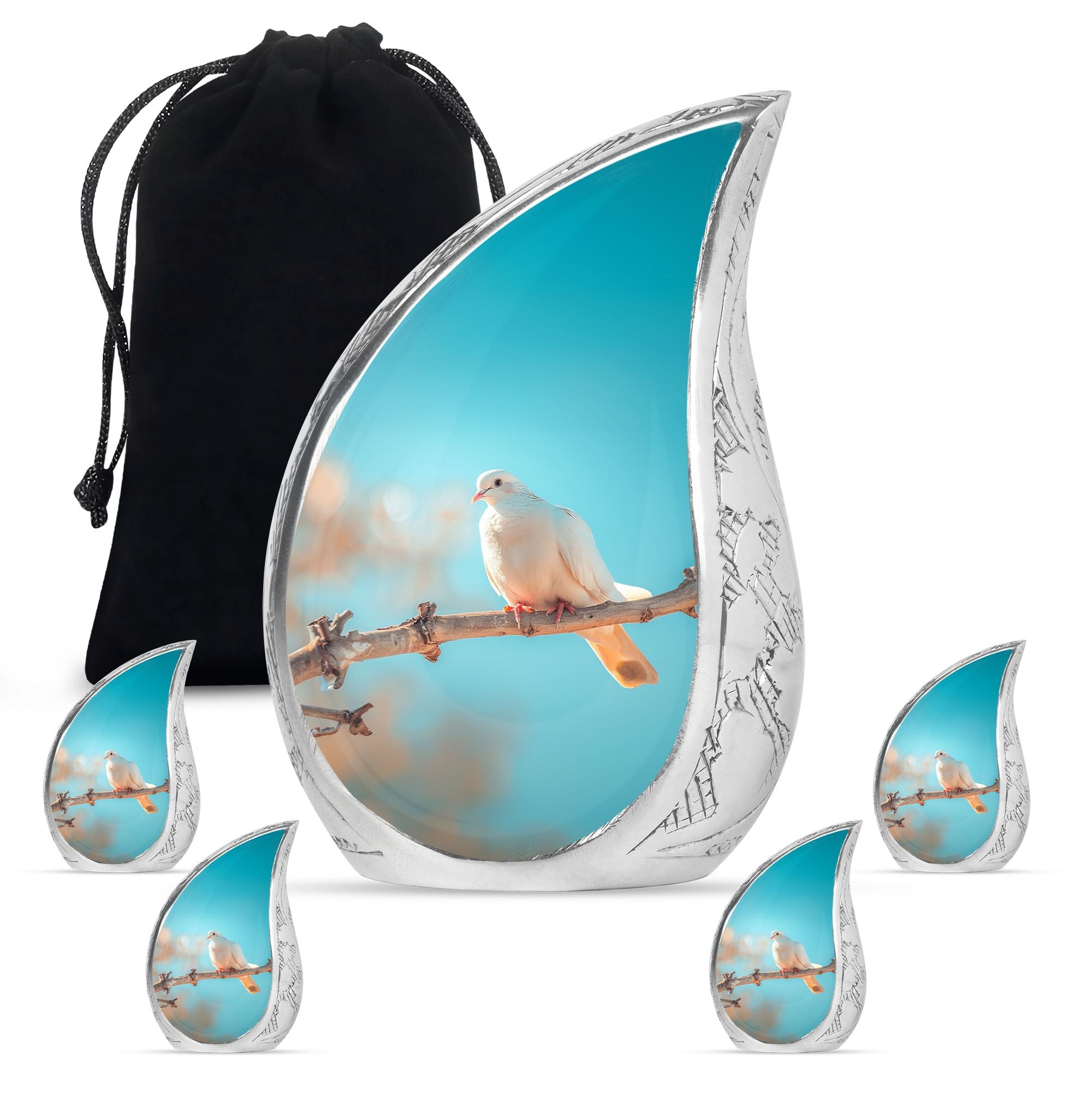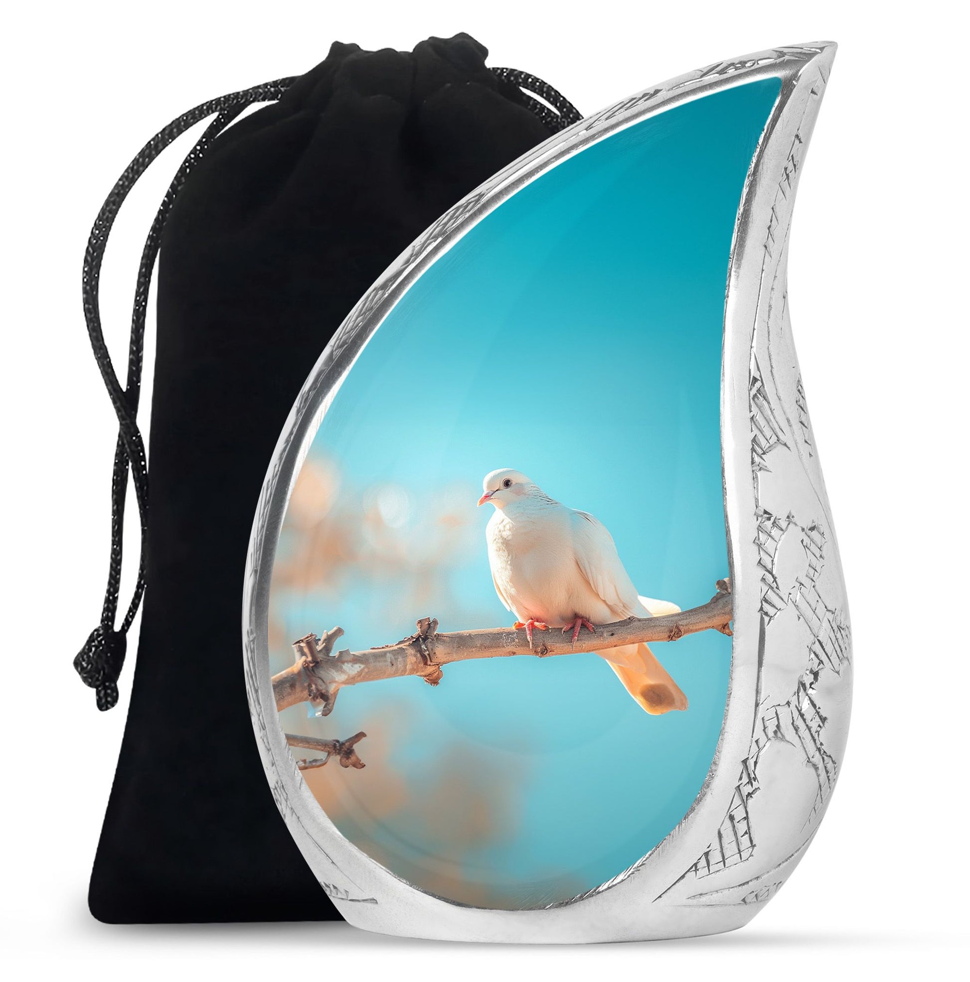 With its tranquil blue sky design and durable construction, the Dove Cremation Urn provides a meaningful and lasting tribute, ideal as crematory urns, urns for men's ashes, or heart urn for ashes, preserving cherished memories for generations.